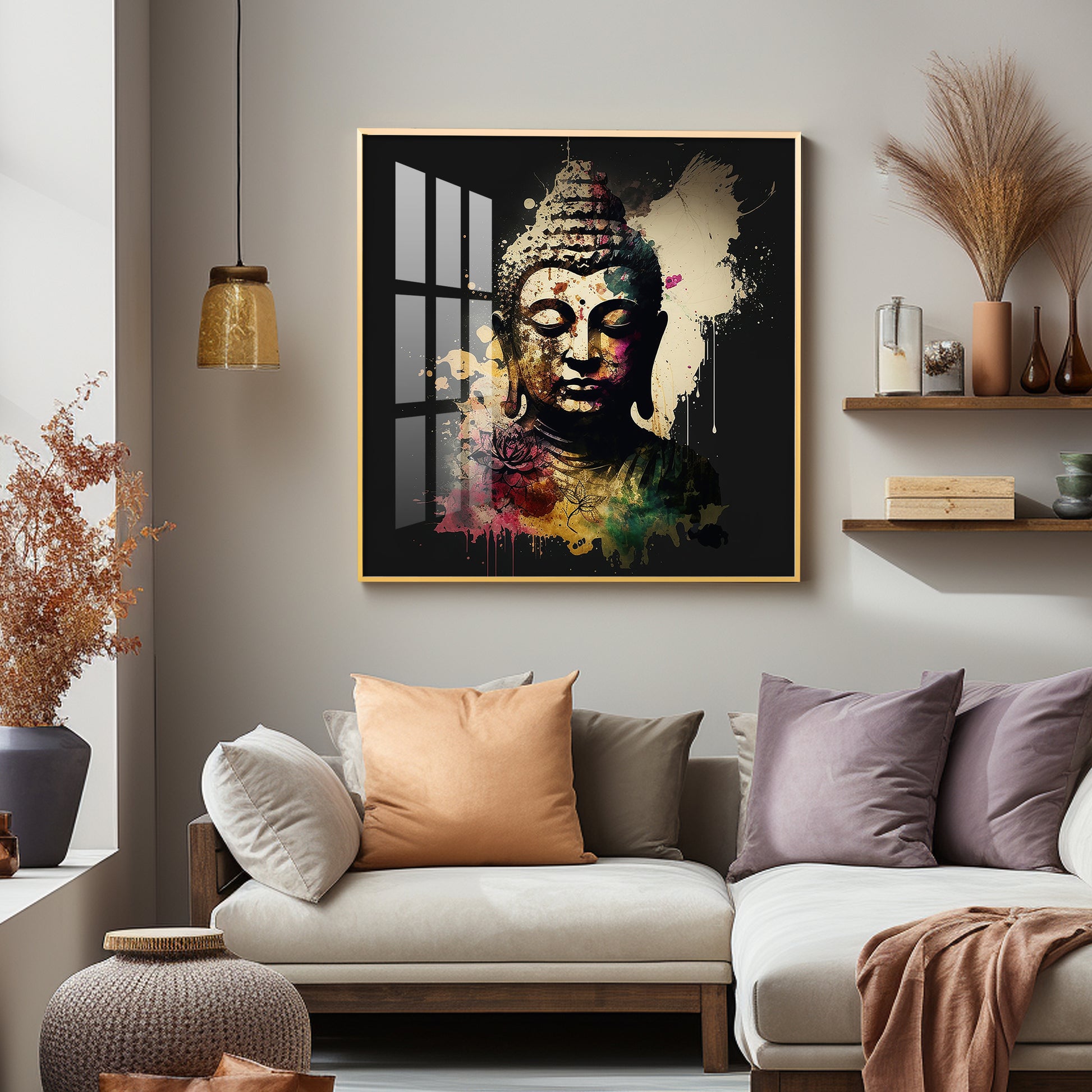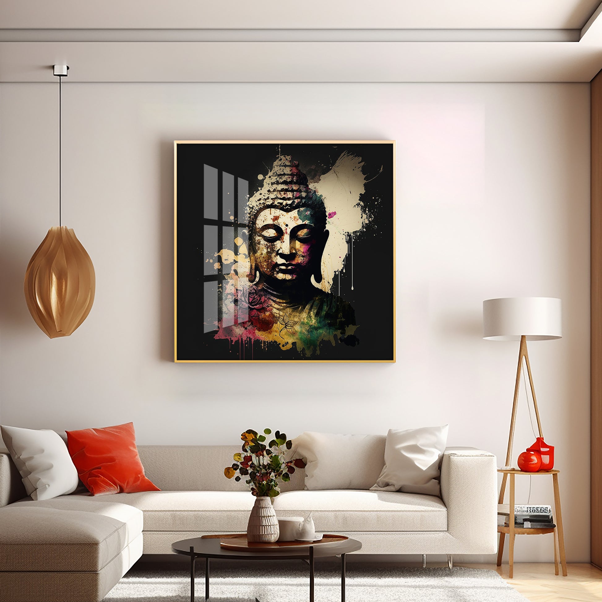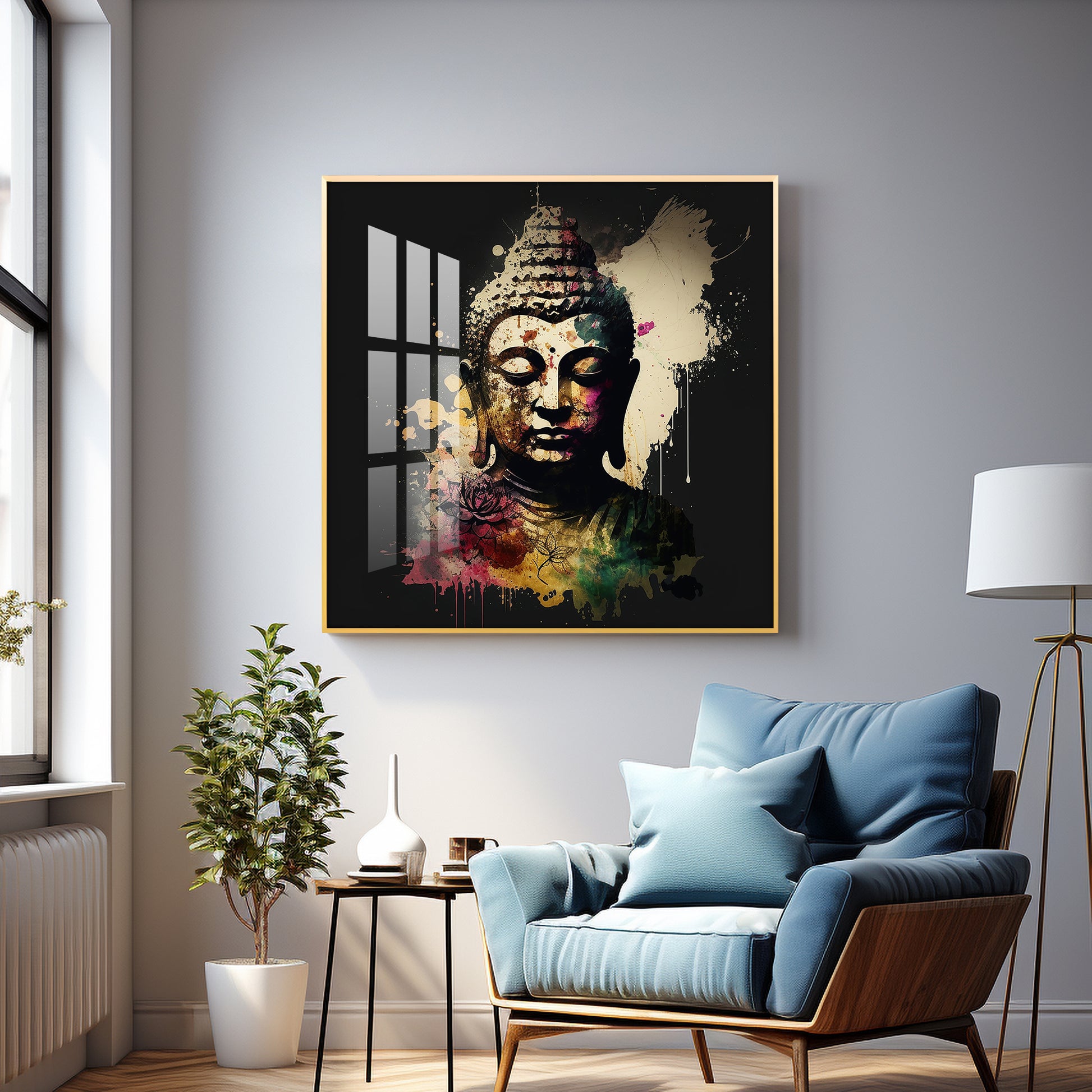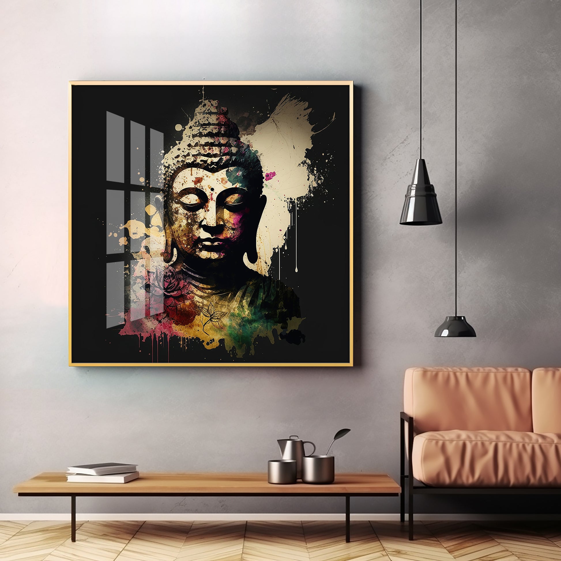 Harmony Of Buddha Calmness Glass Finish Square Wall Art