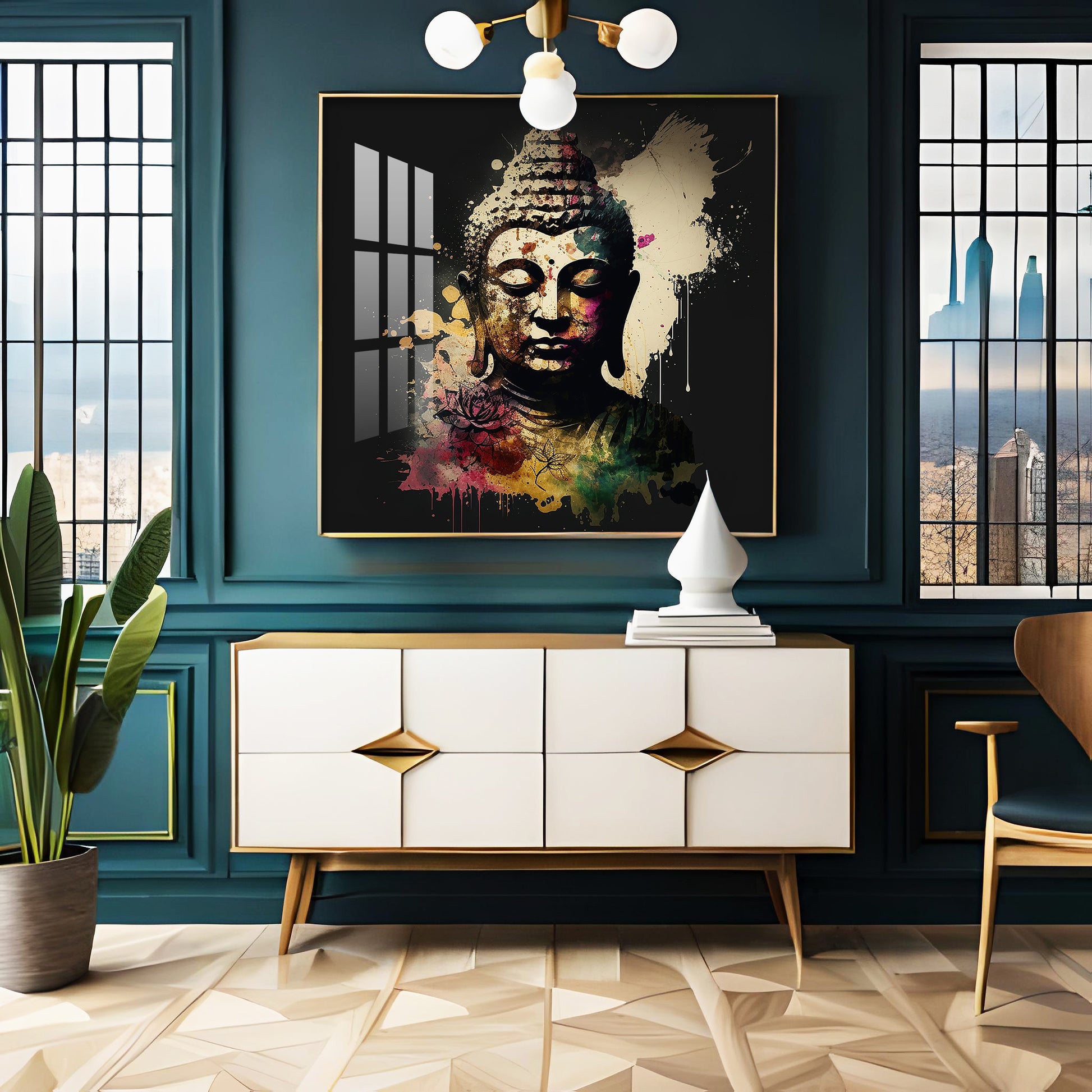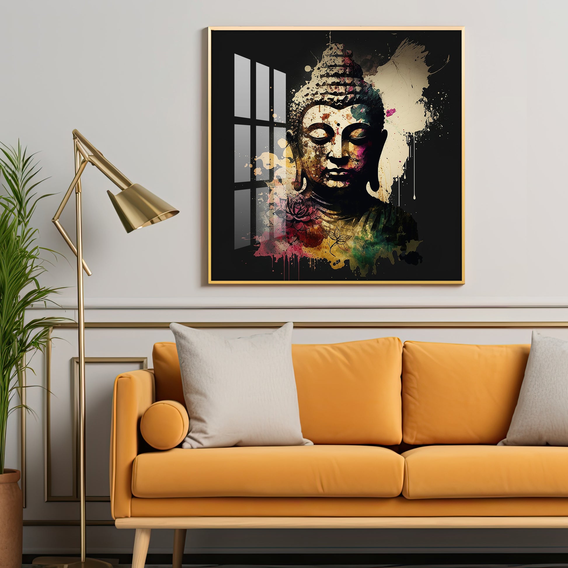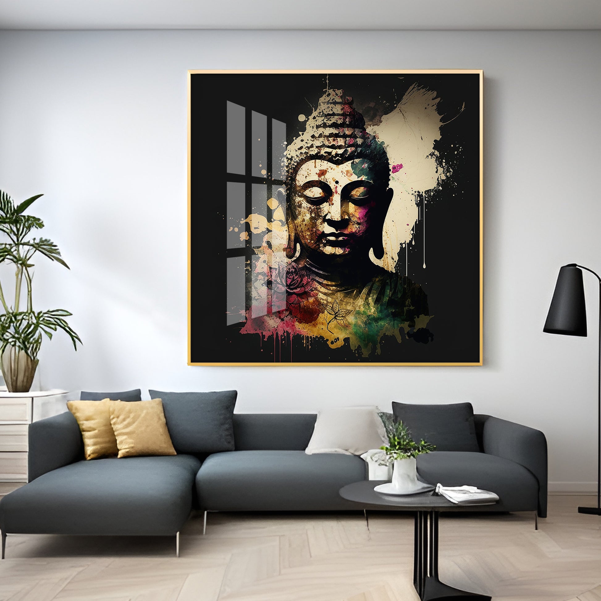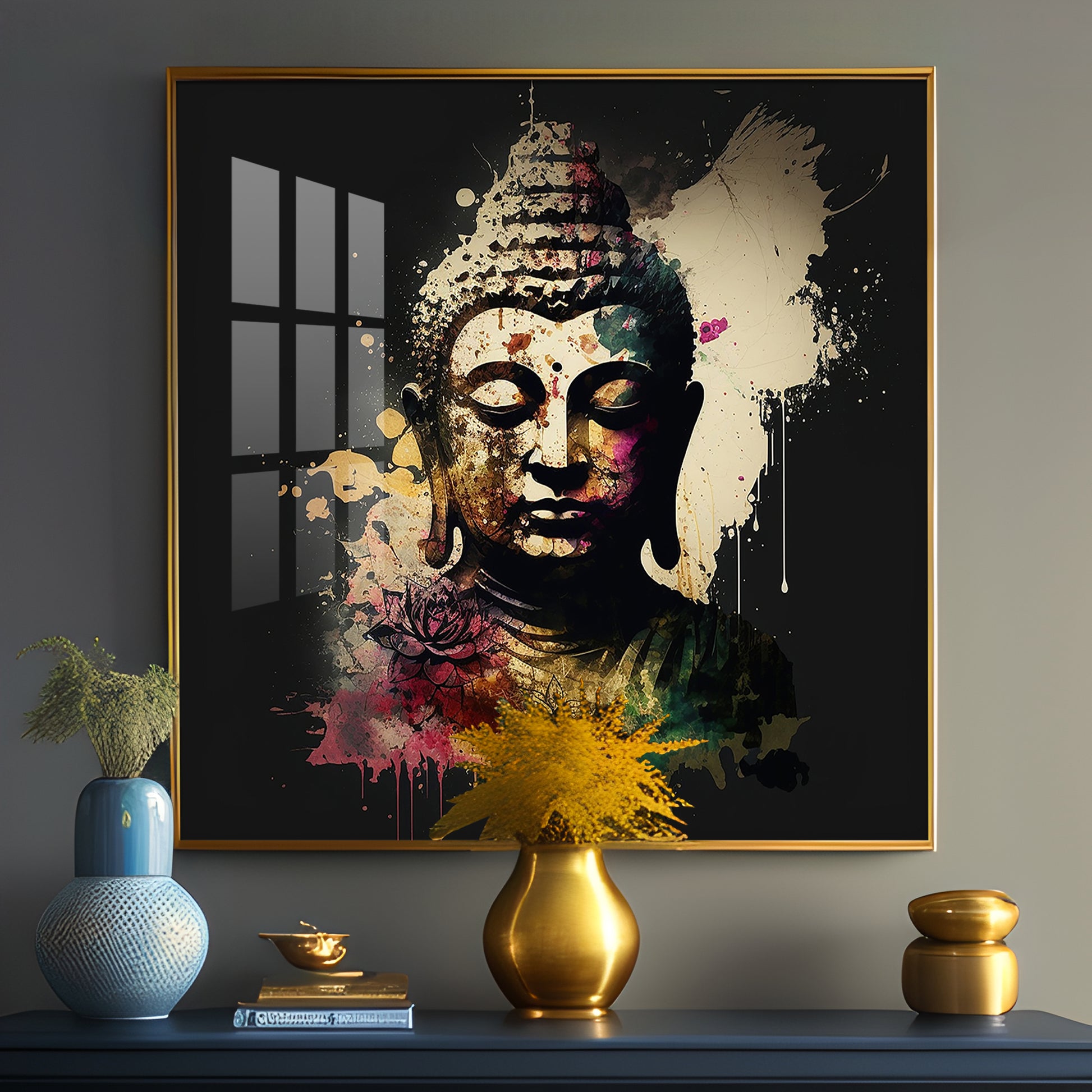 Harmony Of Buddha Calmness Glass Finish Square Wall Art