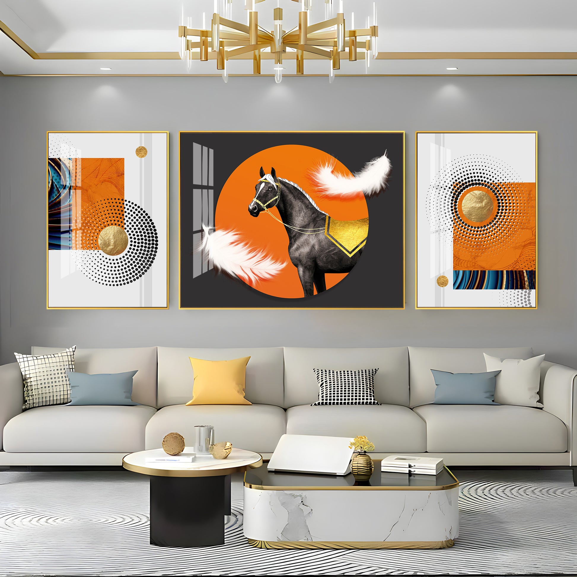 Horse & Feather Glass Finish Wall Art (Set Of 3)