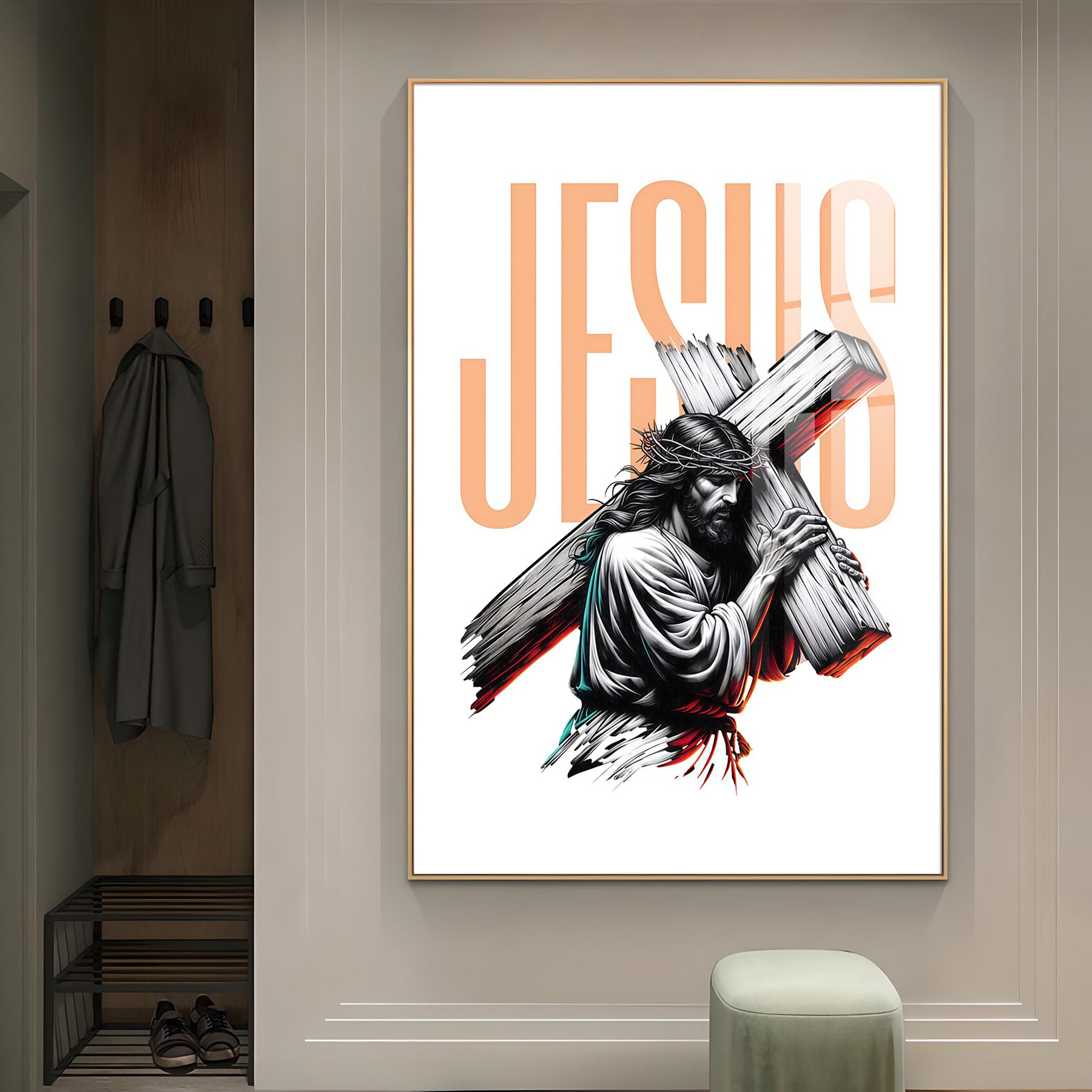 Jesus Christ with Cross Glass Finish Vertical Wall Art