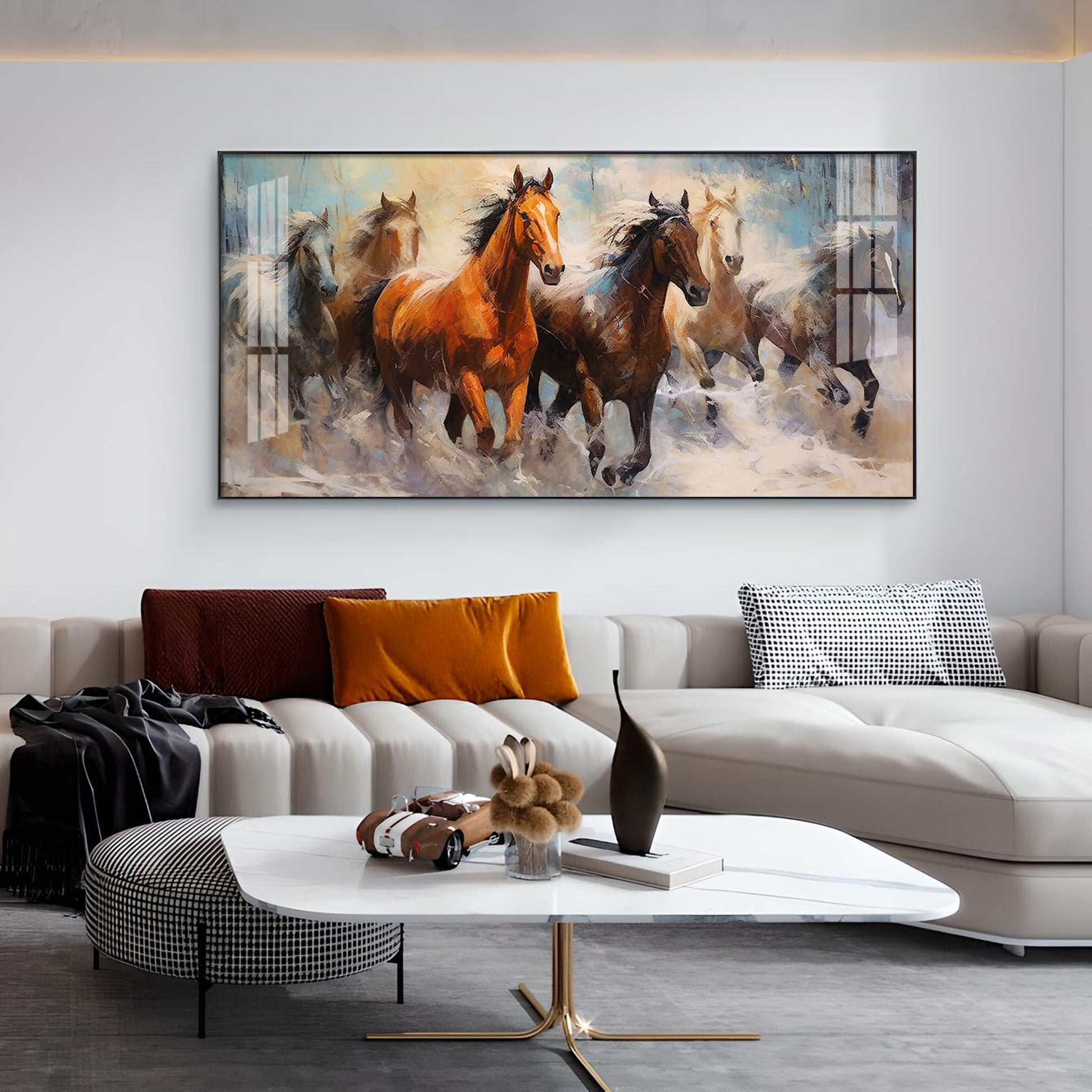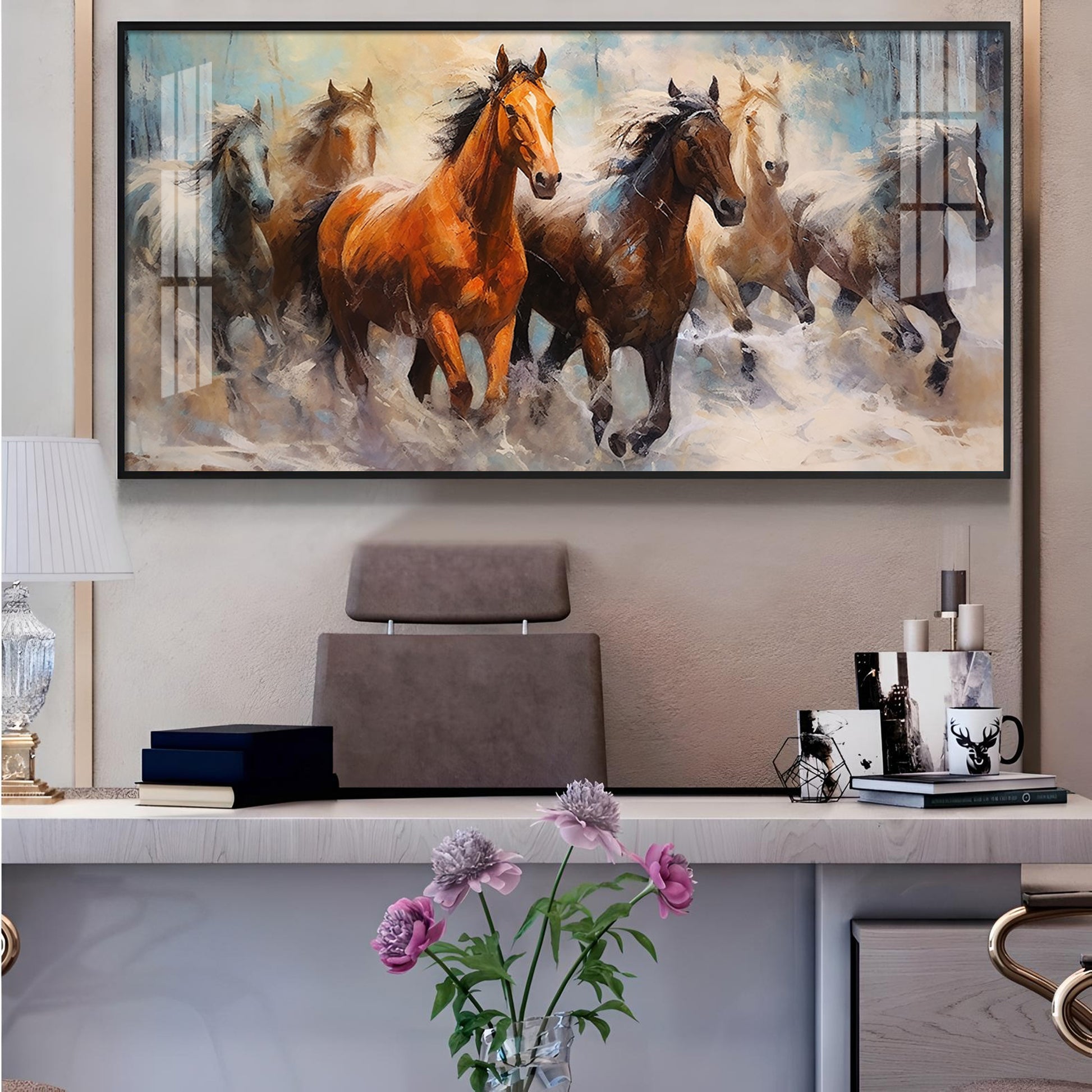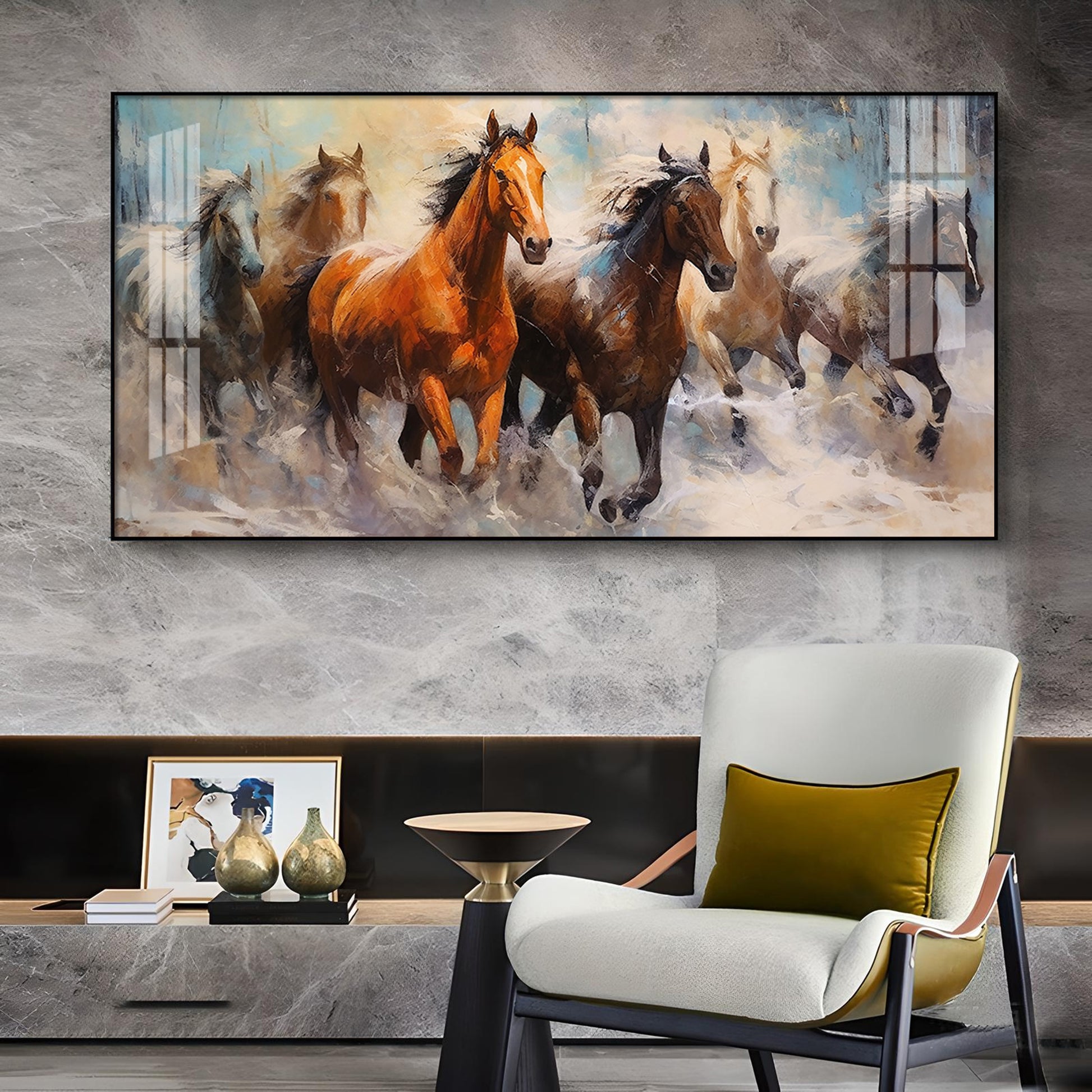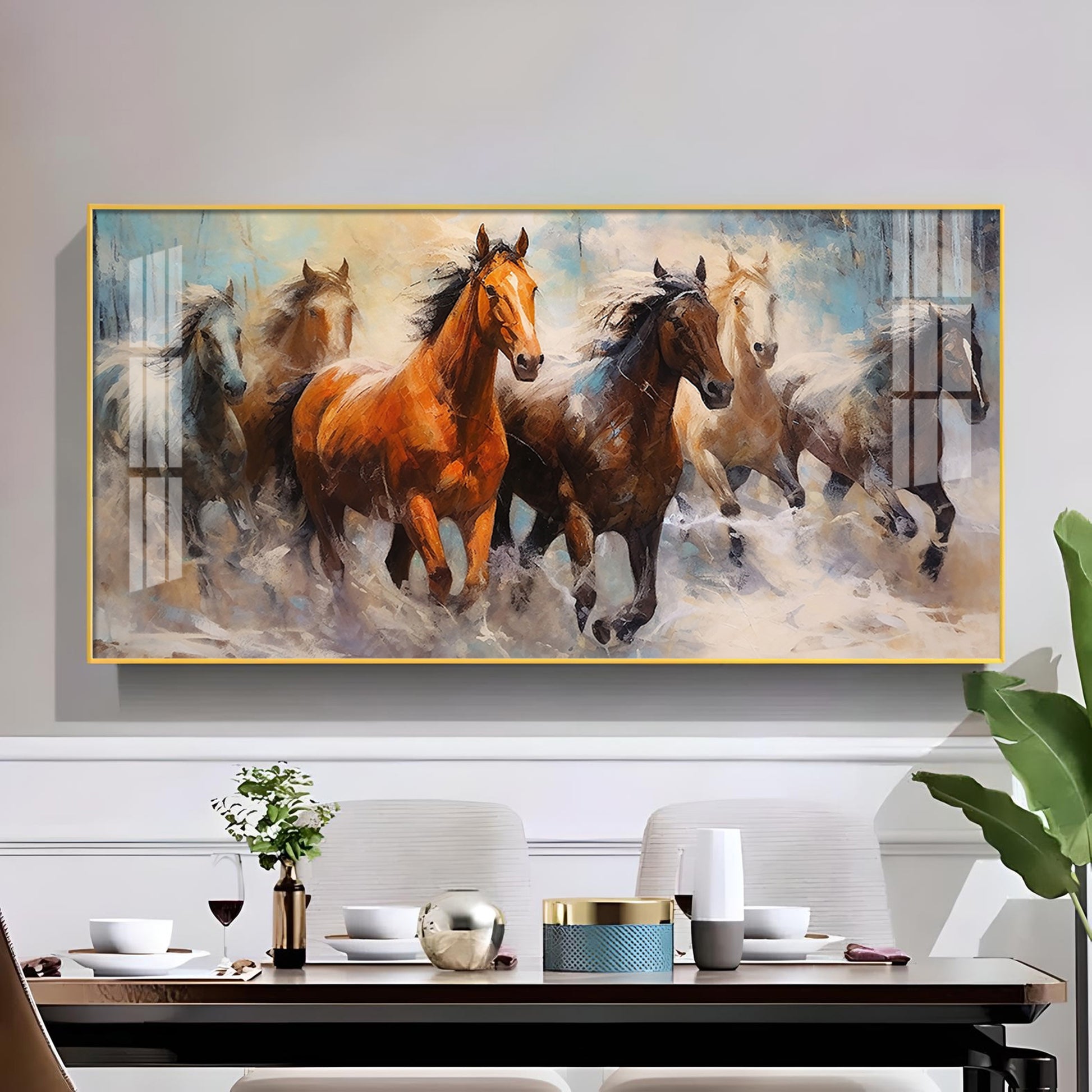 Jungle Running Horses Vastu Glass Finish Horizontal Wall Art