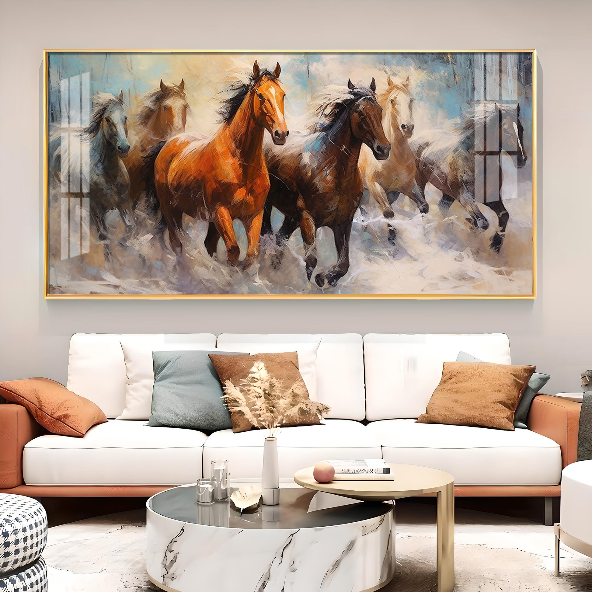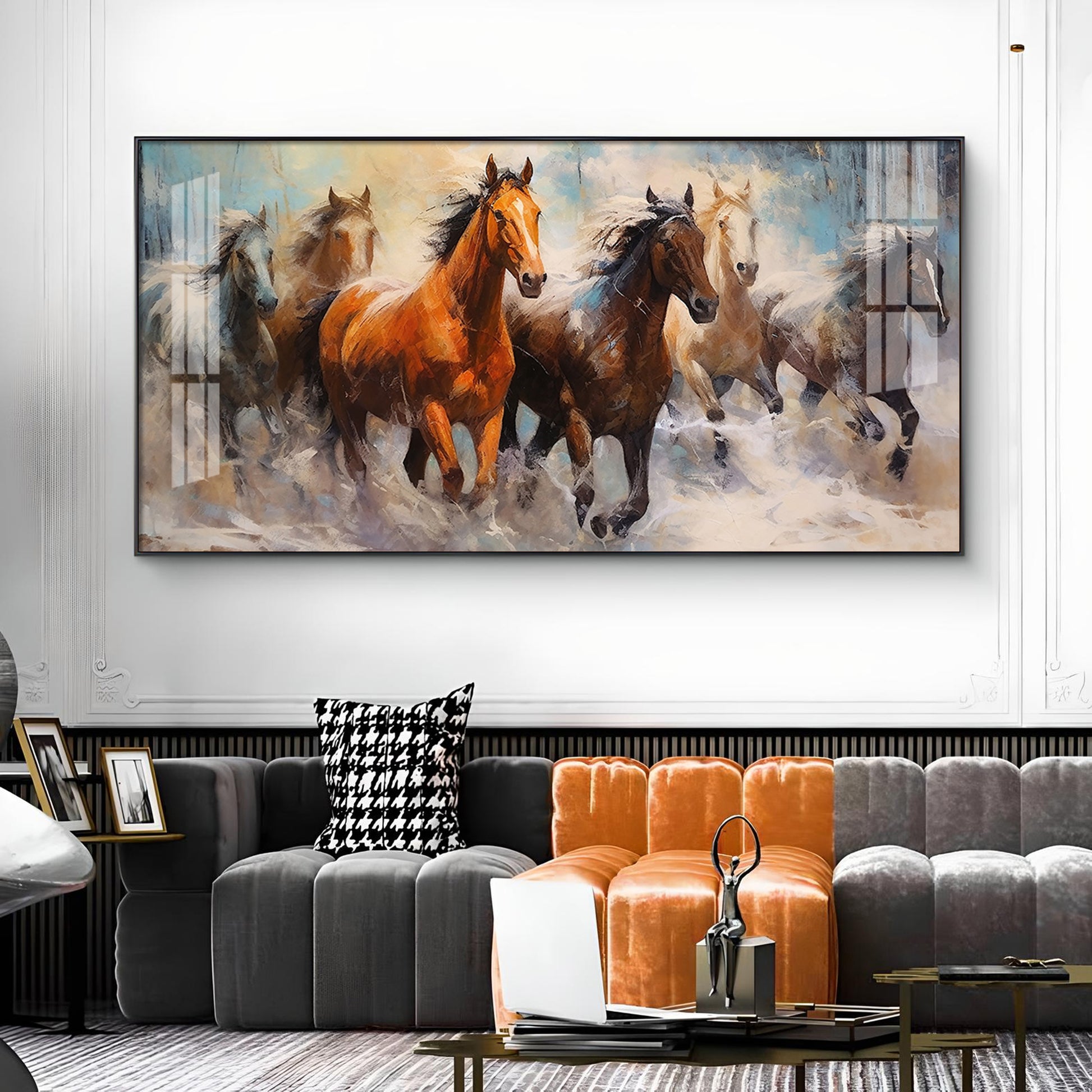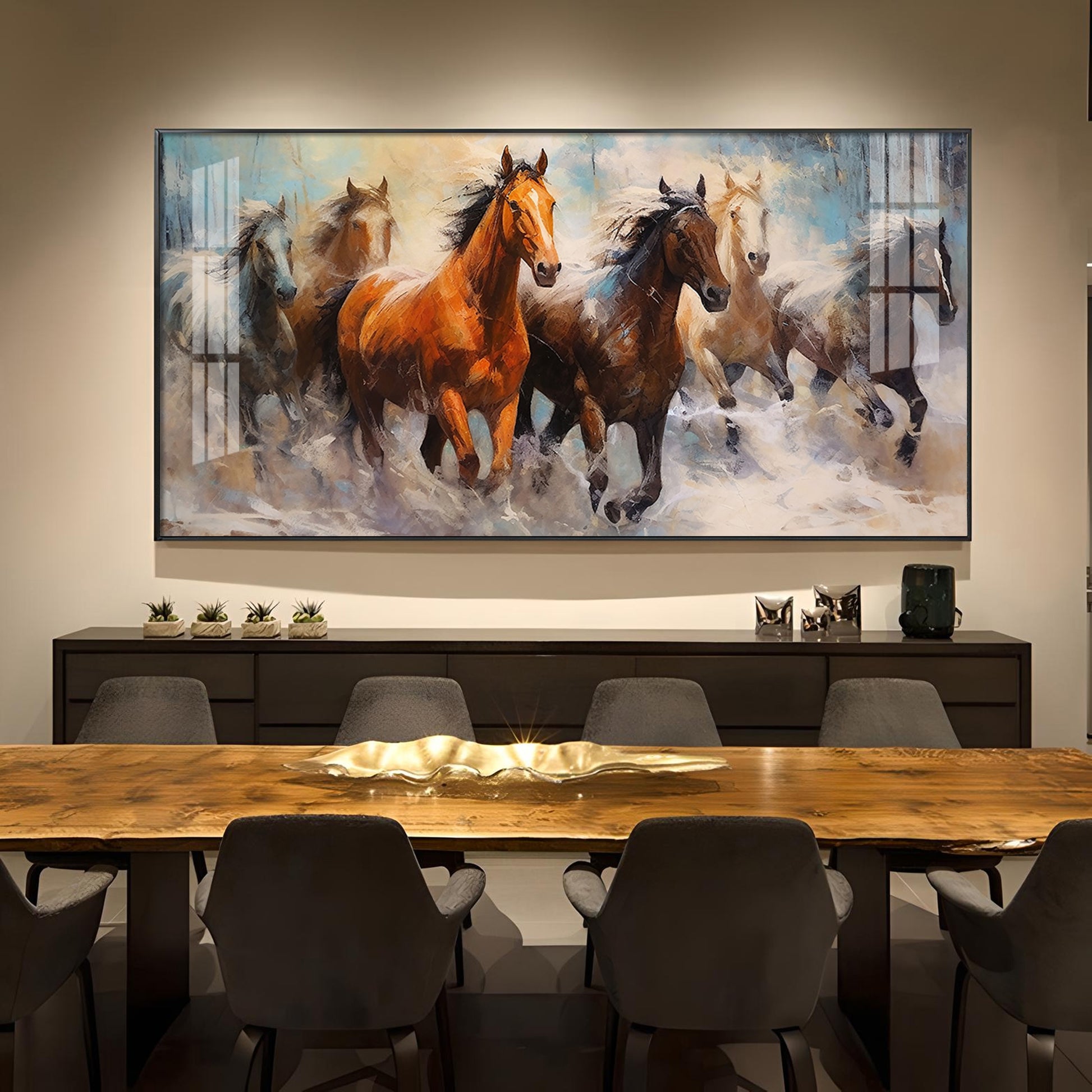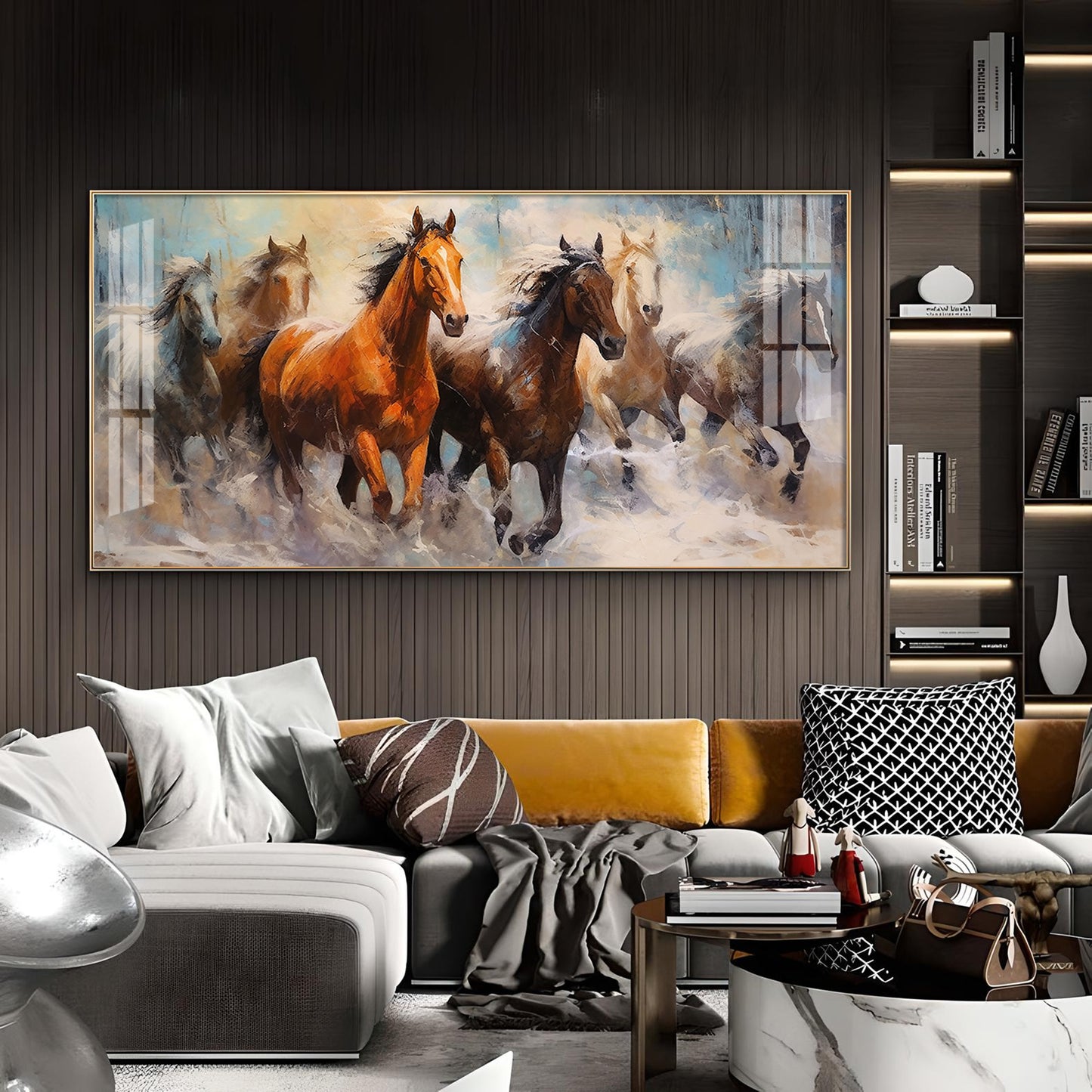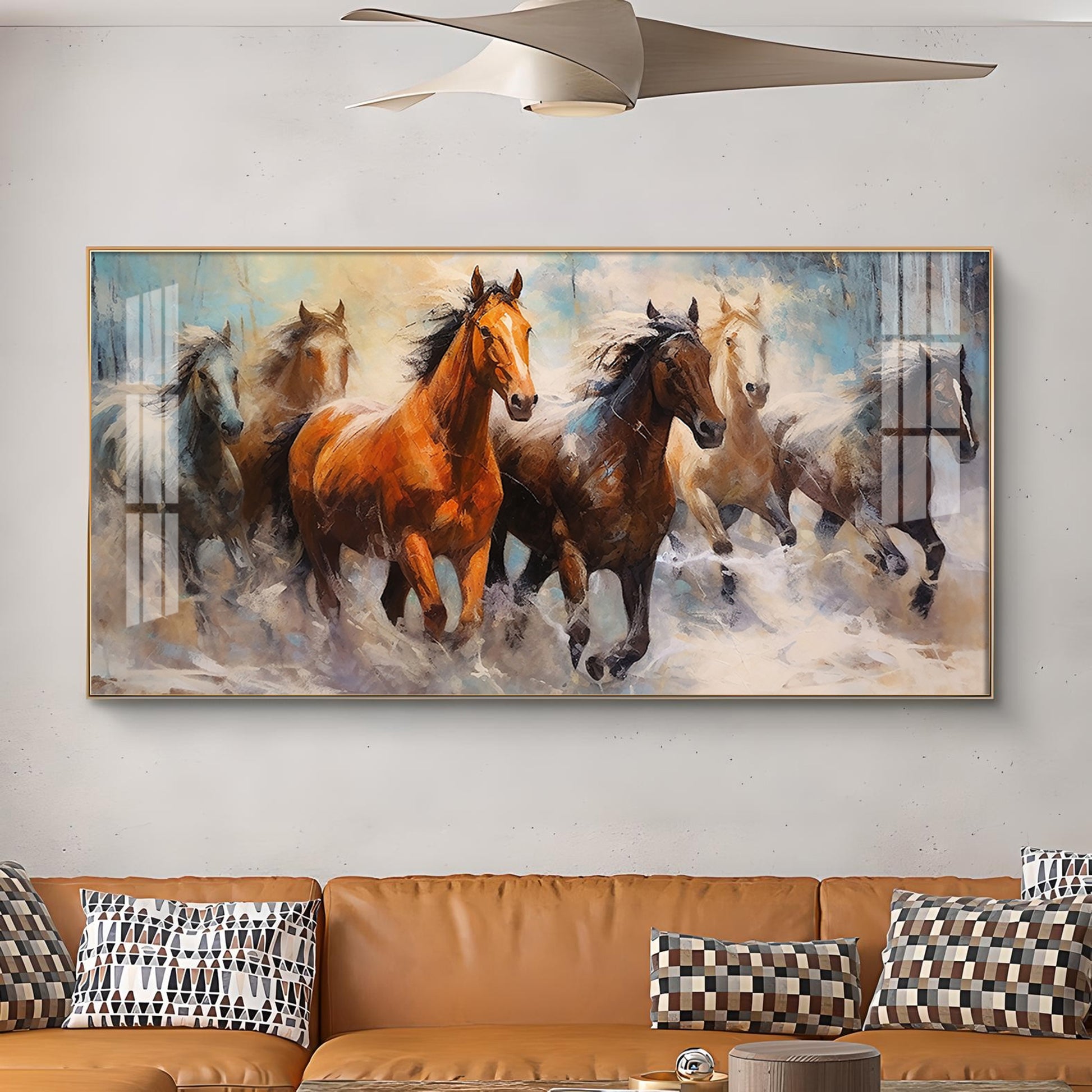 Jungle Running Horses Vastu Glass Finish Horizontal Wall Art