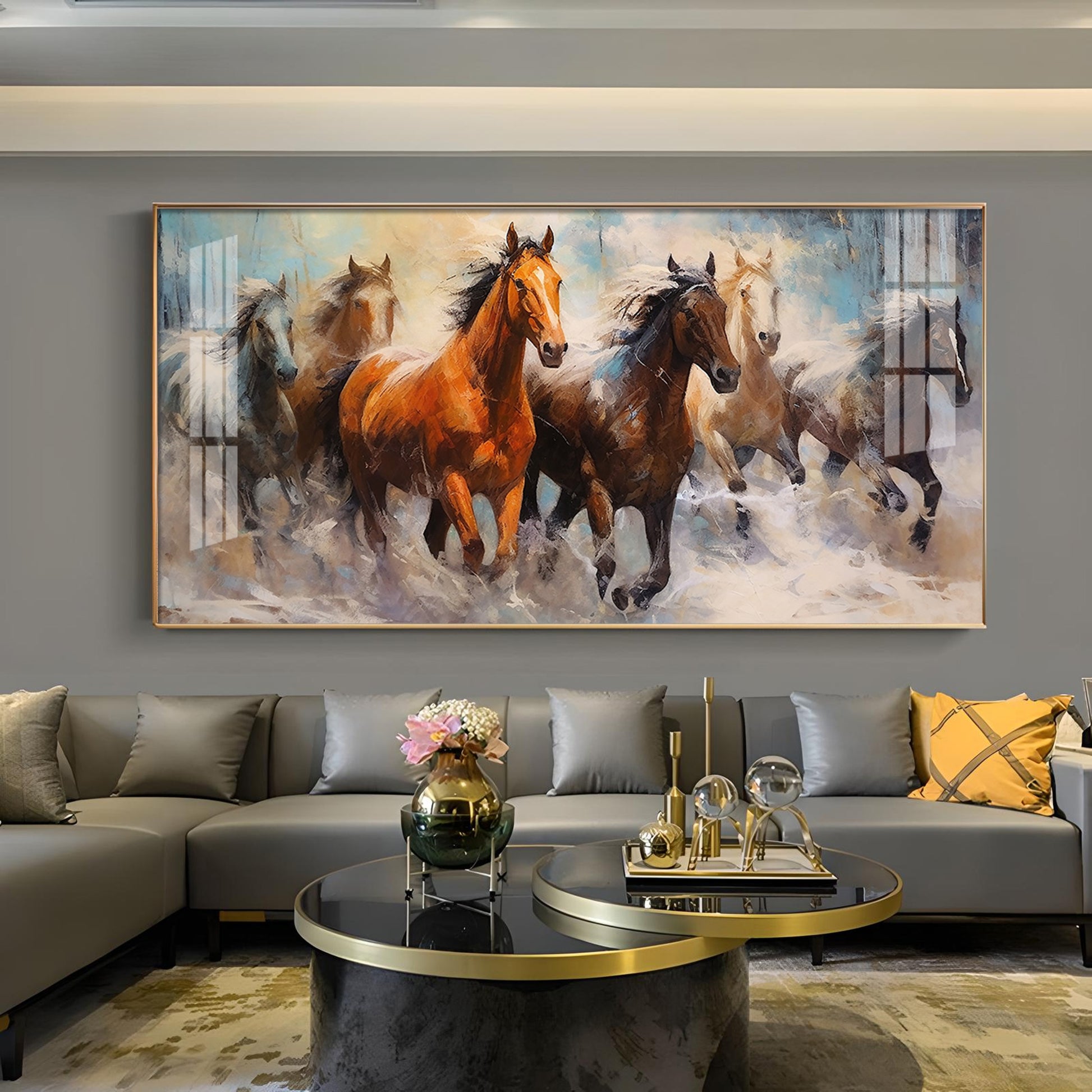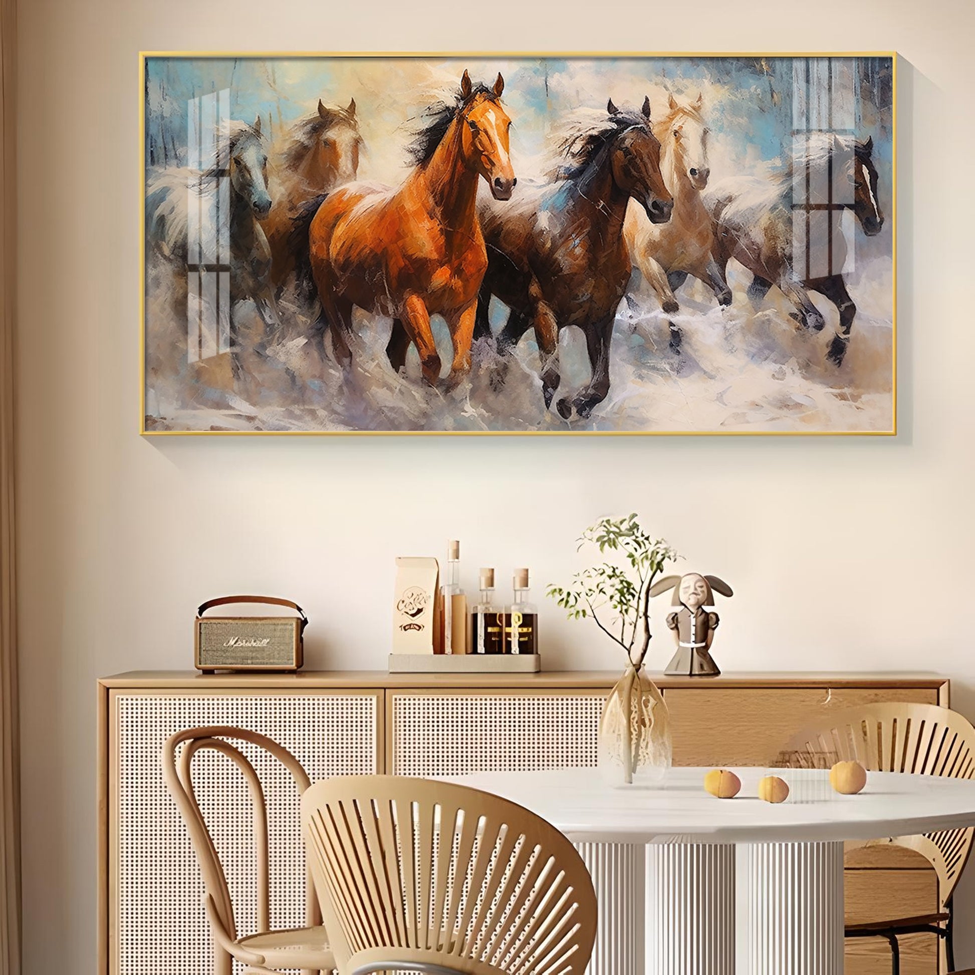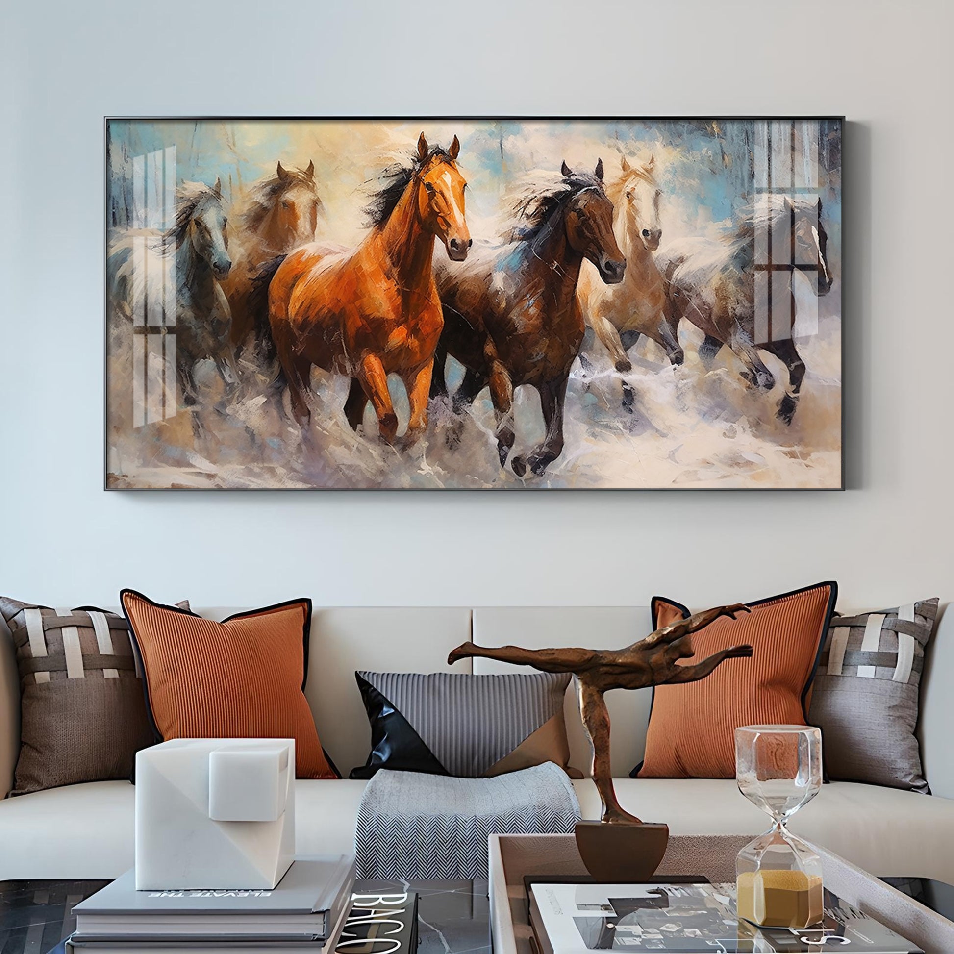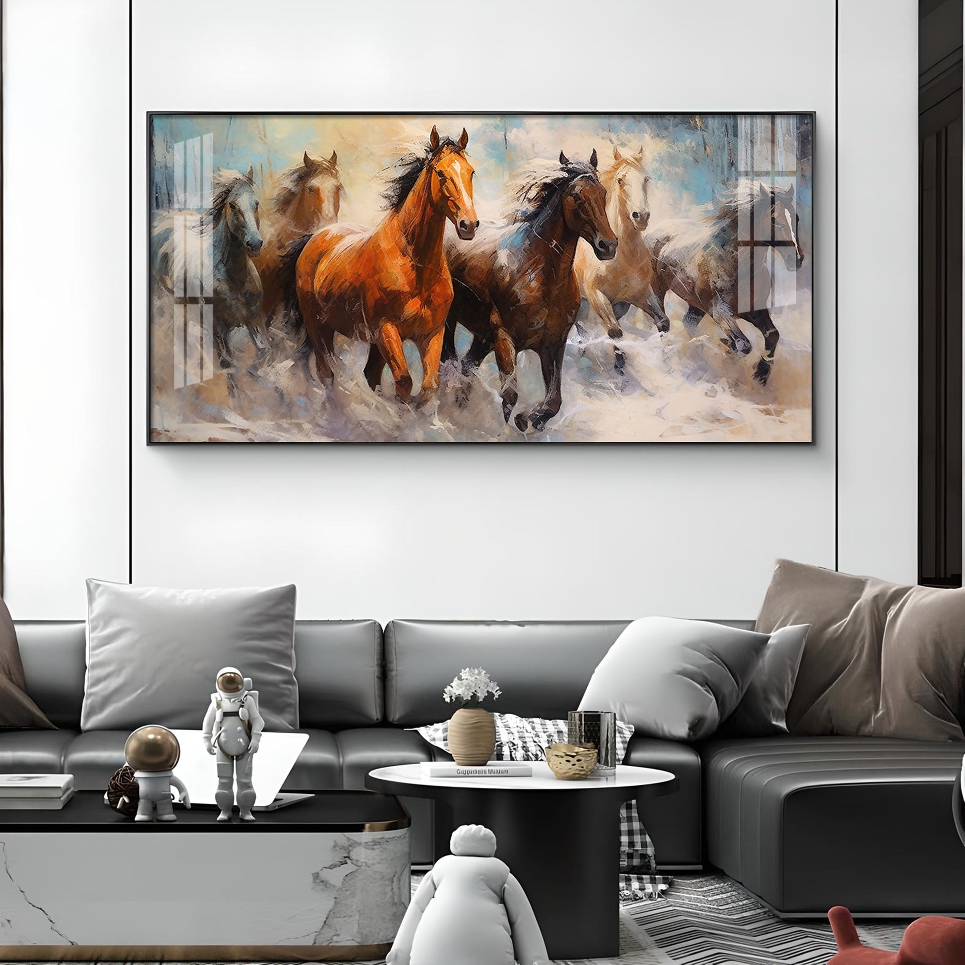 Jungle Running Horses Vastu Glass Finish Horizontal Wall Art