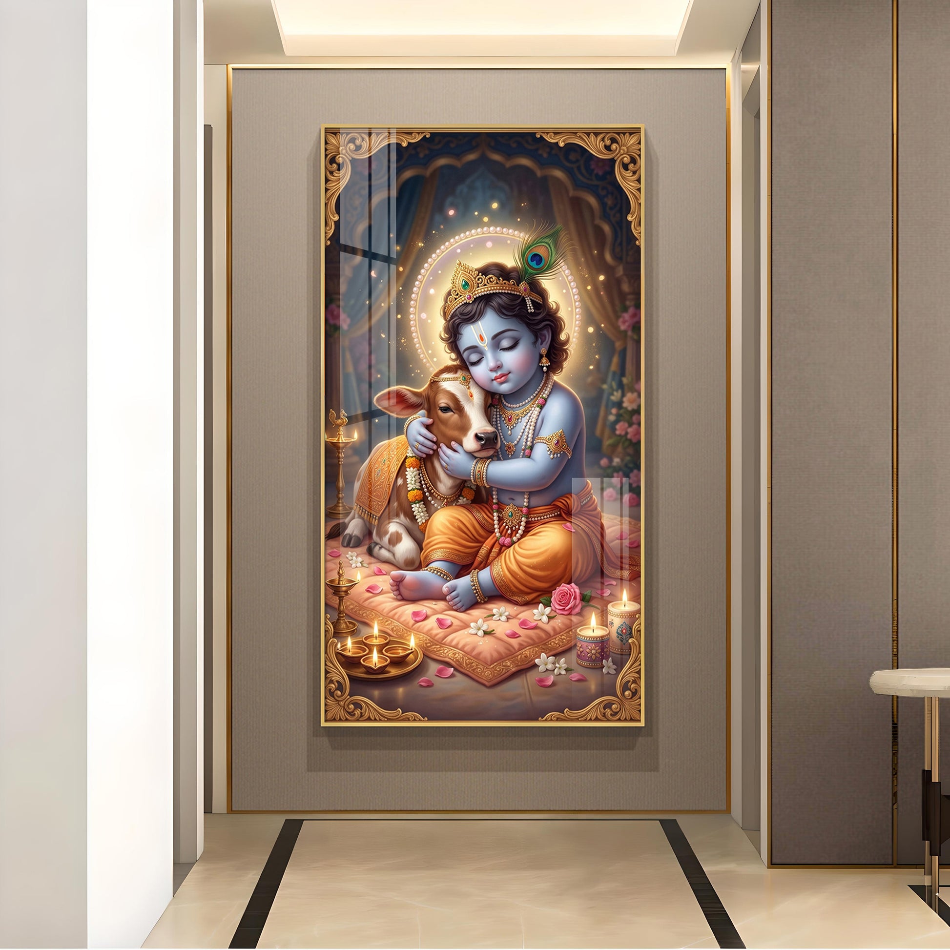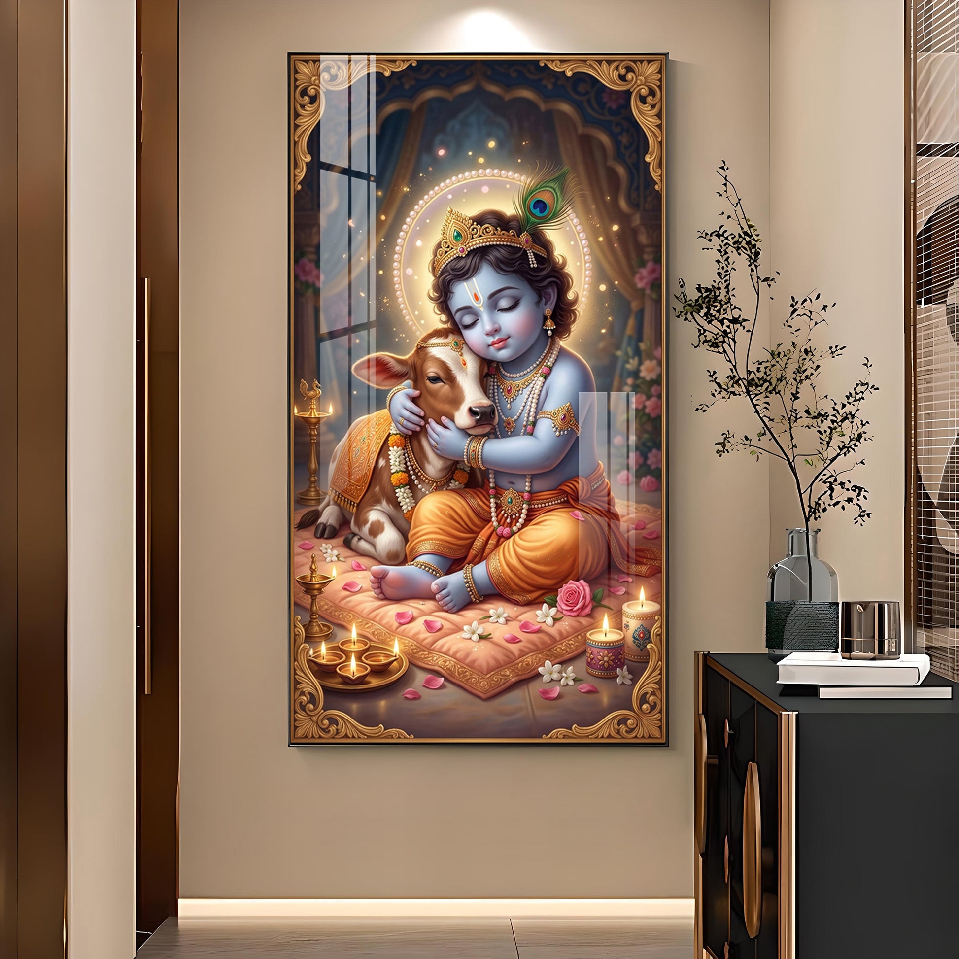 Little Kanha With Calf Glass Finish Vertical Wall Art