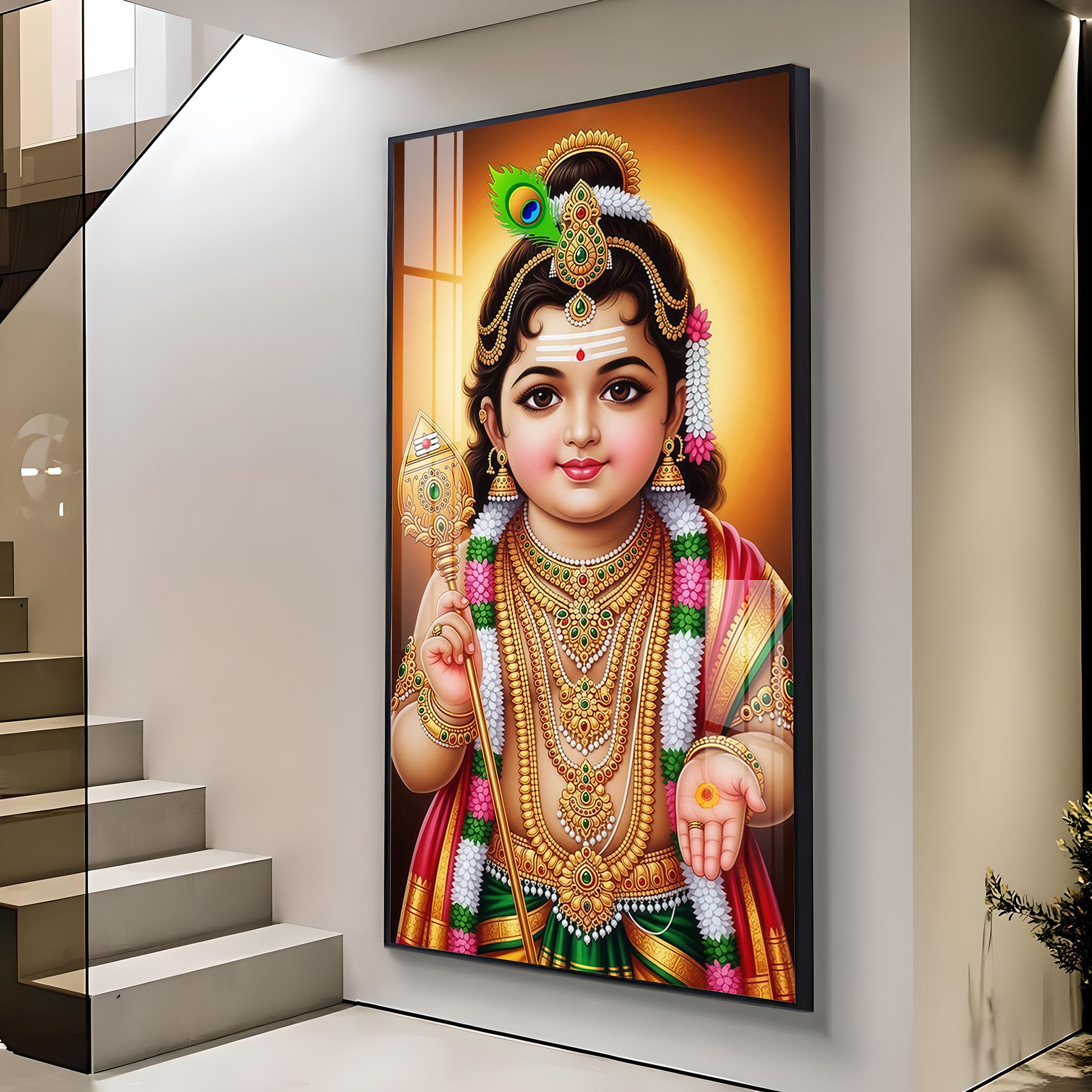 Little Lord Murugan Glass Finish Vertical Wall Art