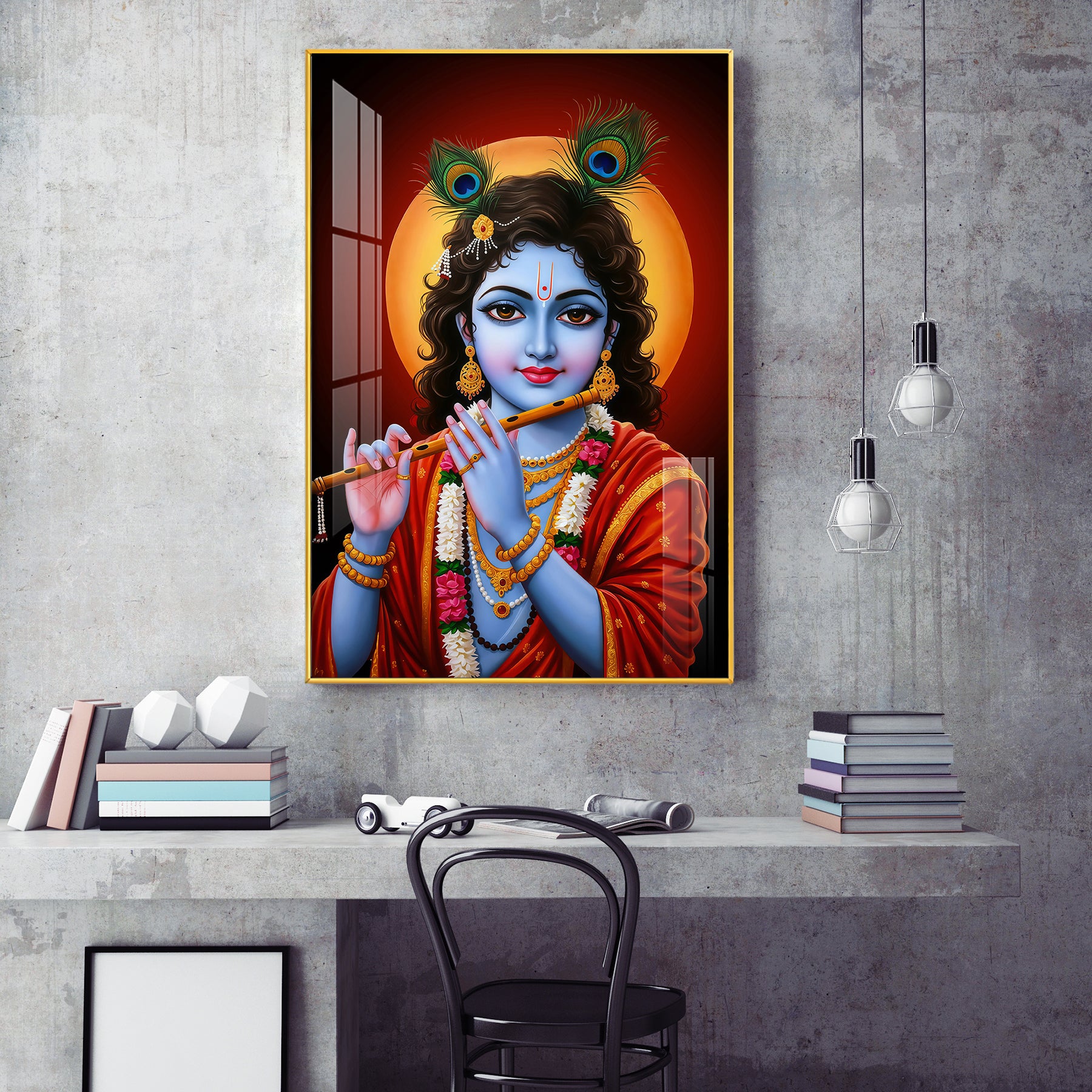 Lord Baby Krishna Glass Finish Vertical Wall Art