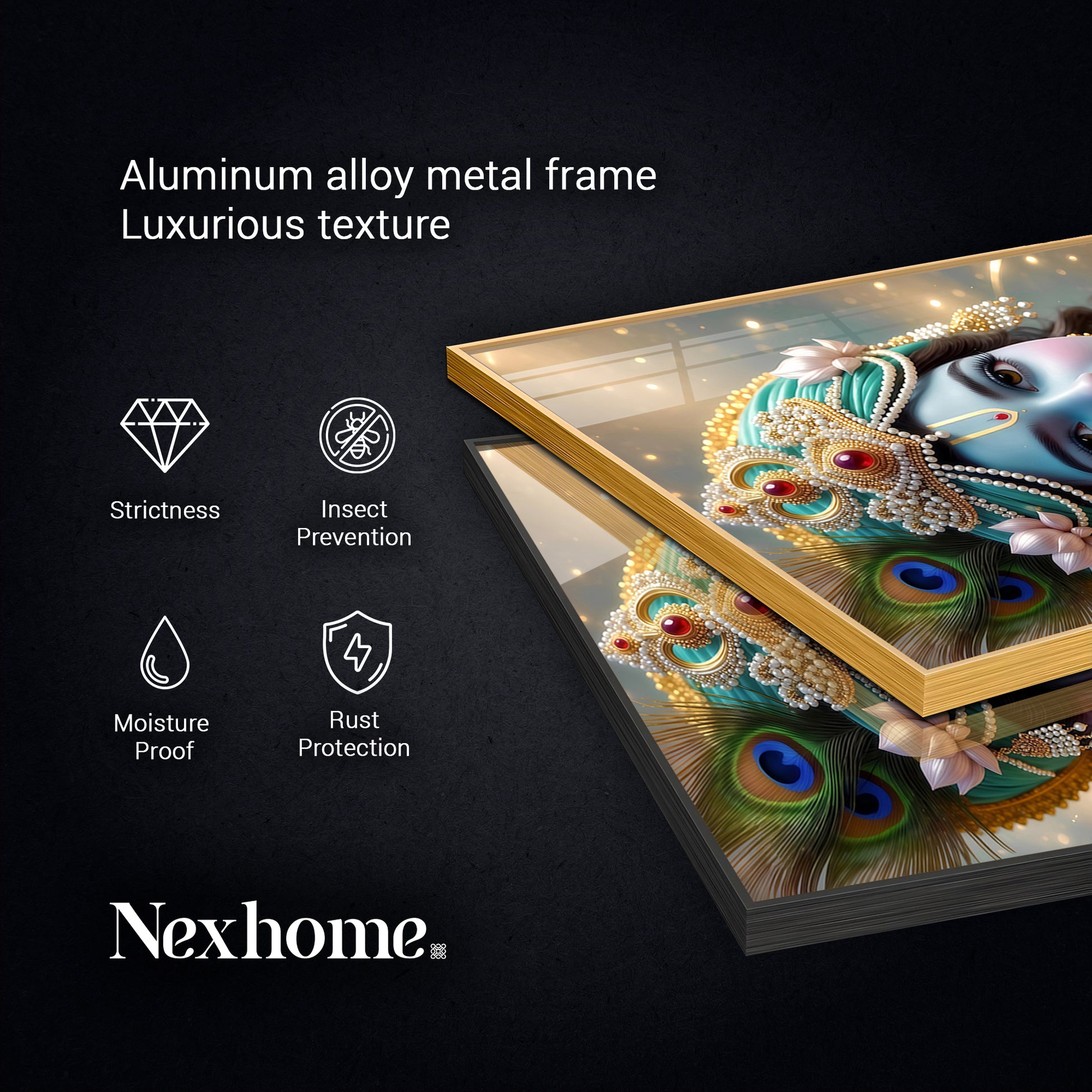 Lord Jai Shri Krishna Glass Finish Vertical Wall Art