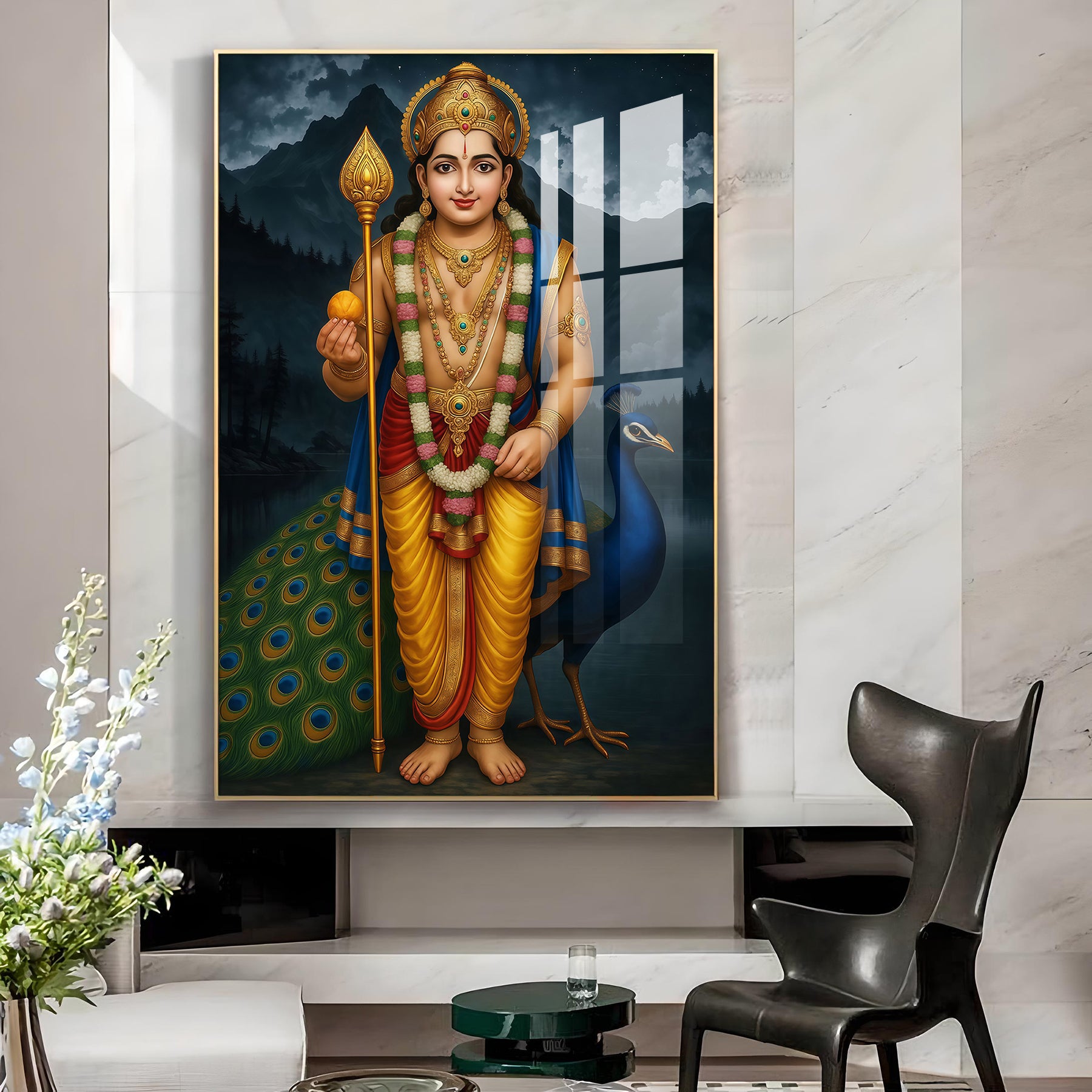 Lord Kartikeya Glass Finish Vertical Wall Art