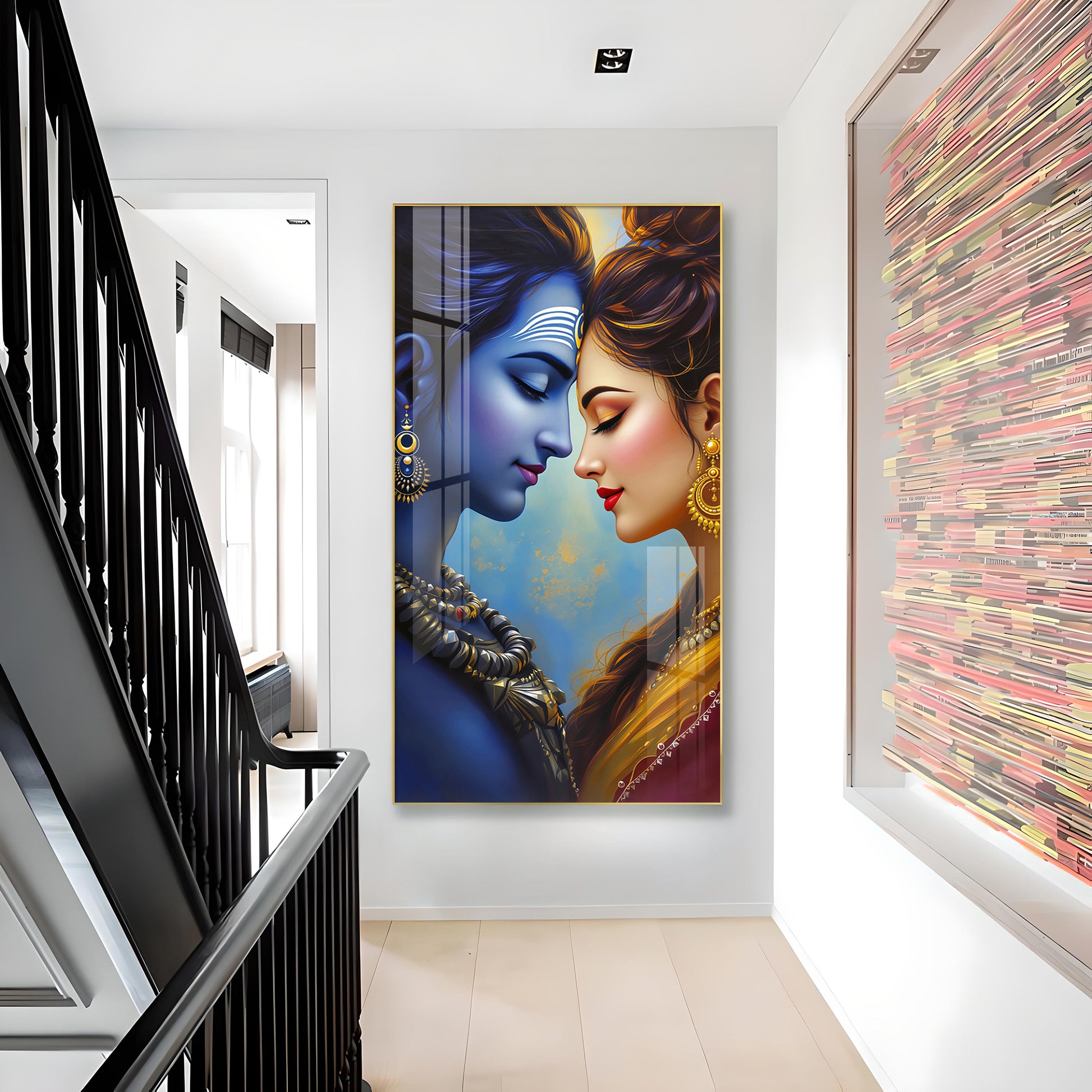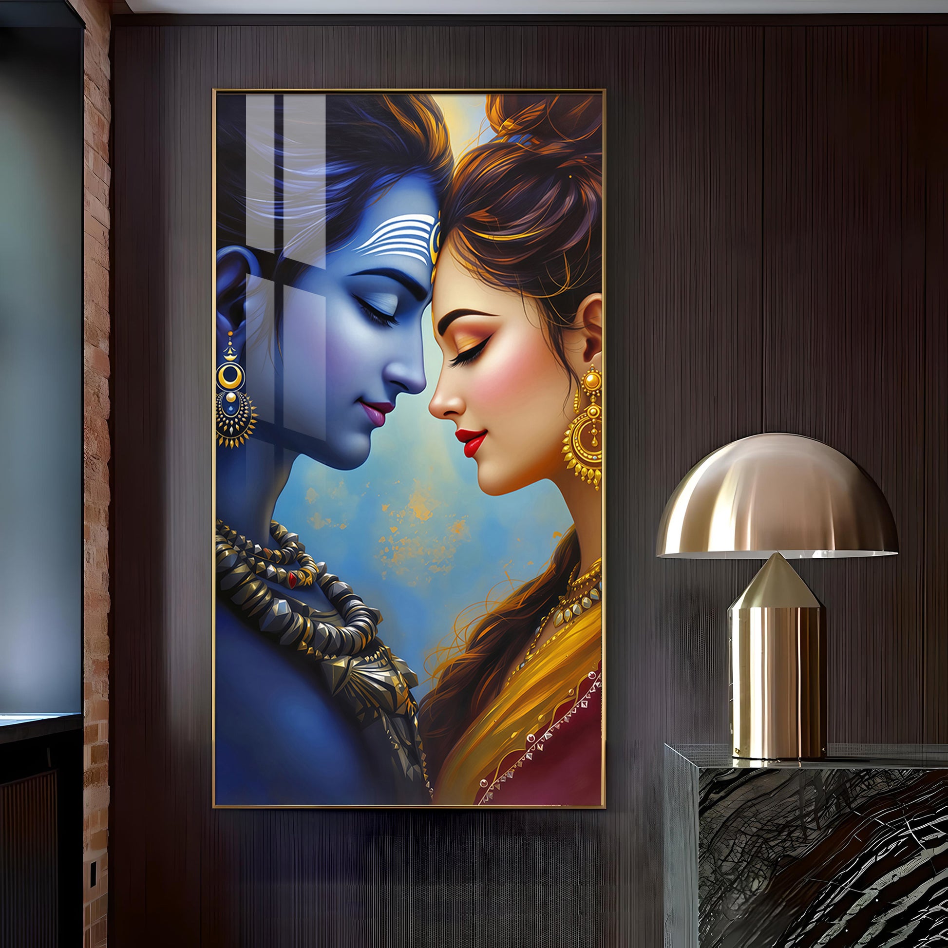 Lord Shiva and Goddess Parvati Glass Finish Vertical Wall Art