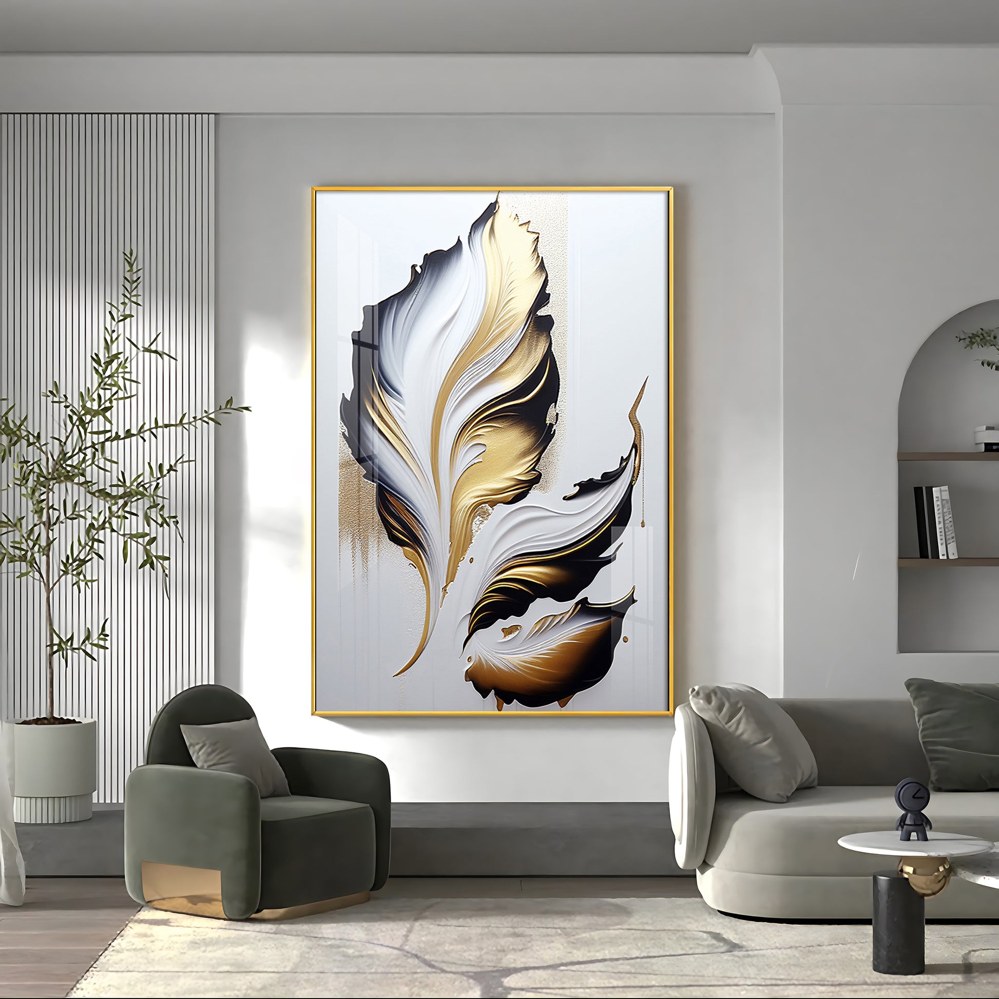 Luxe Leaf Art Glass Finish Vertical Wall Art