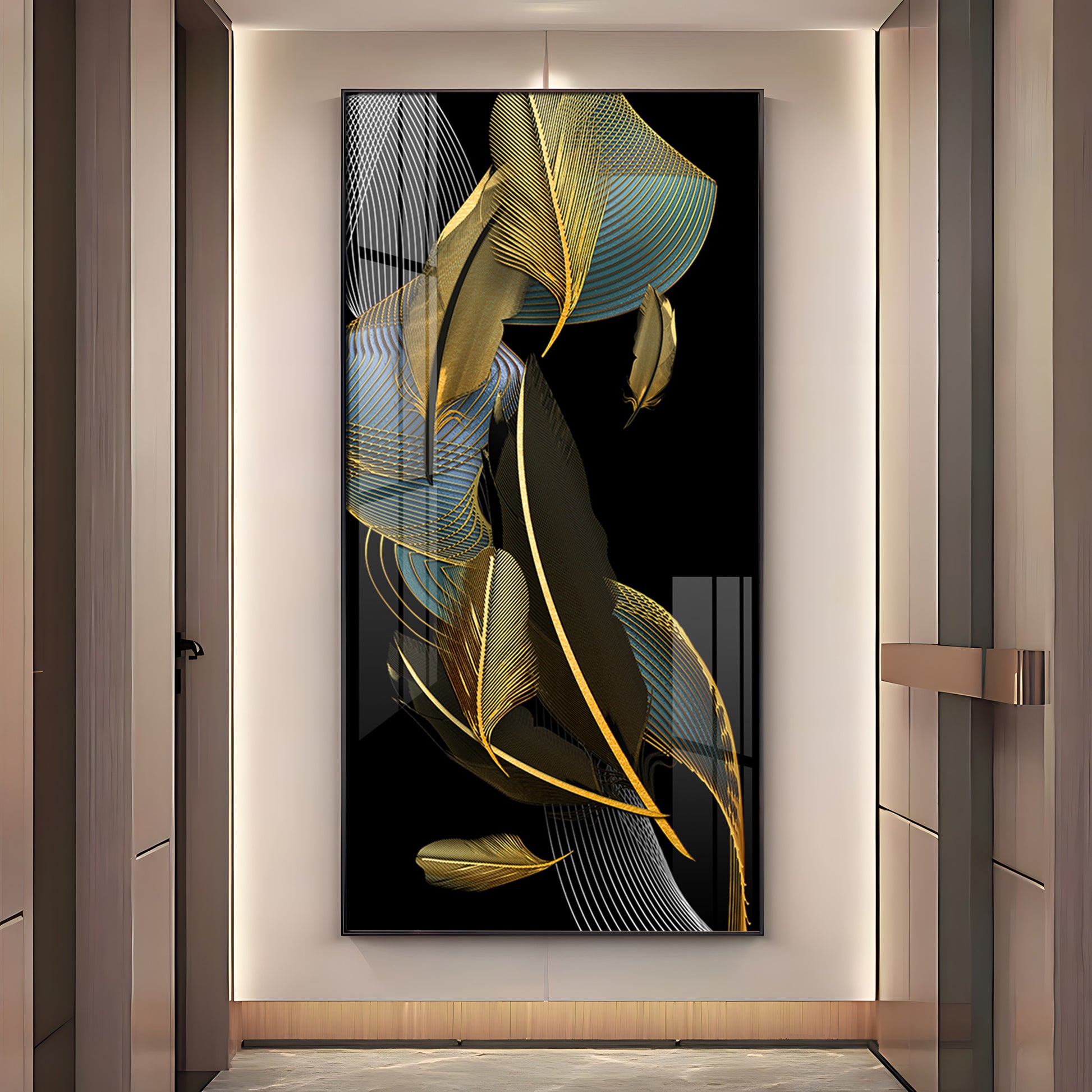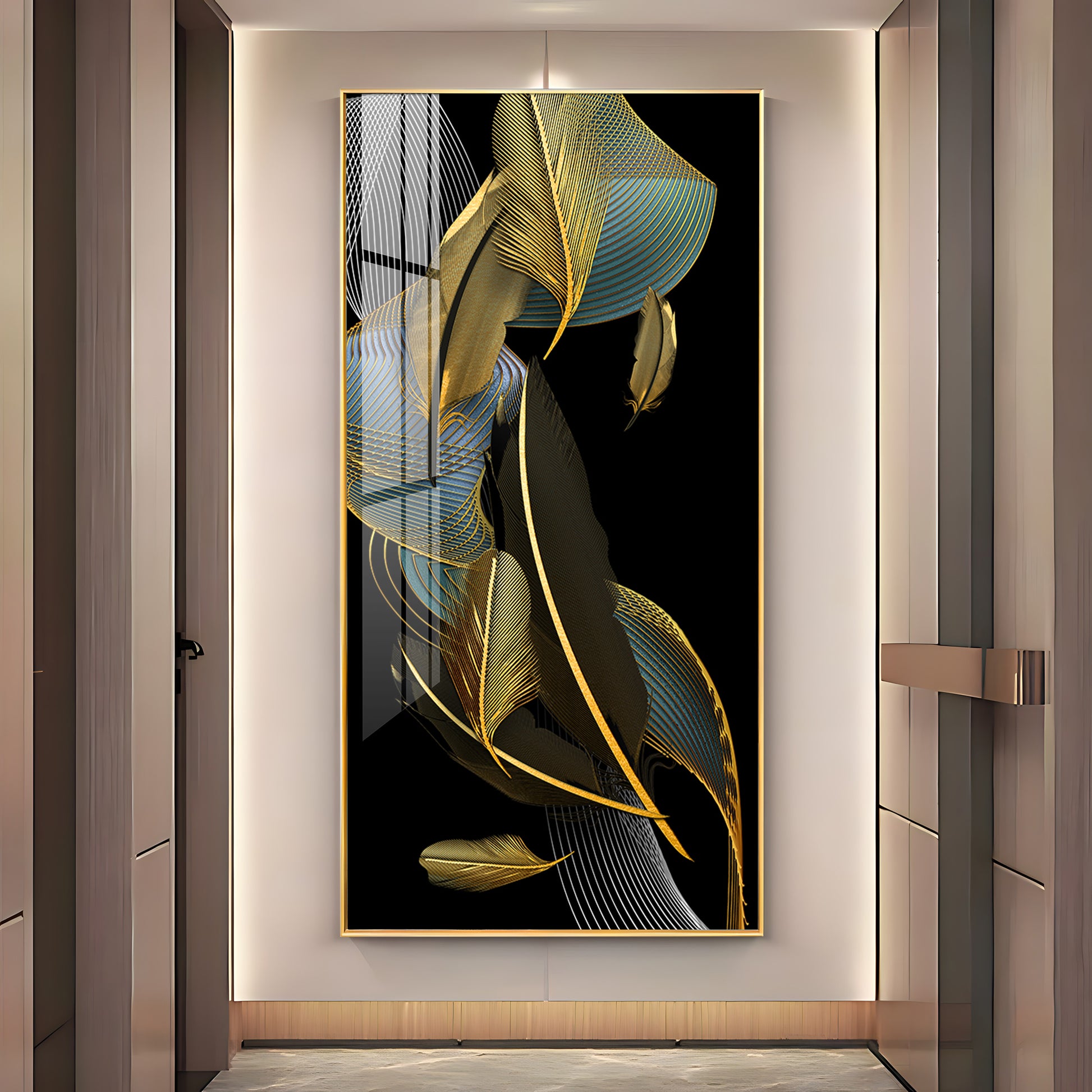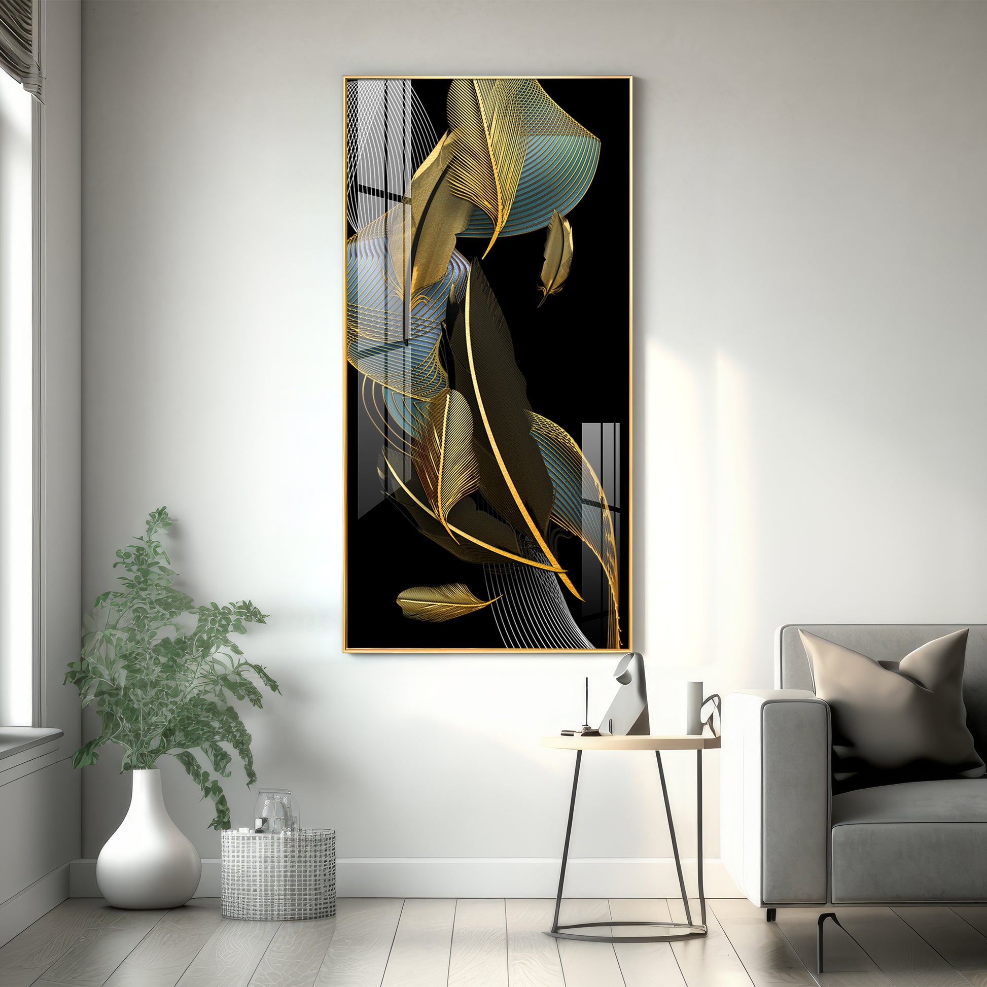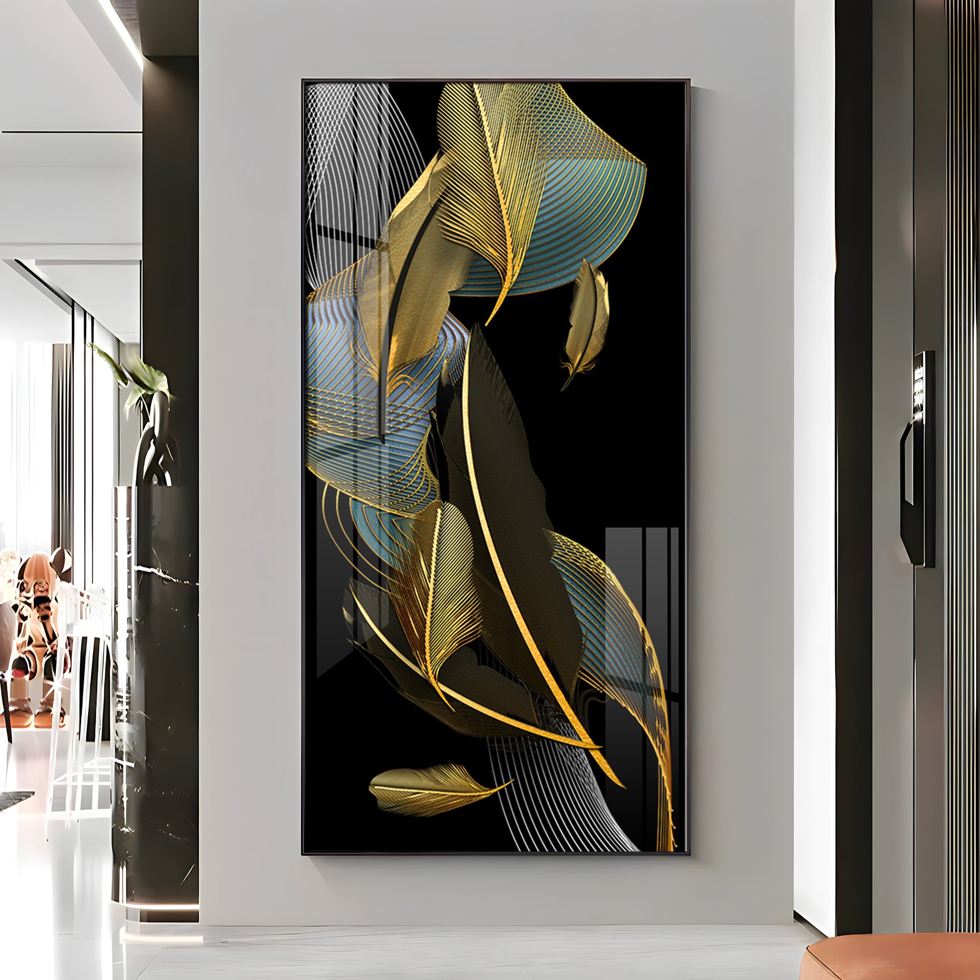 Luxe Leaf Dance Glass Finish Vertical Wall Art