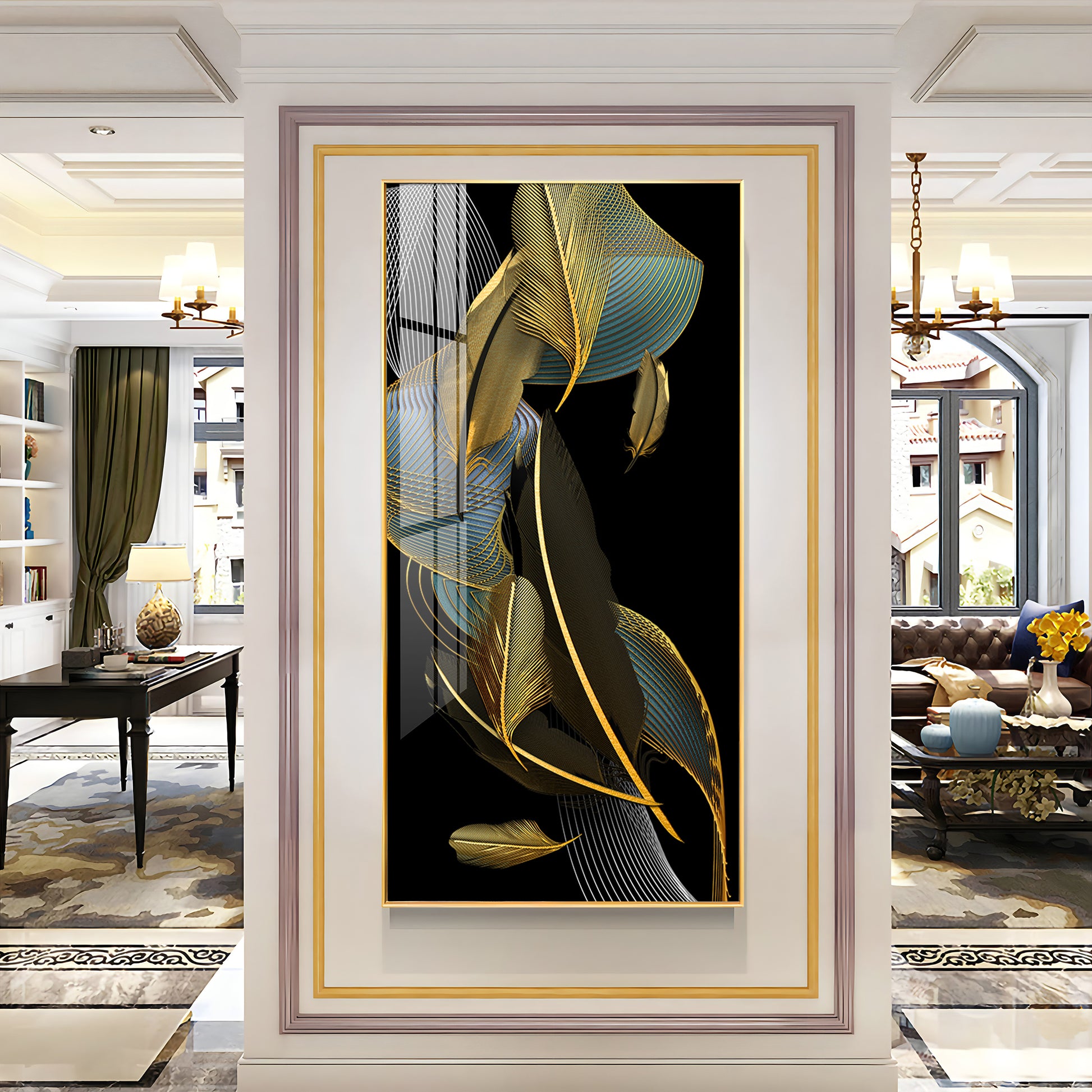 Our Framed glass finish wall art is easy to hang. The metal hooks are included in the box of your ordered wall art. You can simply mount it to the wall you want to place.