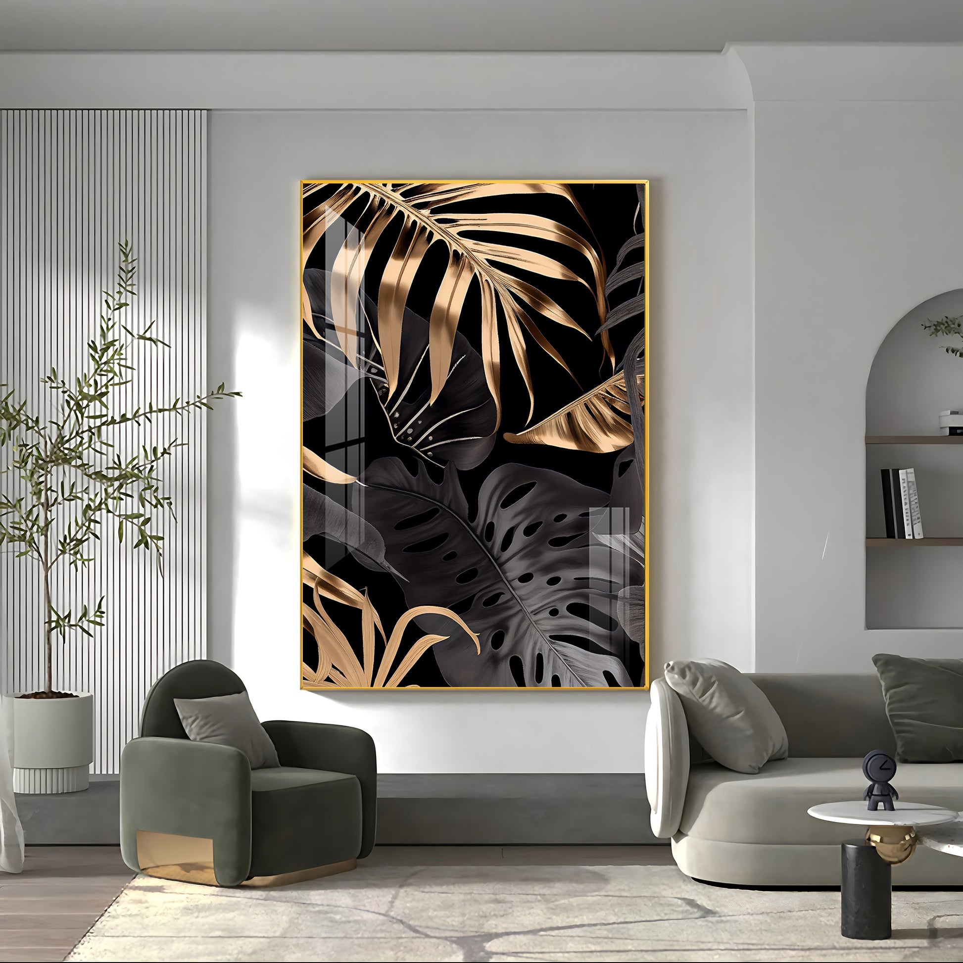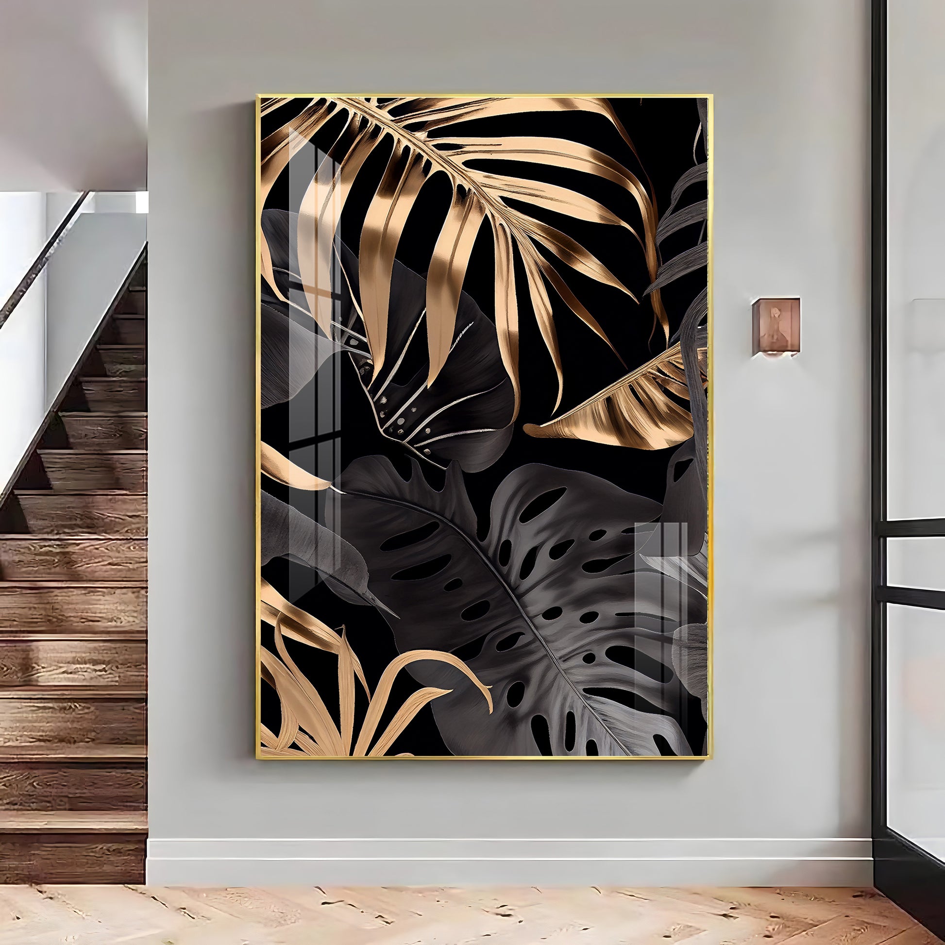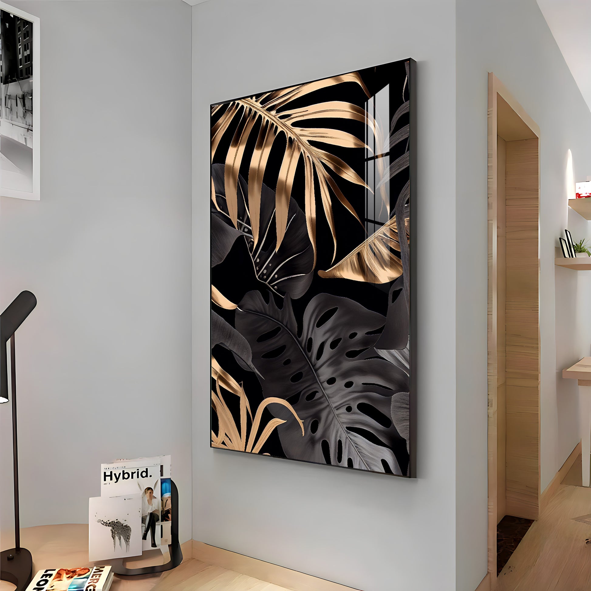 LuxeLeaf Glass Finish Vertical Wall Art