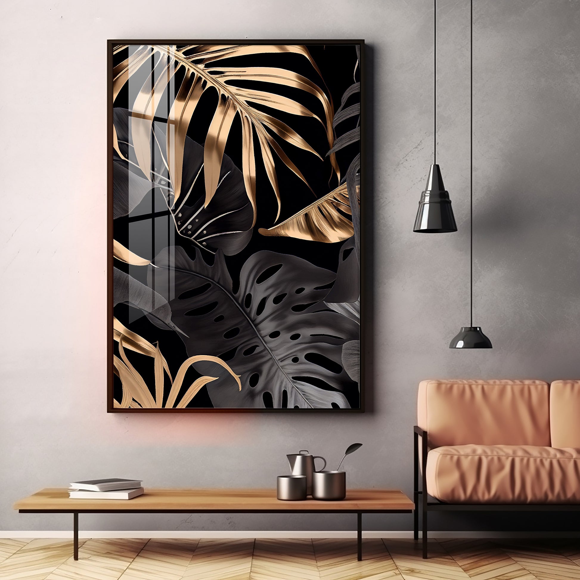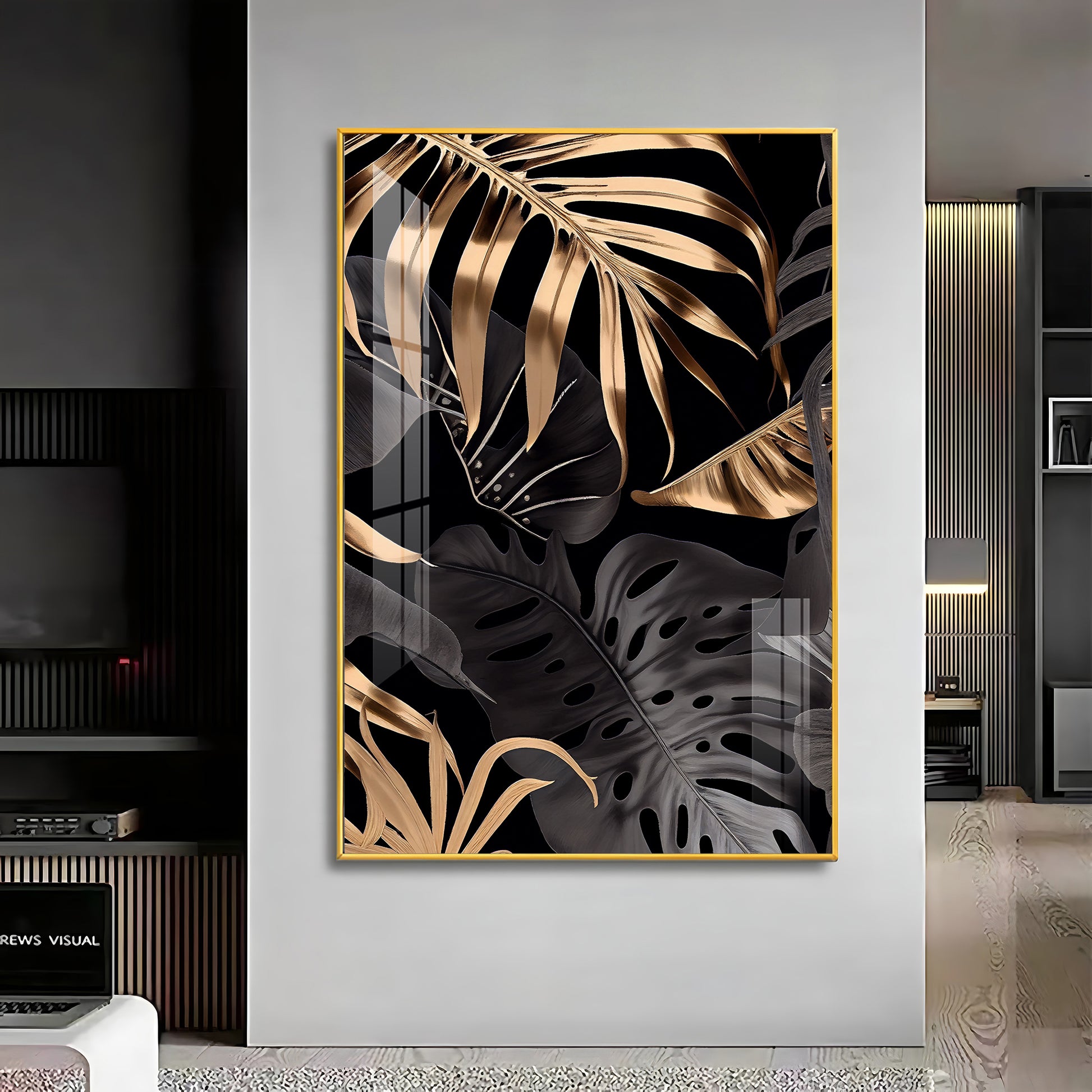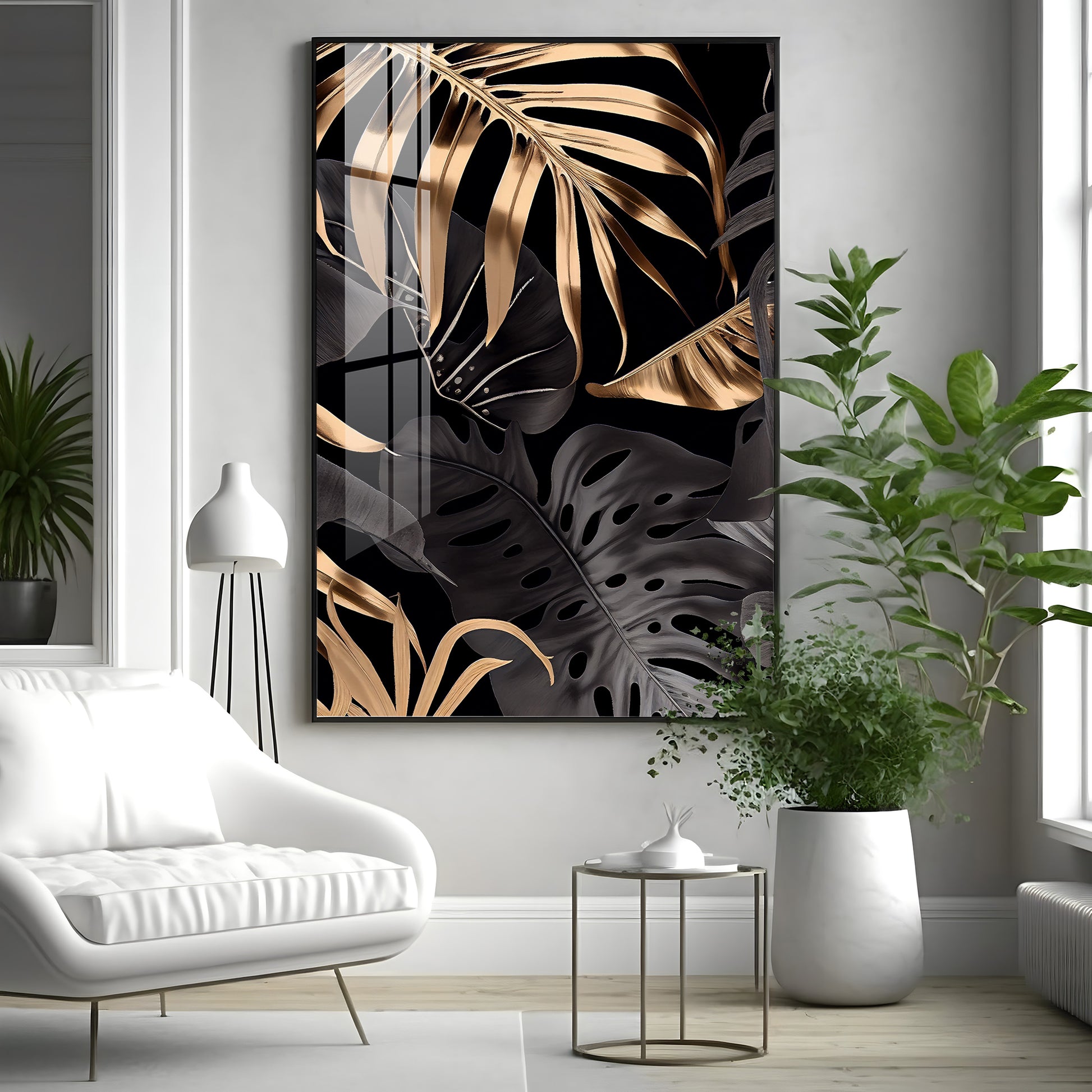LuxeLeaf Glass Finish Vertical Wall Art