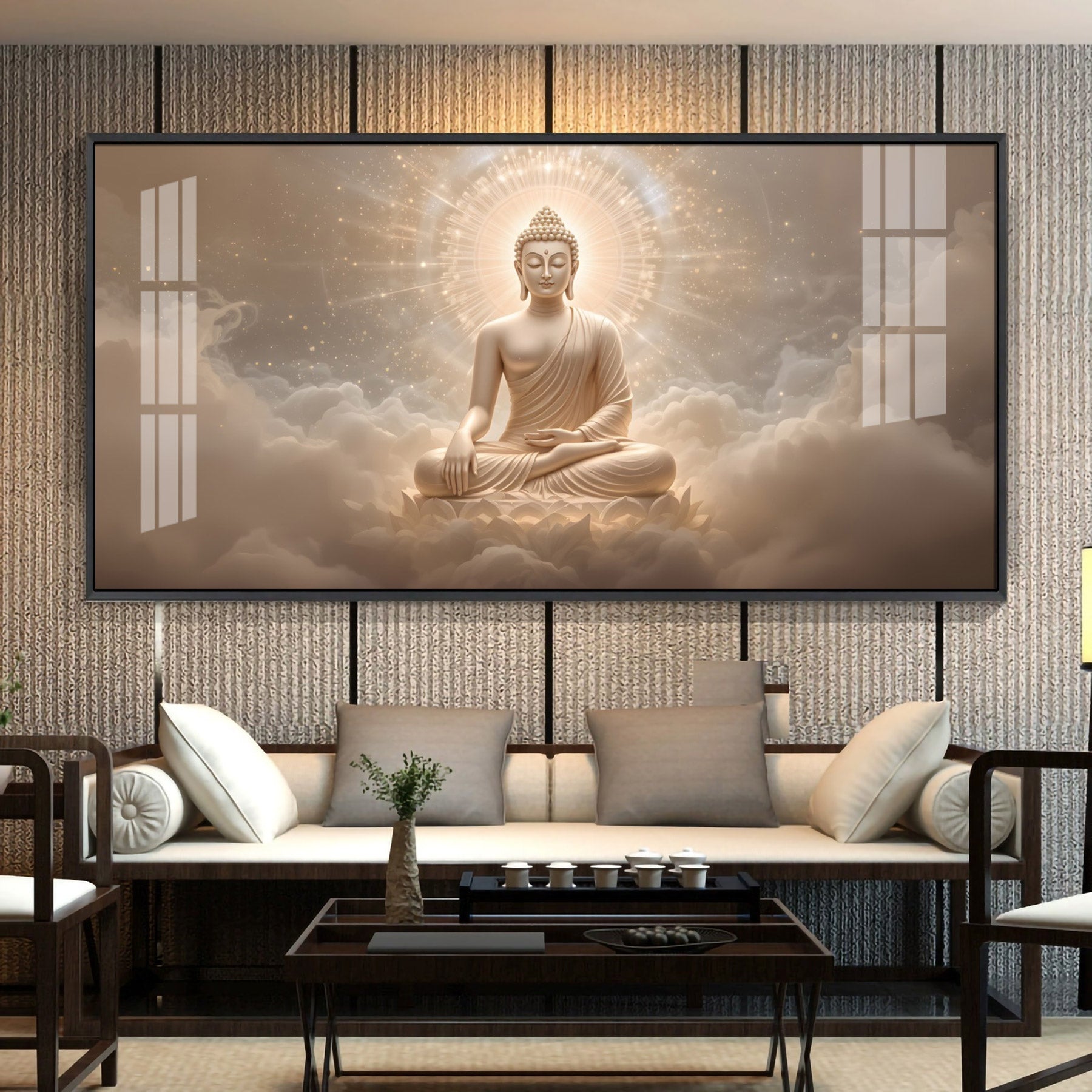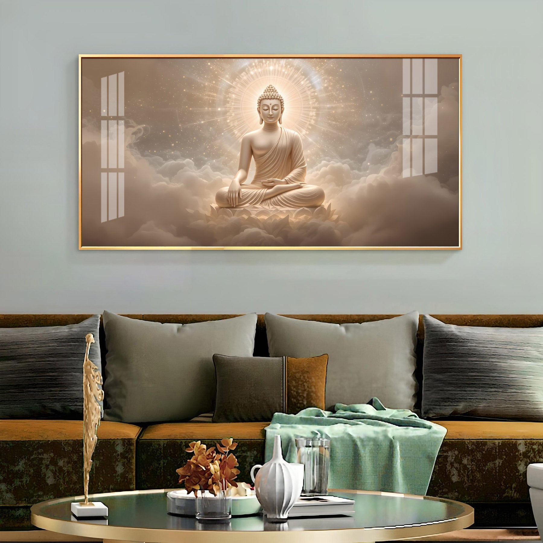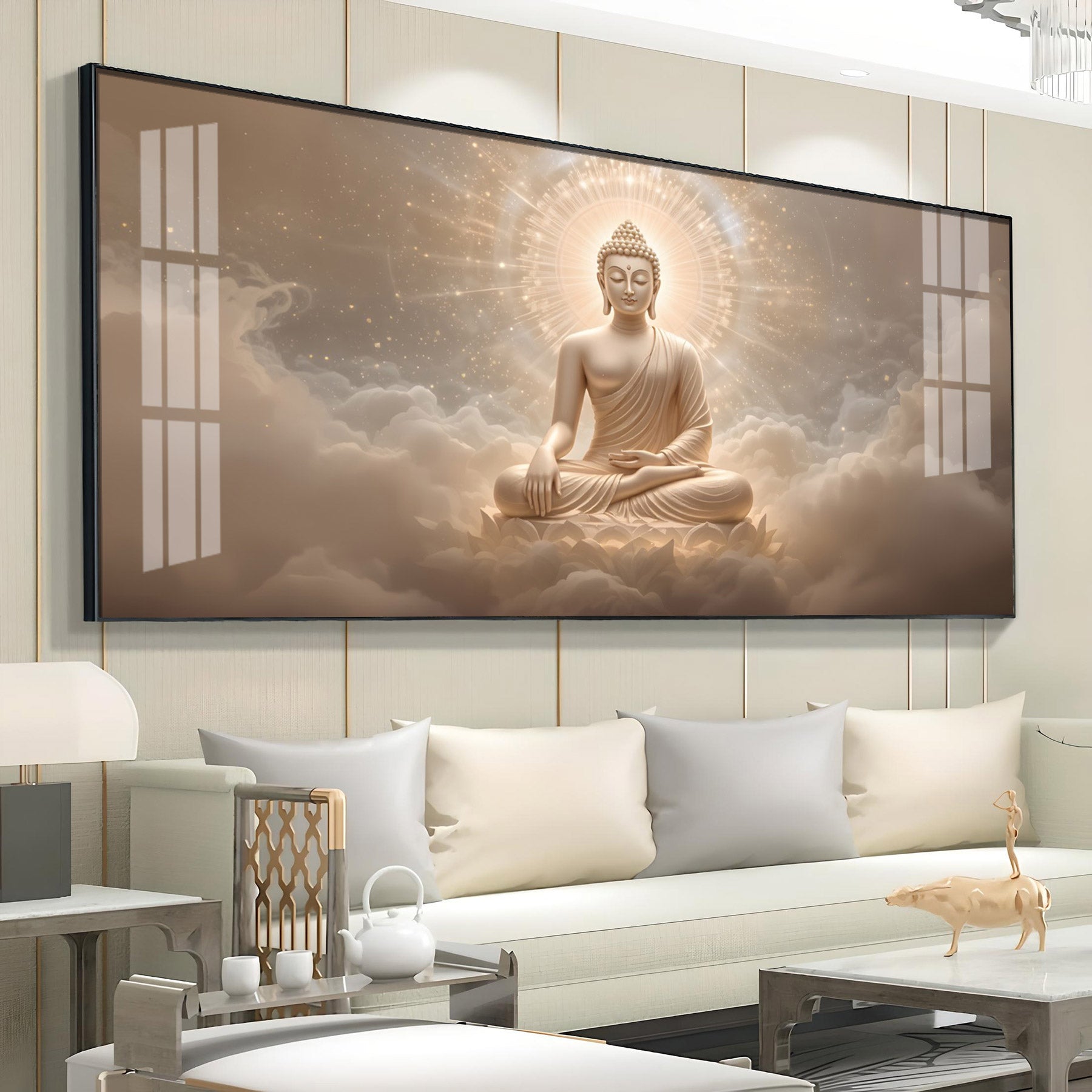 Majestic Buddha Aura Glass Finish Horizontal Wall Art