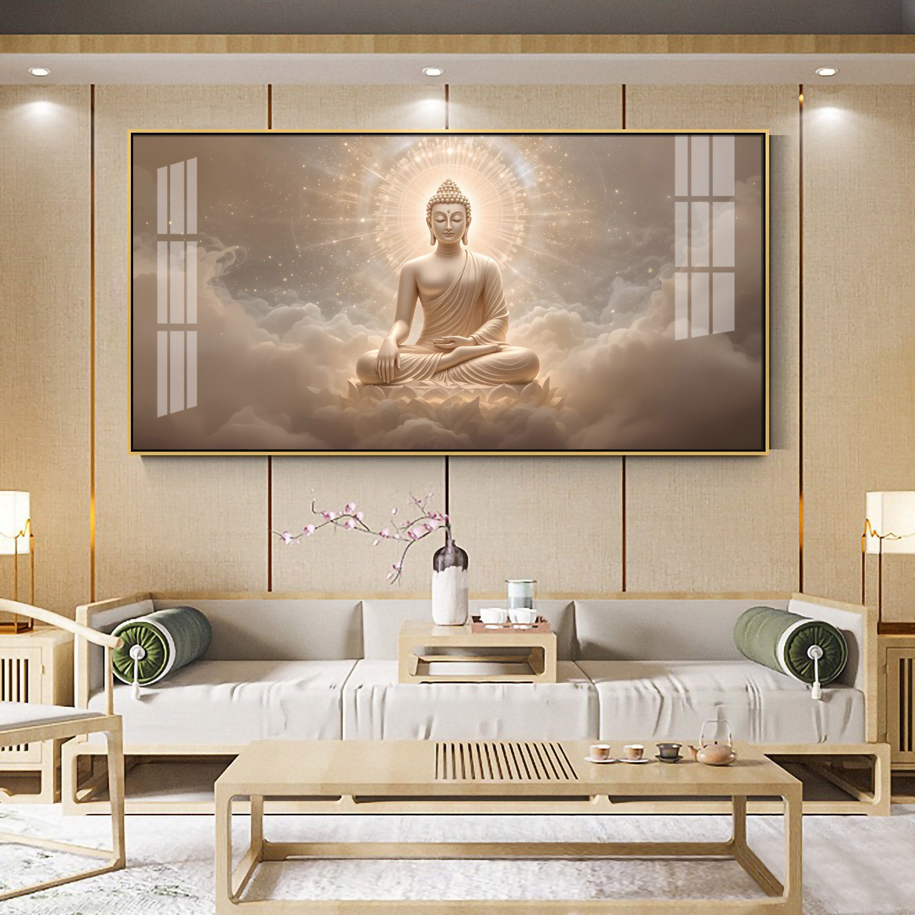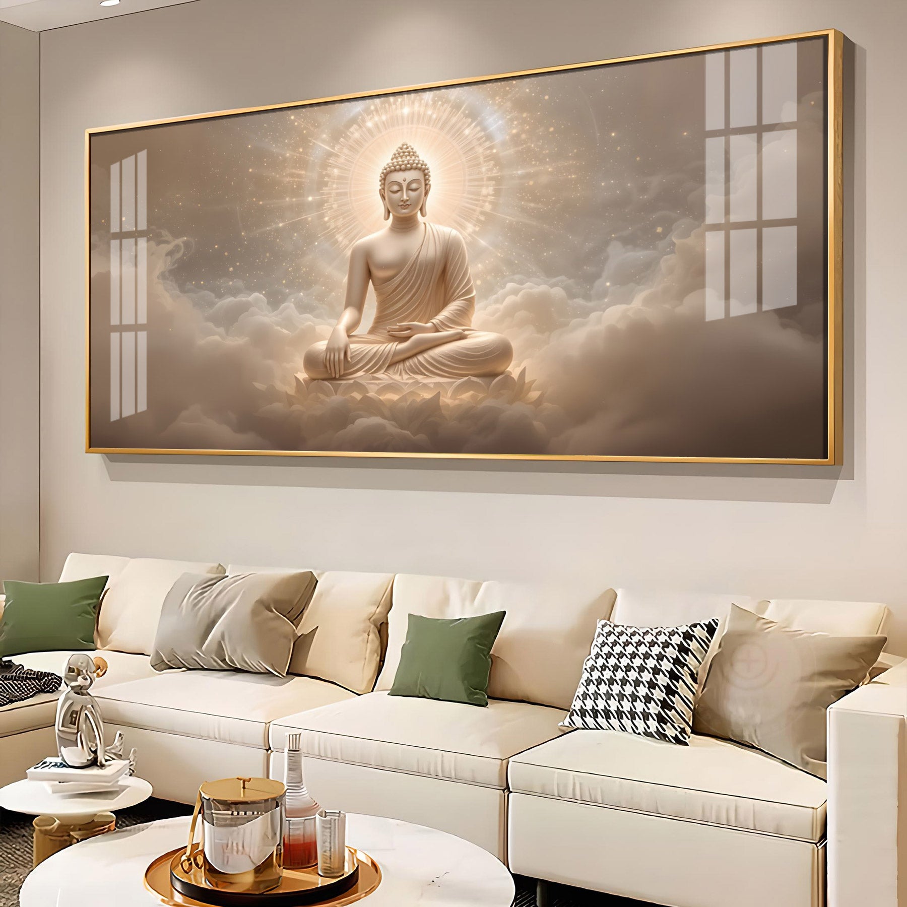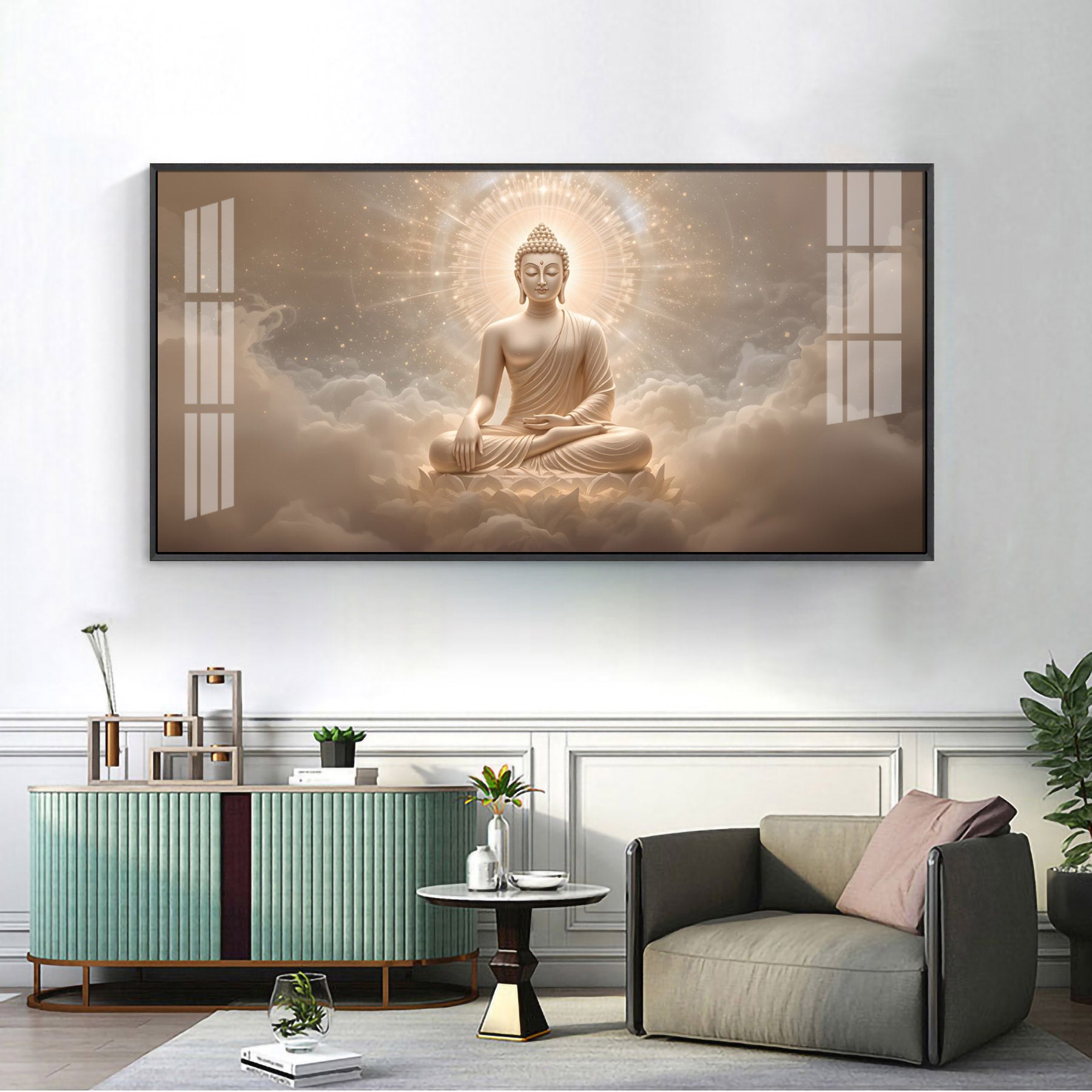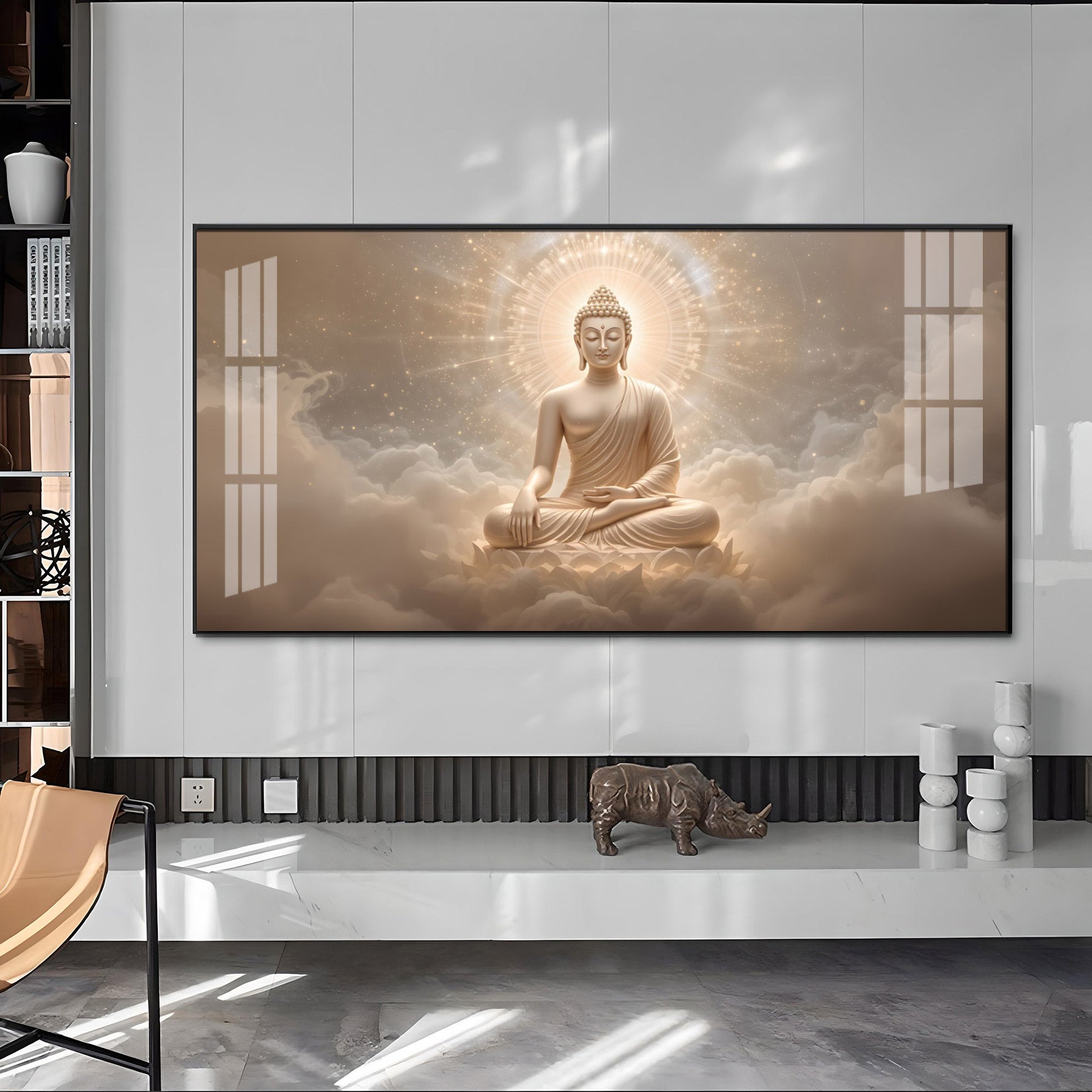 Majestic Buddha Aura Glass Finish Horizontal Wall Art