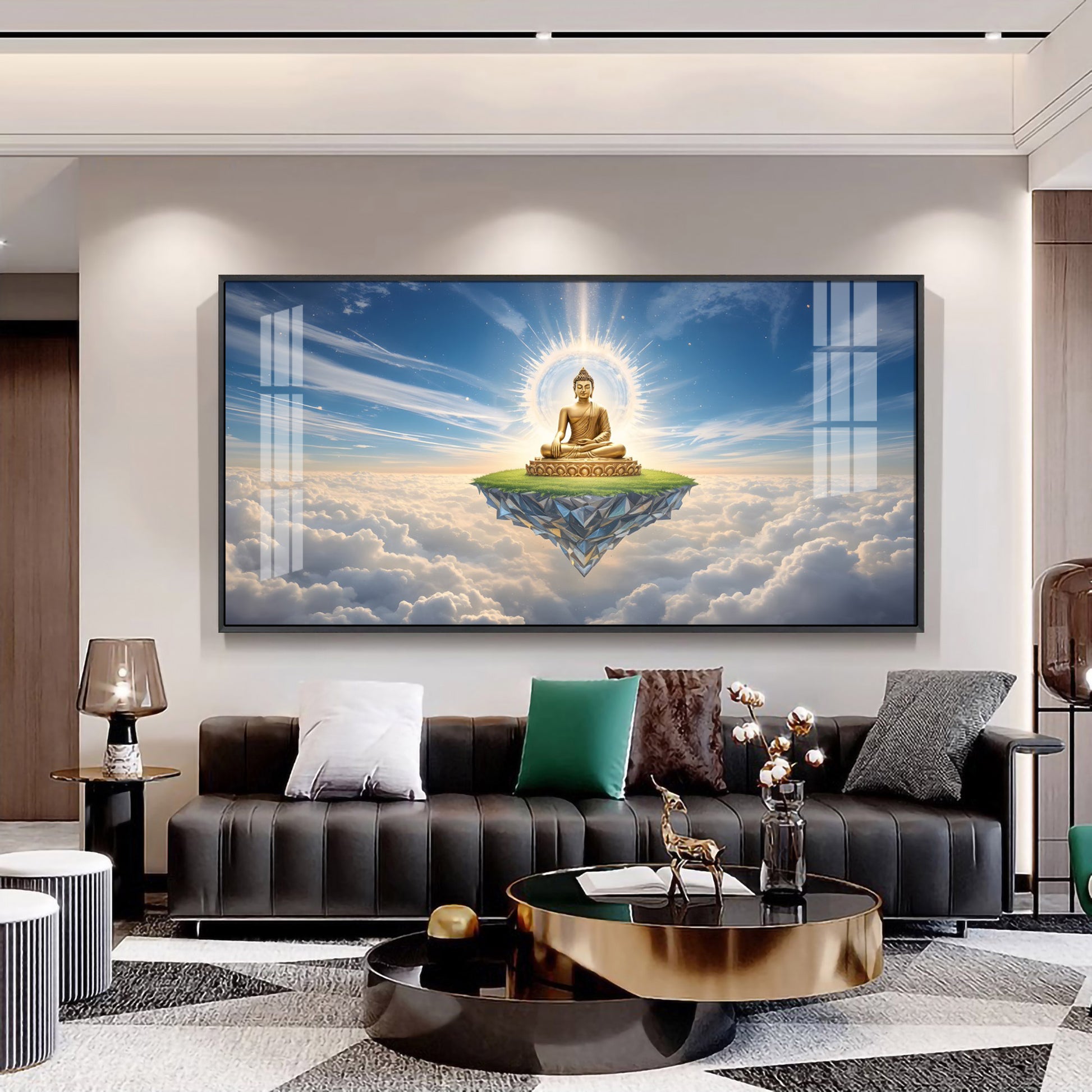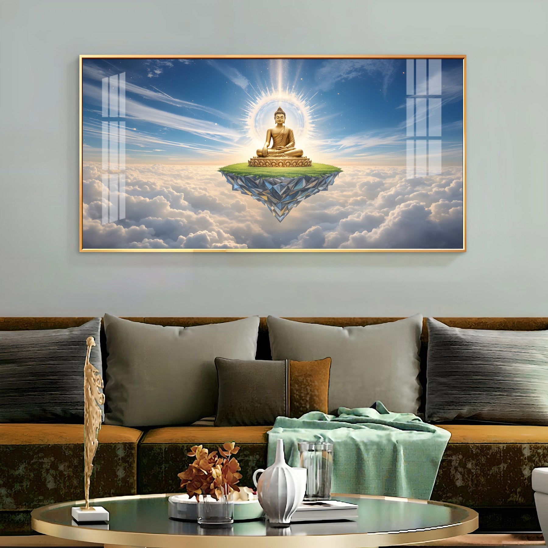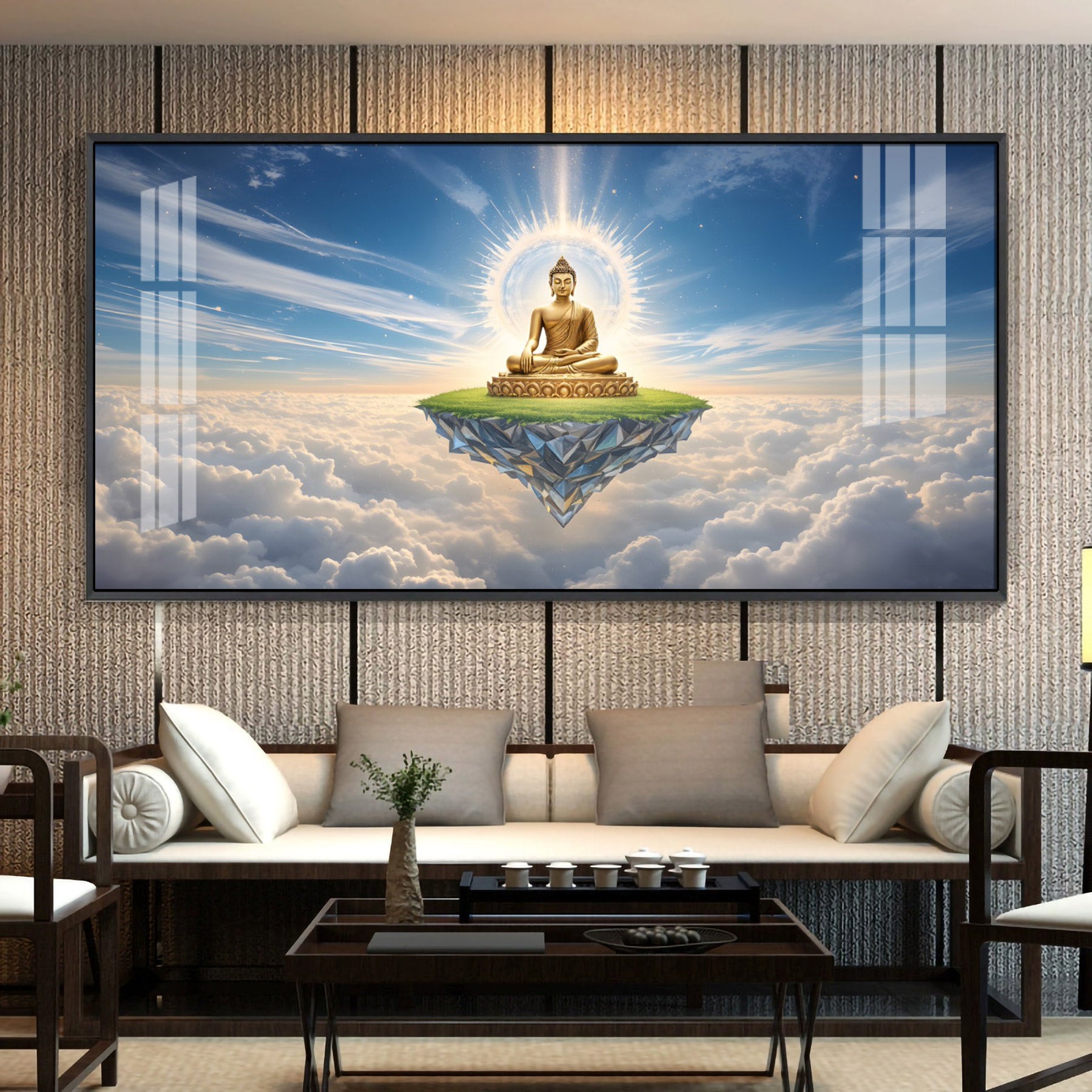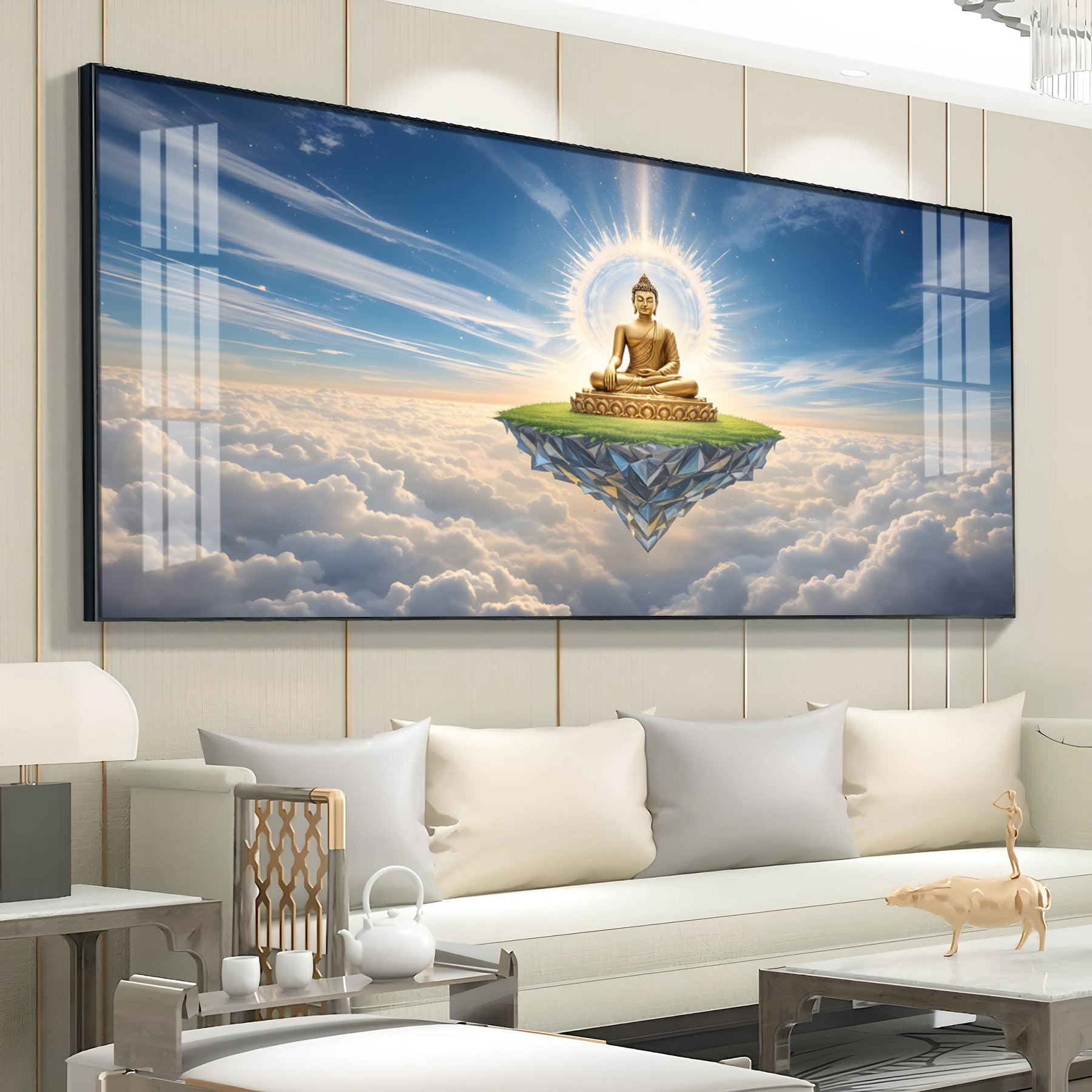 Majestic Buddha In Cloud Glass Finish Horizontal Wall Art