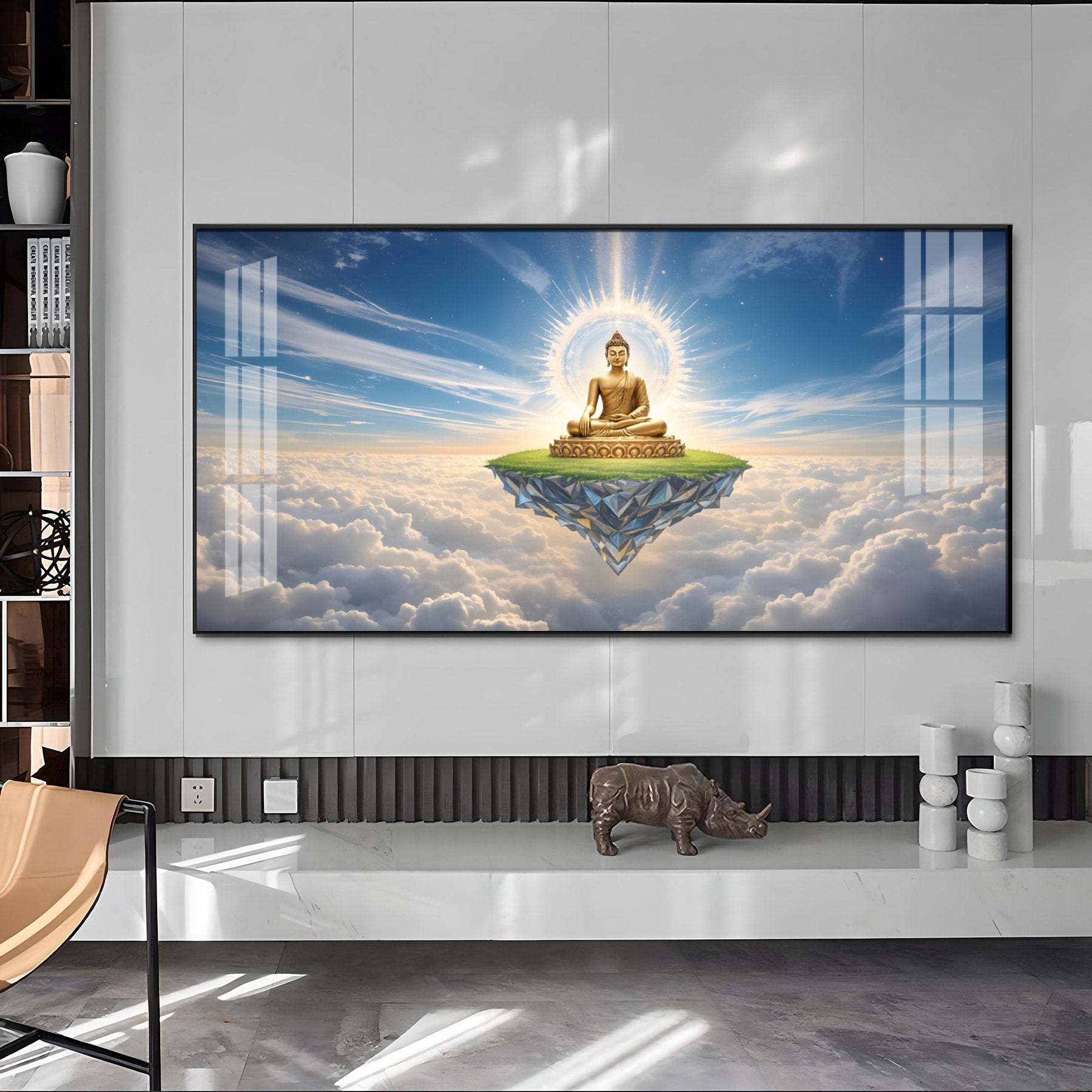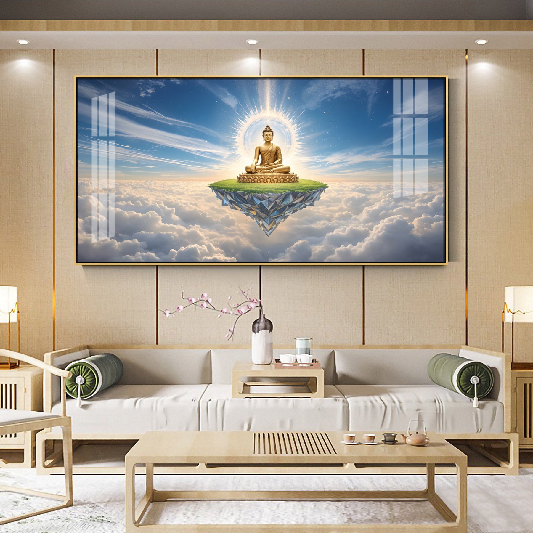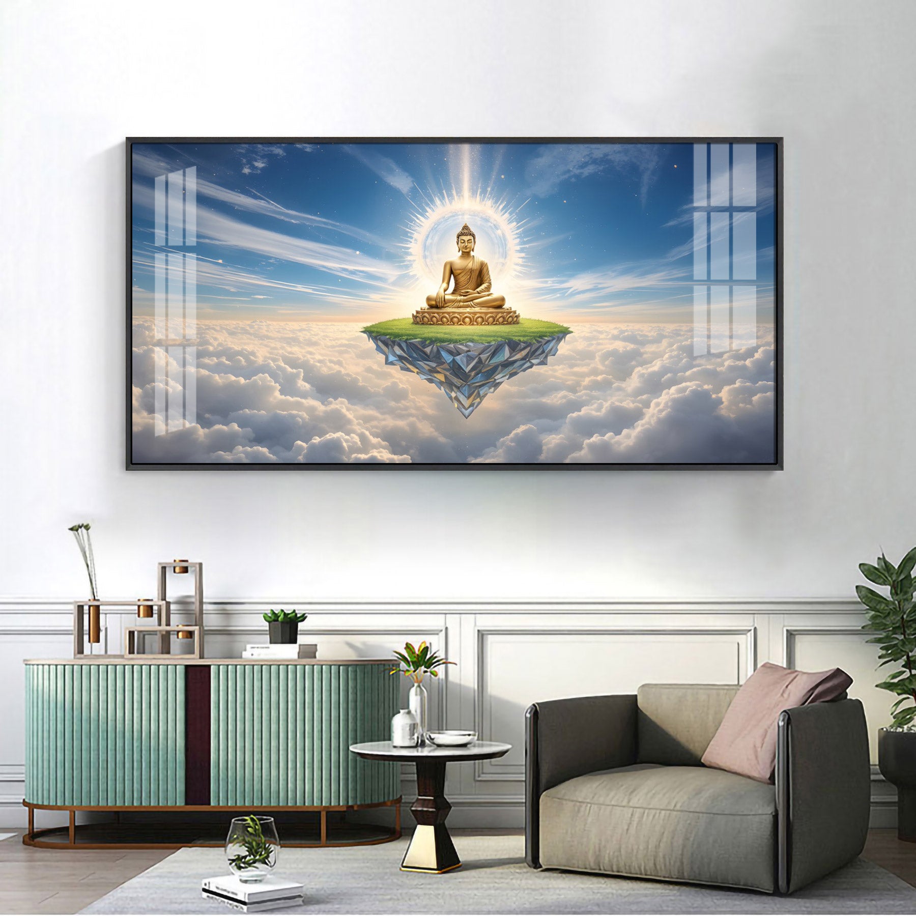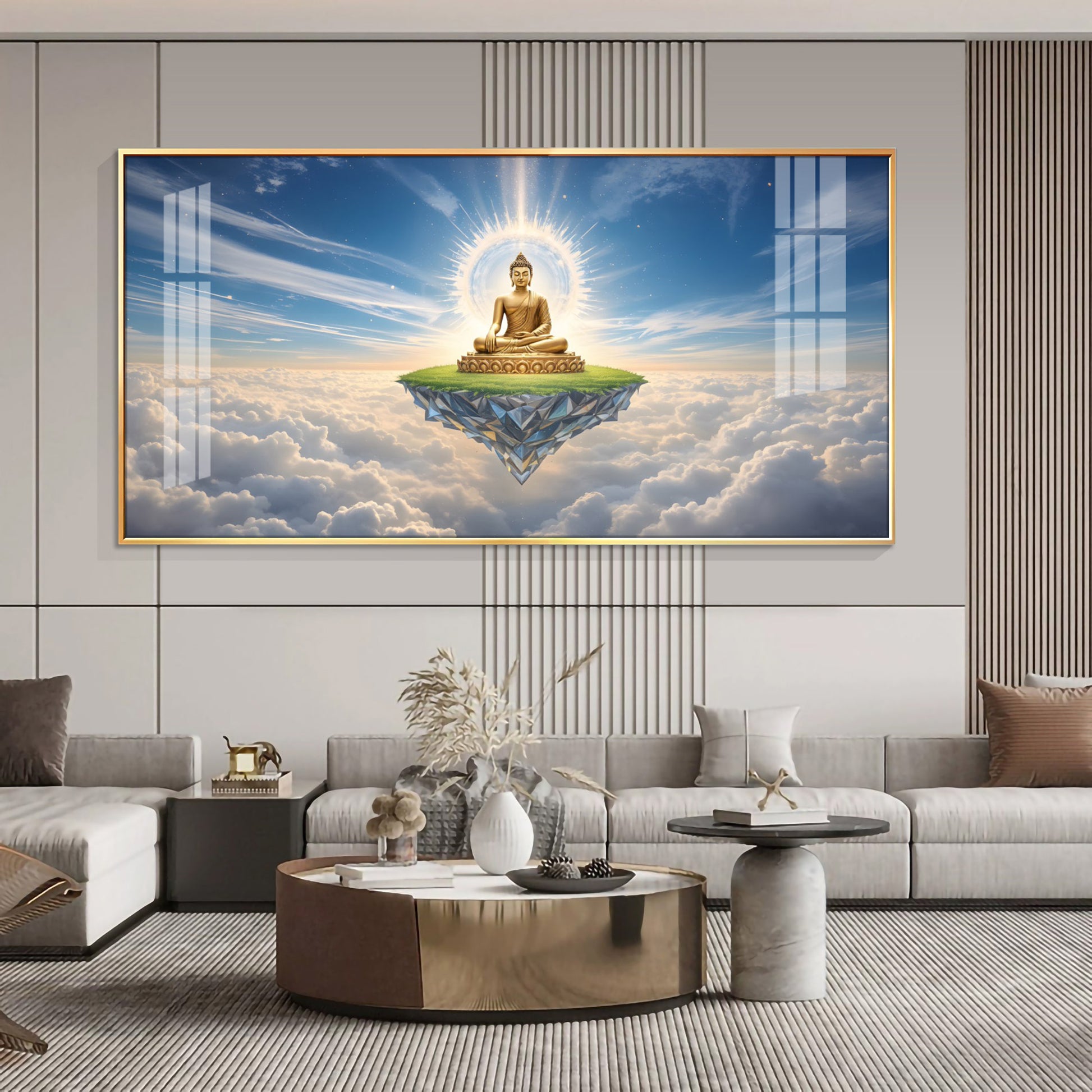 Majestic Buddha In Cloud Glass Finish Horizontal Wall Art