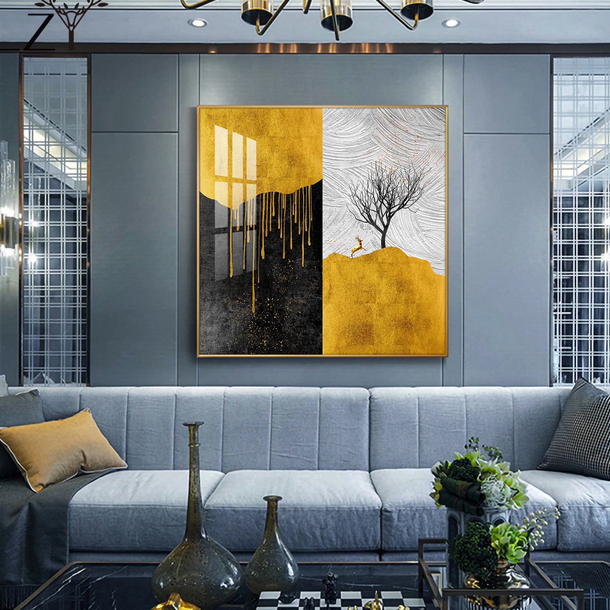 Majestic Tree Glass Finish Square Wall Art