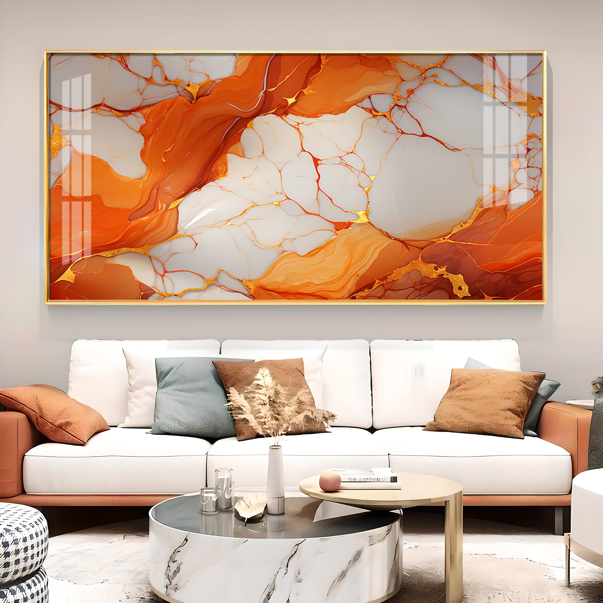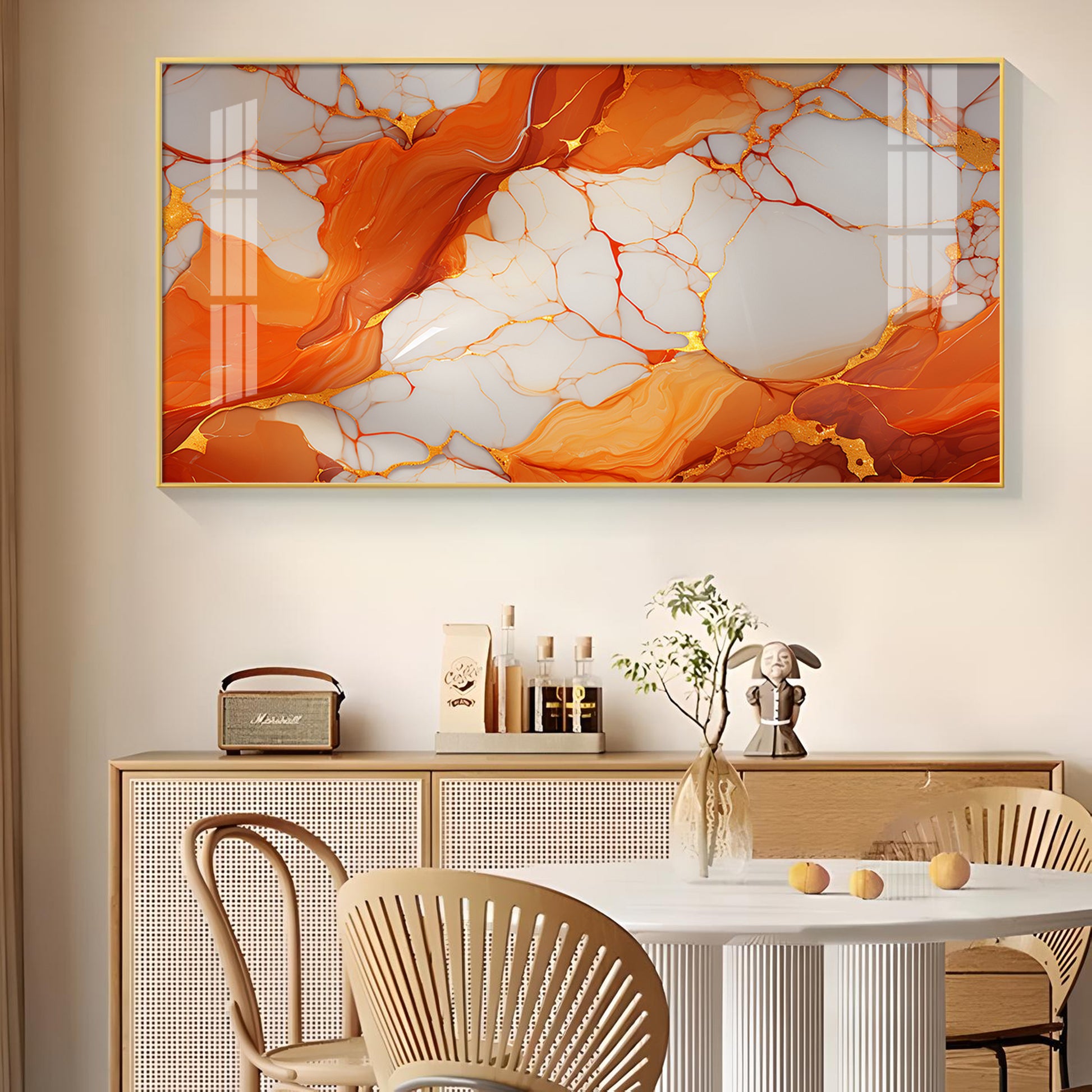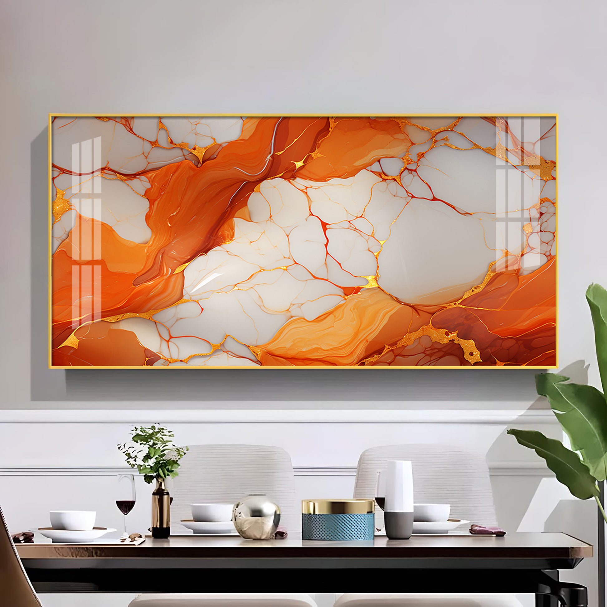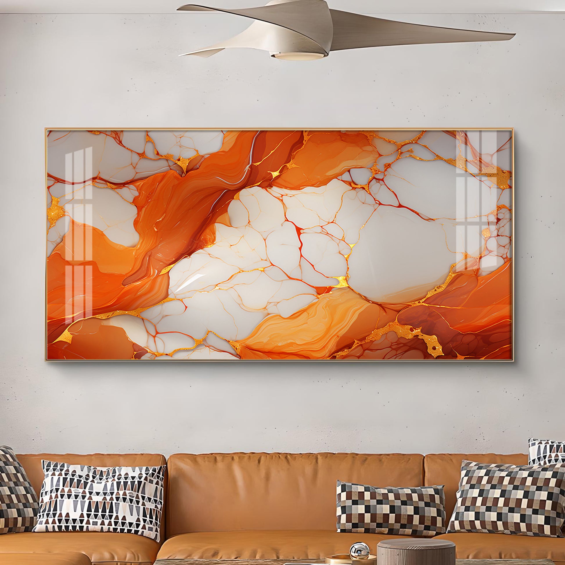 Marble Ink Orange Glass Finish Horizontal Wall Art