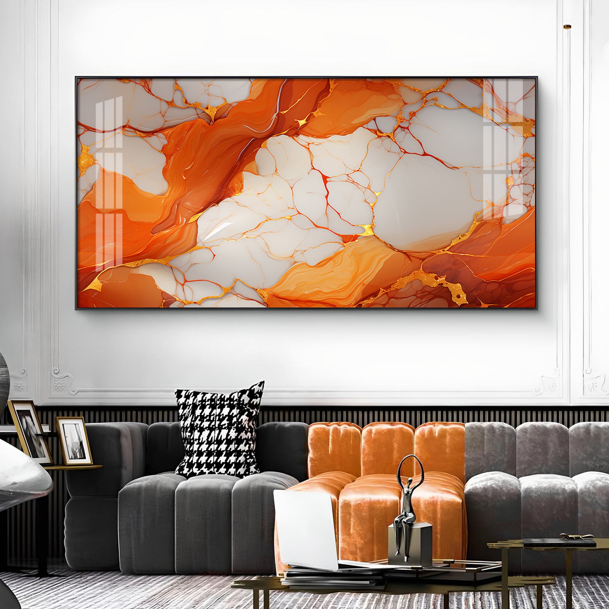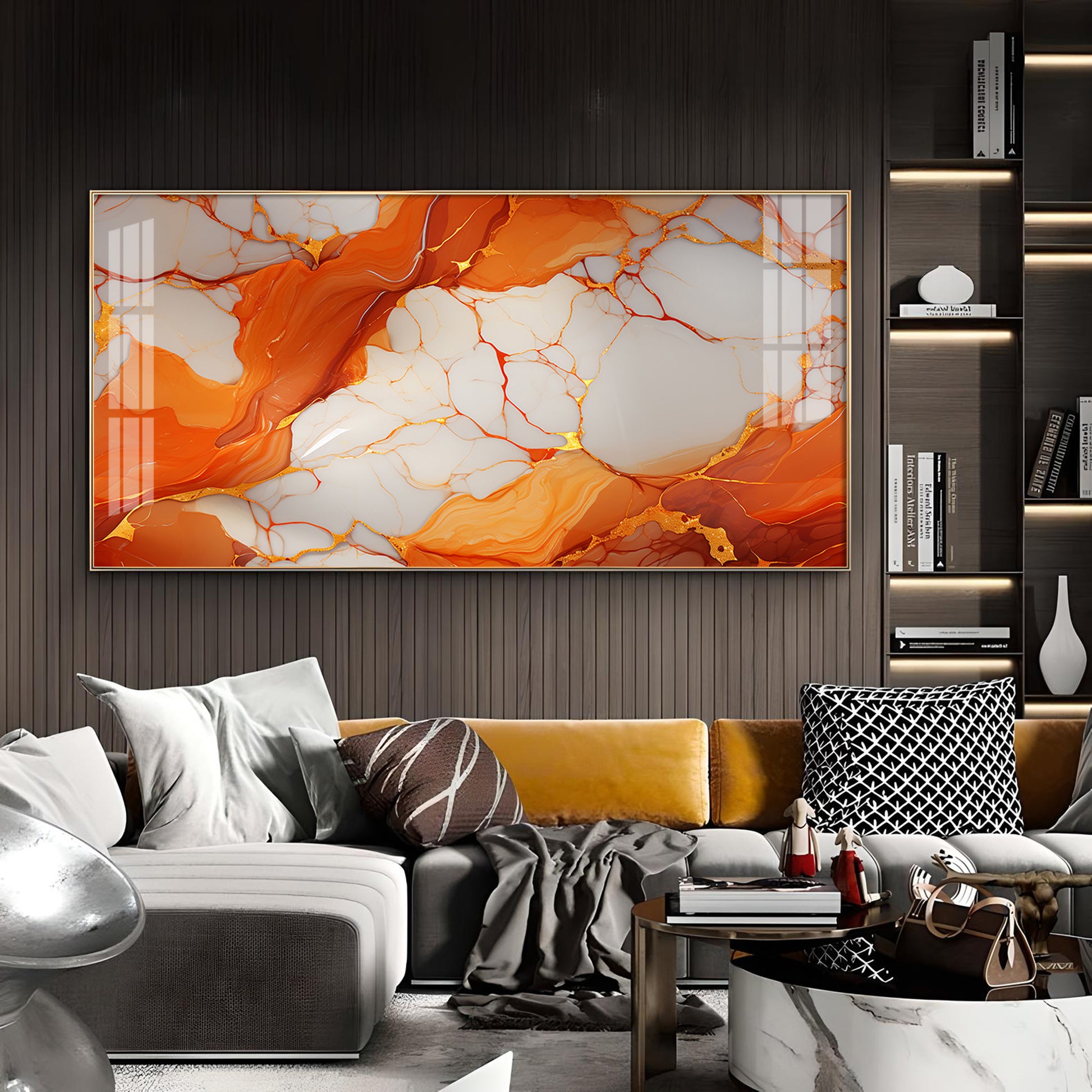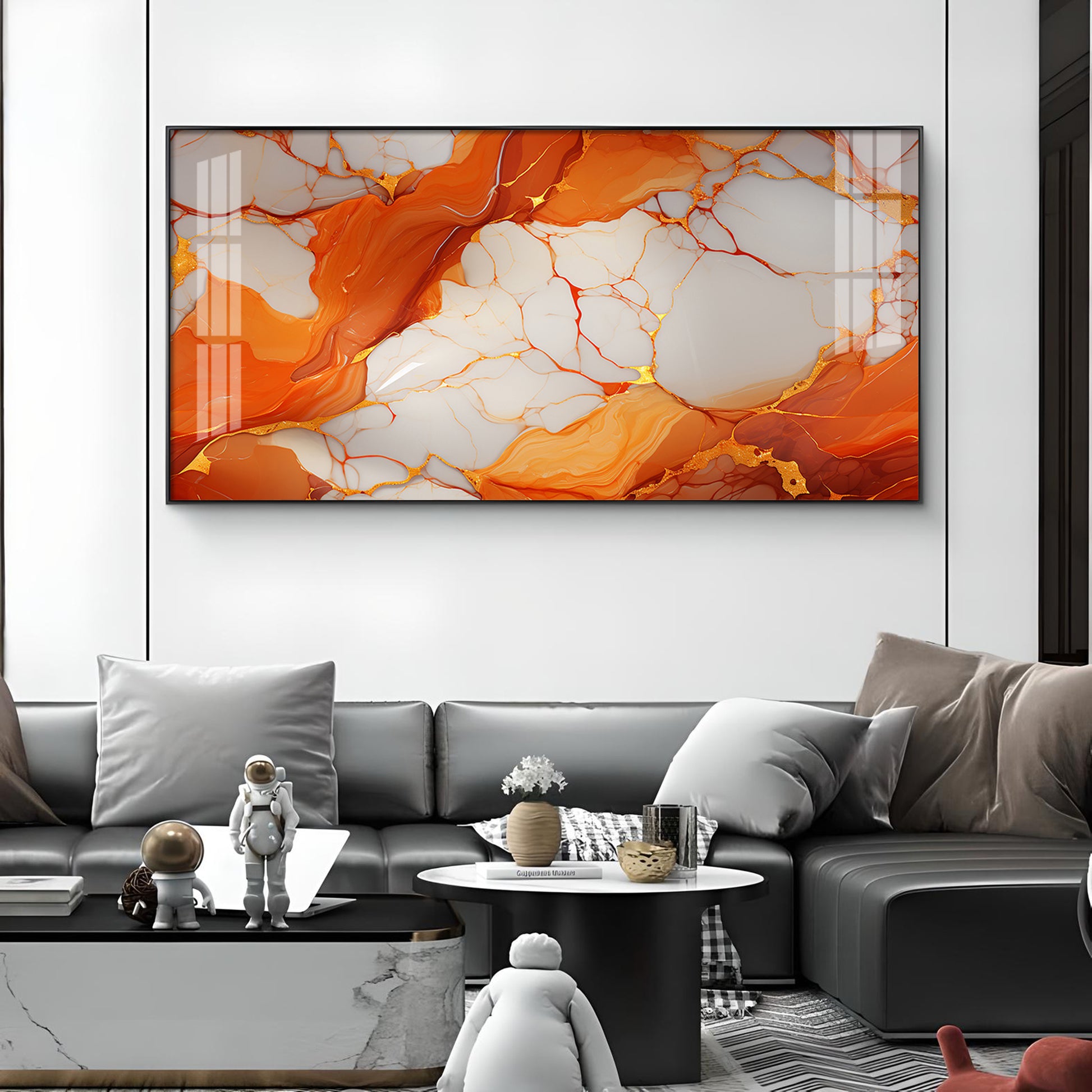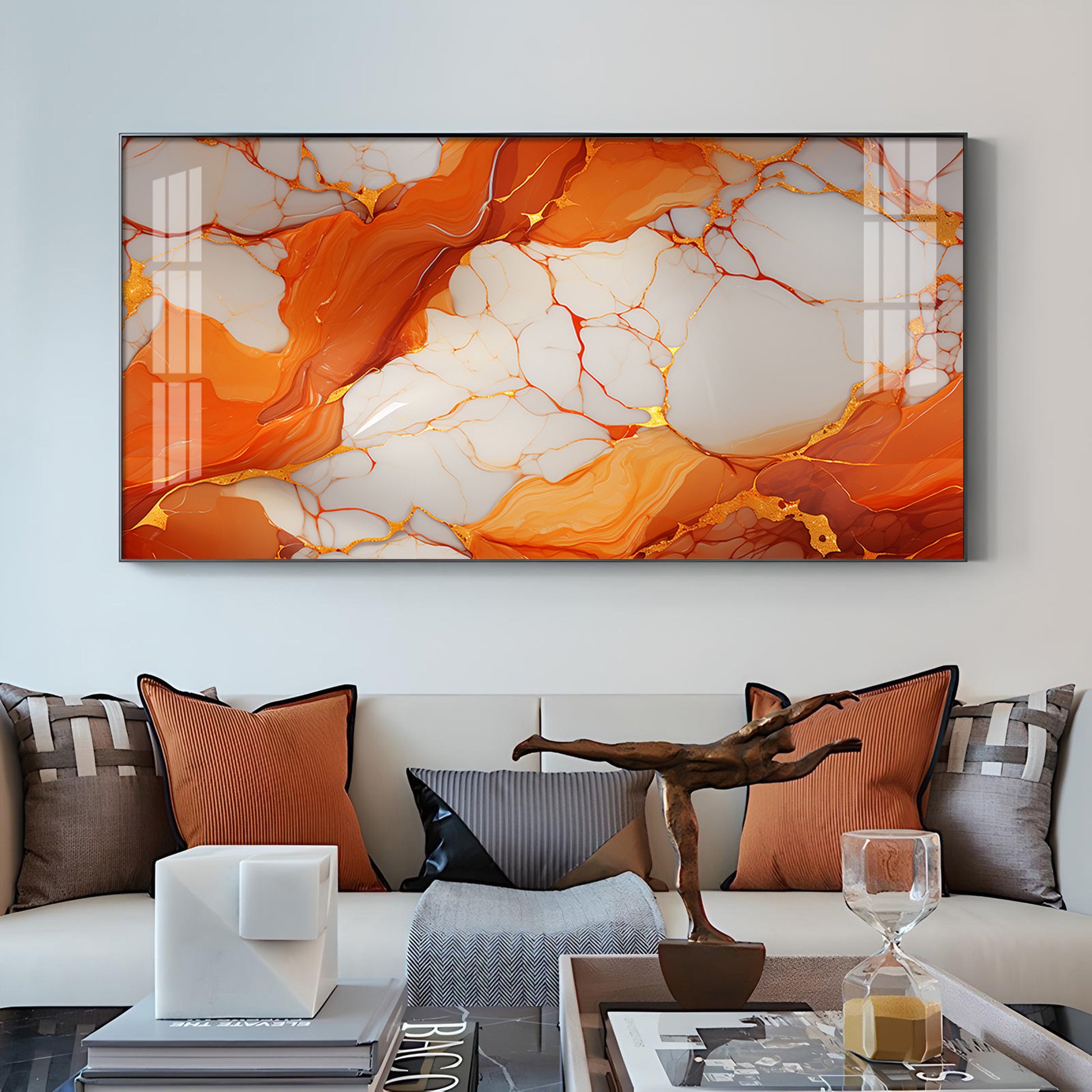 Marble Ink Orange Glass Finish Horizontal Wall Art