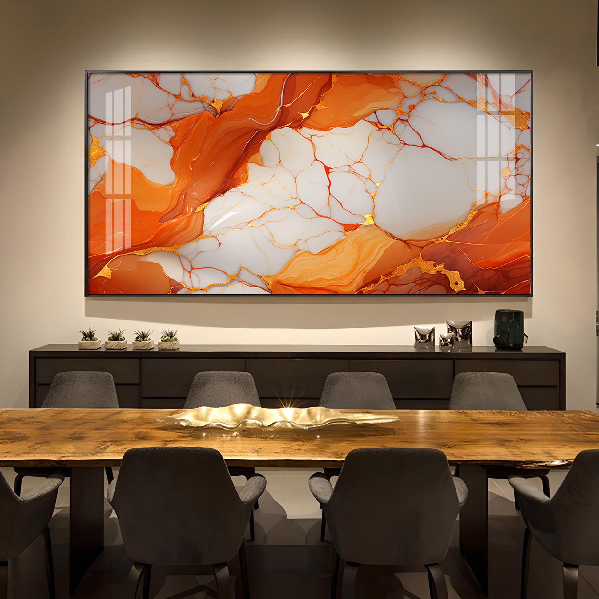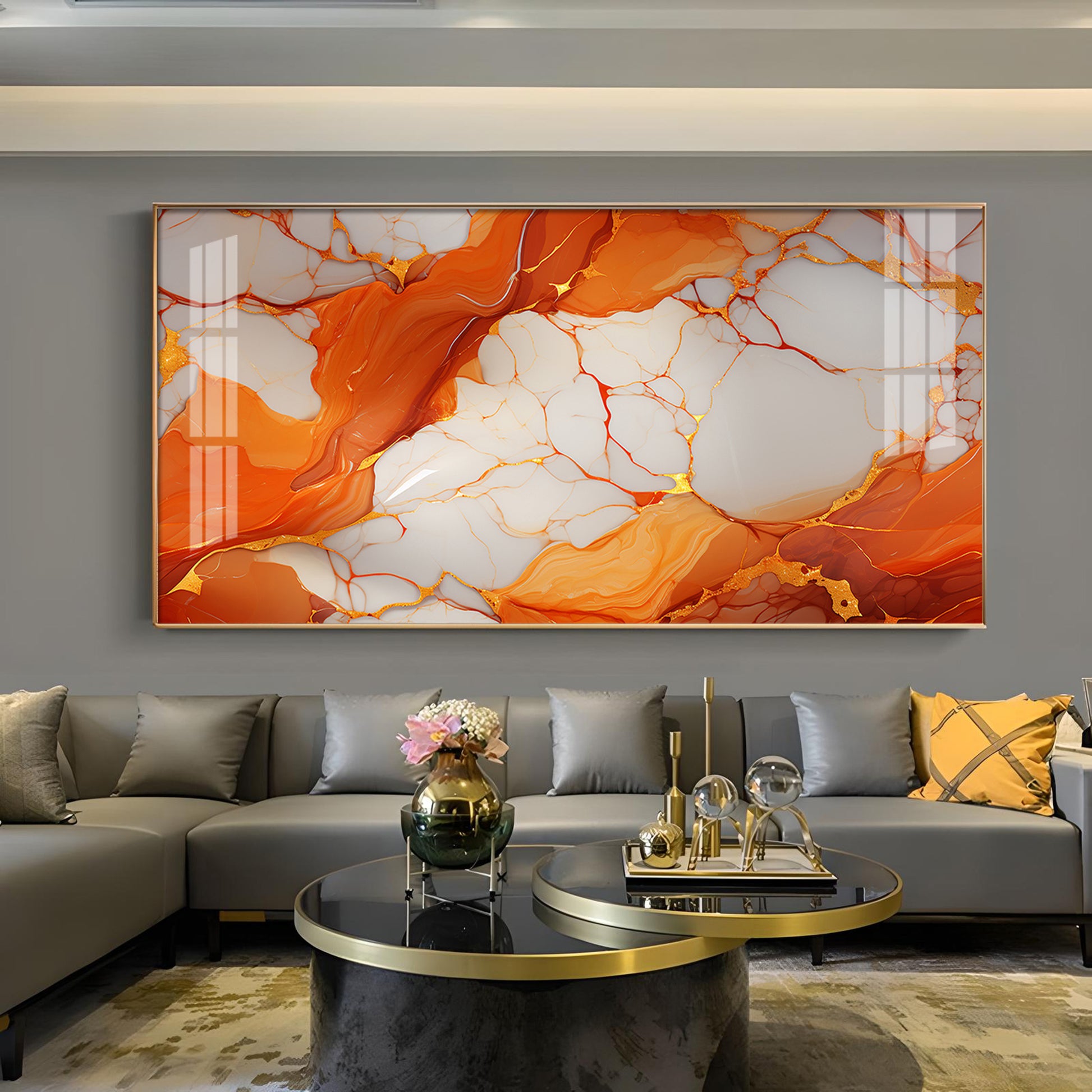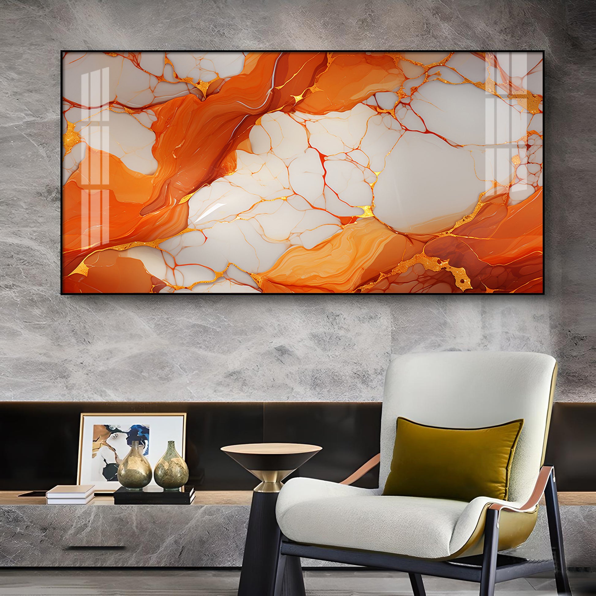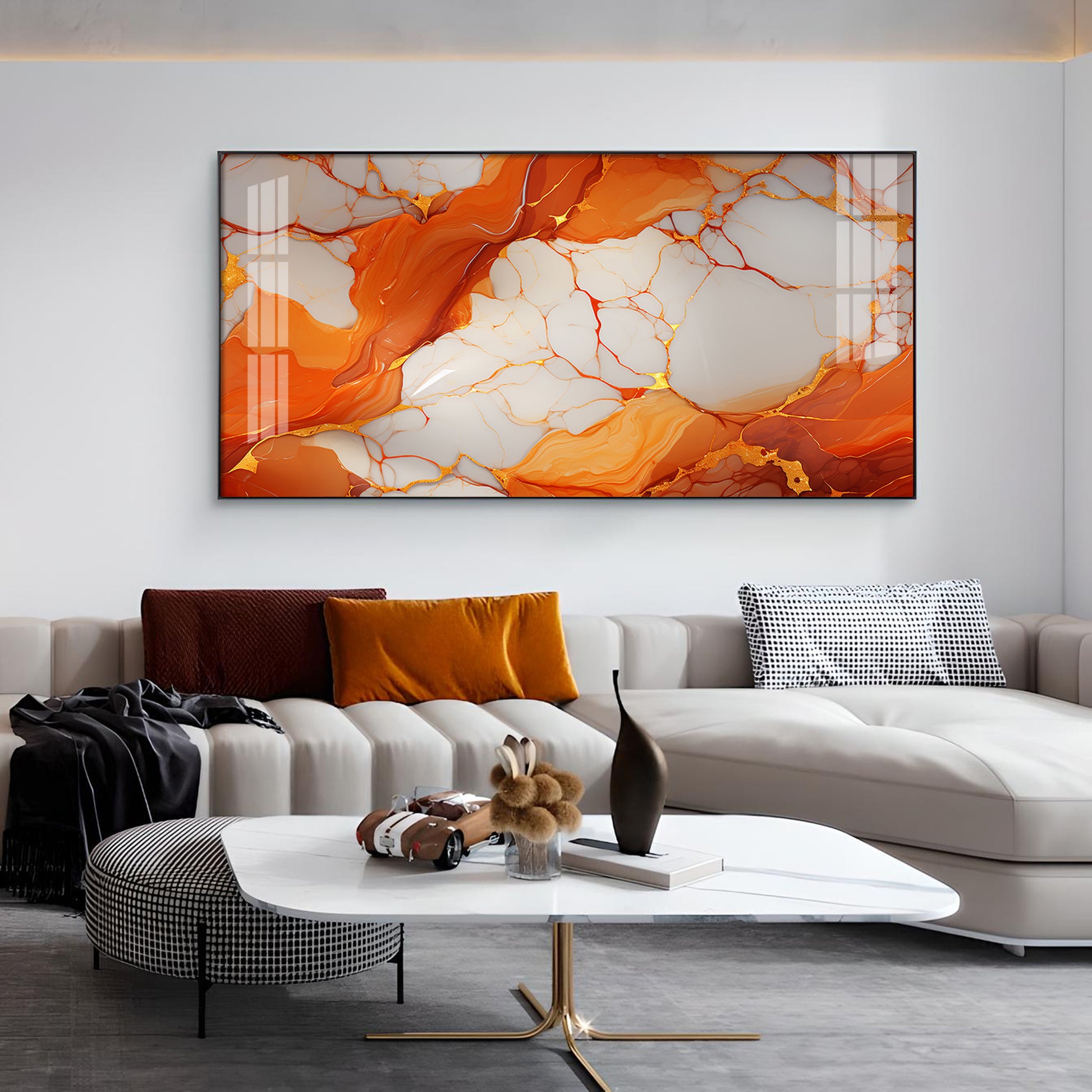 Marble Ink Orange Glass Finish Horizontal Wall Art