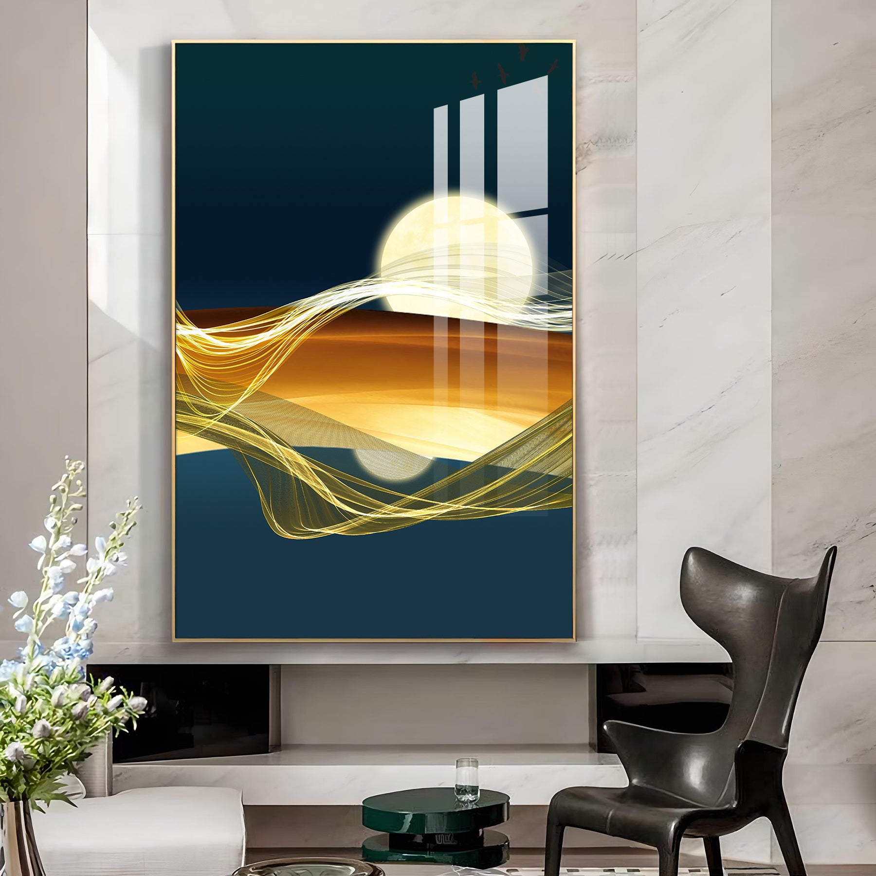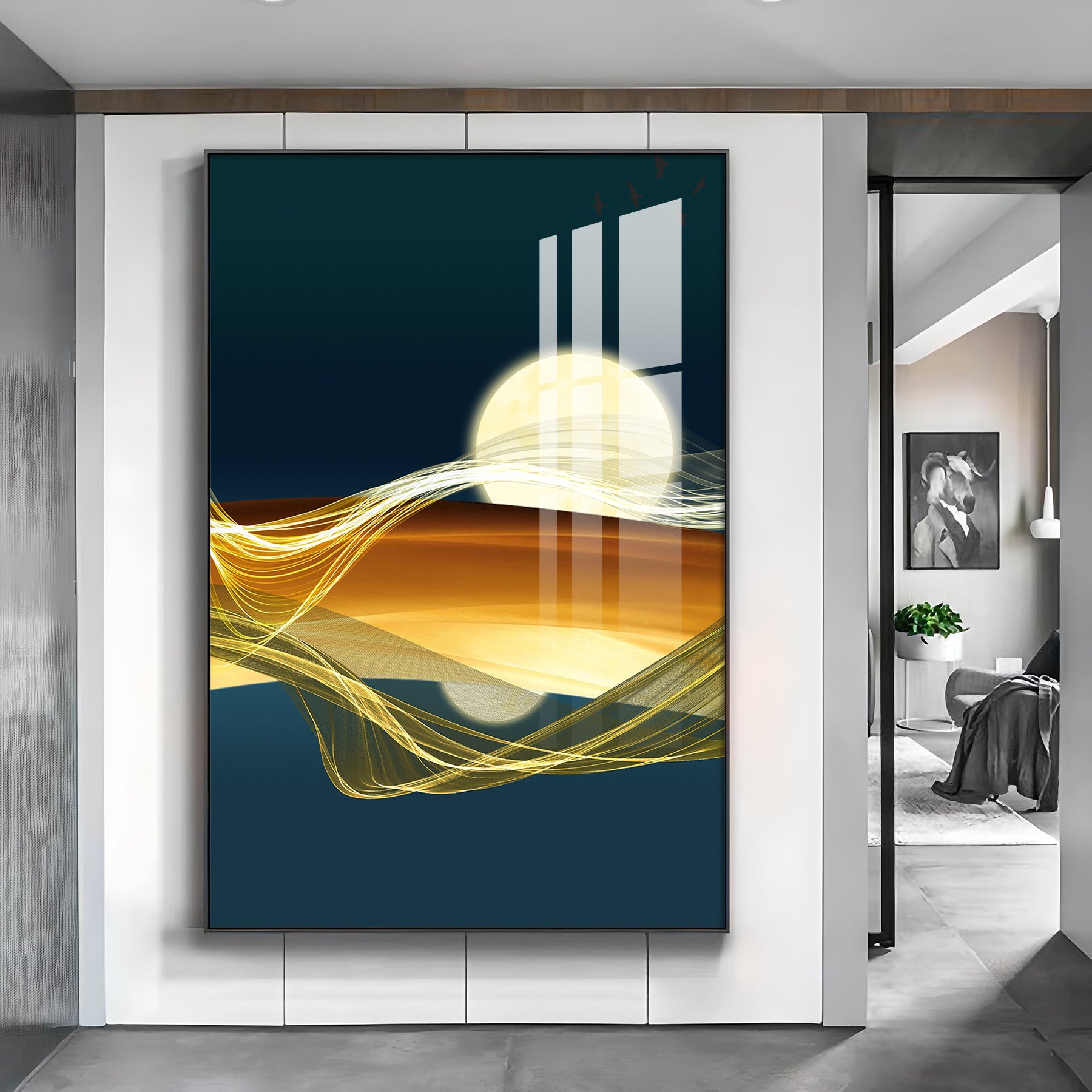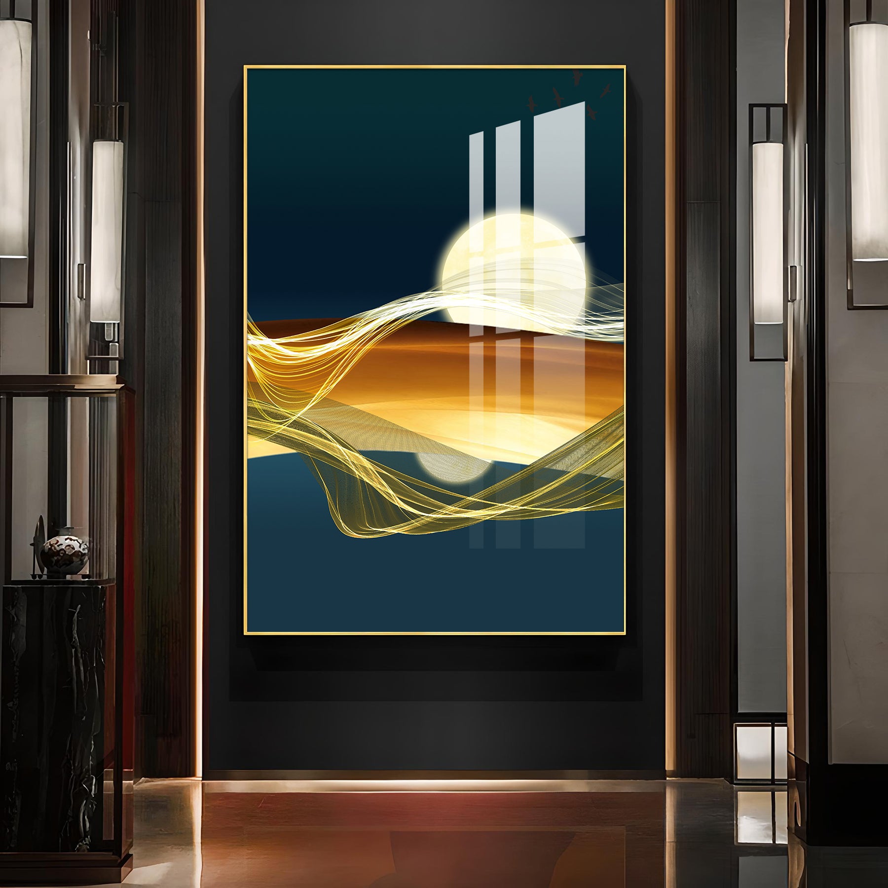 Modern Vista Glass Finish Vertical Wall Art