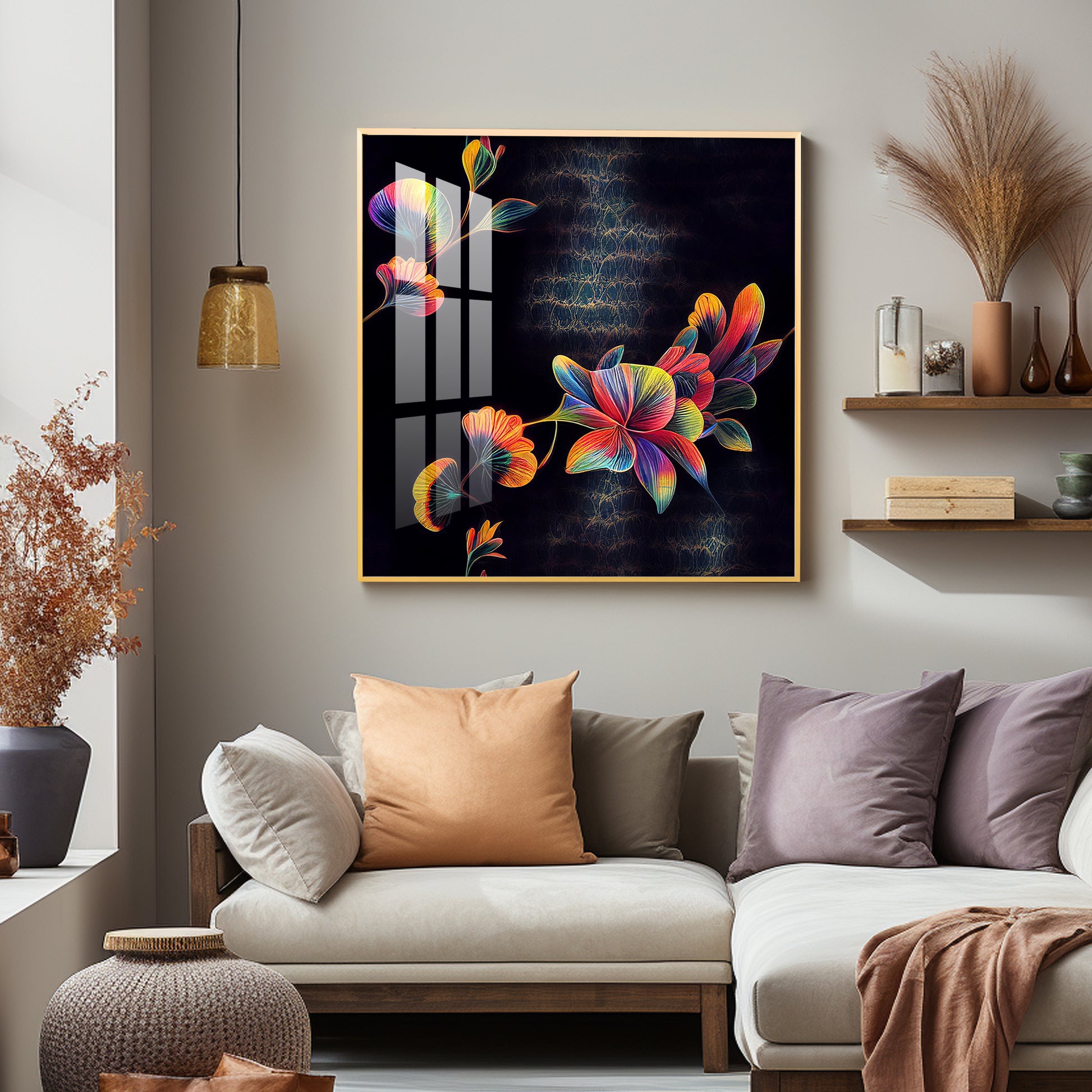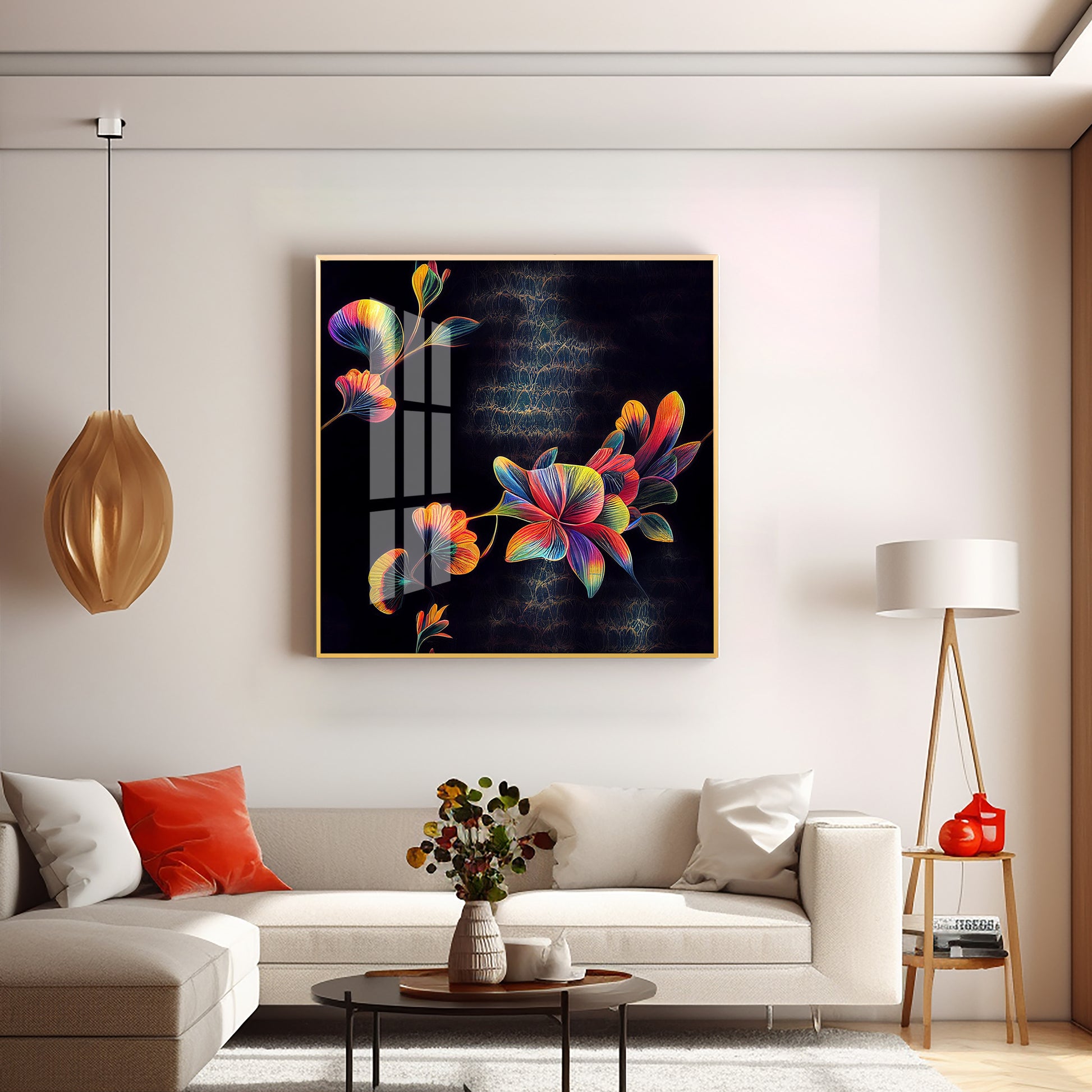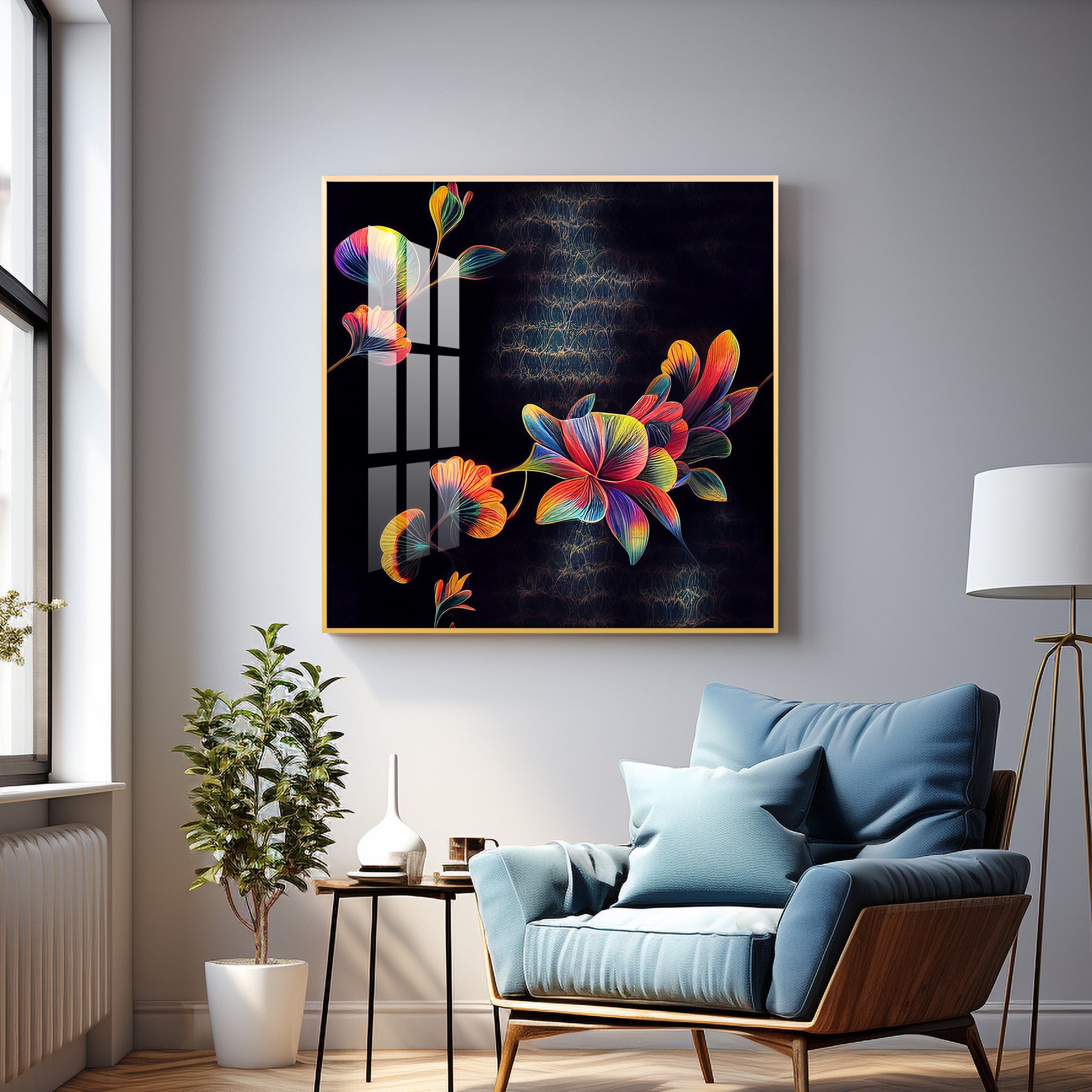 Multicolor Floral Serenity Glass Finish Square Wall Art
