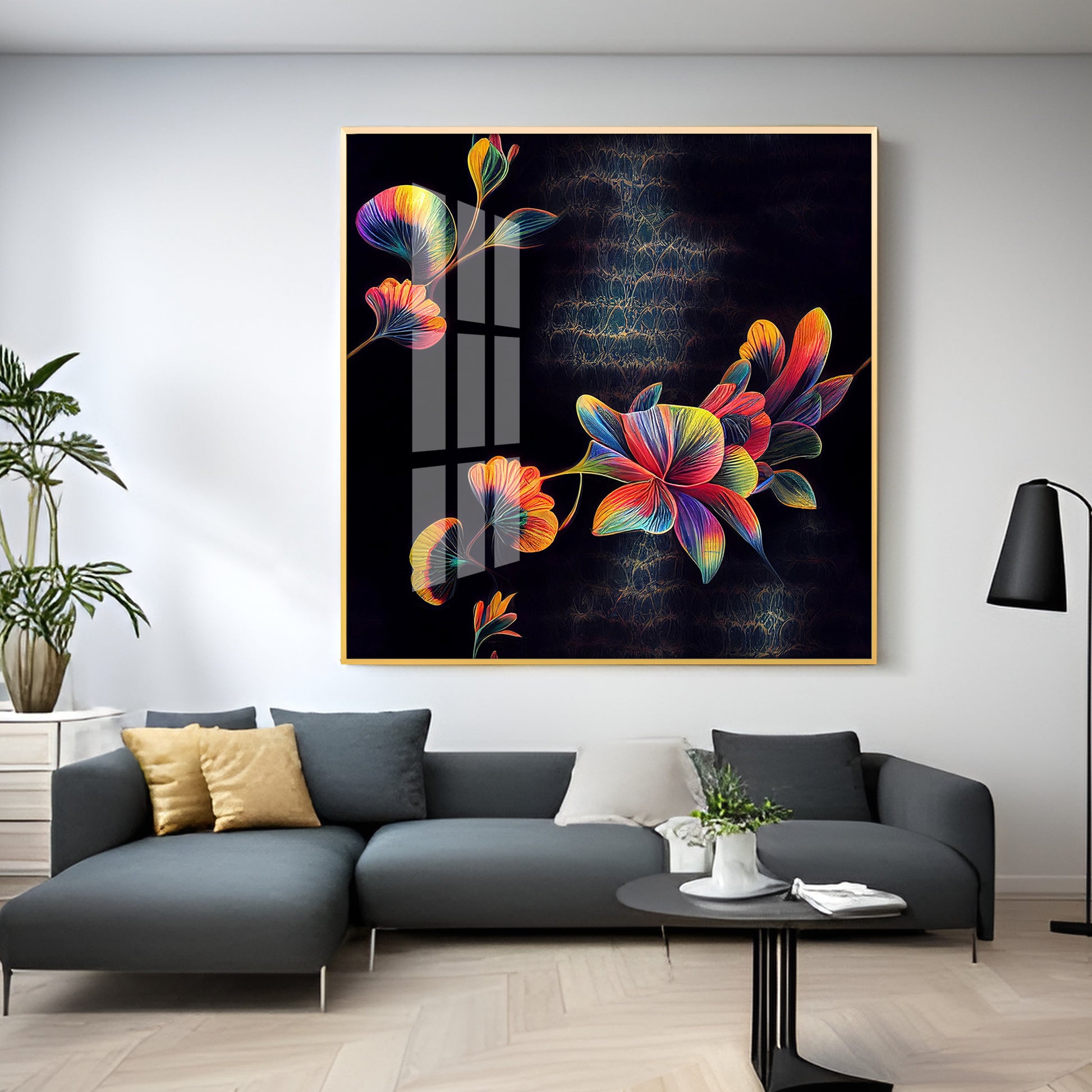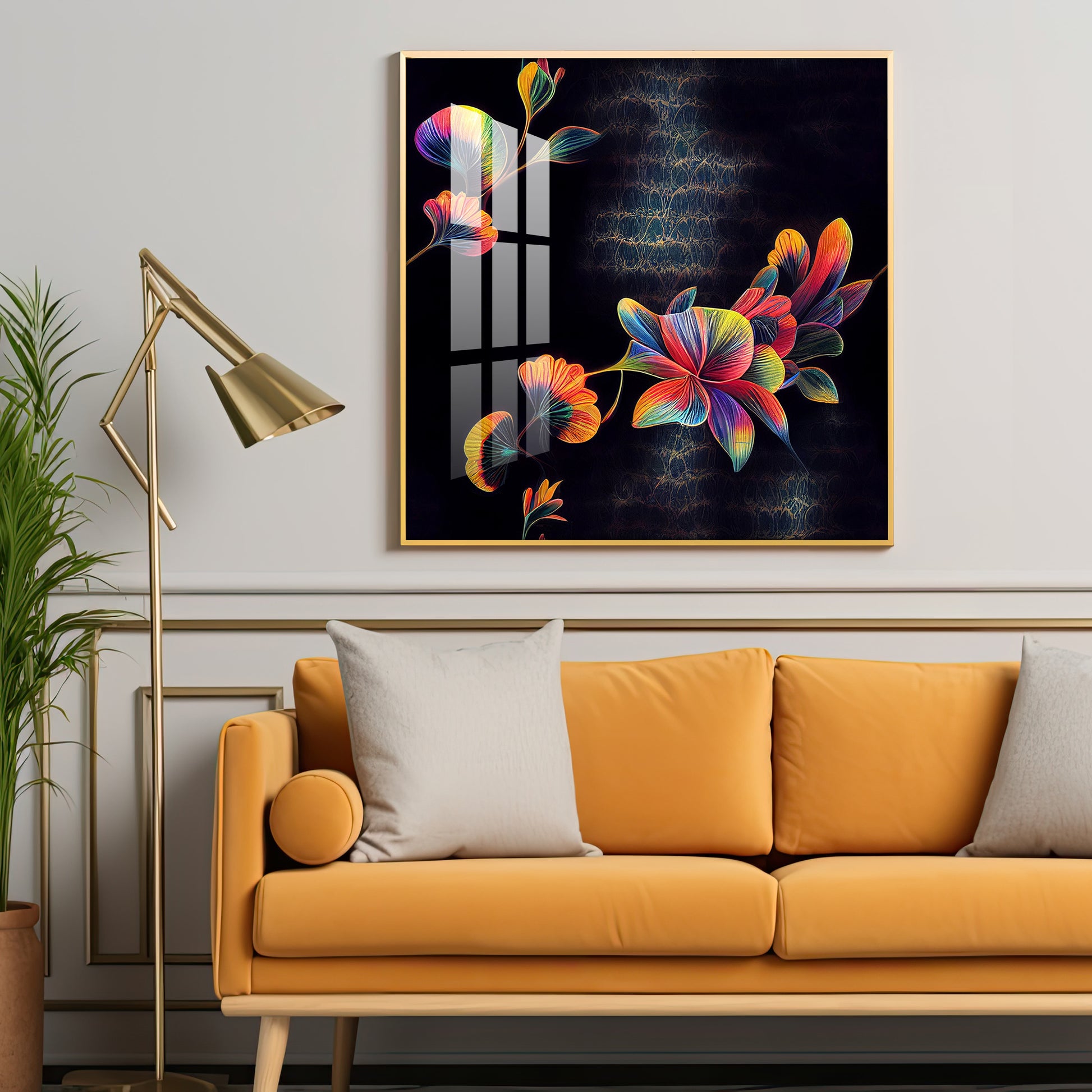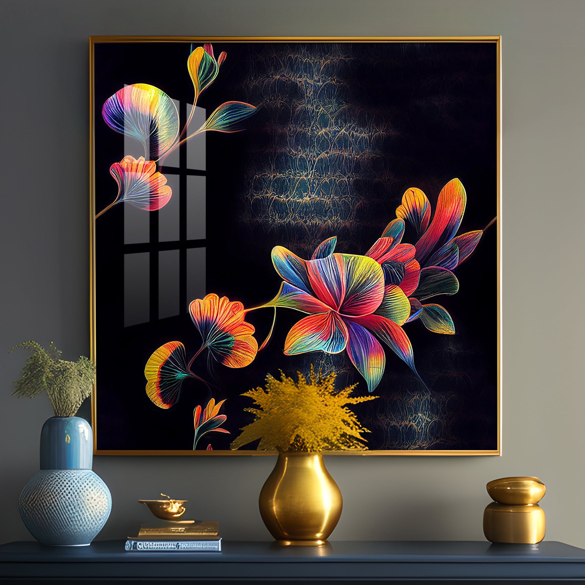 Multicolor Floral Serenity Glass Finish Square Wall Art