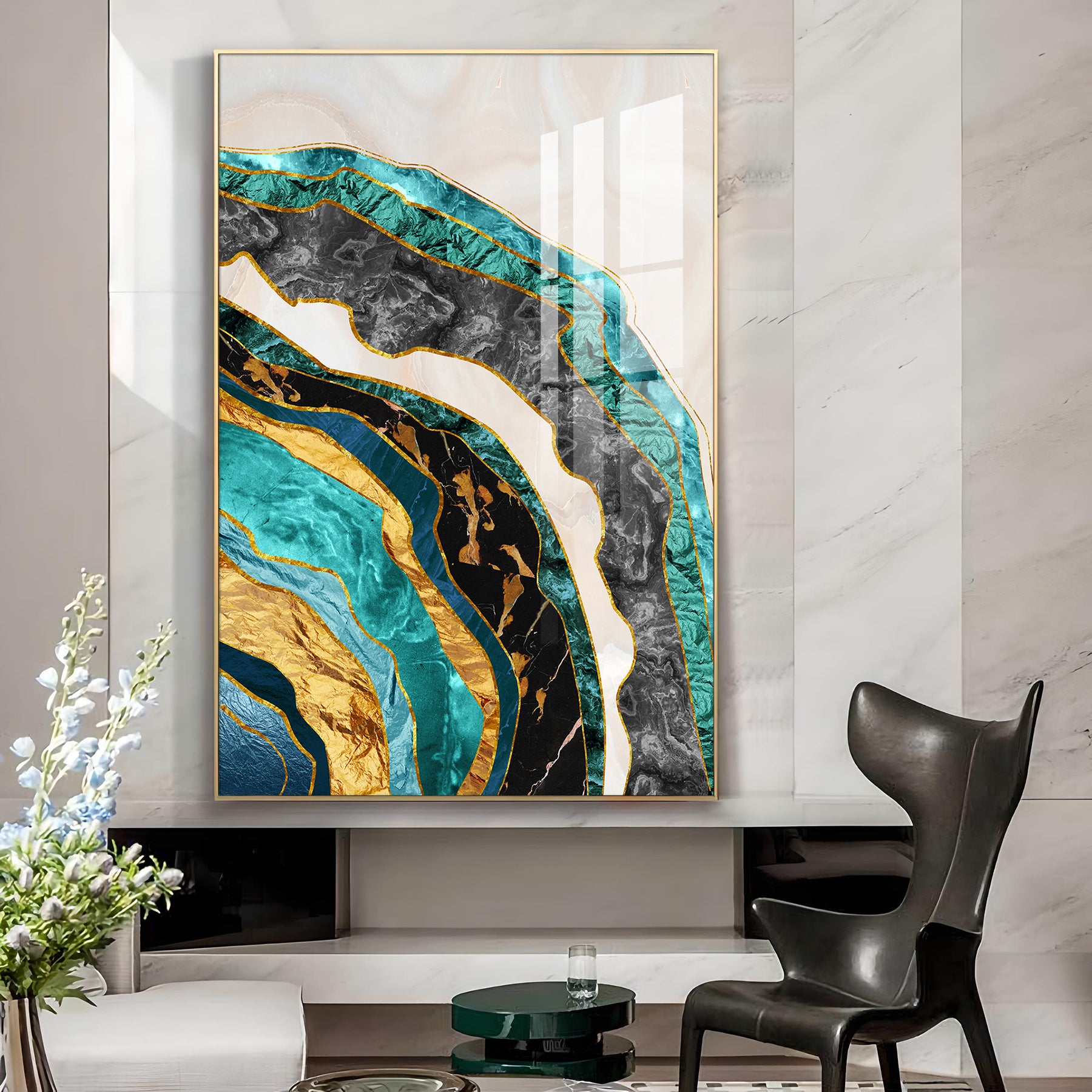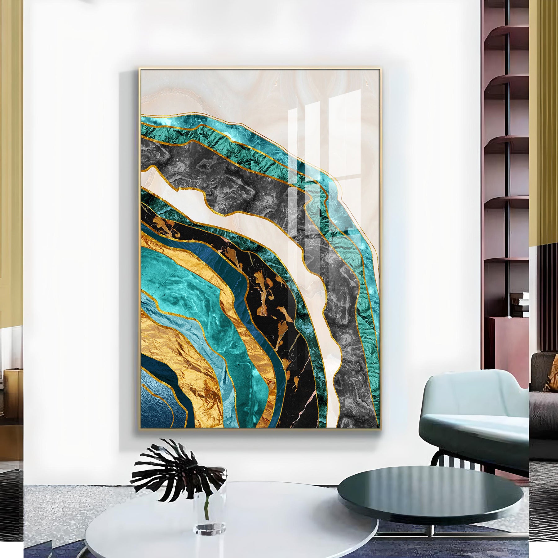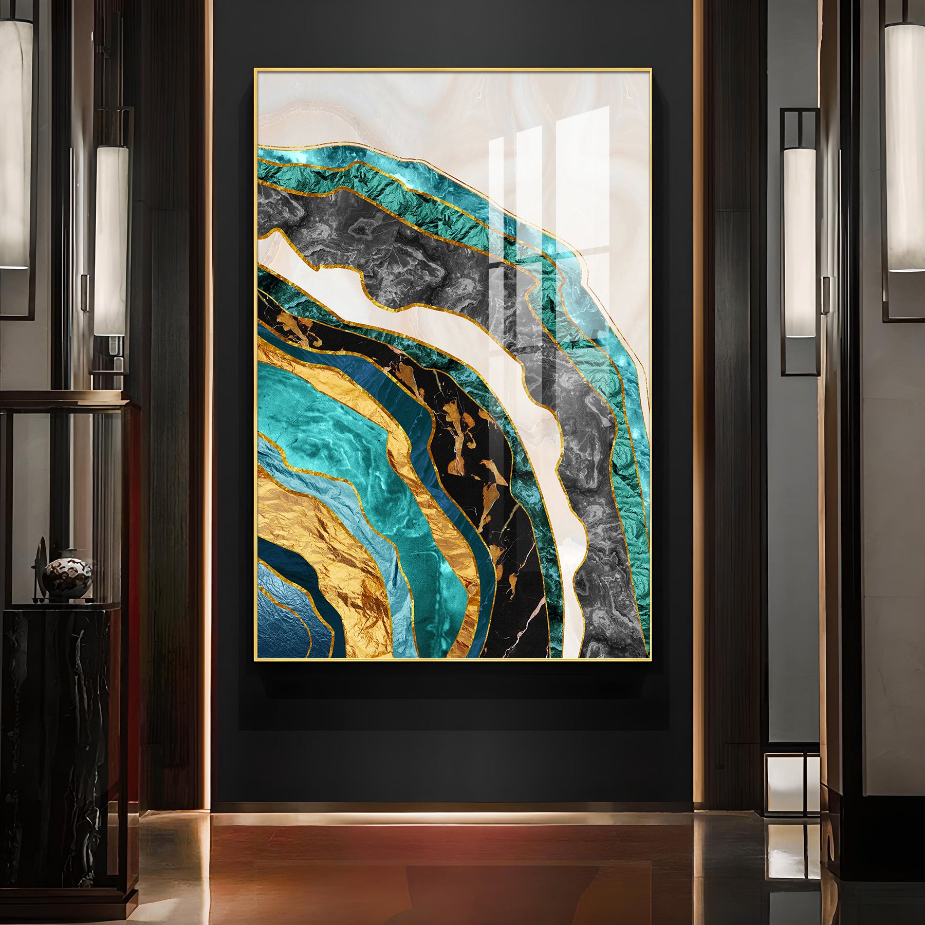 Opulent Waves Glass Finish Vertical Wall Art