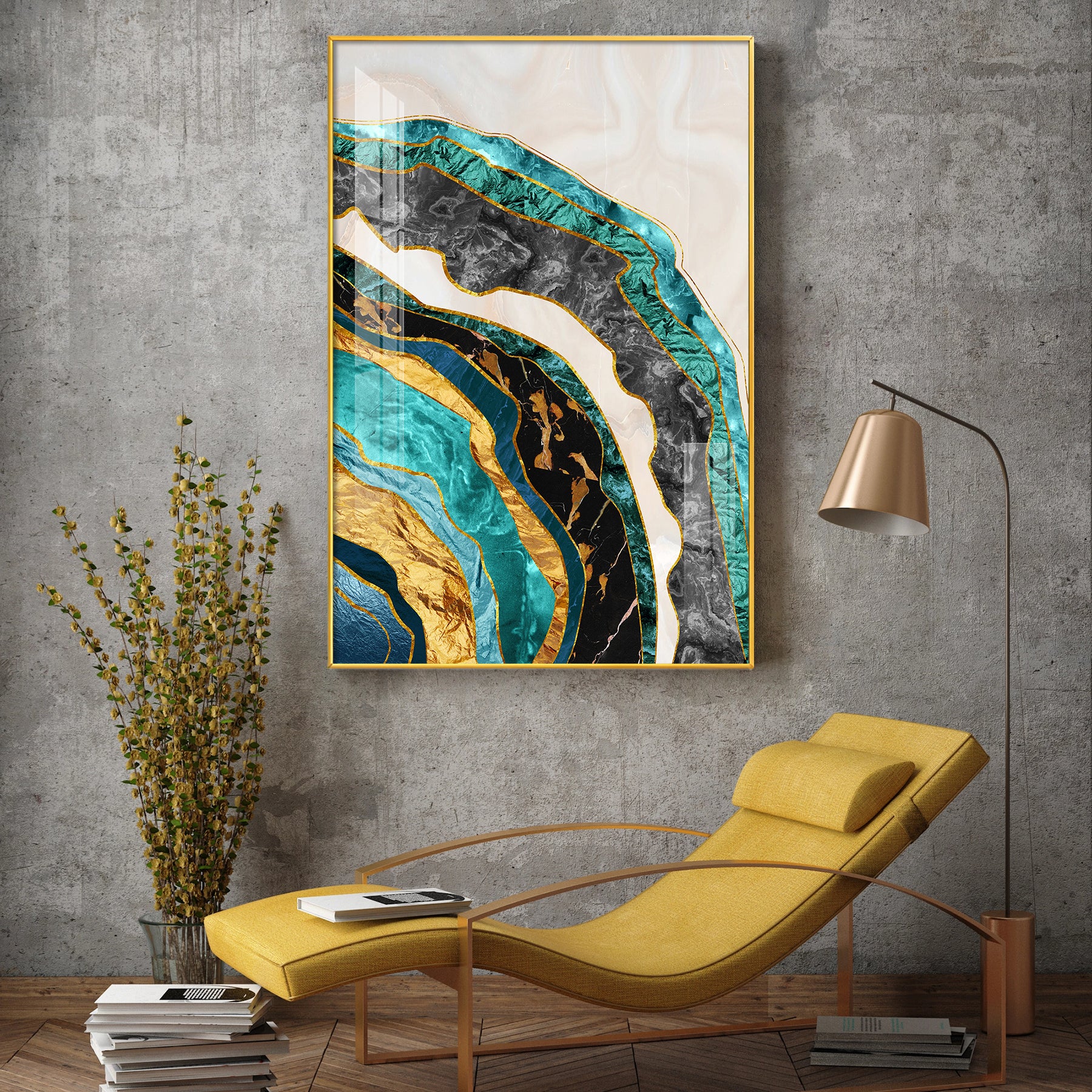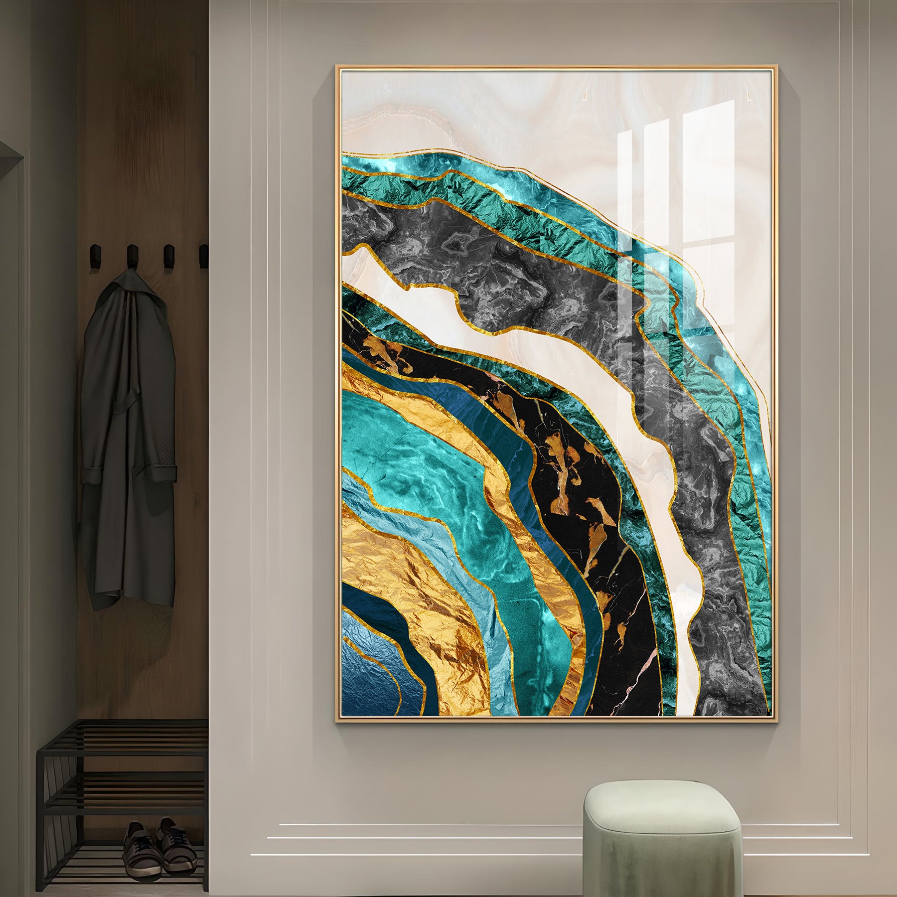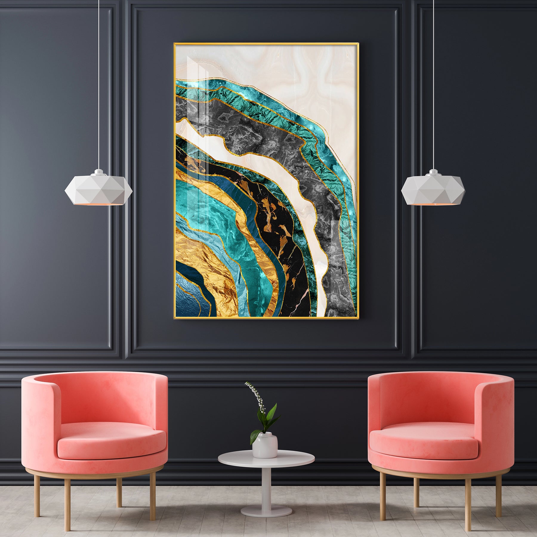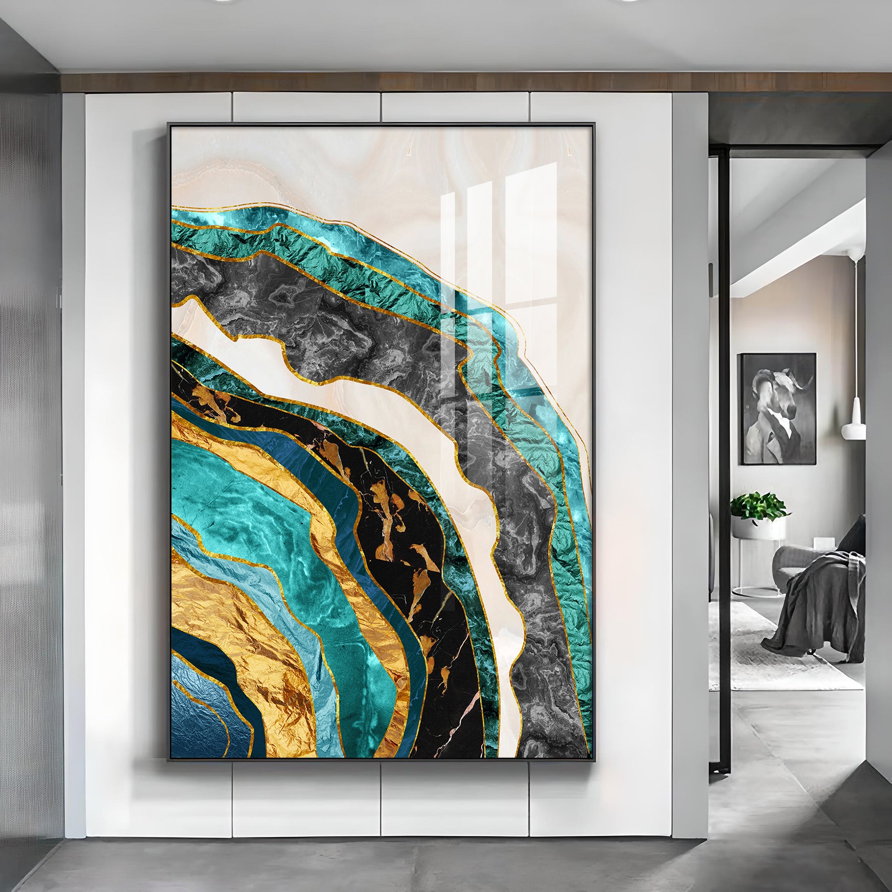 Opulent Waves Glass Finish Vertical Wall Art