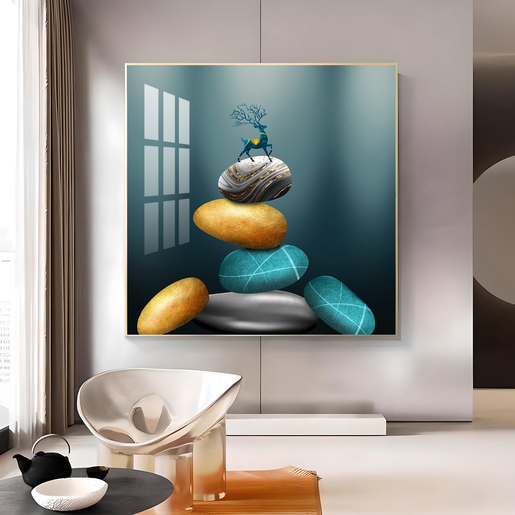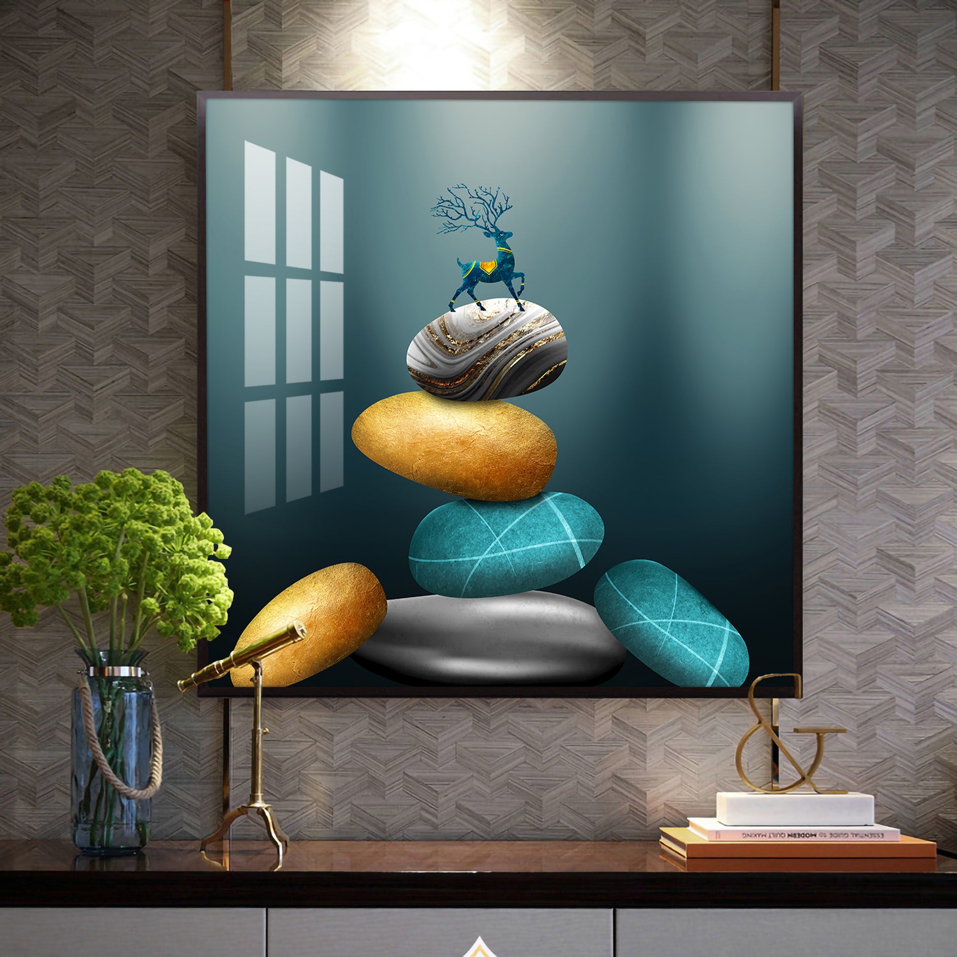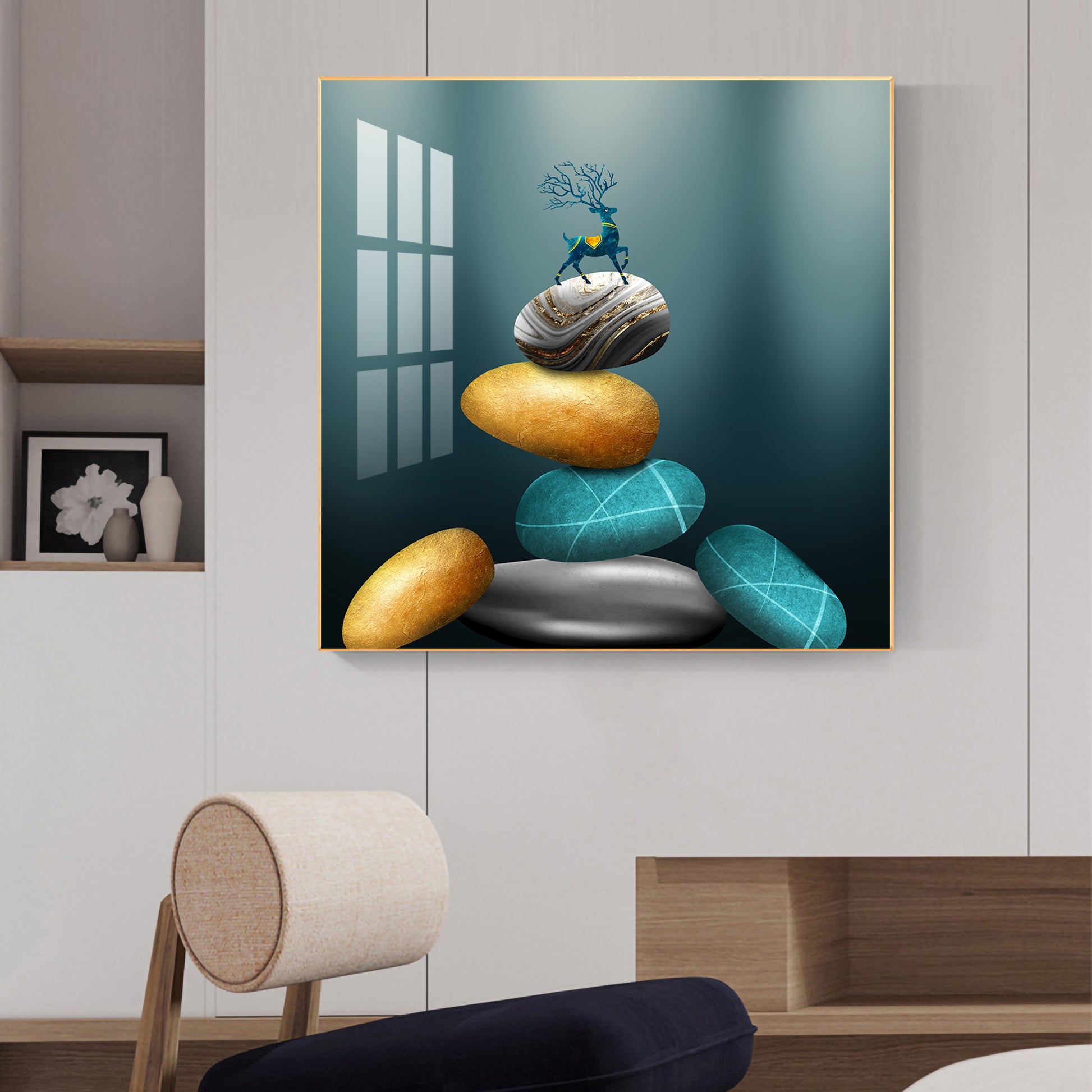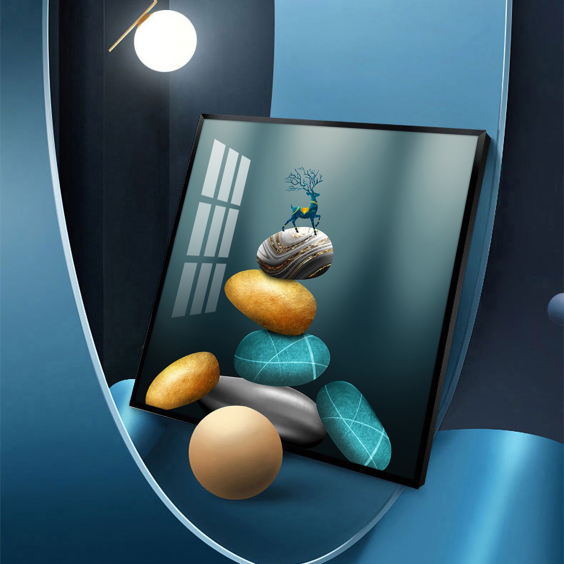 Peaceful Deer On Rock Glass Finish Square Wall Art