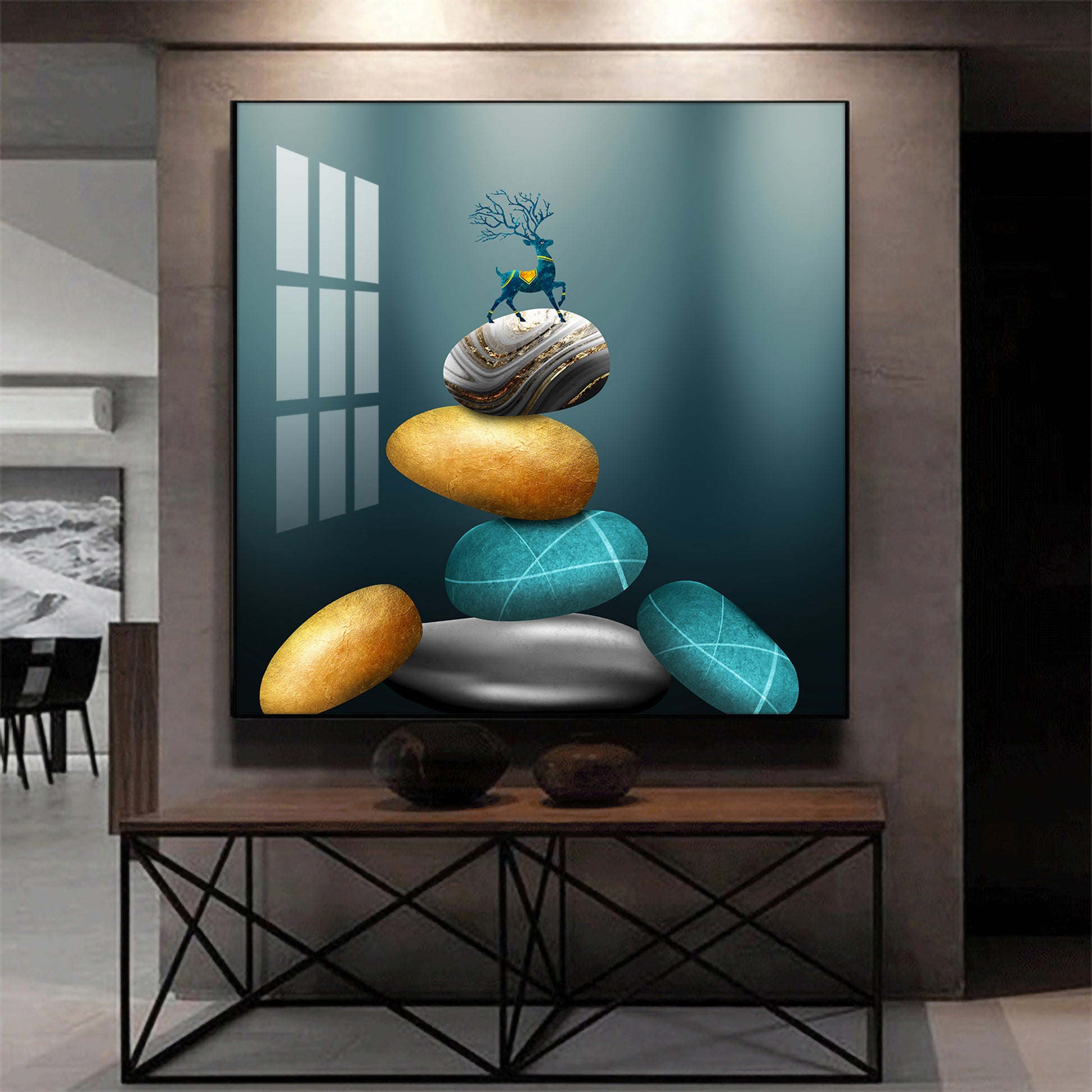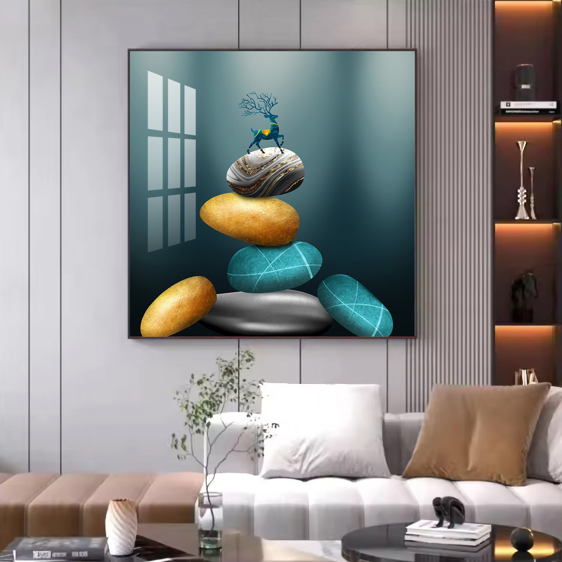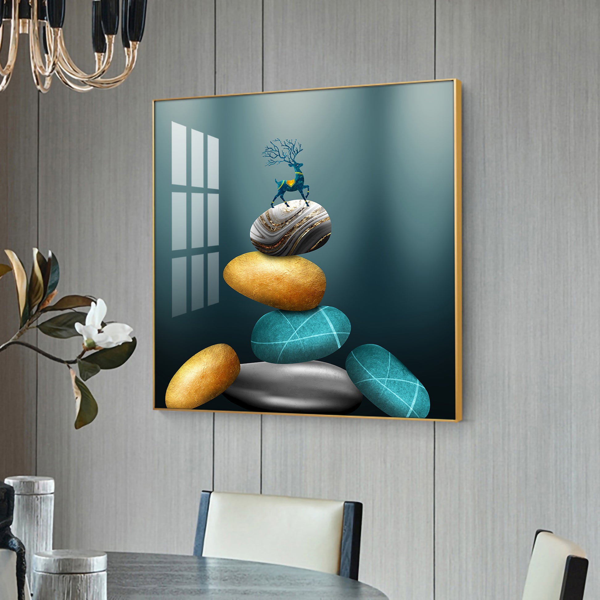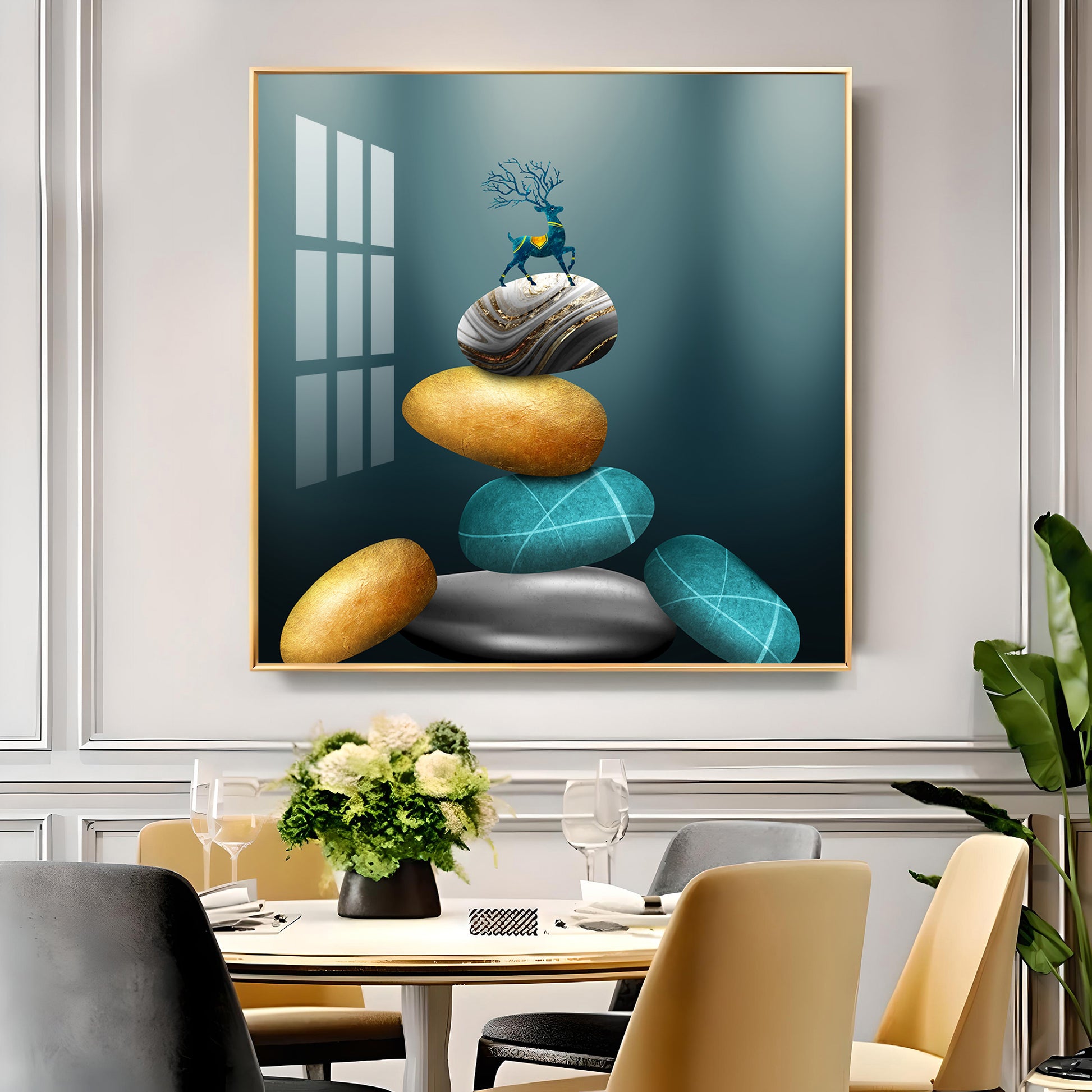 Peaceful Deer On Rock Glass Finish Square Wall Art