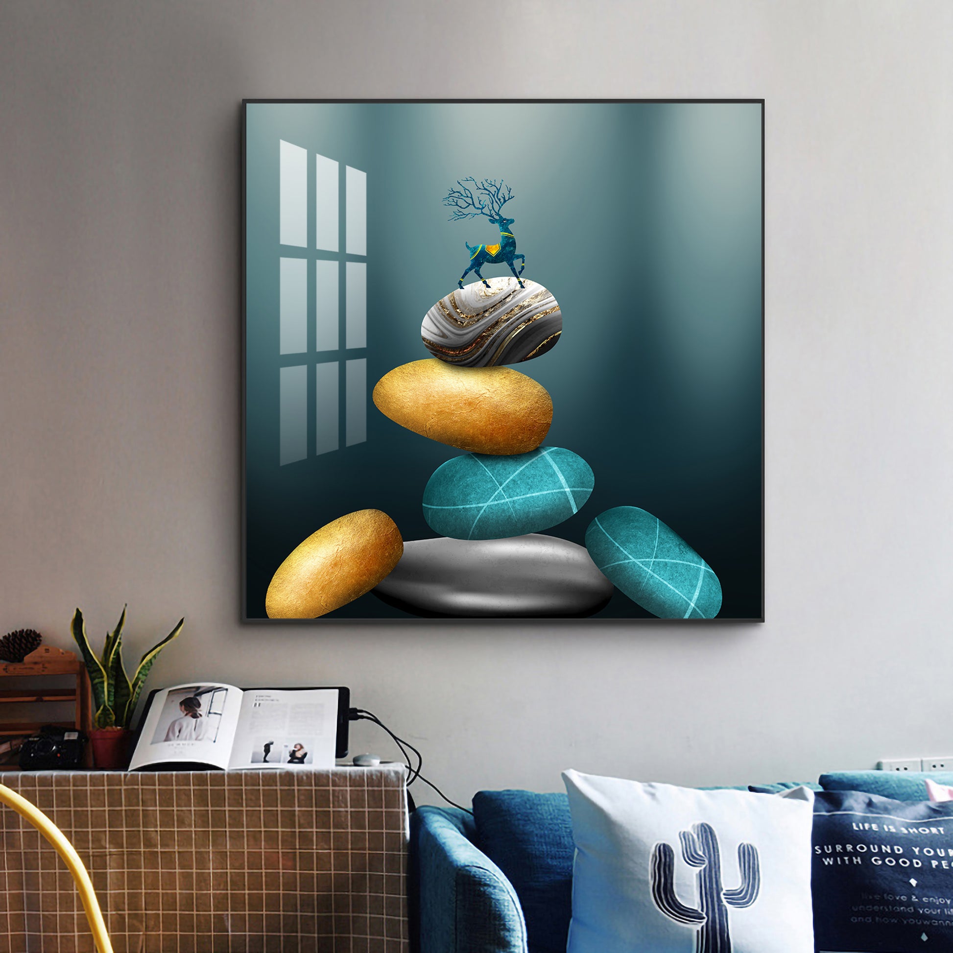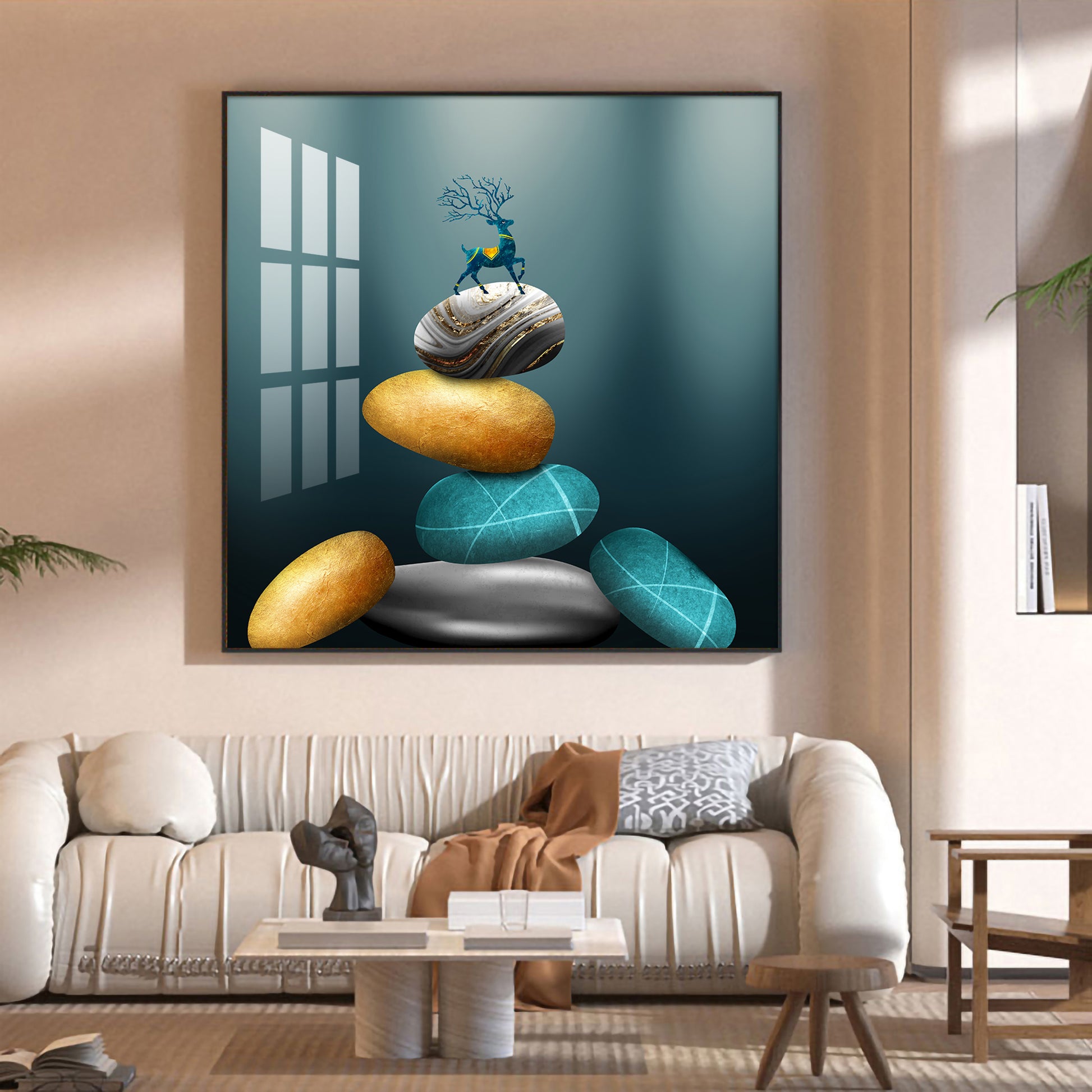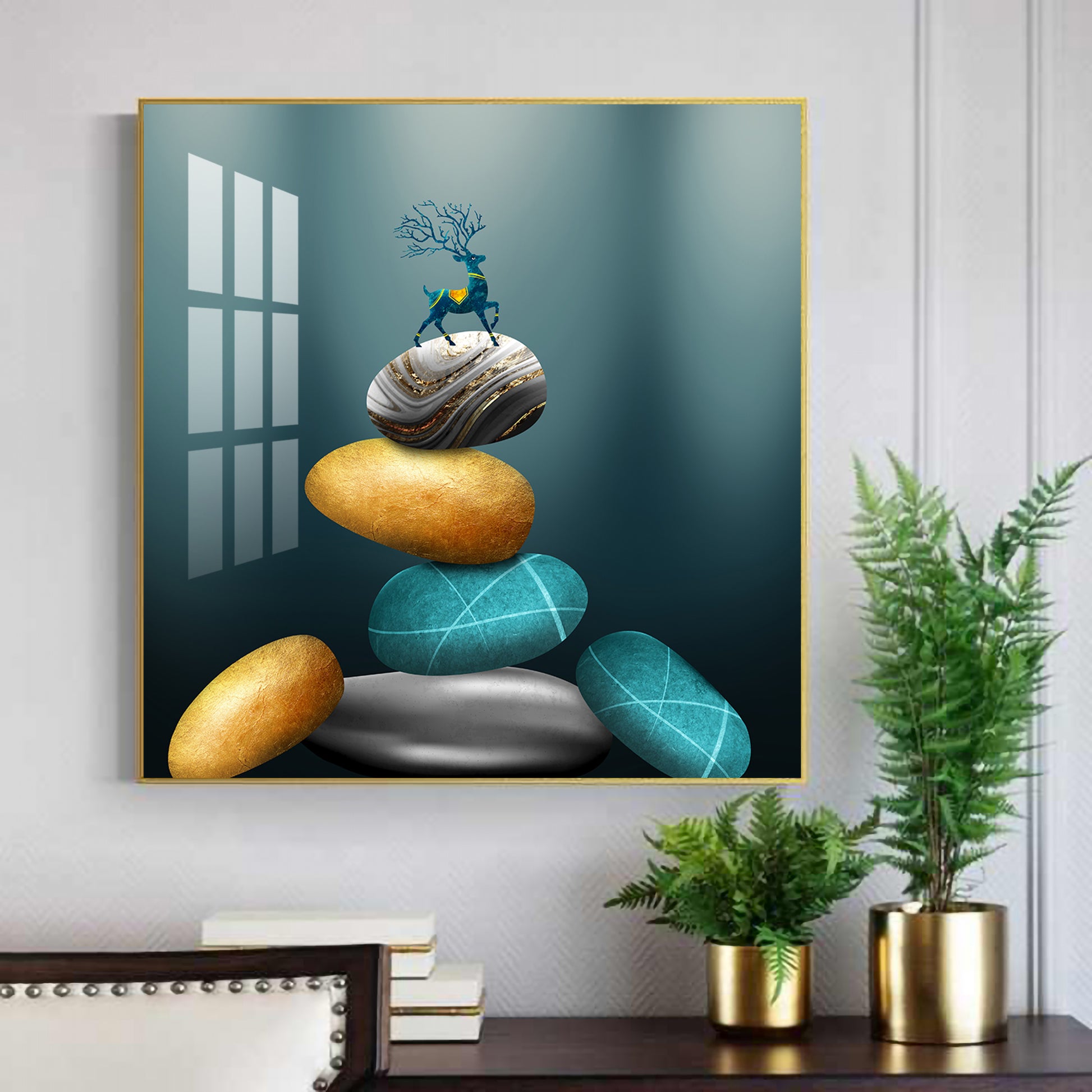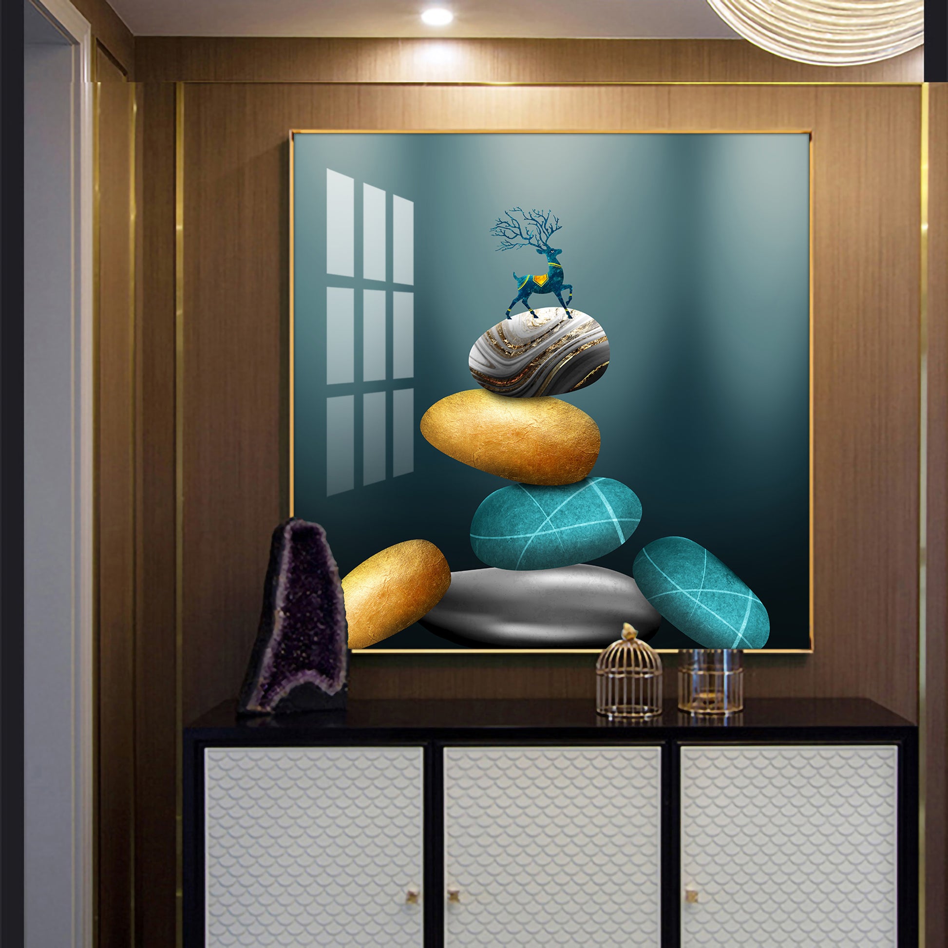 Peaceful Deer On Rock Glass Finish Square Wall Art