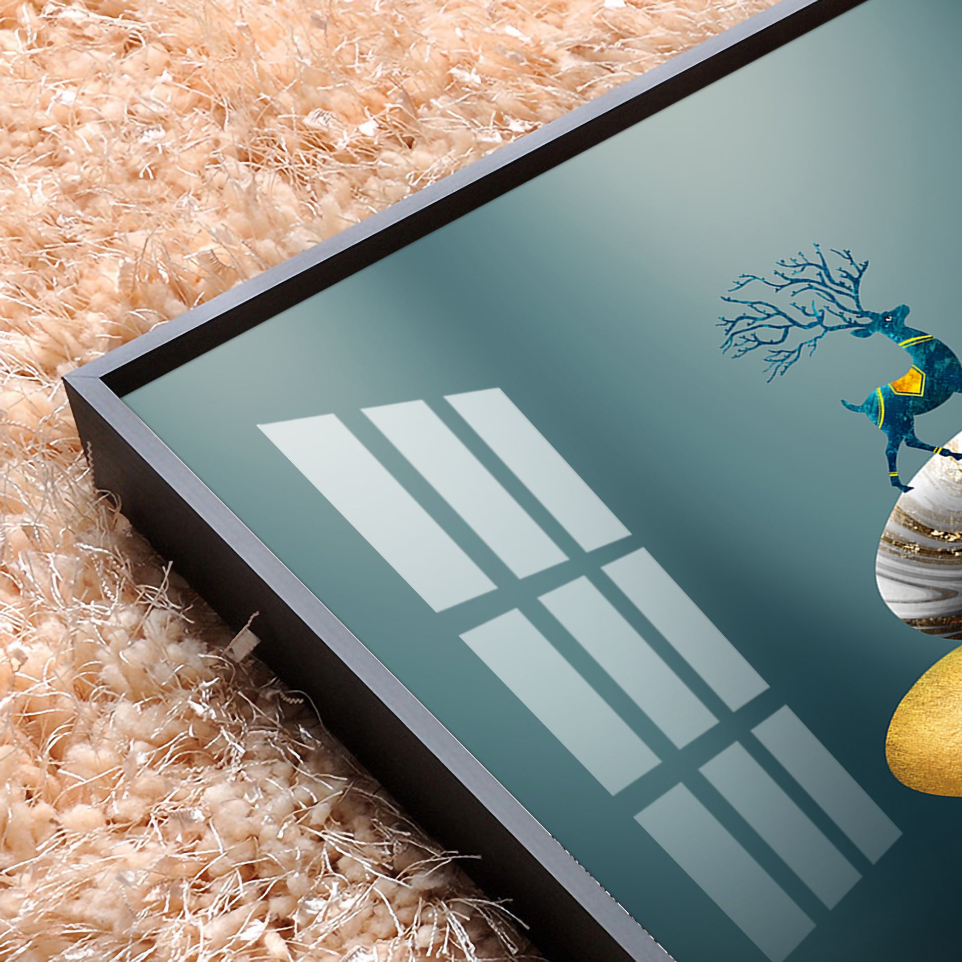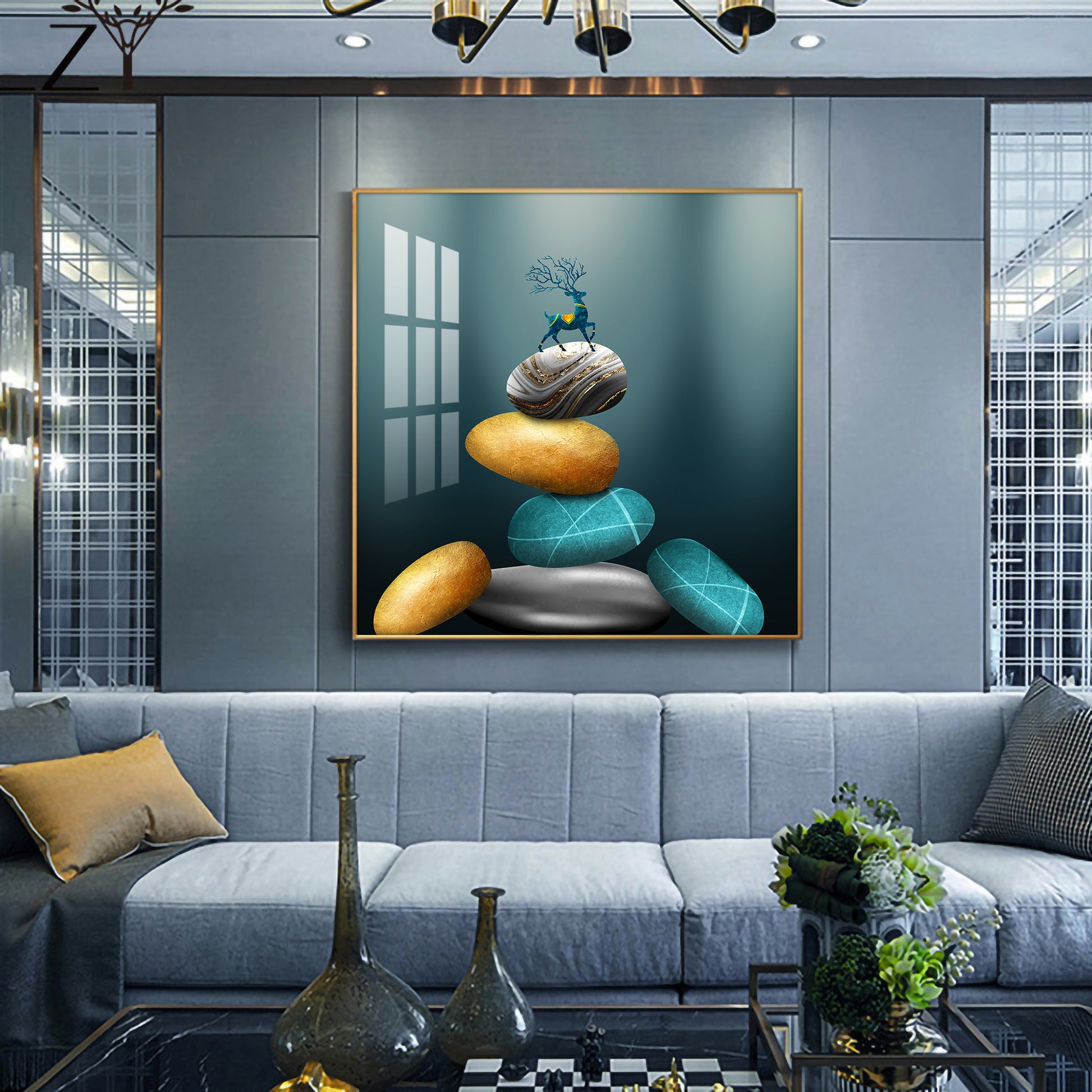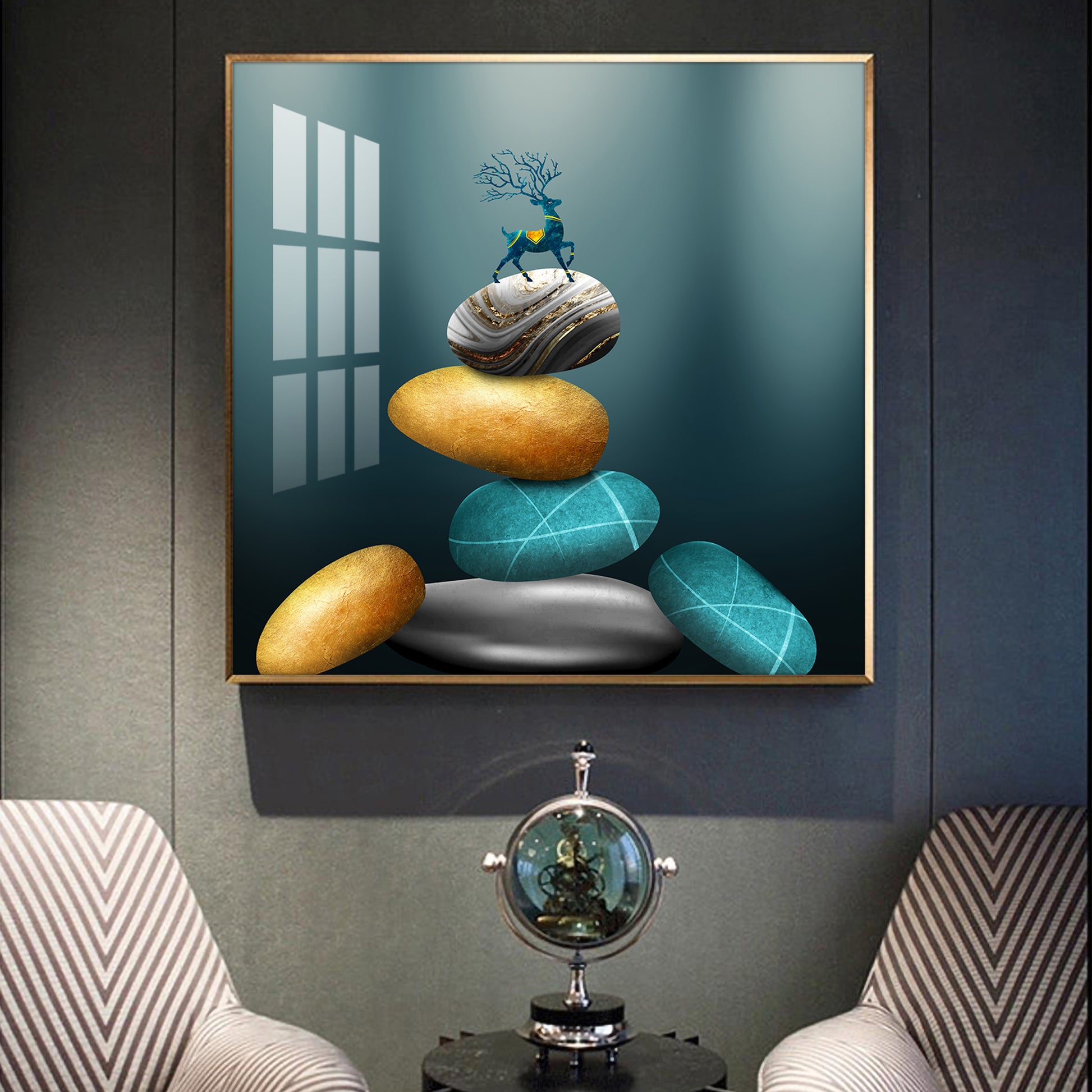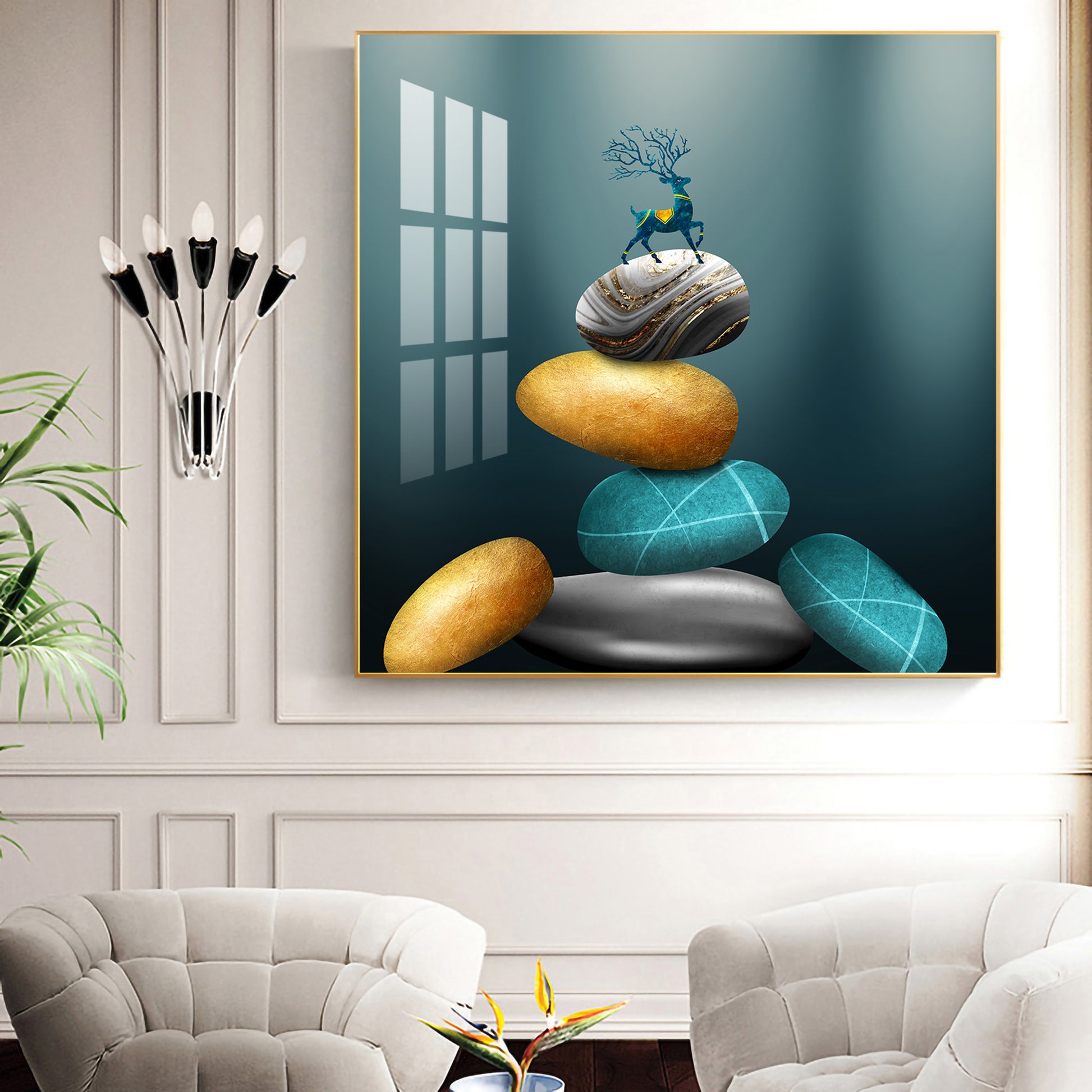 Peaceful Deer On Rock Glass Finish Square Wall Art