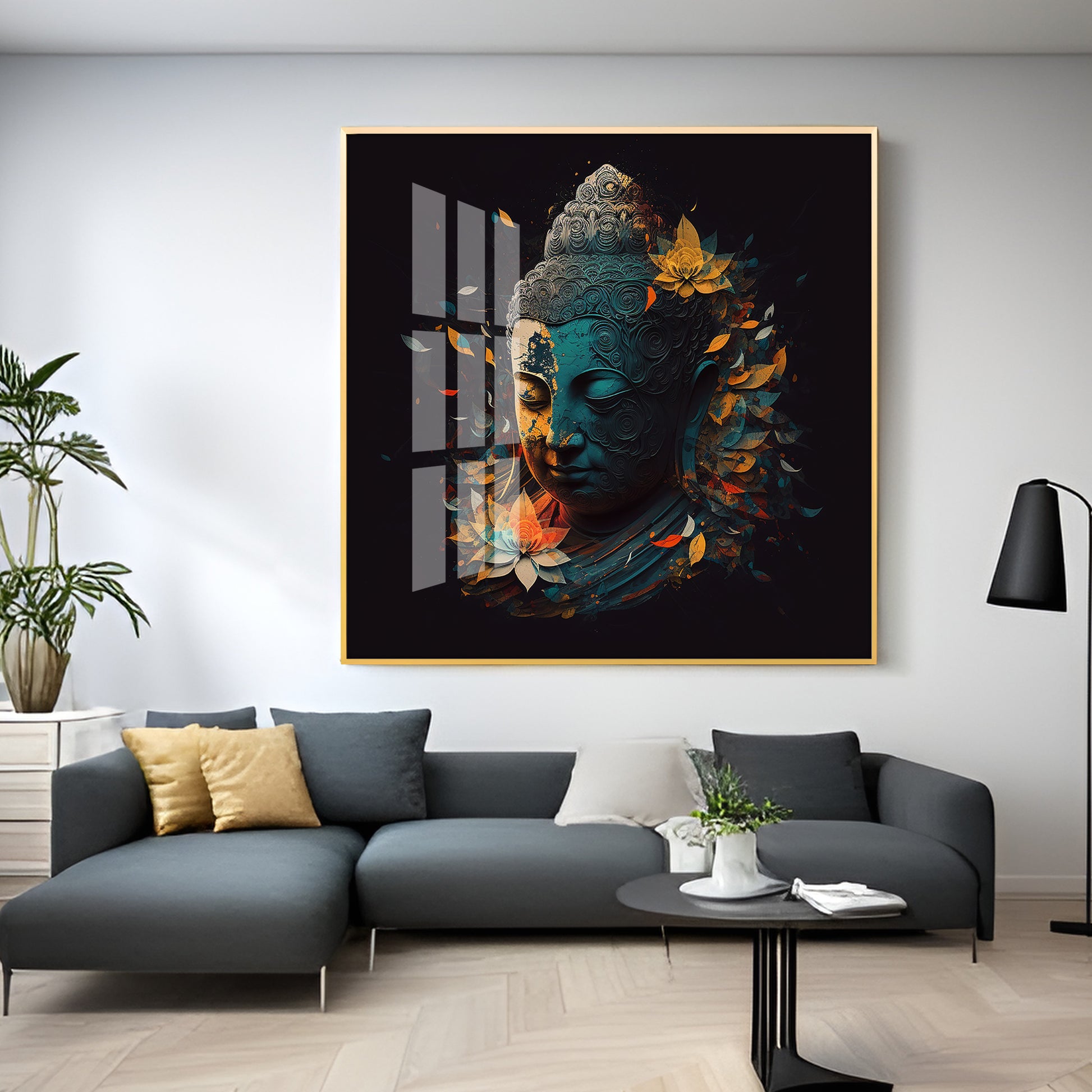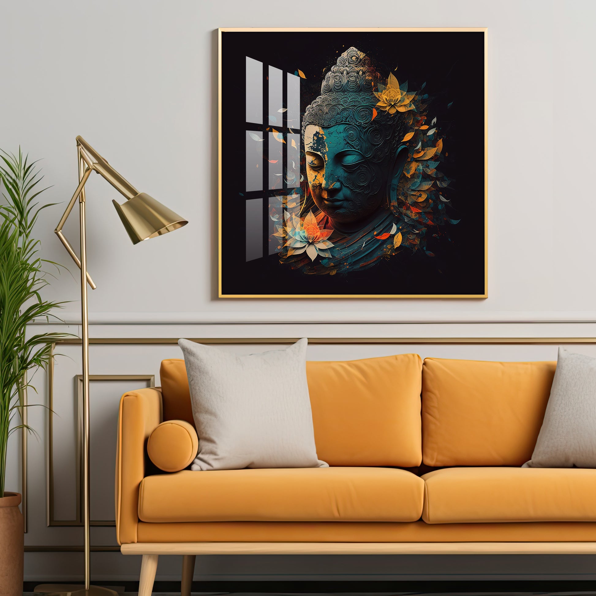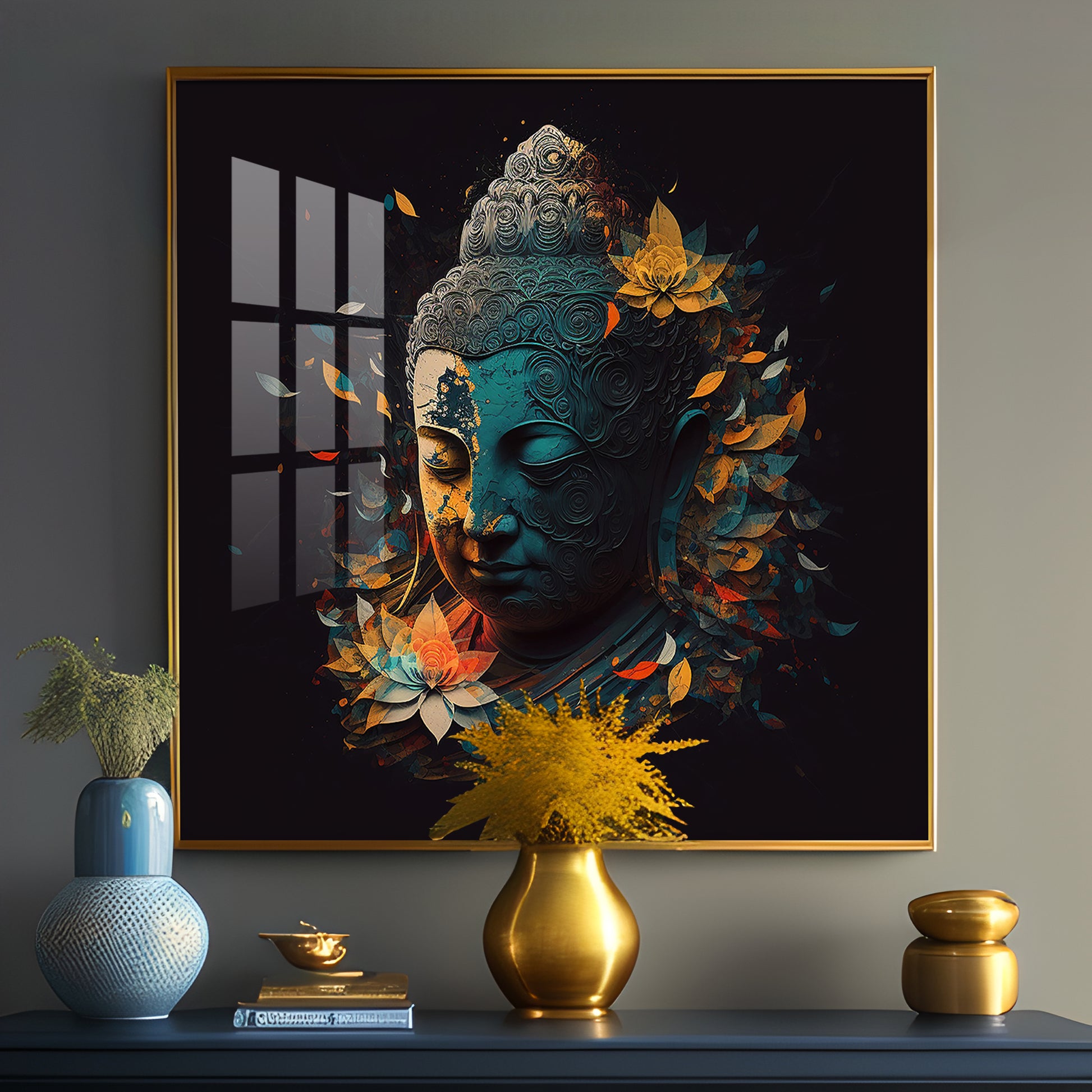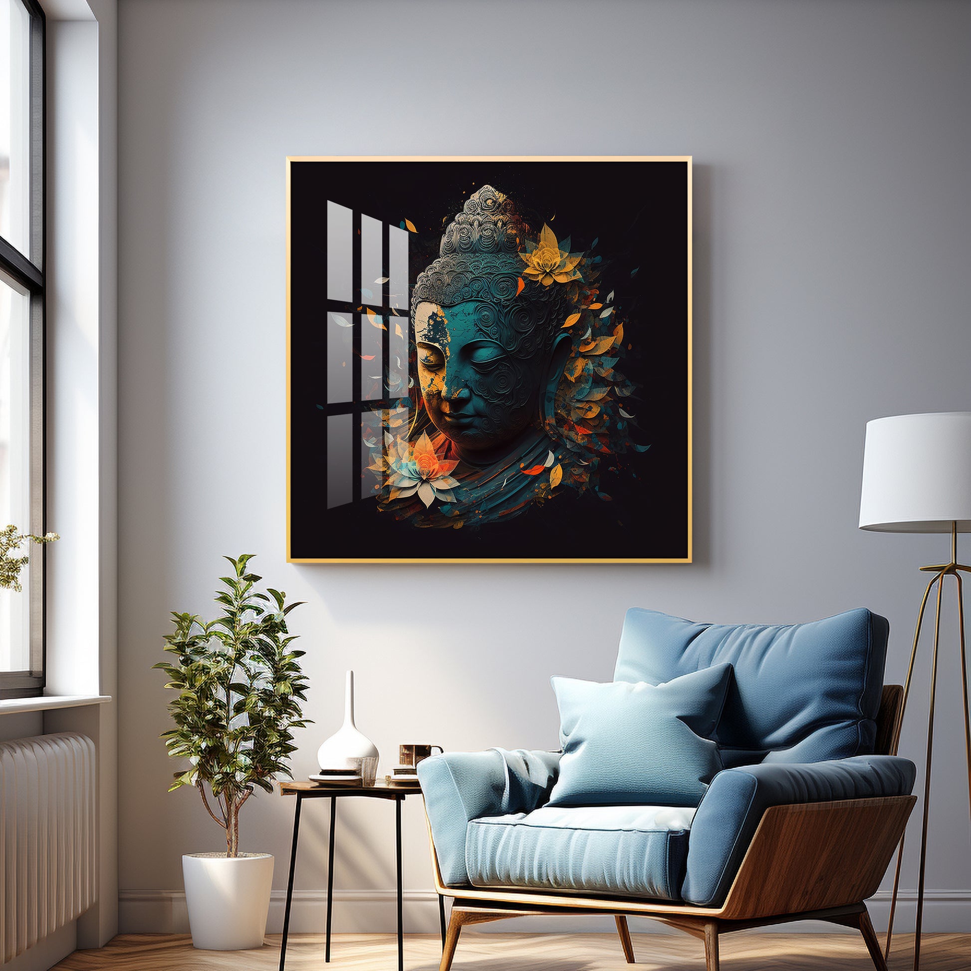 Peaceful Reflection Buddha Glass Finish Square Wall Art