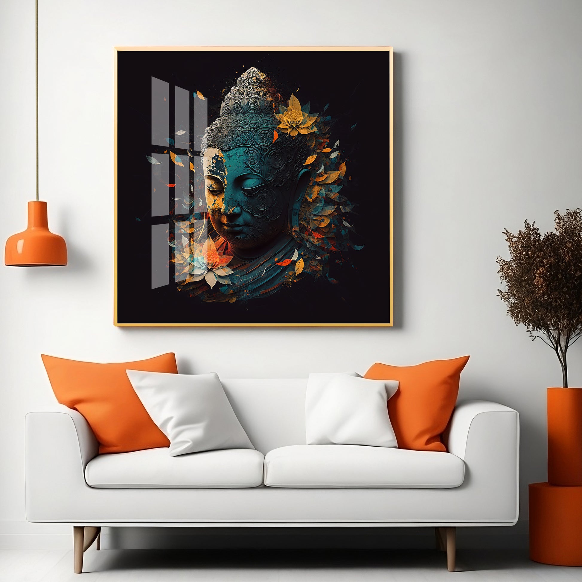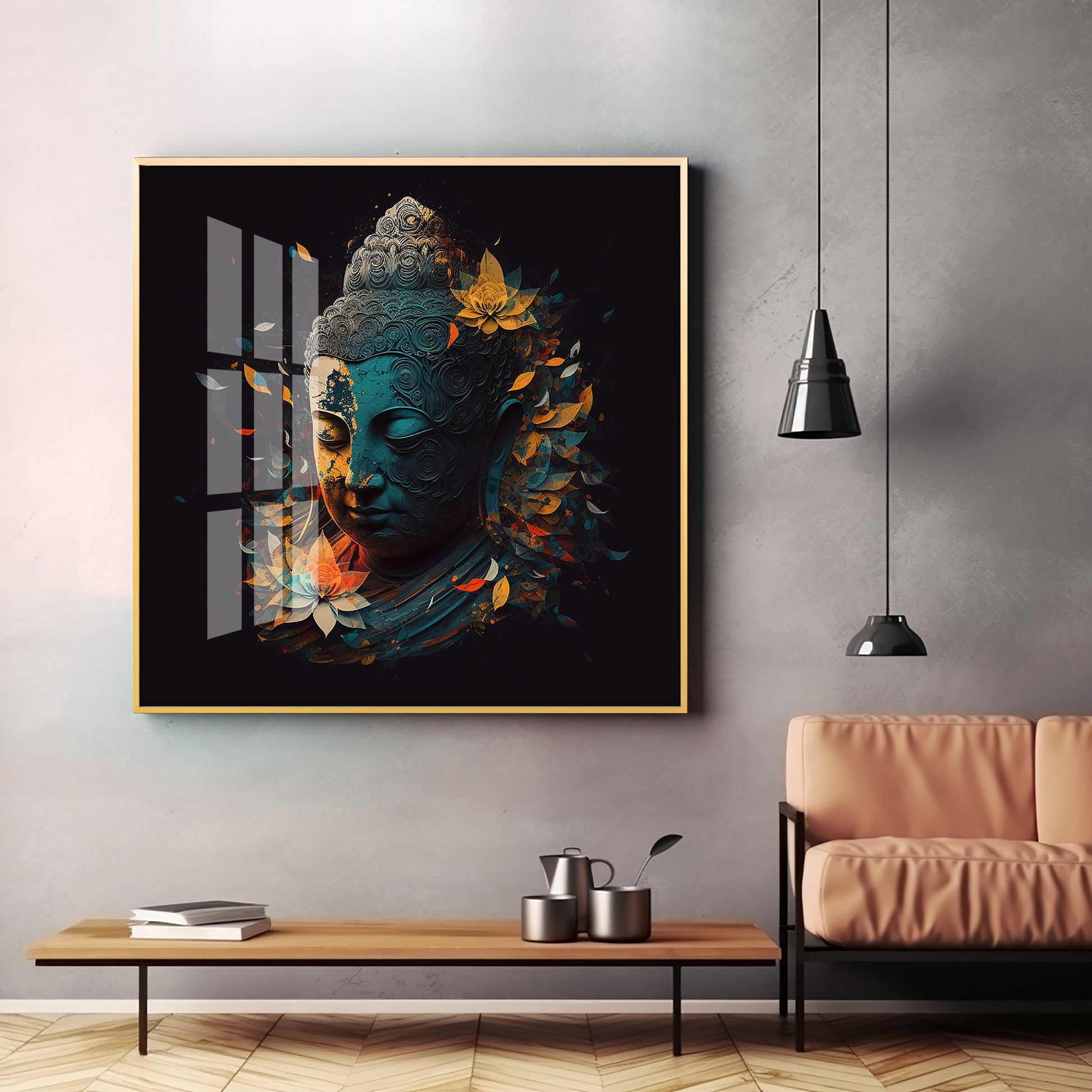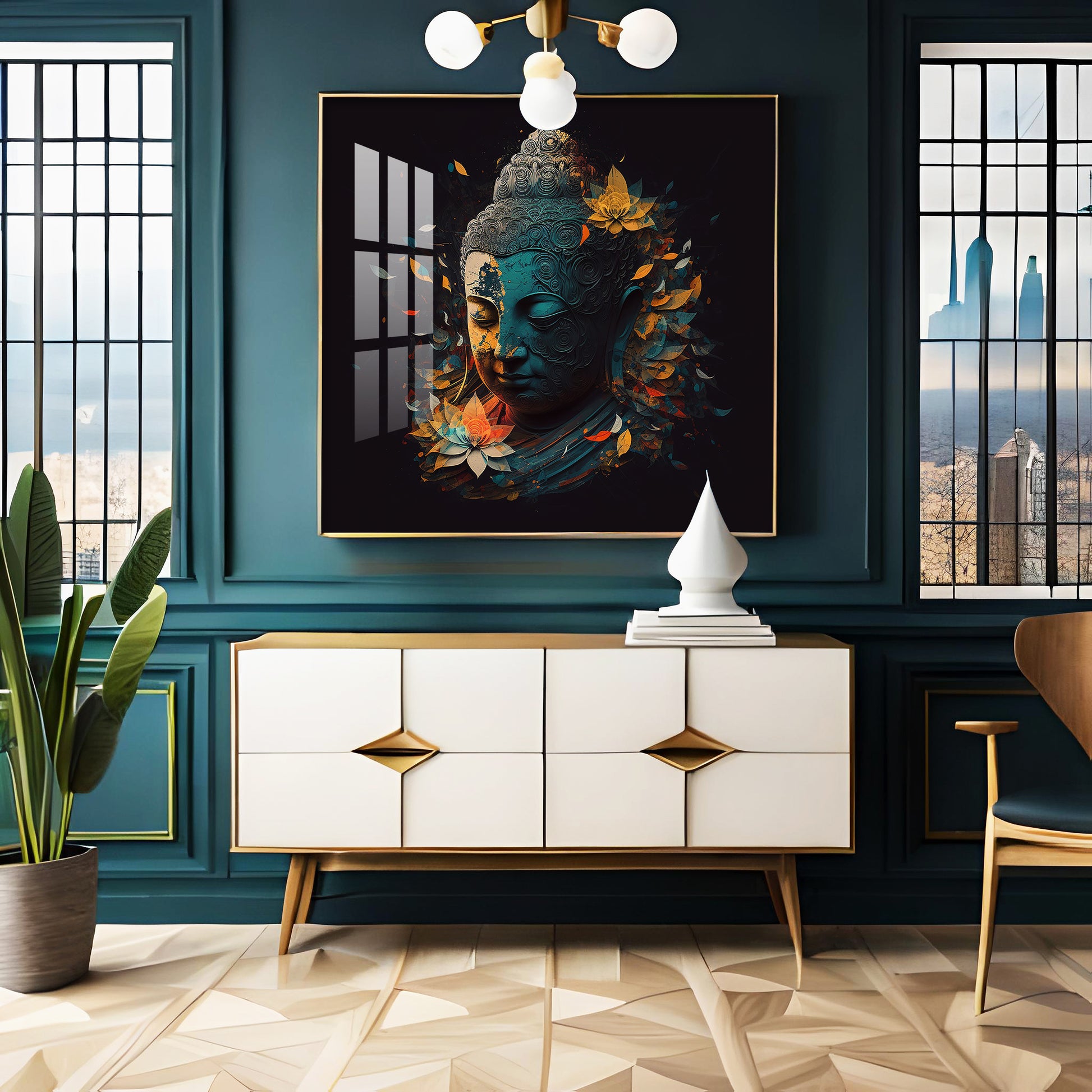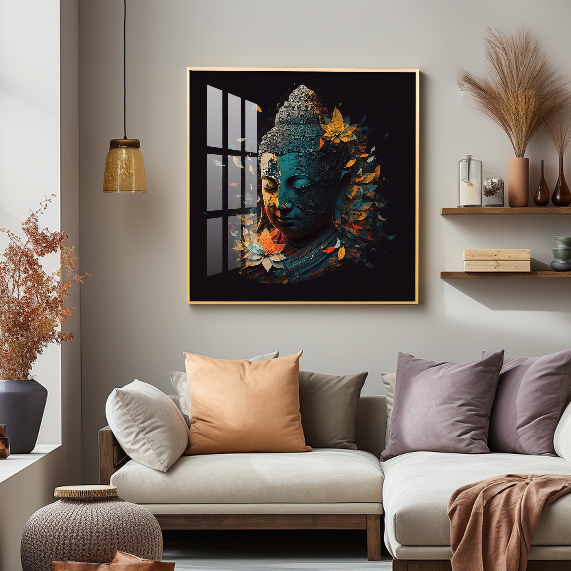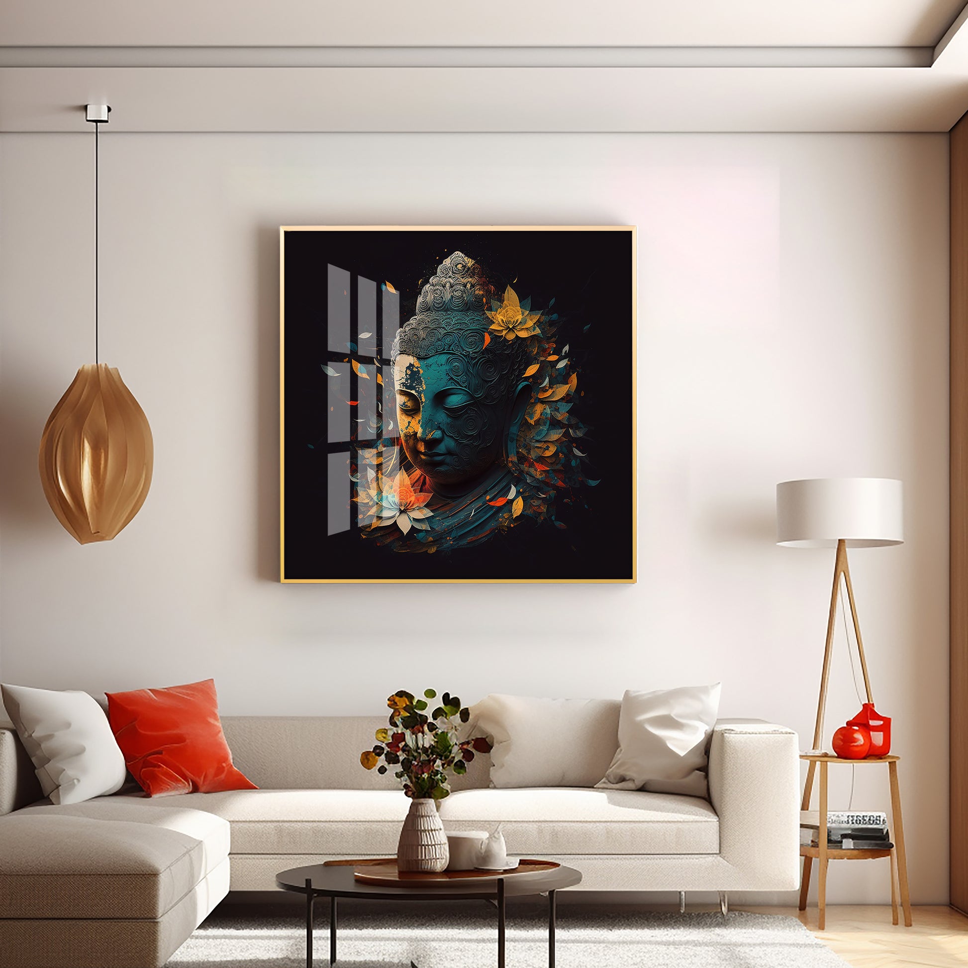 Peaceful Reflection Buddha Glass Finish Square Wall Art