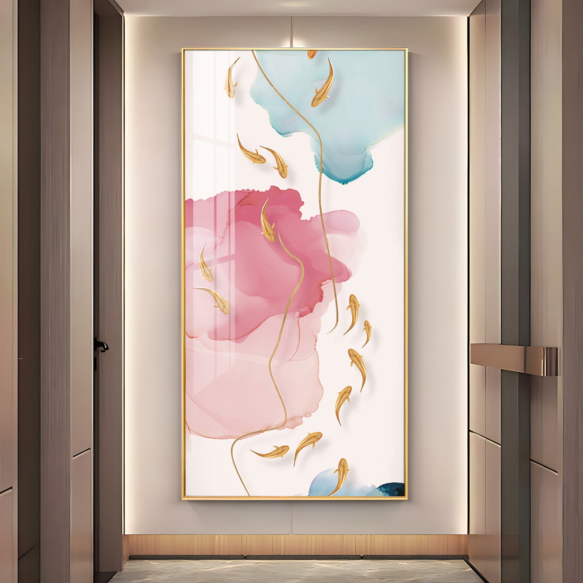 Pink and Blue Floral Glass Finish Vertical Wall Art