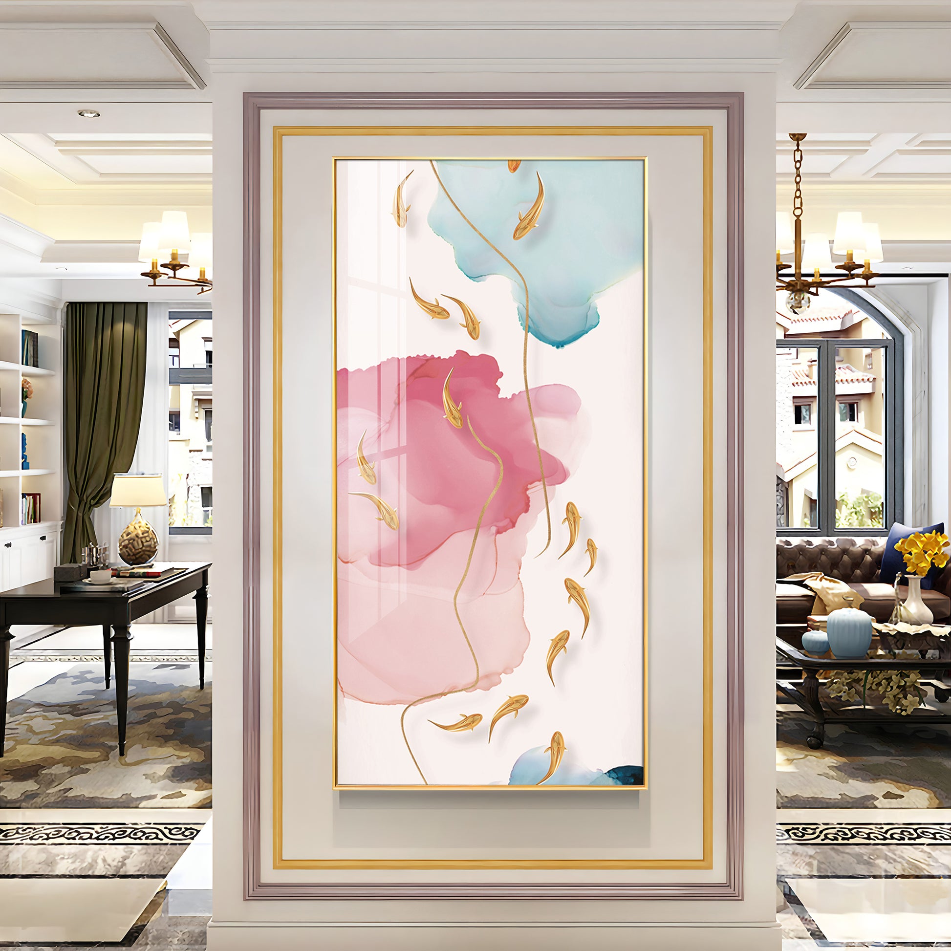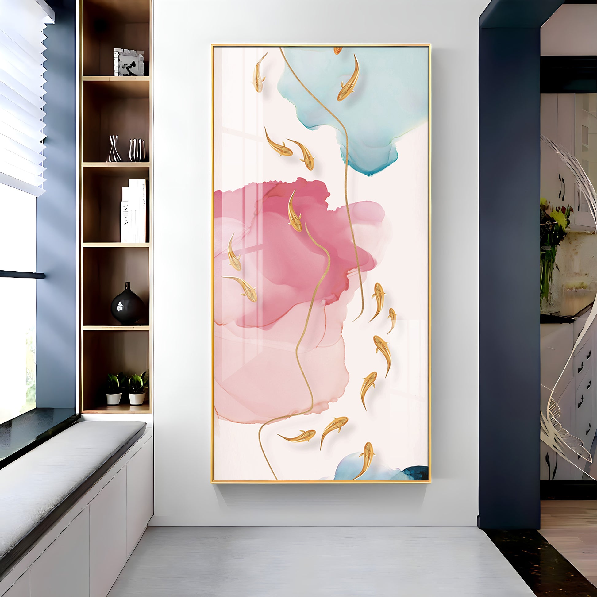 Our Framed glass finish wall art is easy to hang. The metal hooks are included in the box of your ordered wall art. You can simply mount it to the wall you want to place.