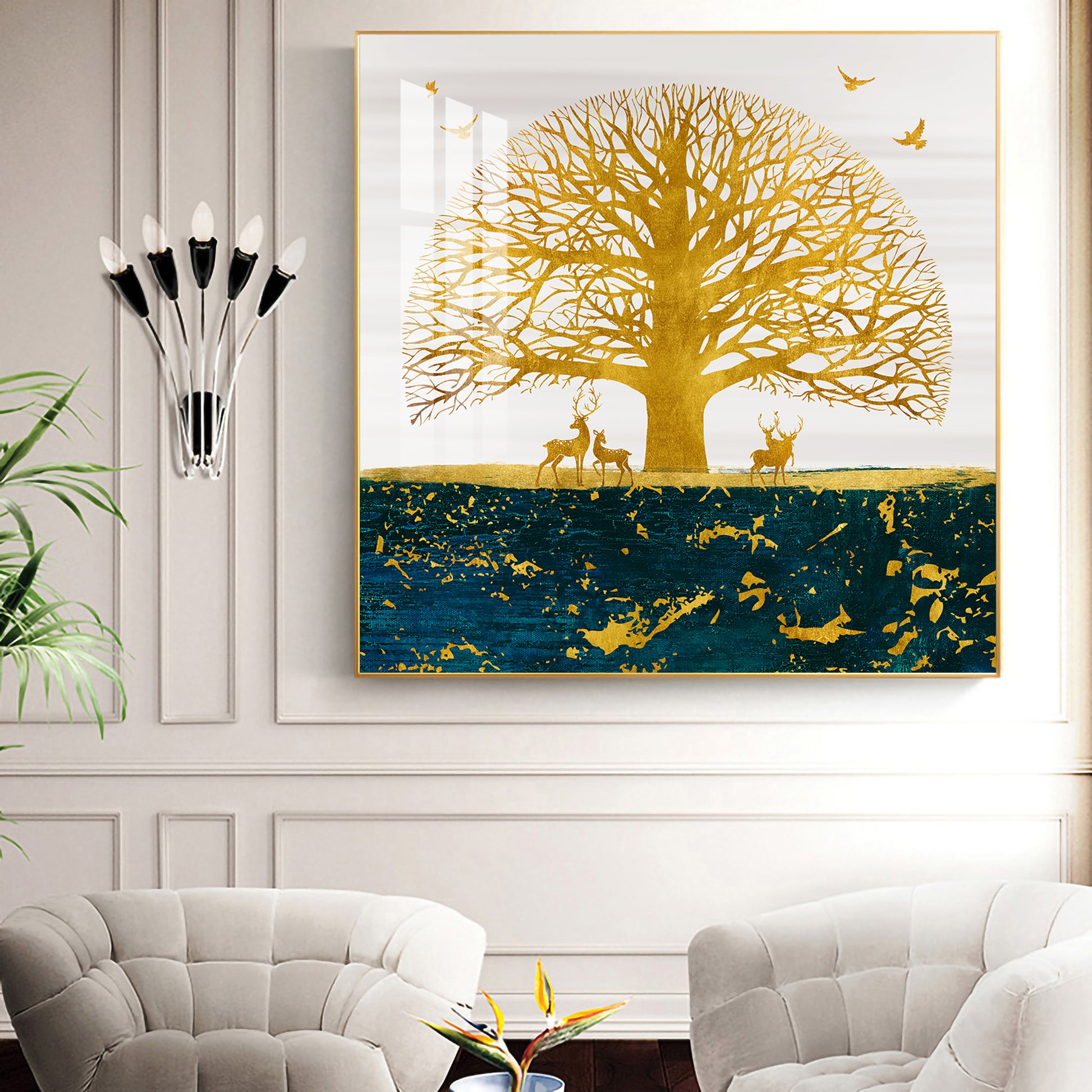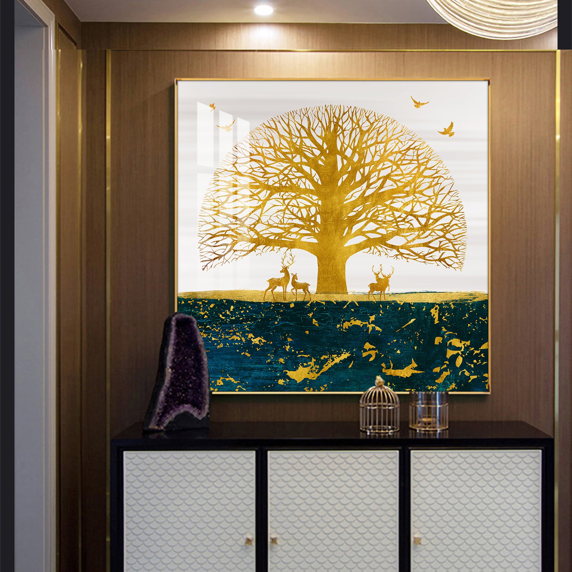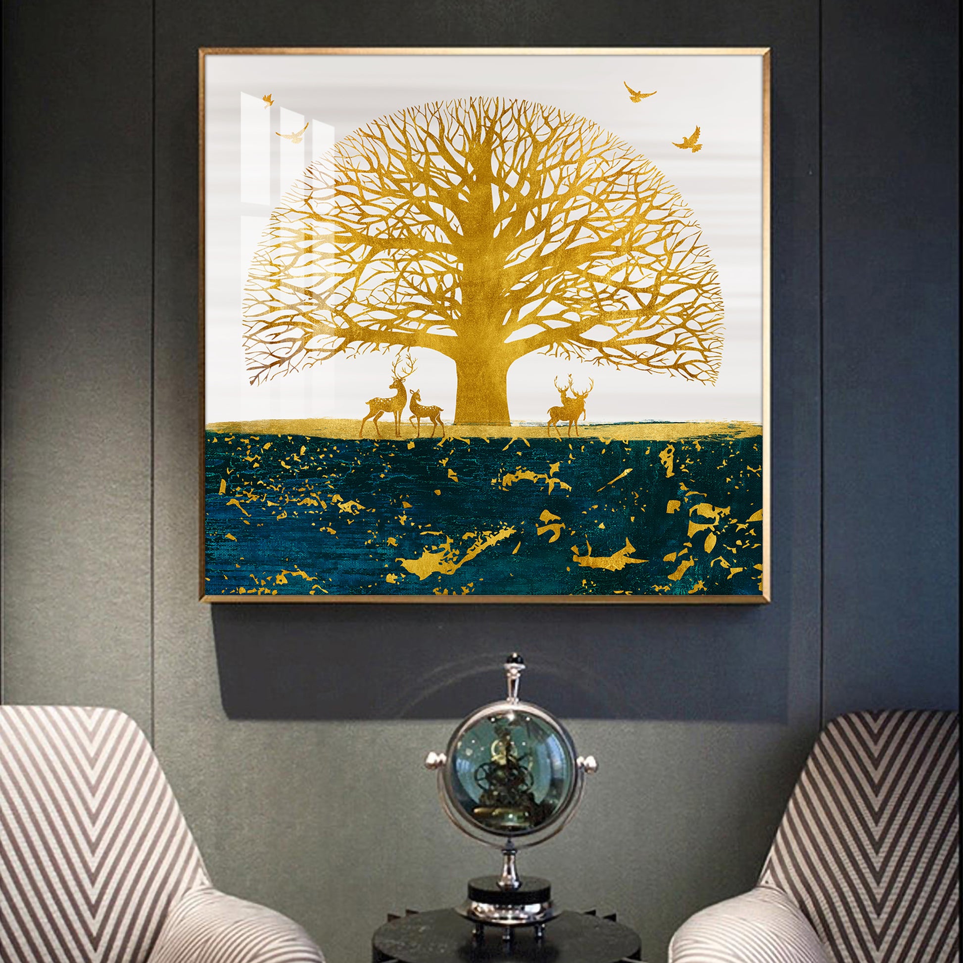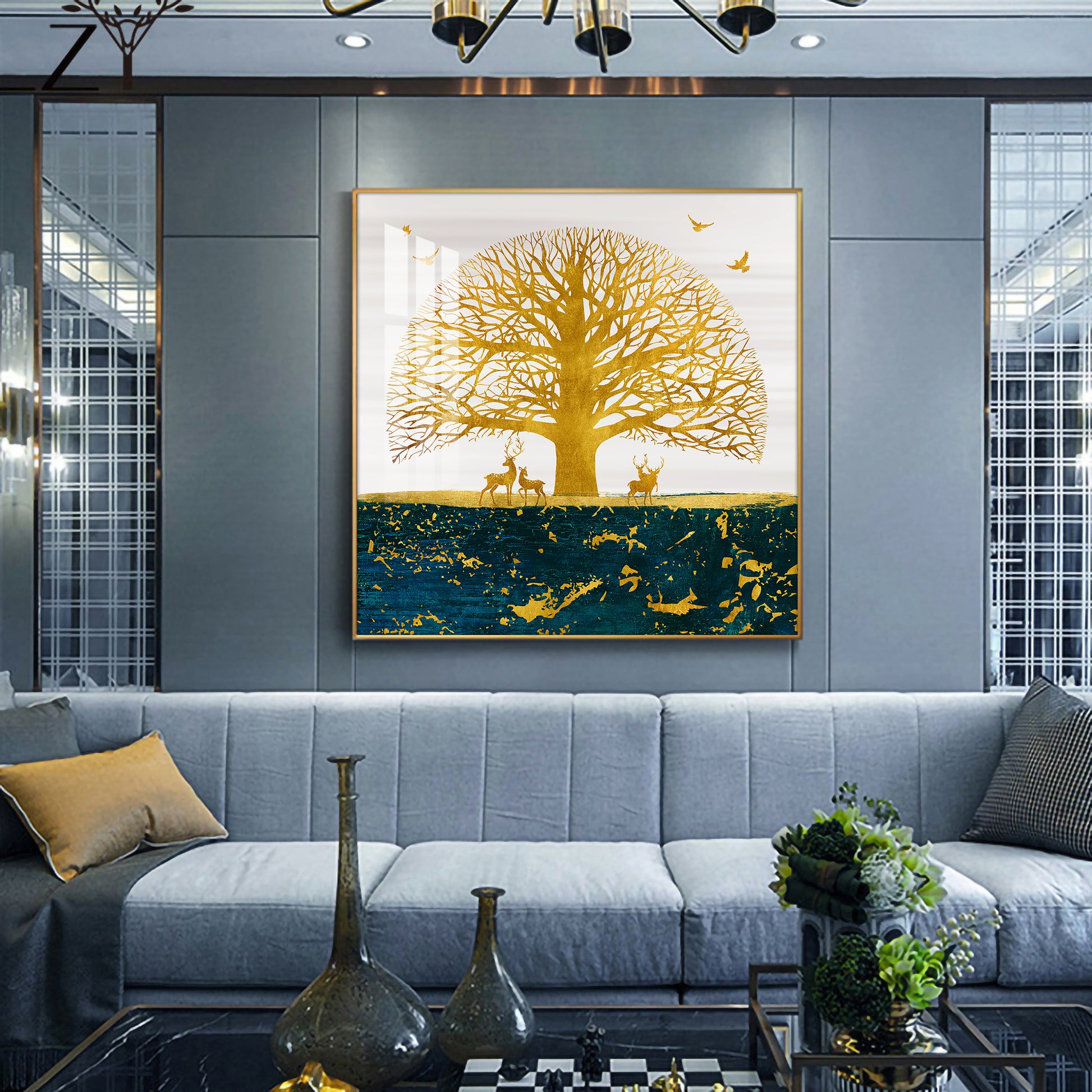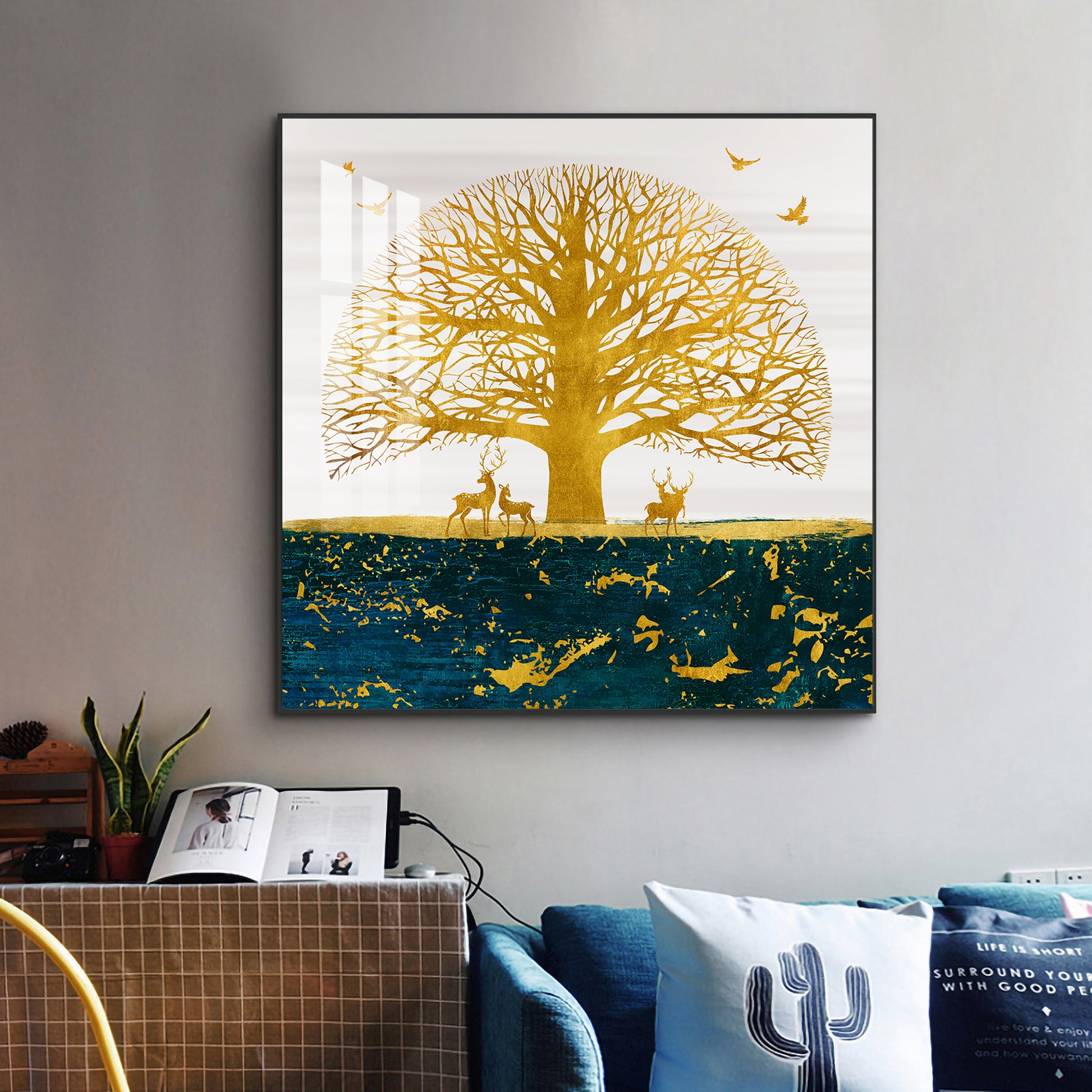 Portrait of Deer and Tree Glass Finish Square Wall Art