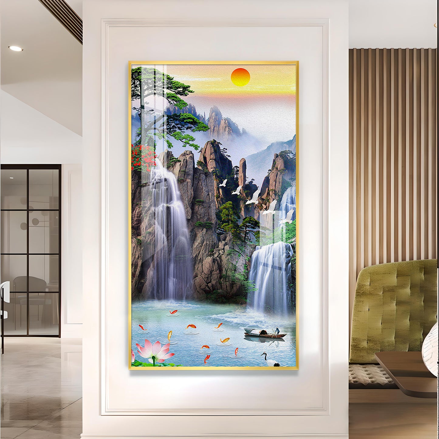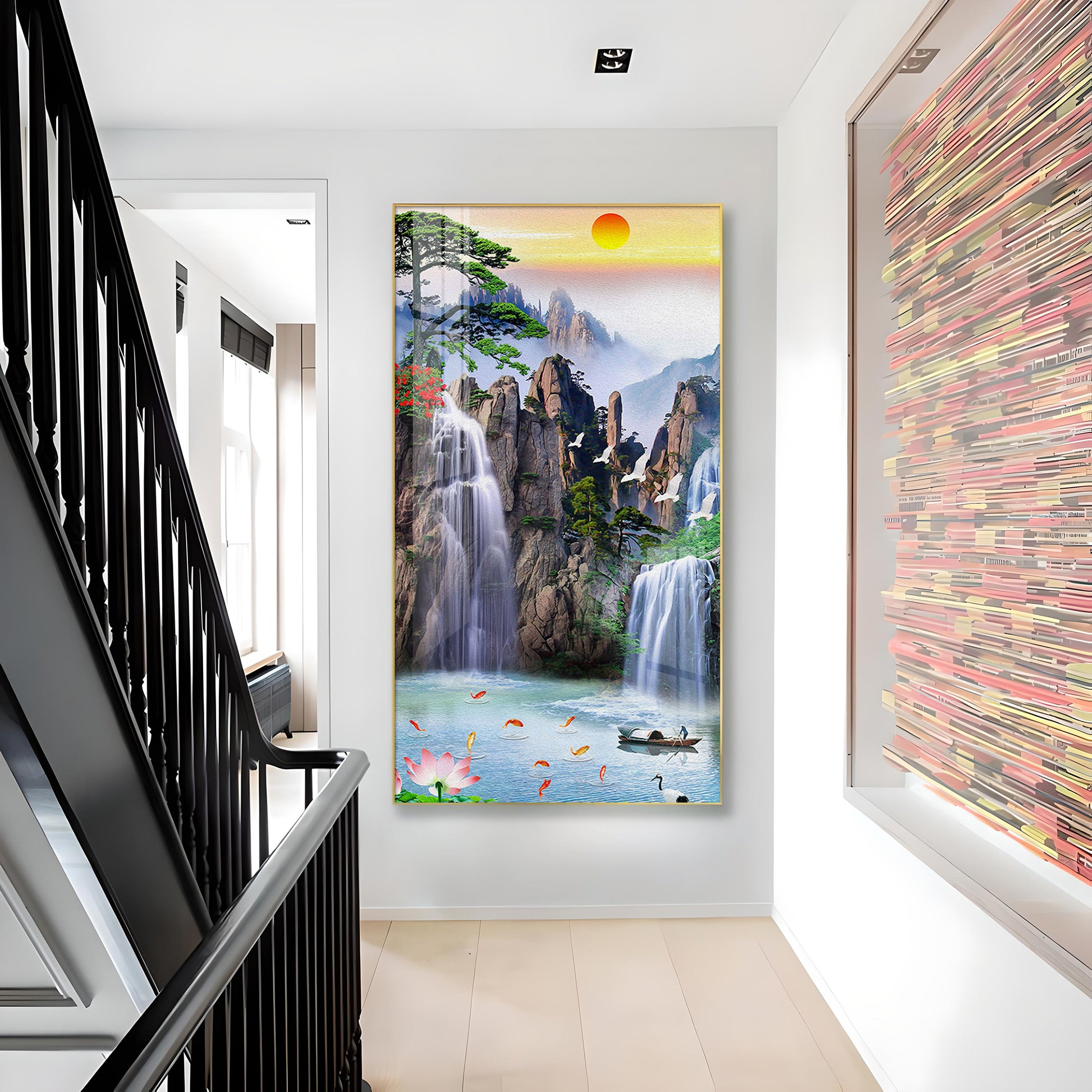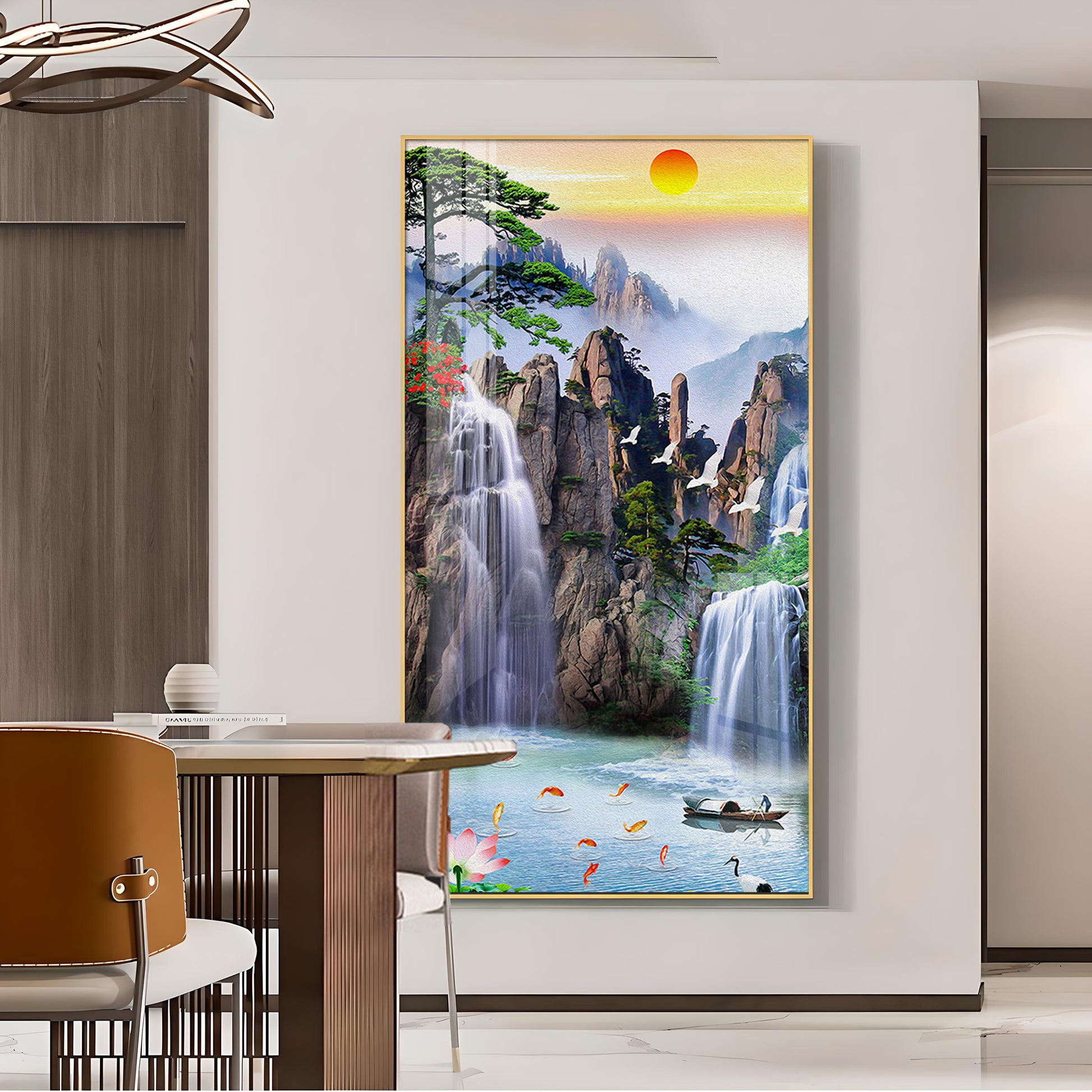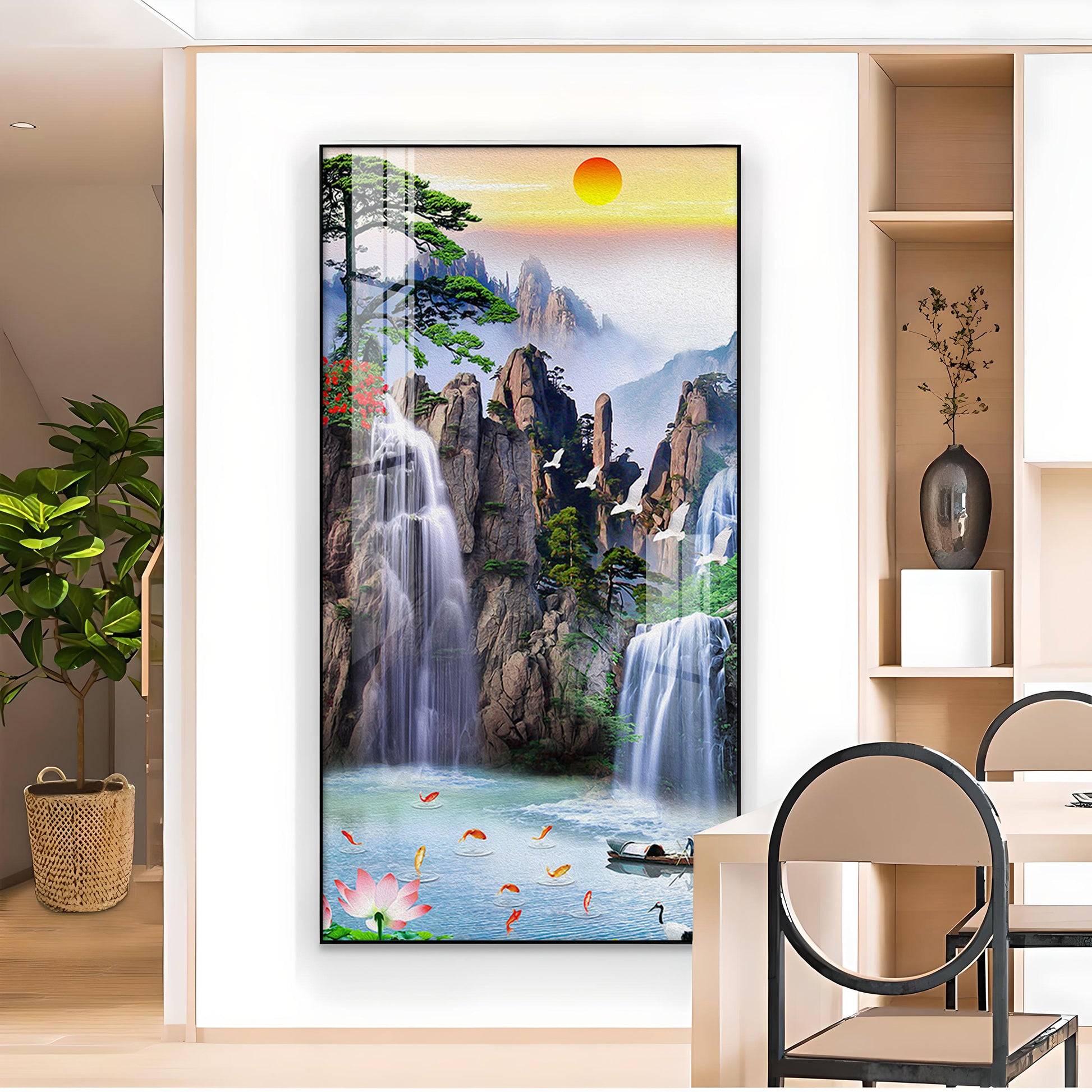 Portrait of Water and Birds Glass Finish Vertical Wall Art