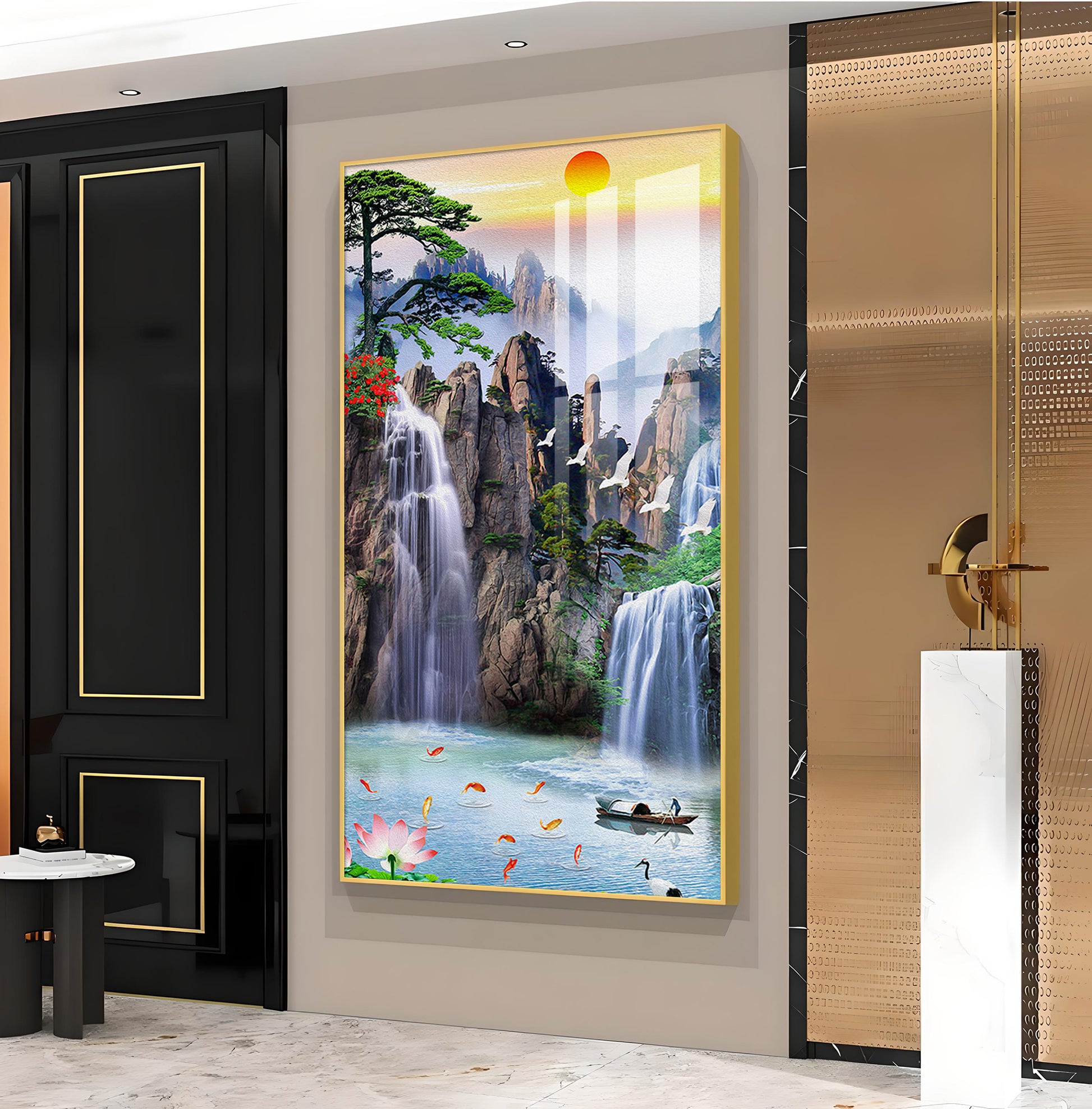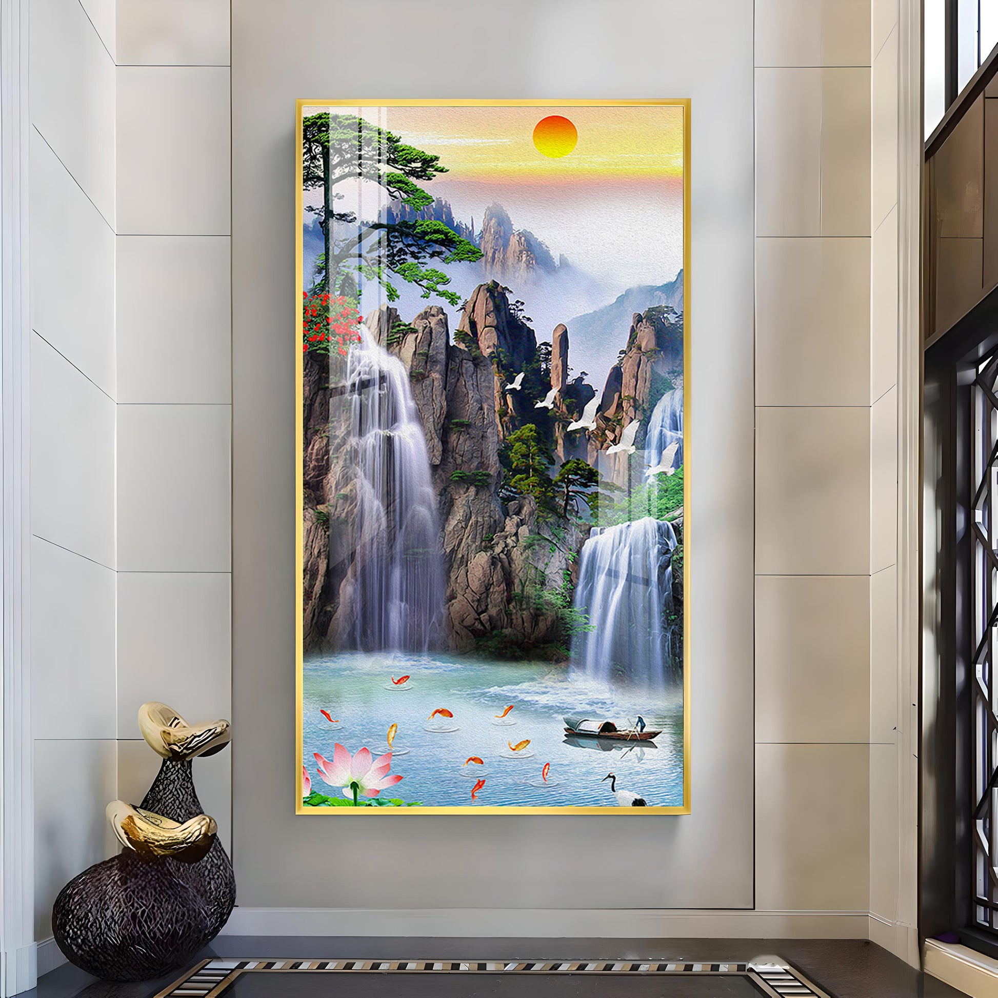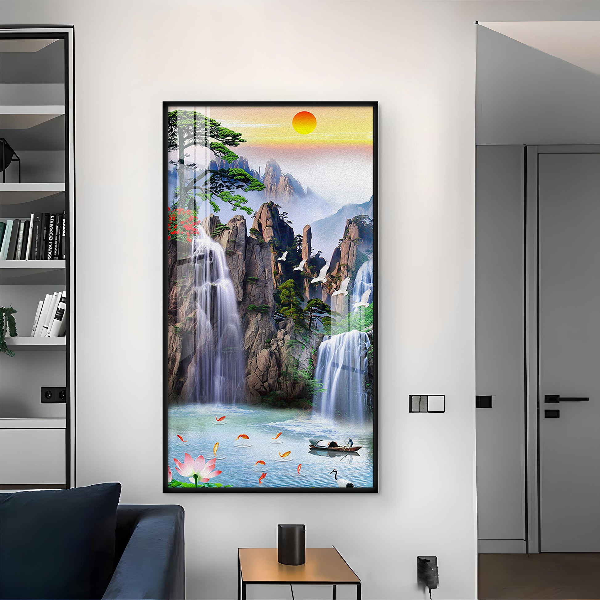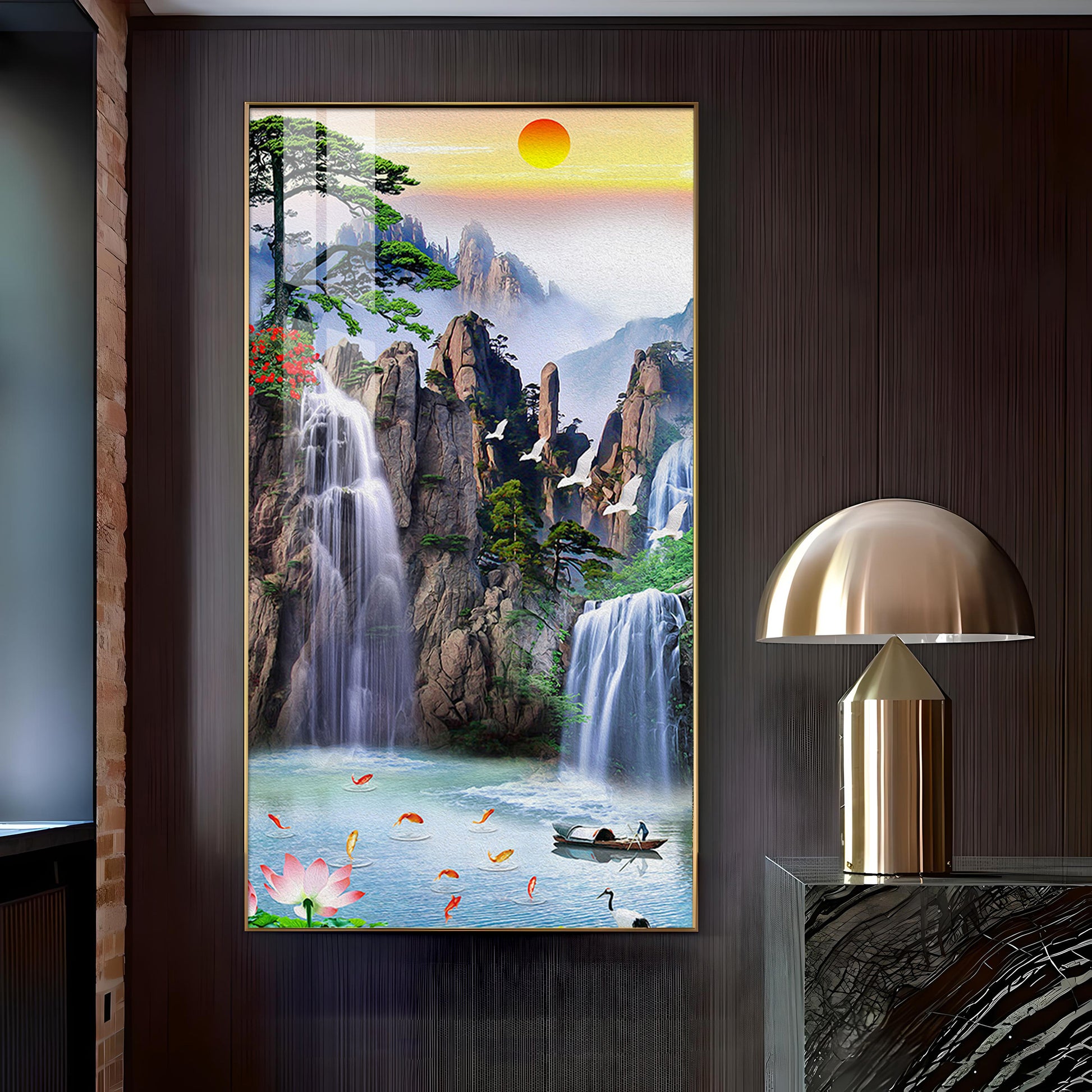 Portrait of Water and Birds Glass Finish Vertical Wall Art