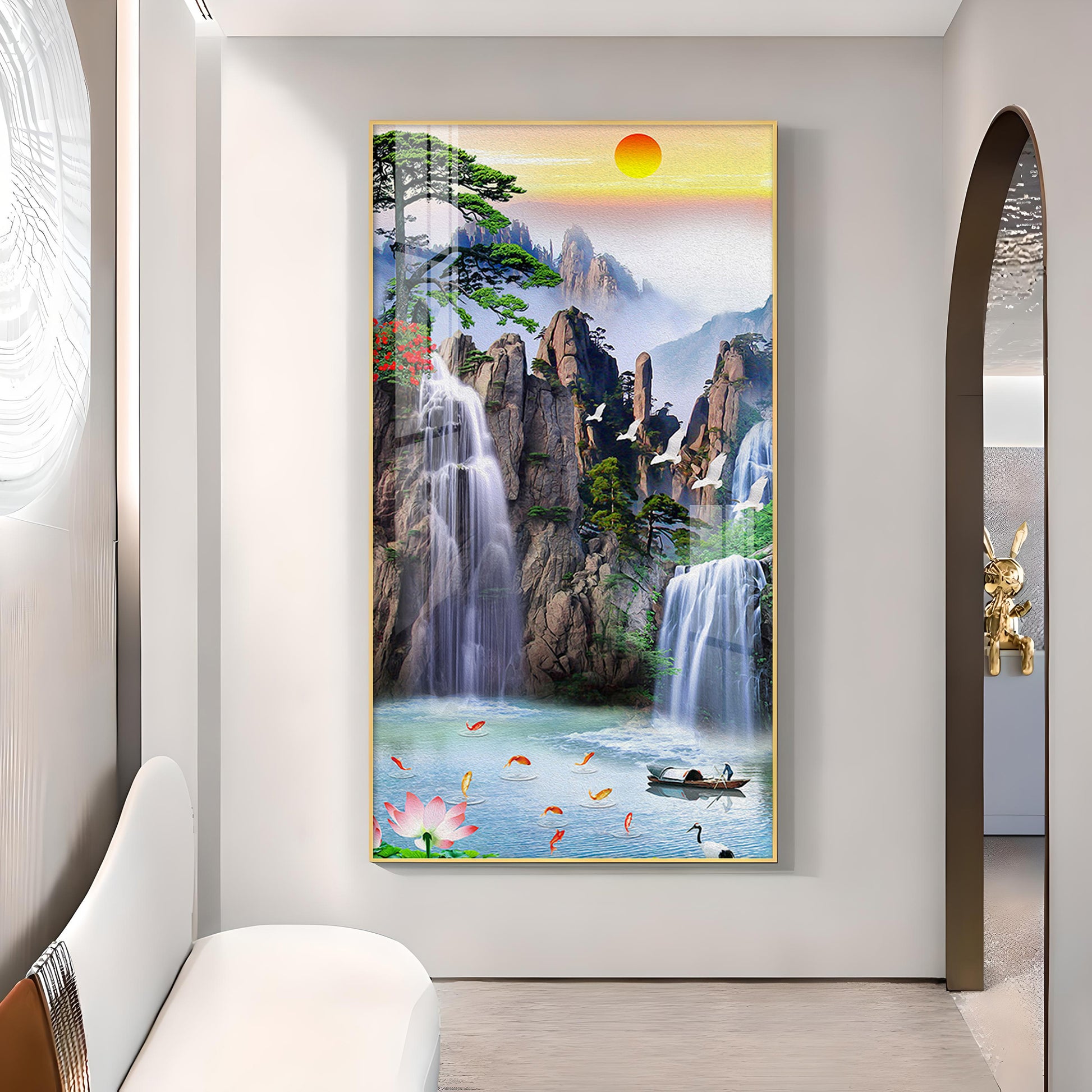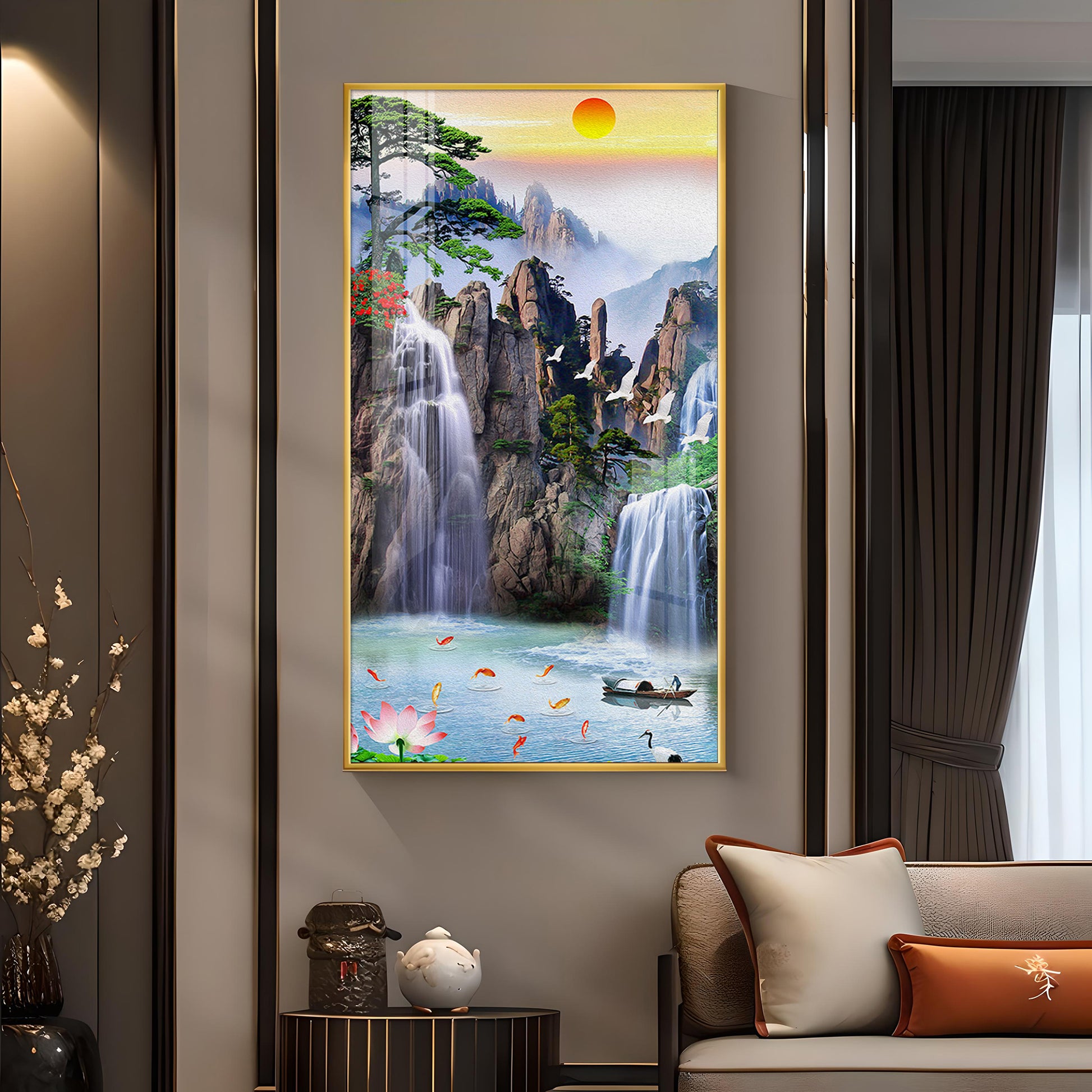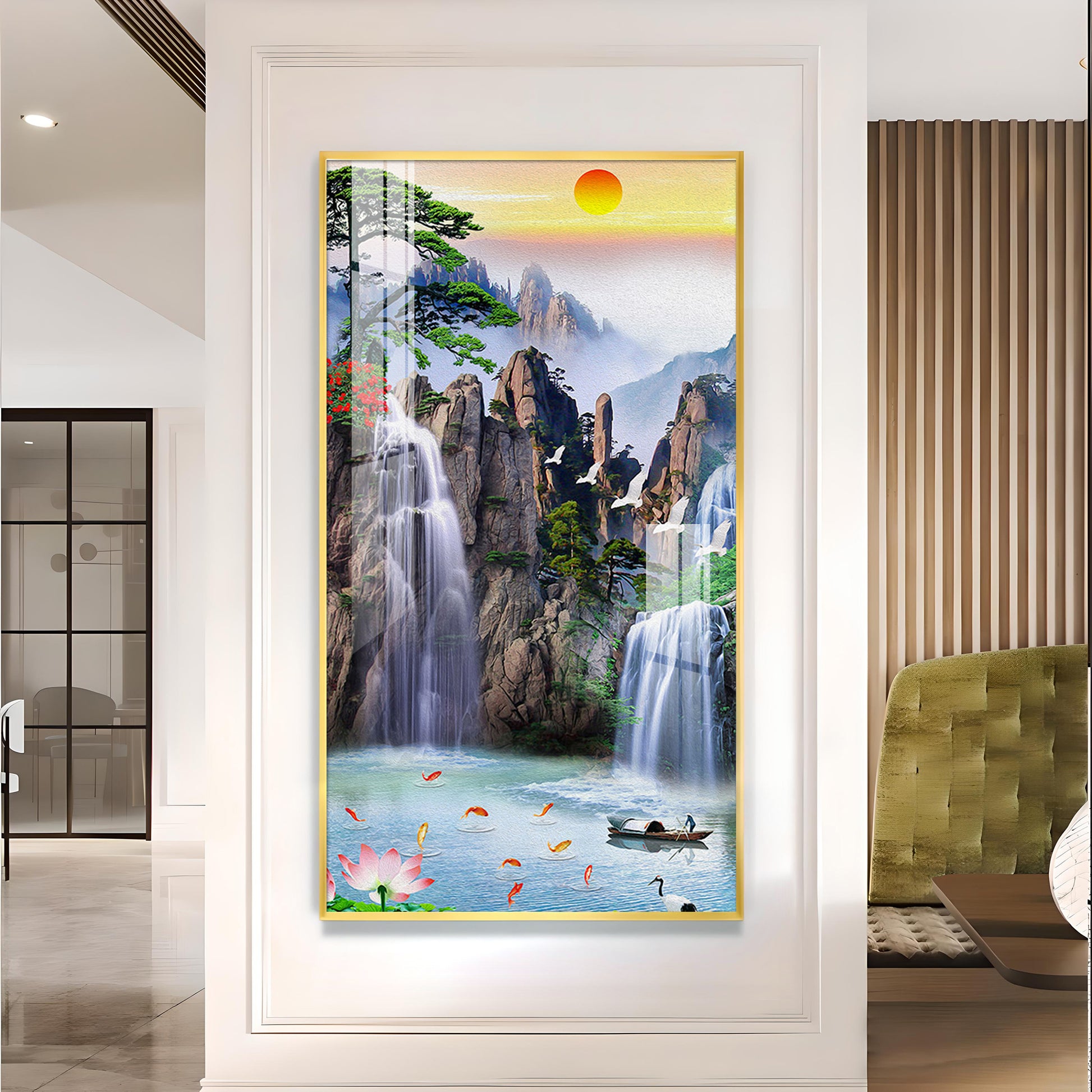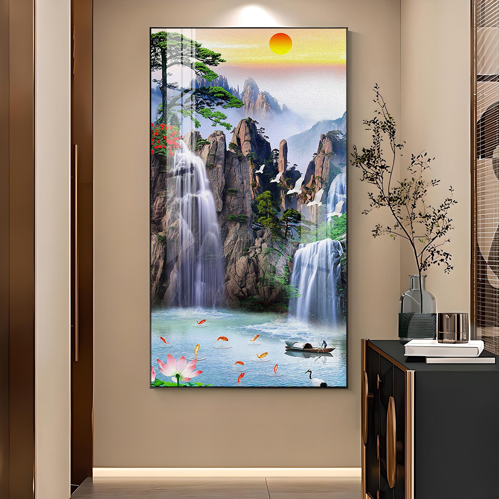 Portrait of Water and Birds Glass Finish Vertical Wall Art