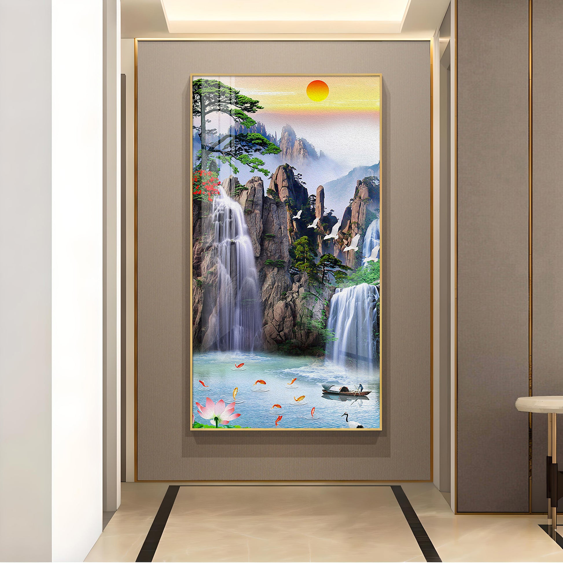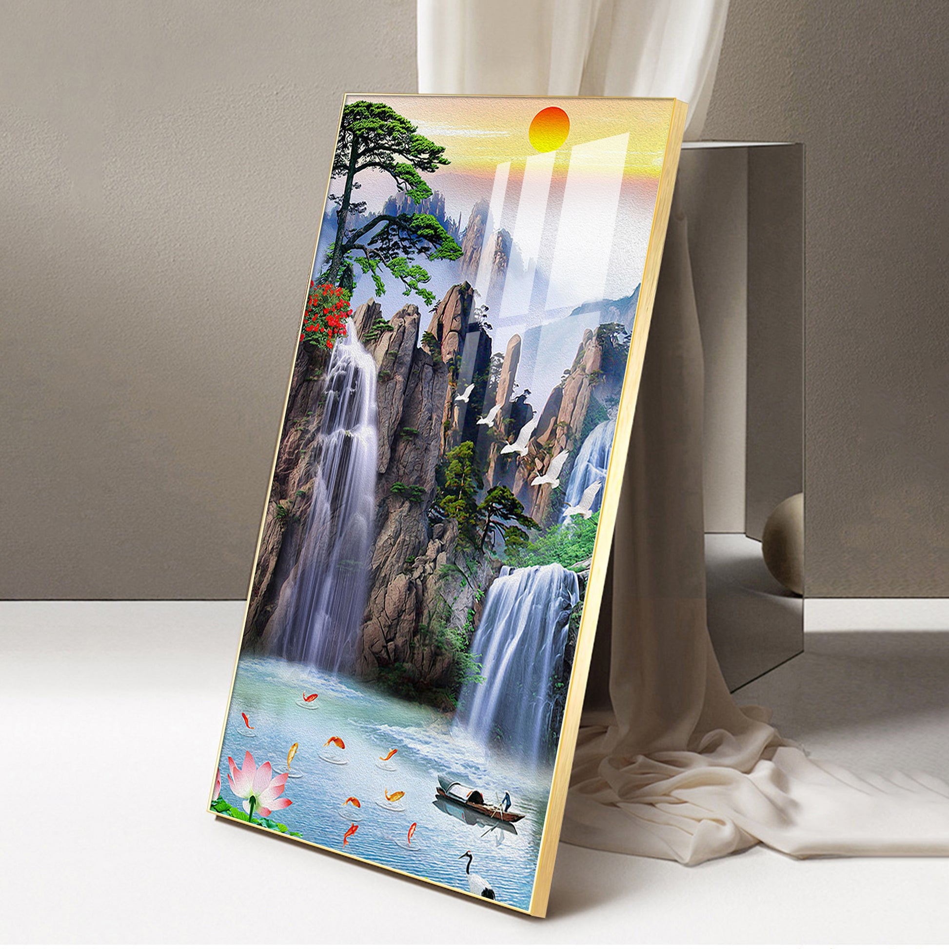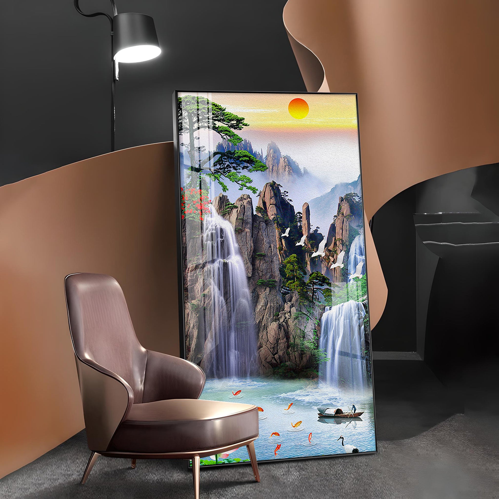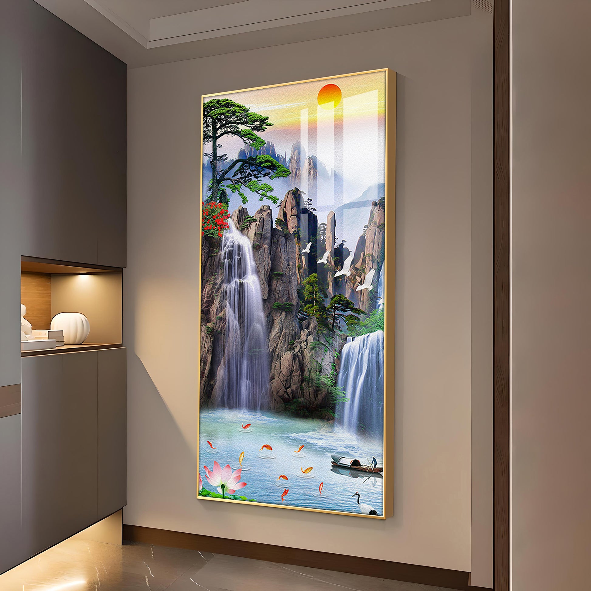 Portrait of Water and Birds Glass Finish Vertical Wall Art