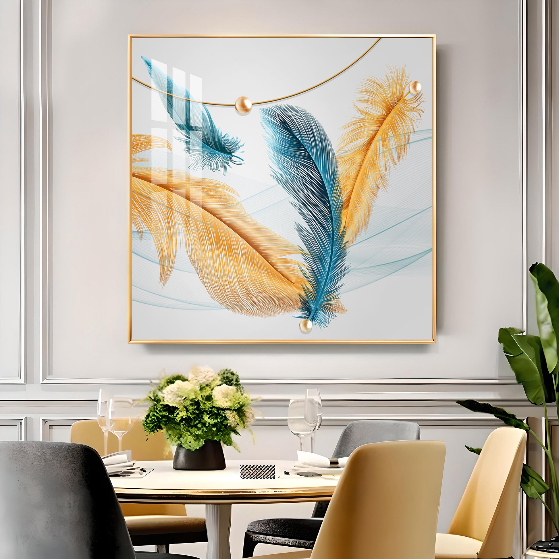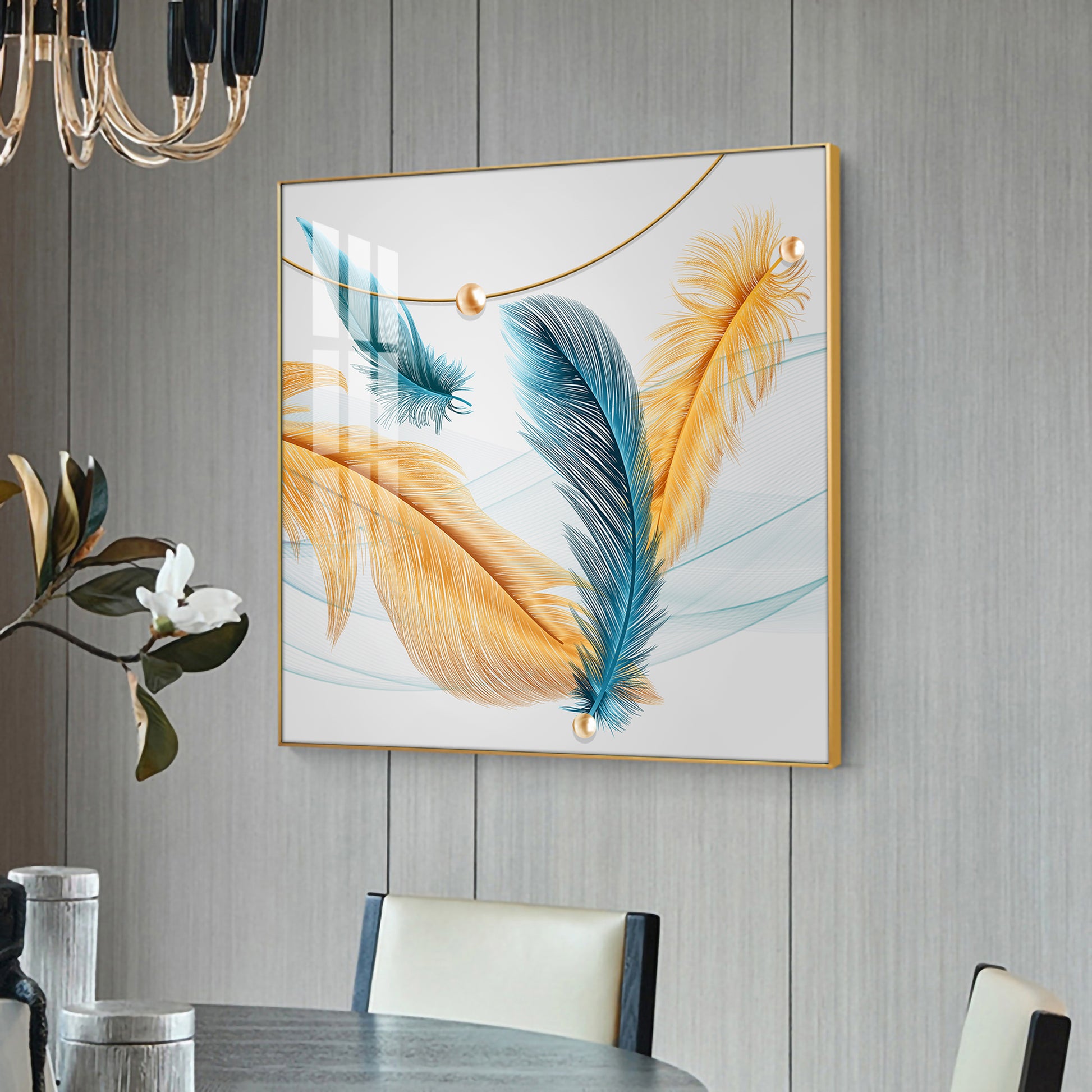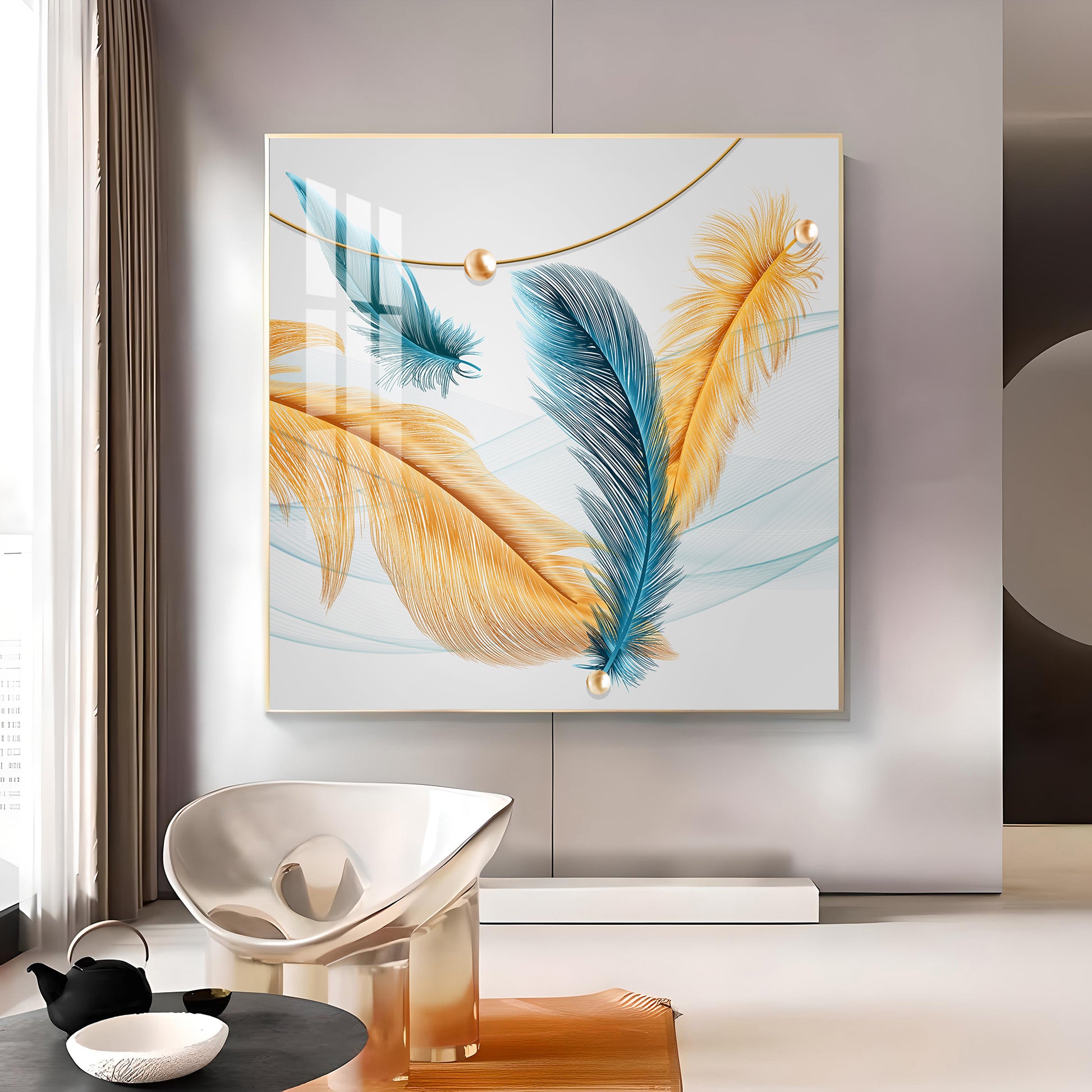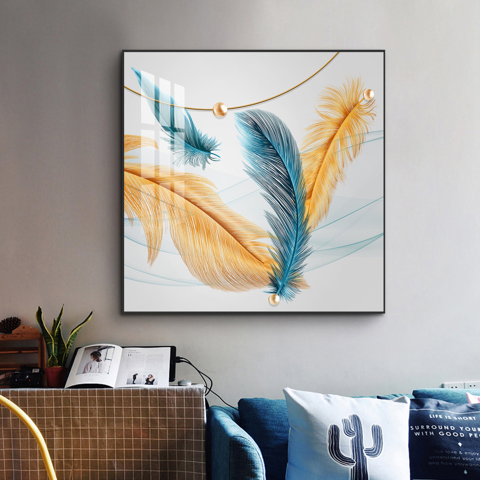 Radiant Blue and Yellow Plume Glass Finish Square Wall Art