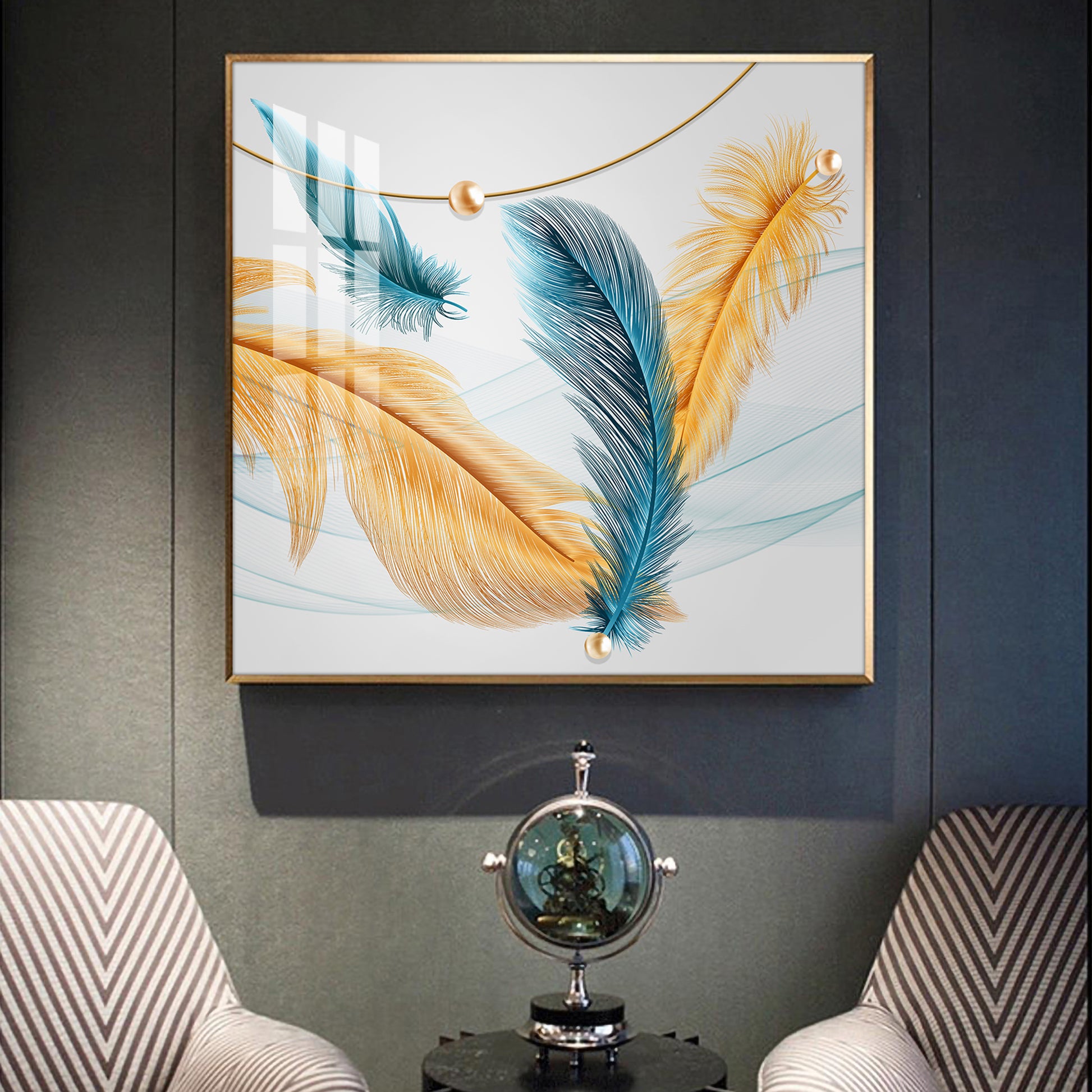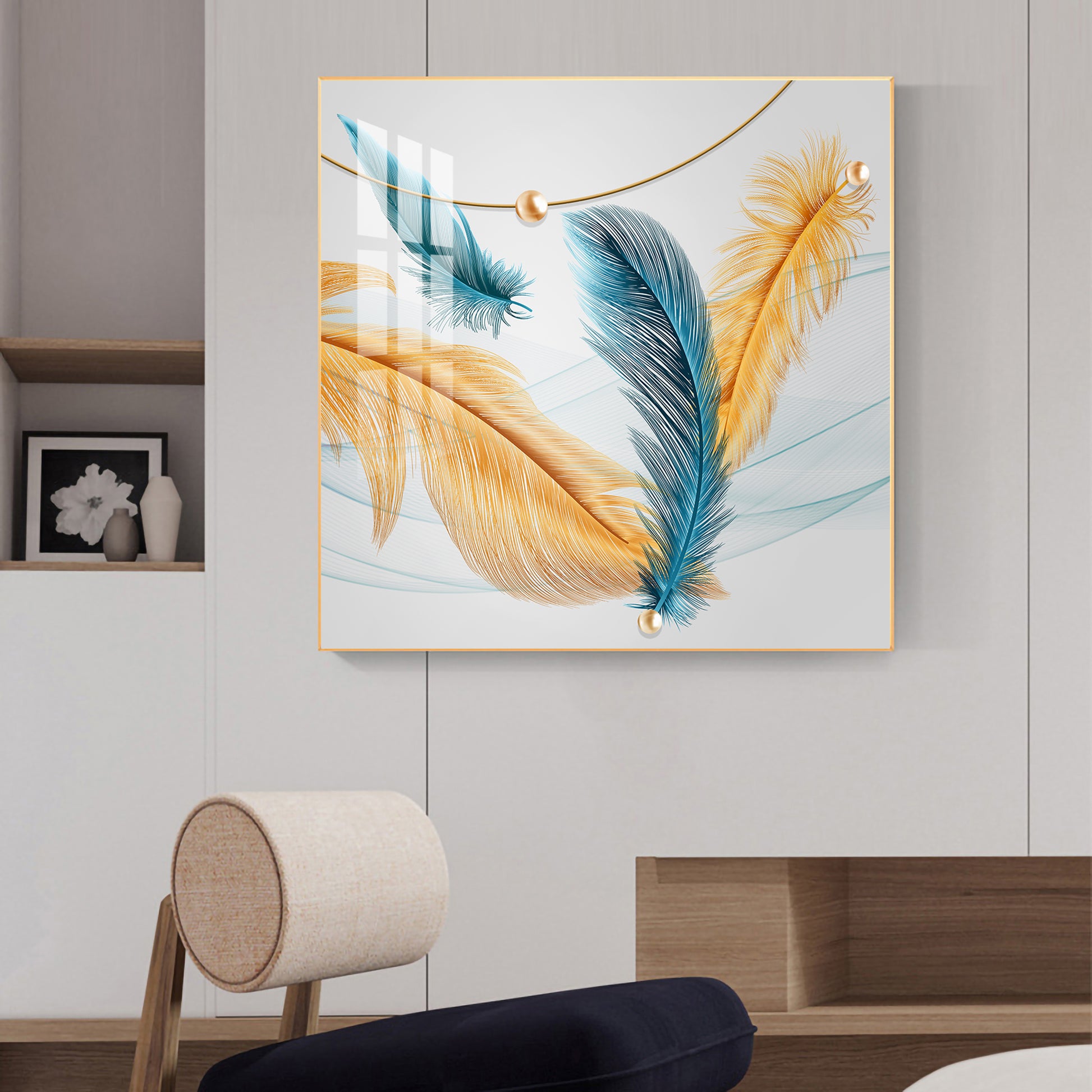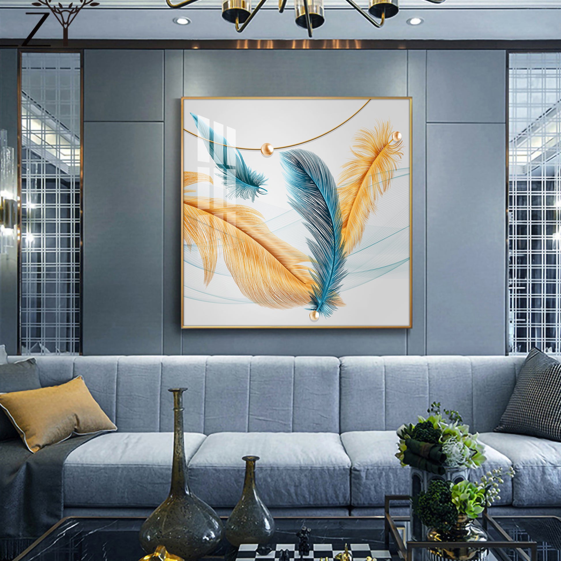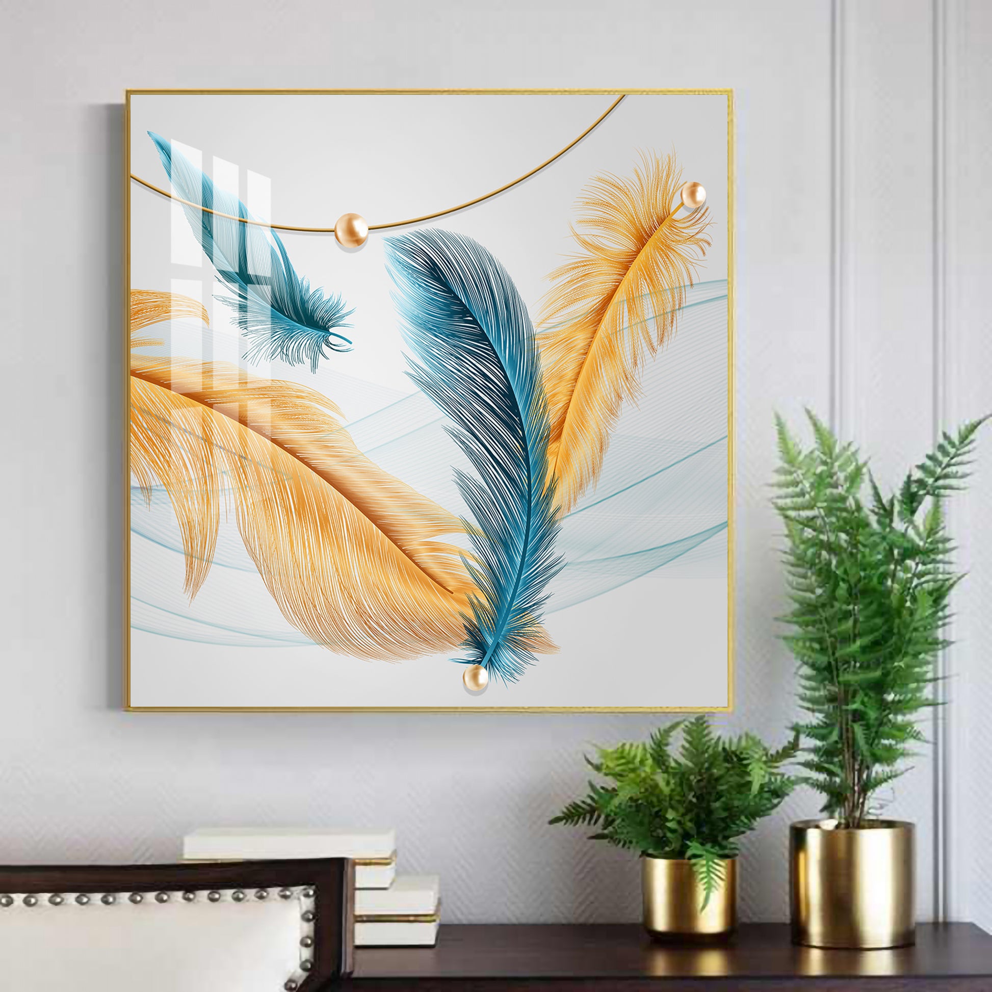 Radiant Blue and Yellow Plume Glass Finish Square Wall Art