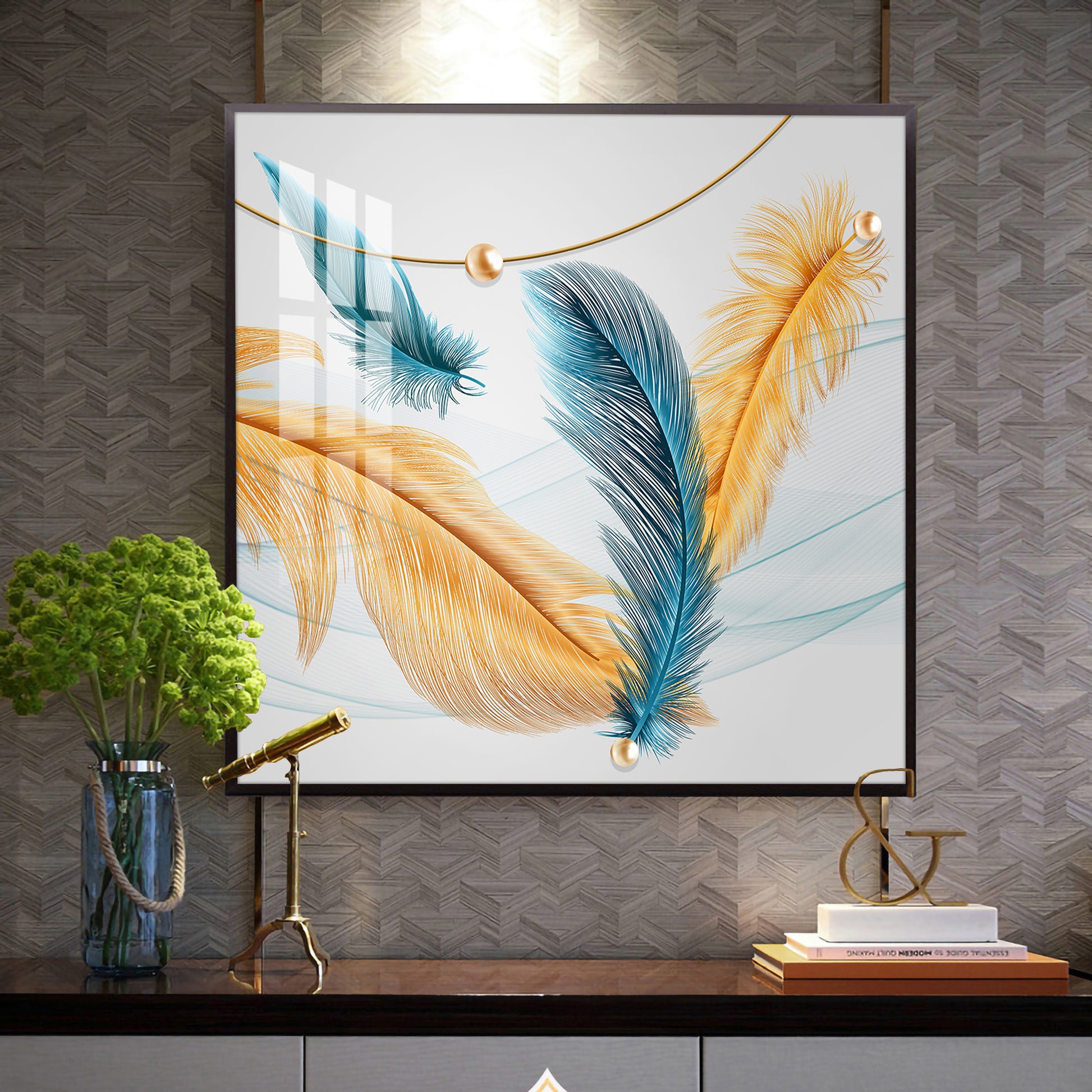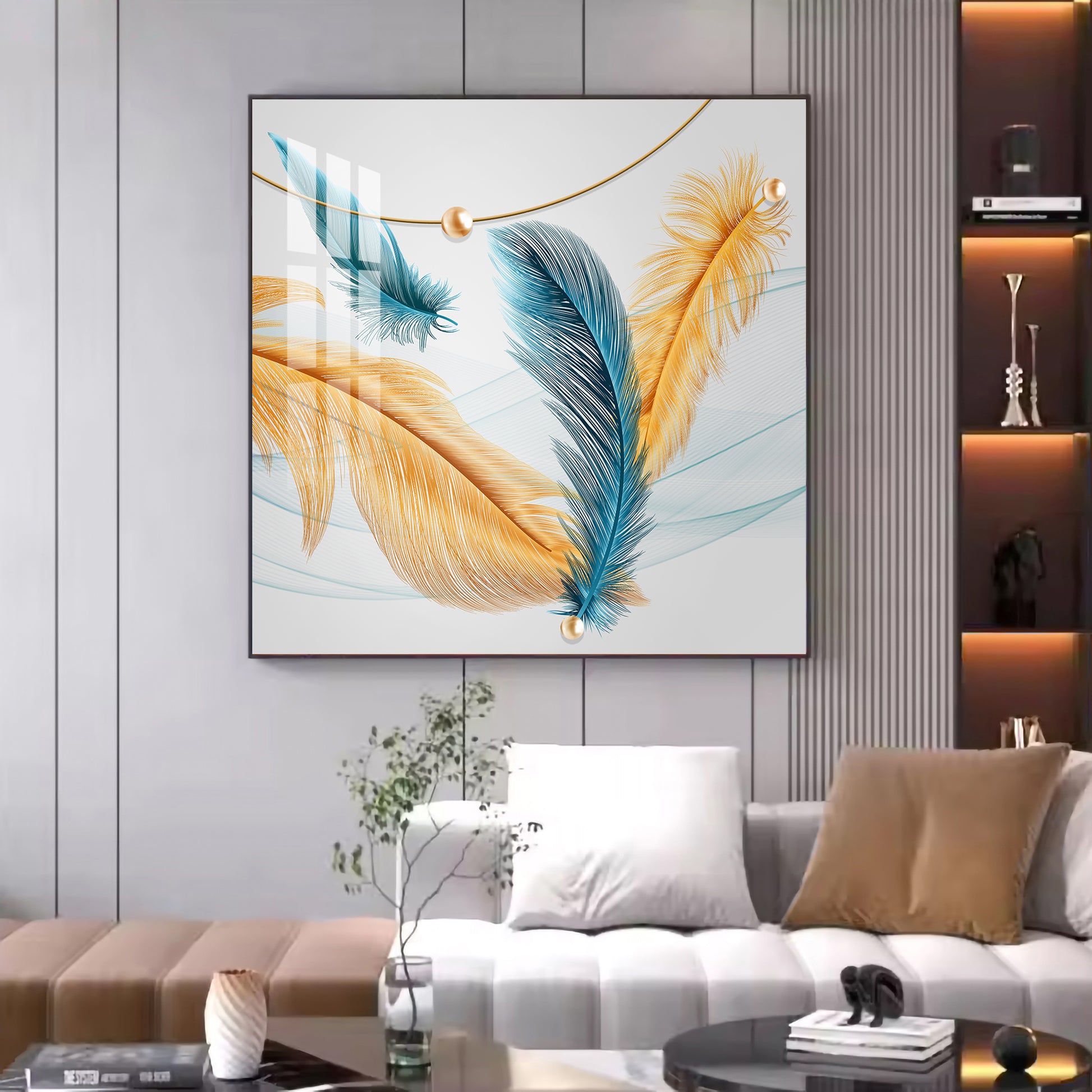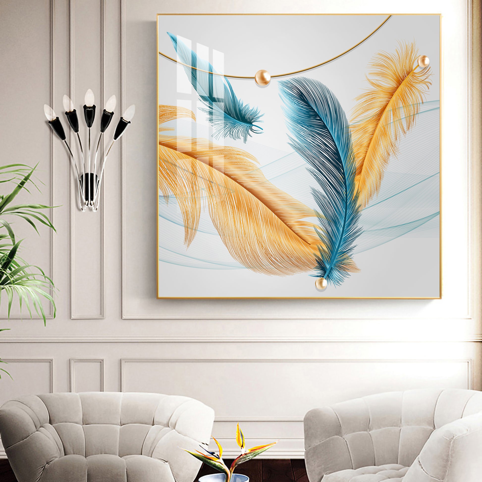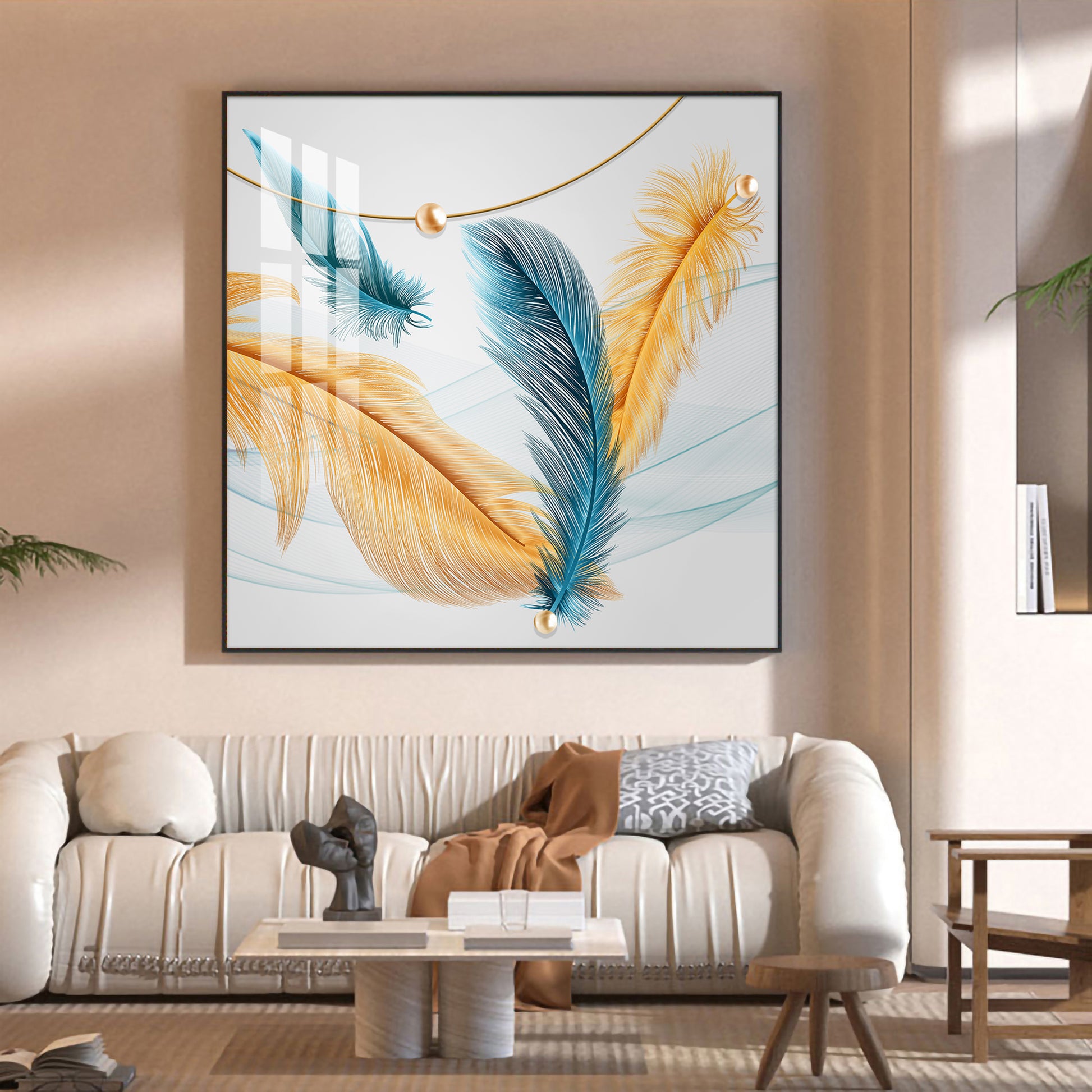 Radiant Blue and Yellow Plume Glass Finish Square Wall Art