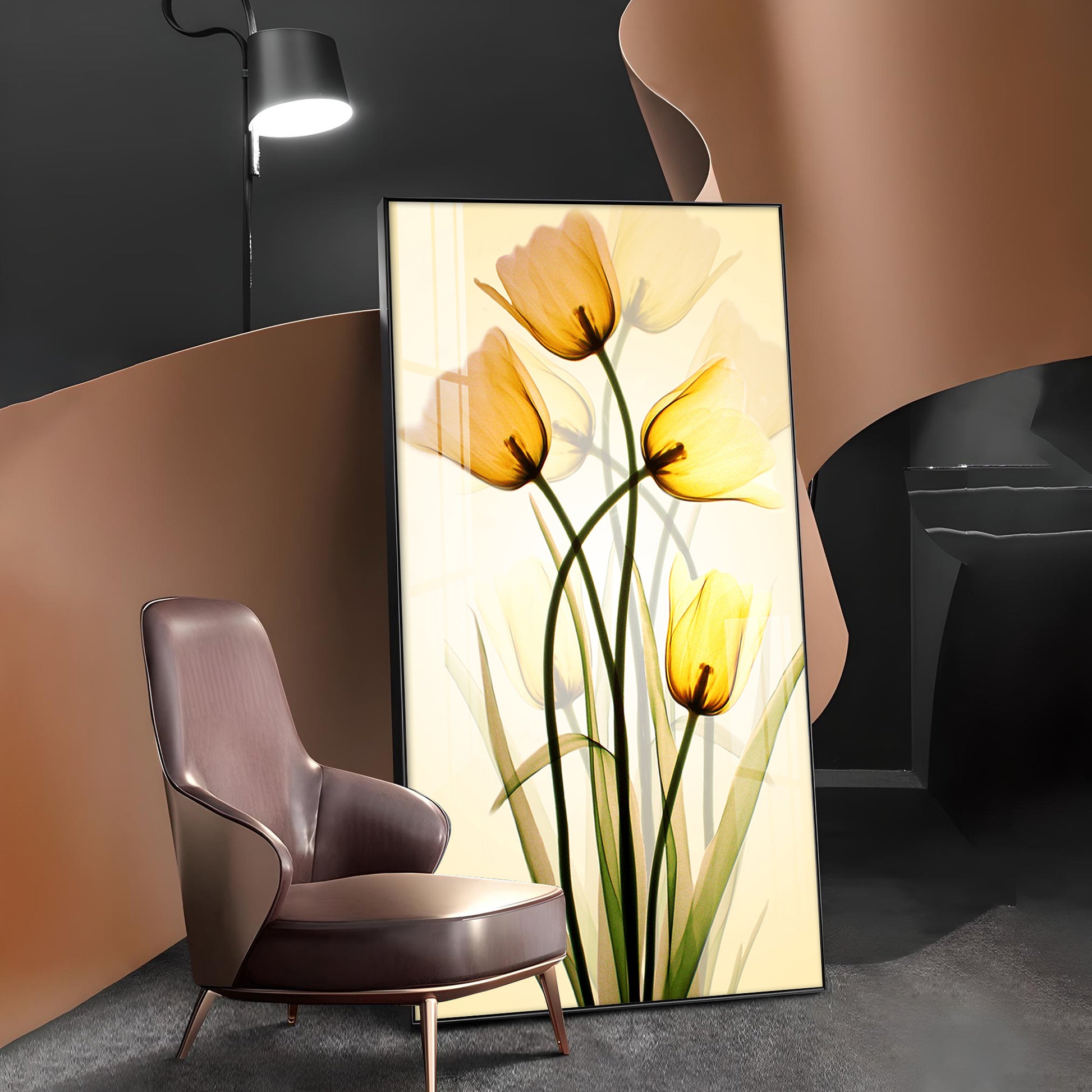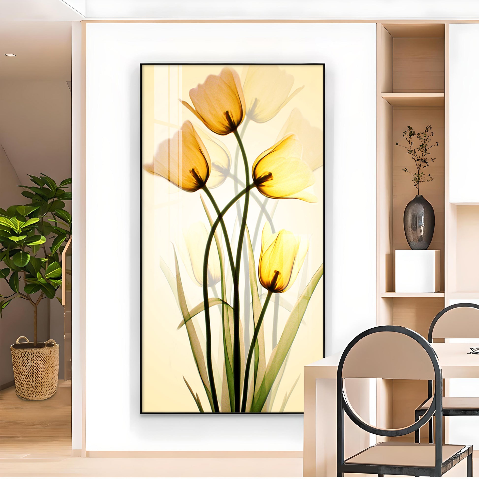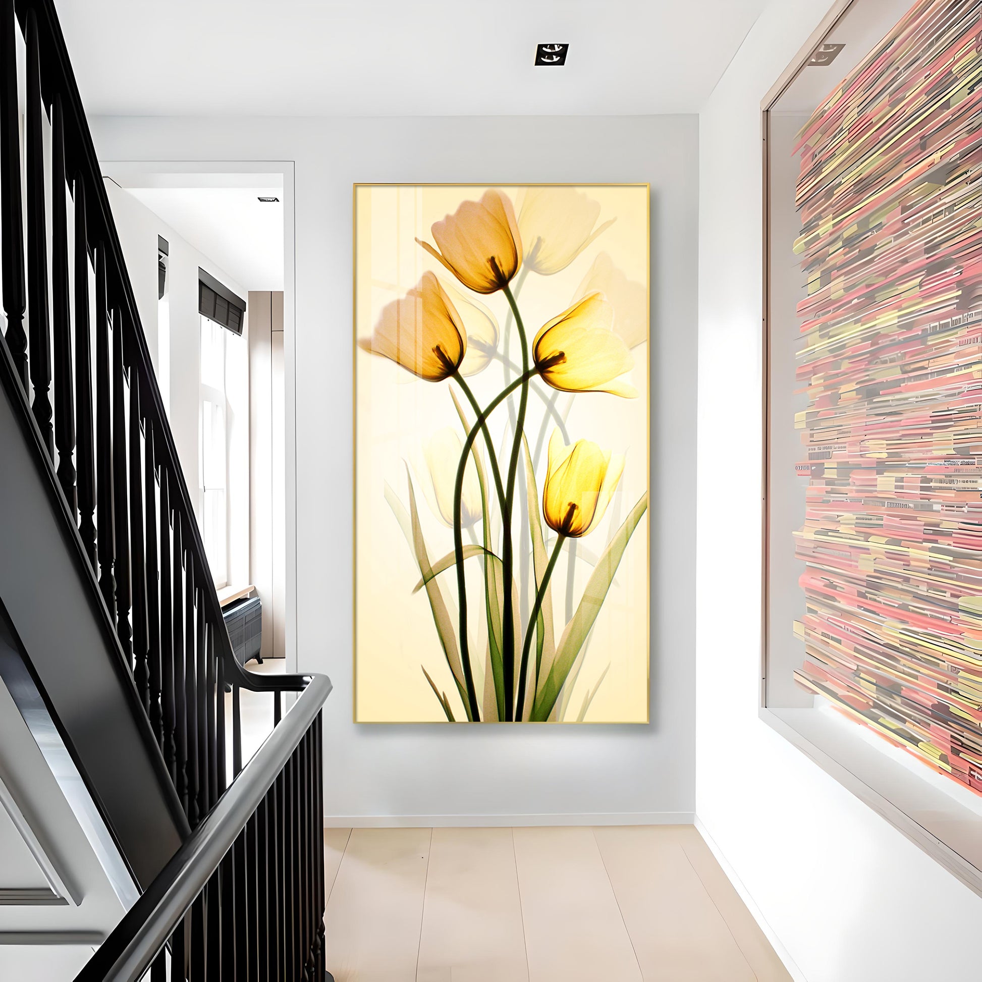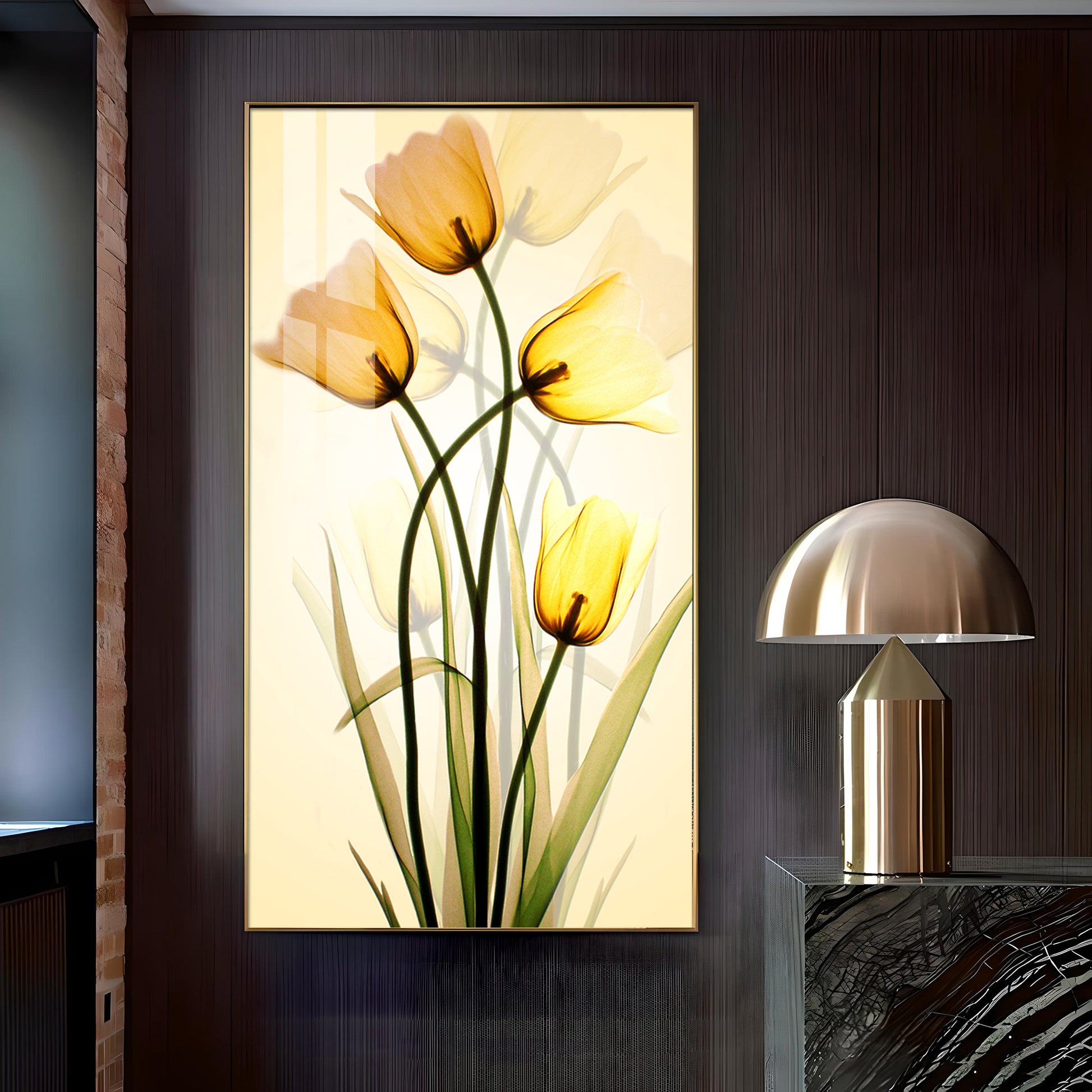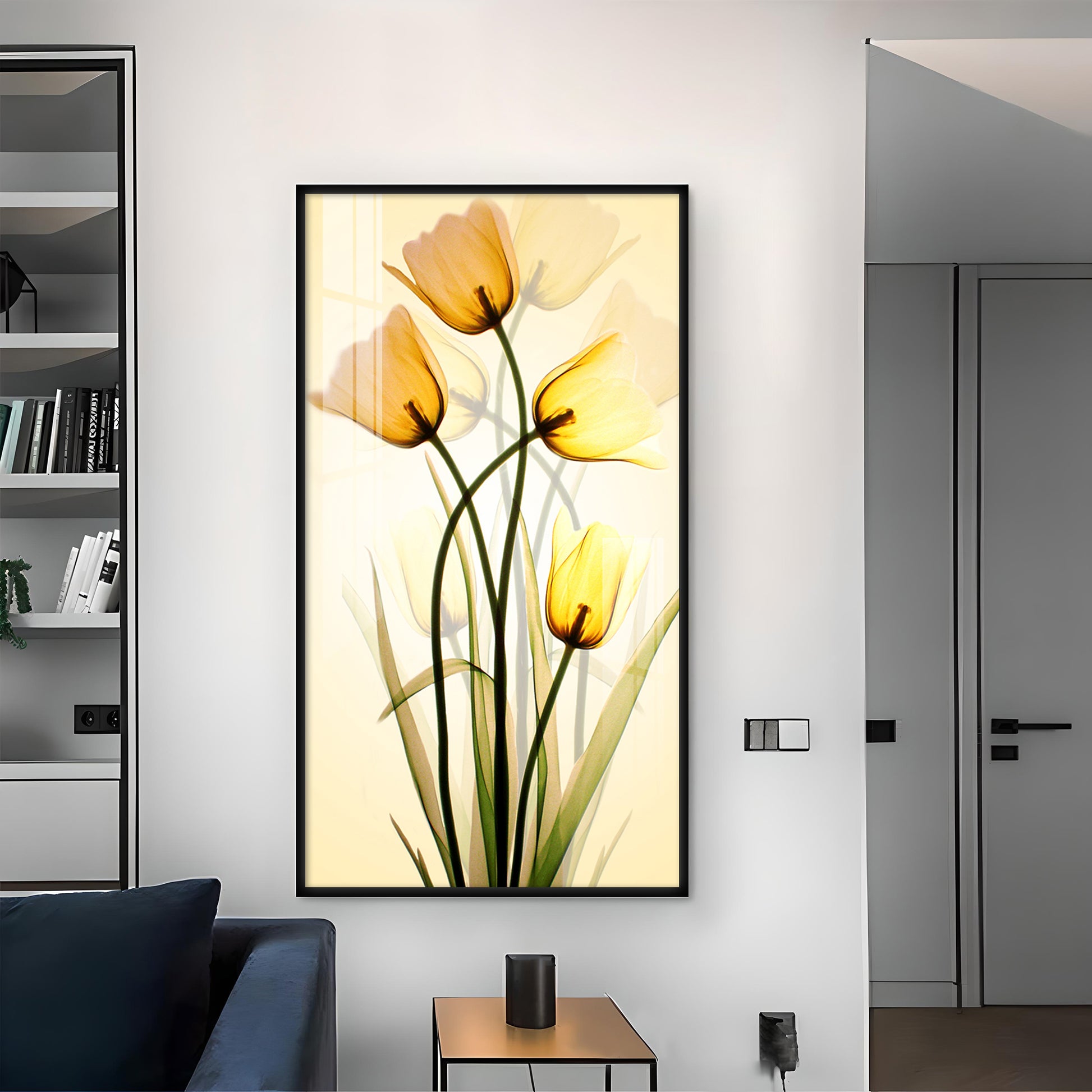 Radiant Yellow Tulips Glass Finish Vertical Wall Art