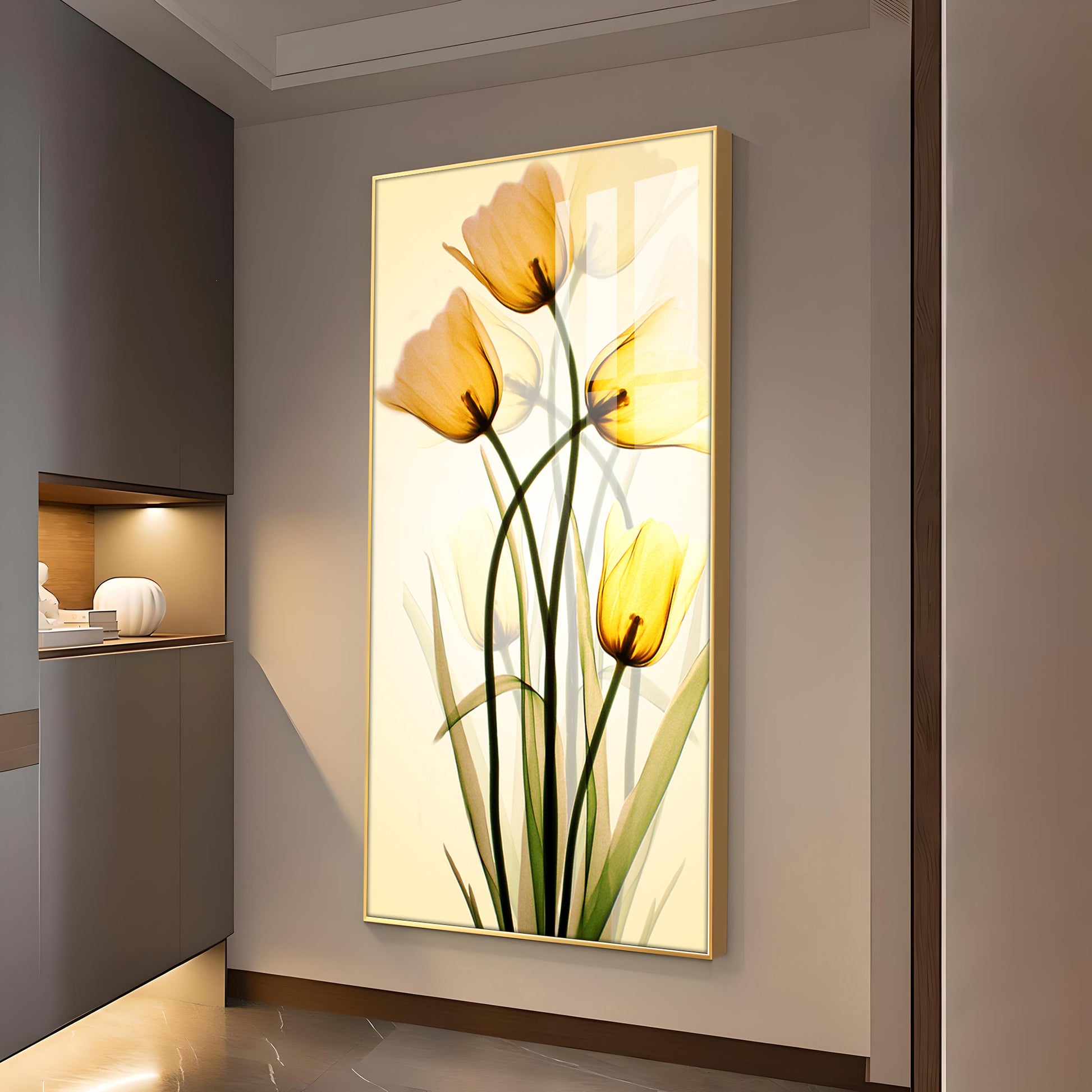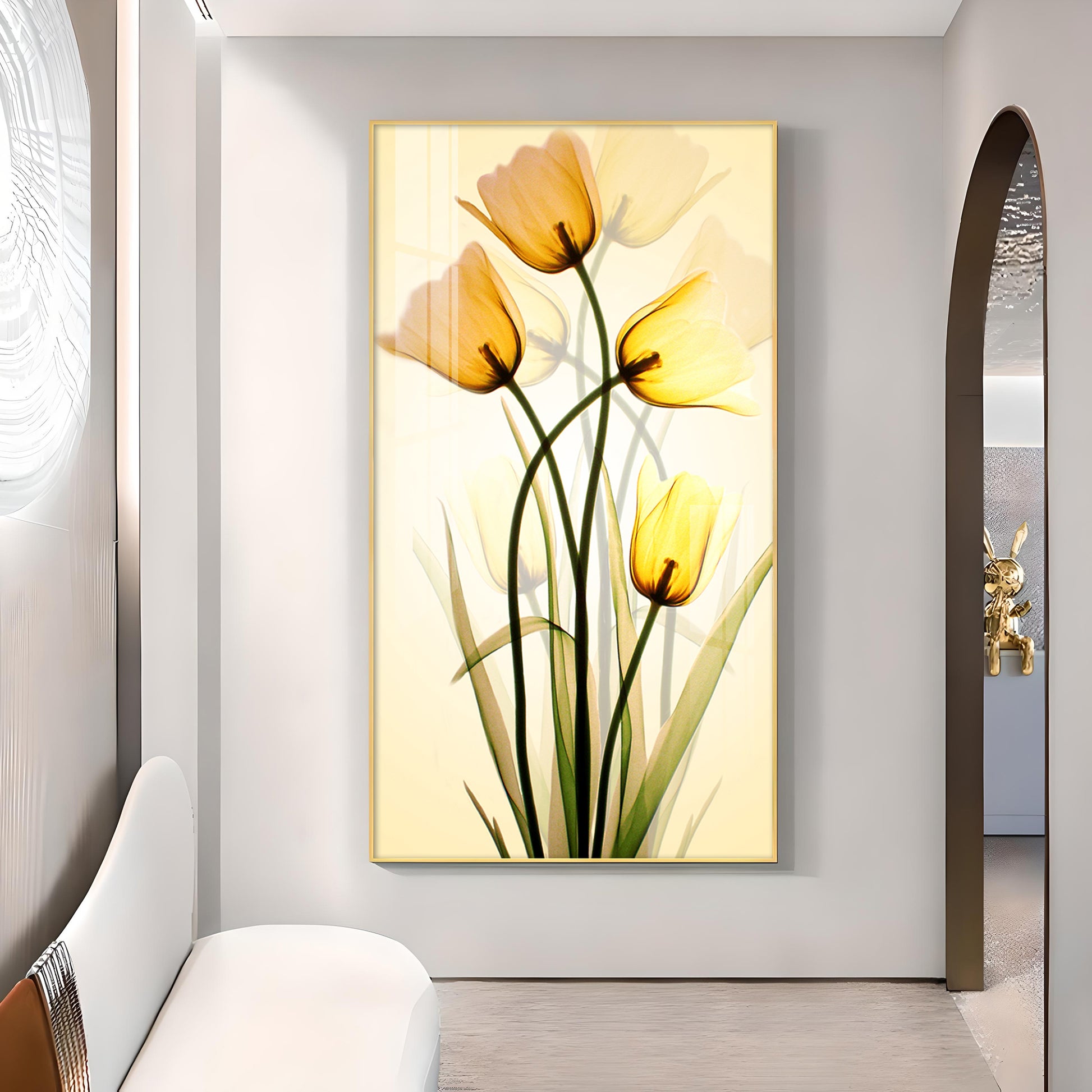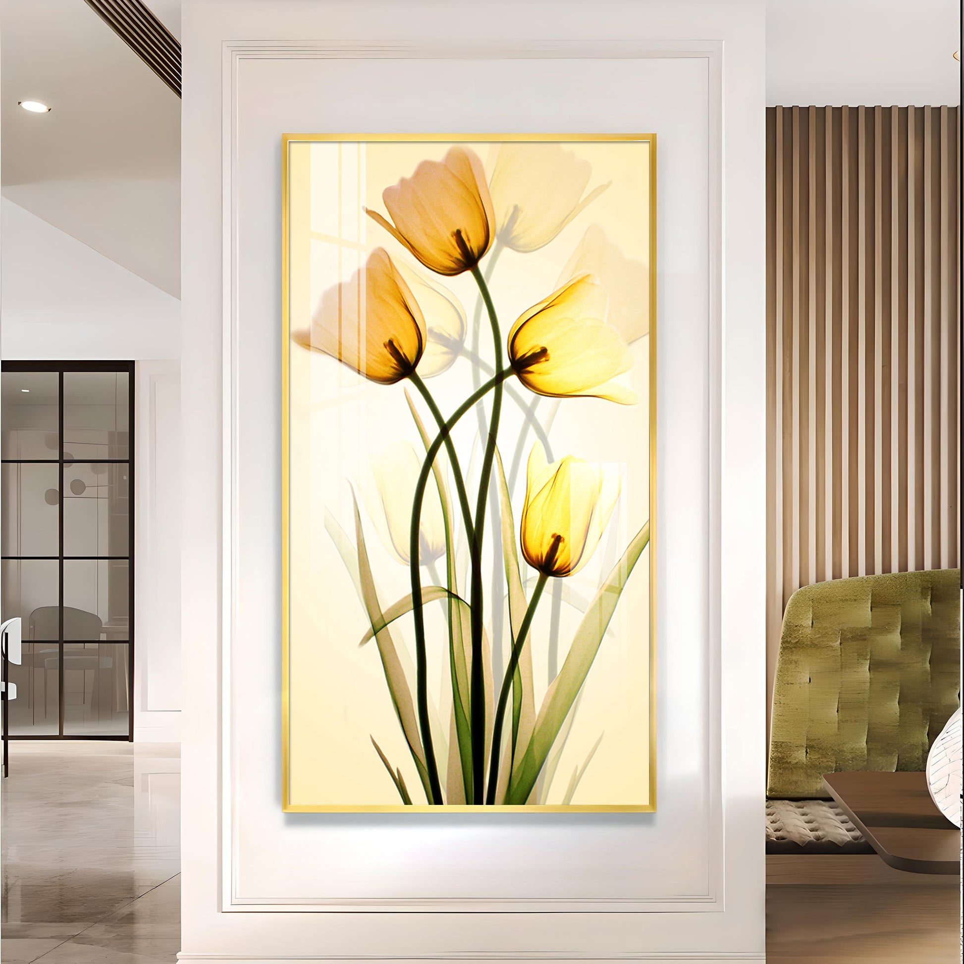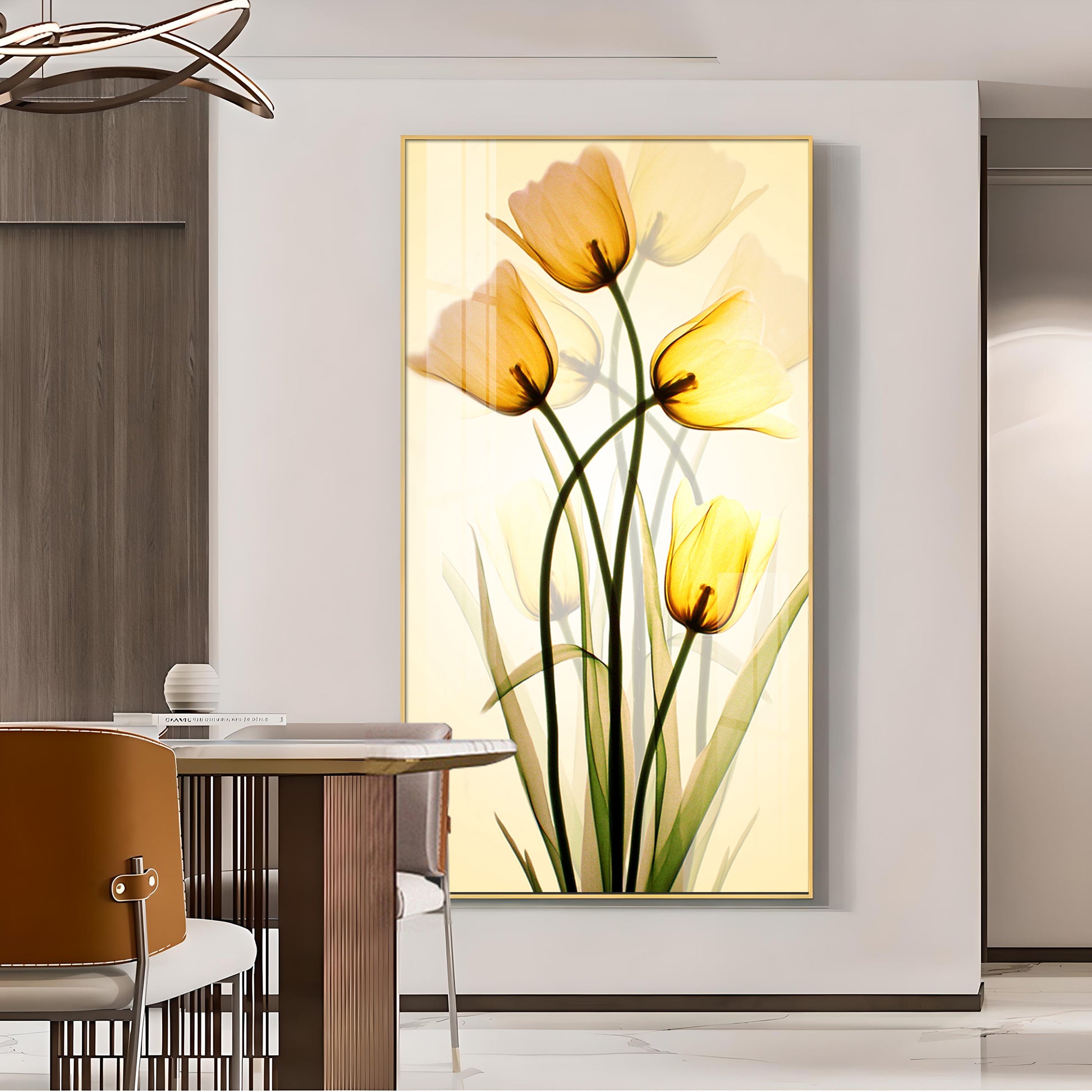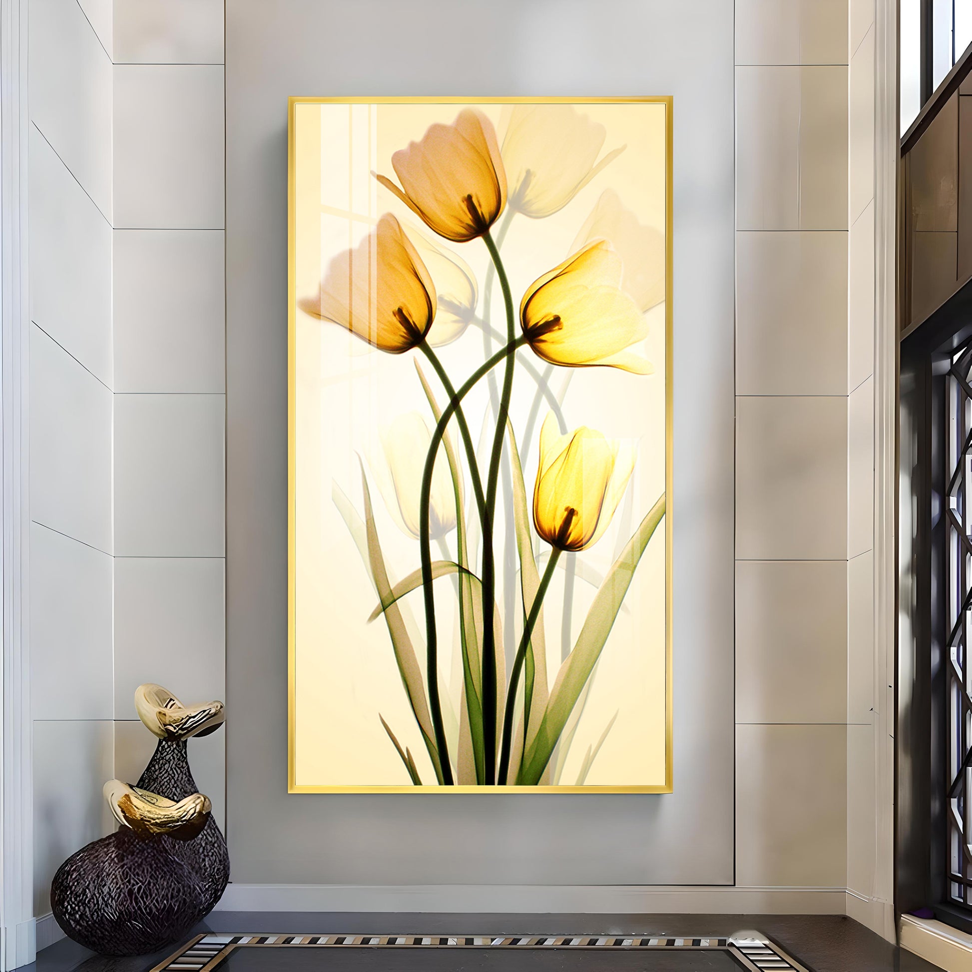 Radiant Yellow Tulips Glass Finish Vertical Wall Art