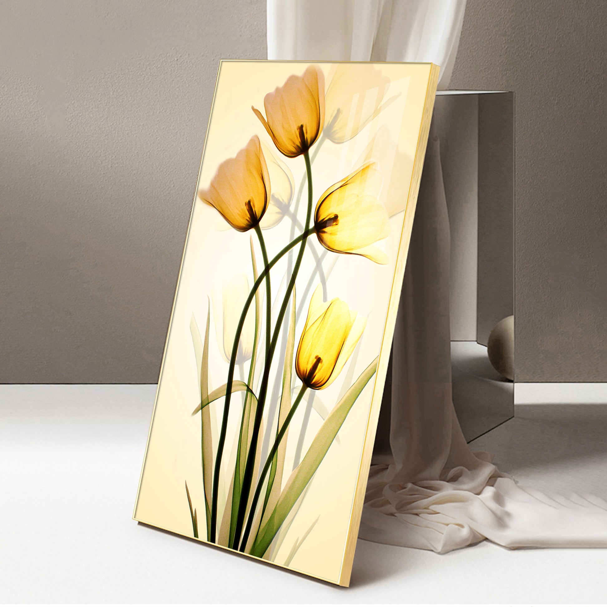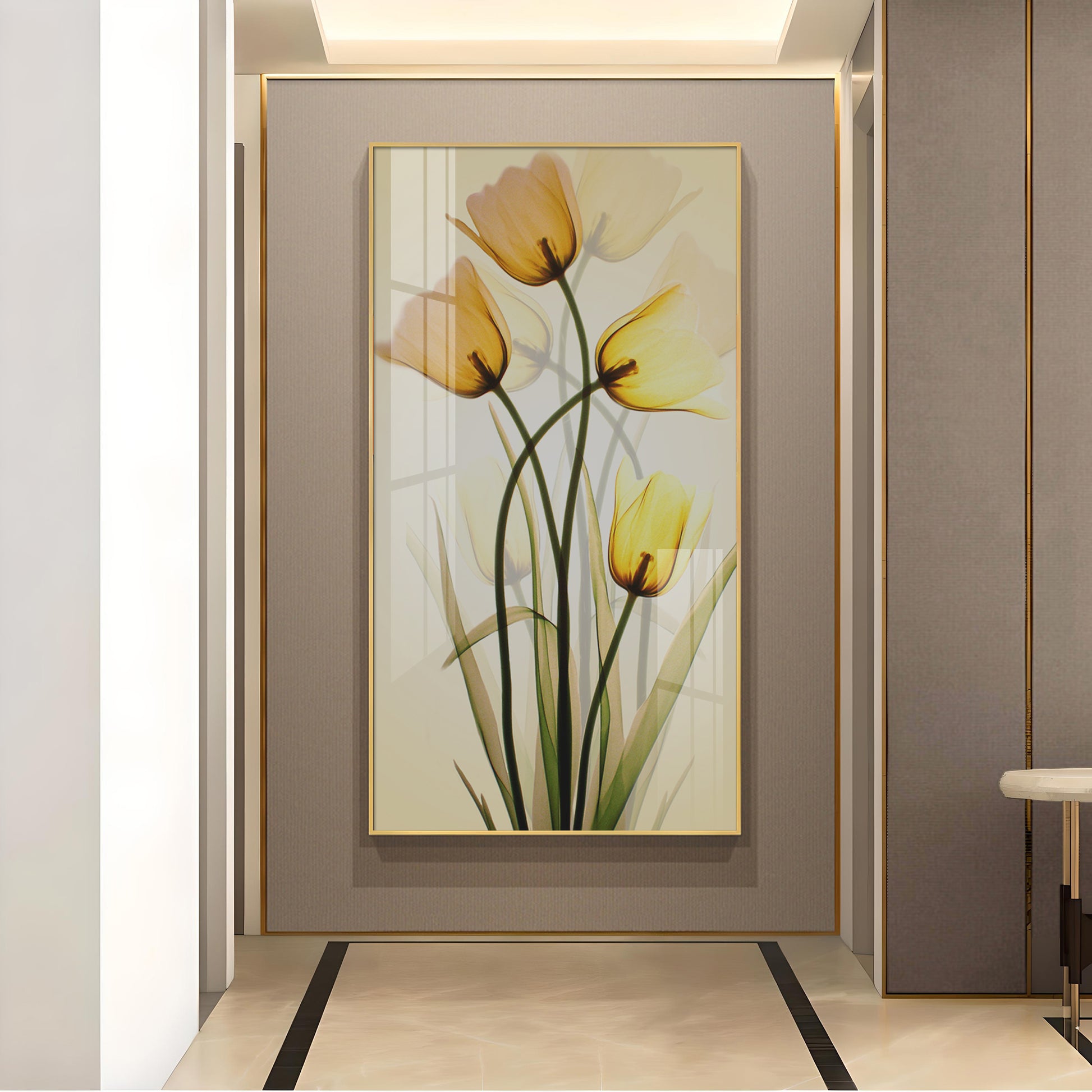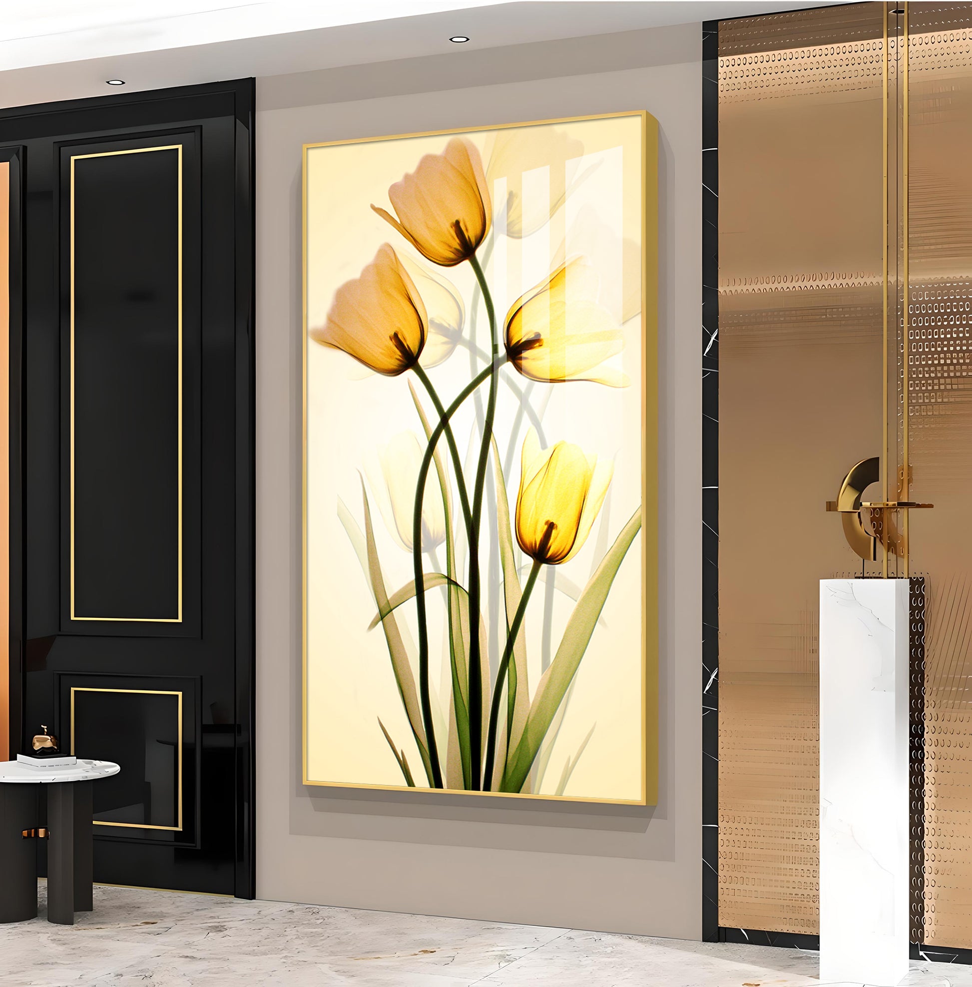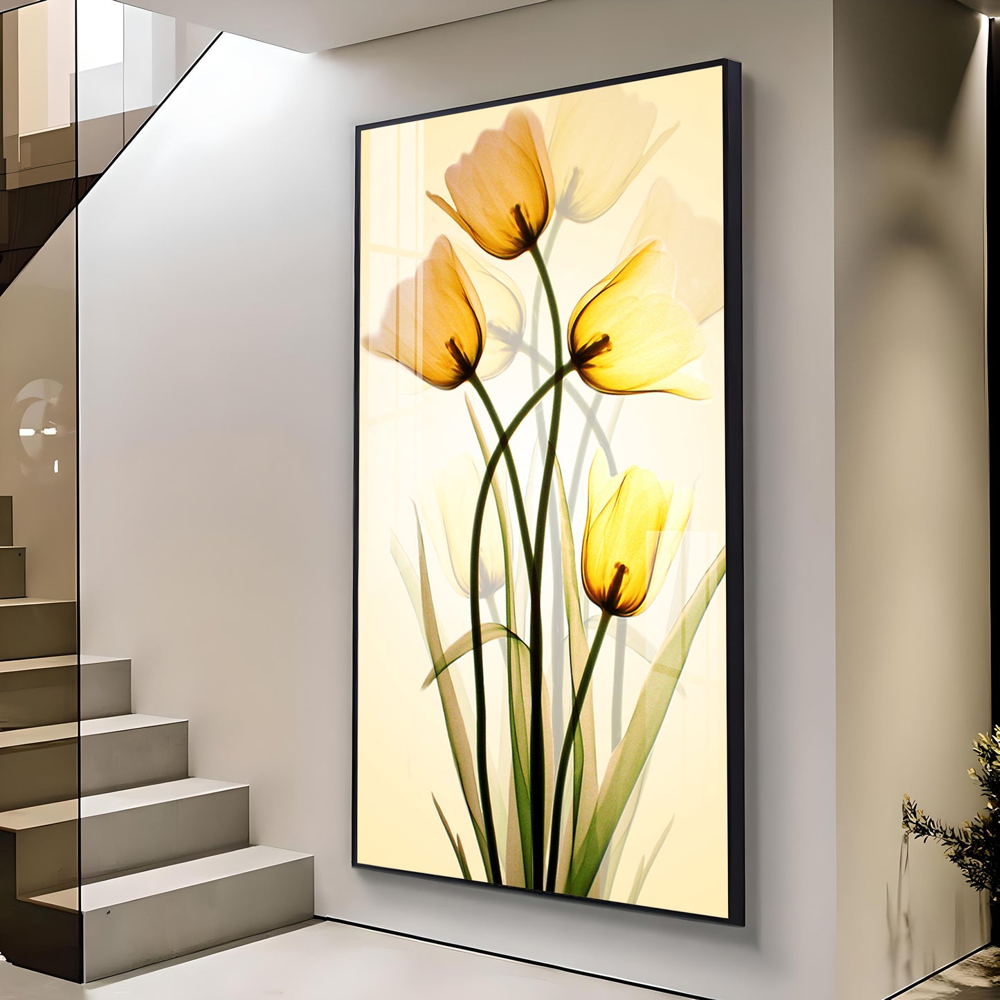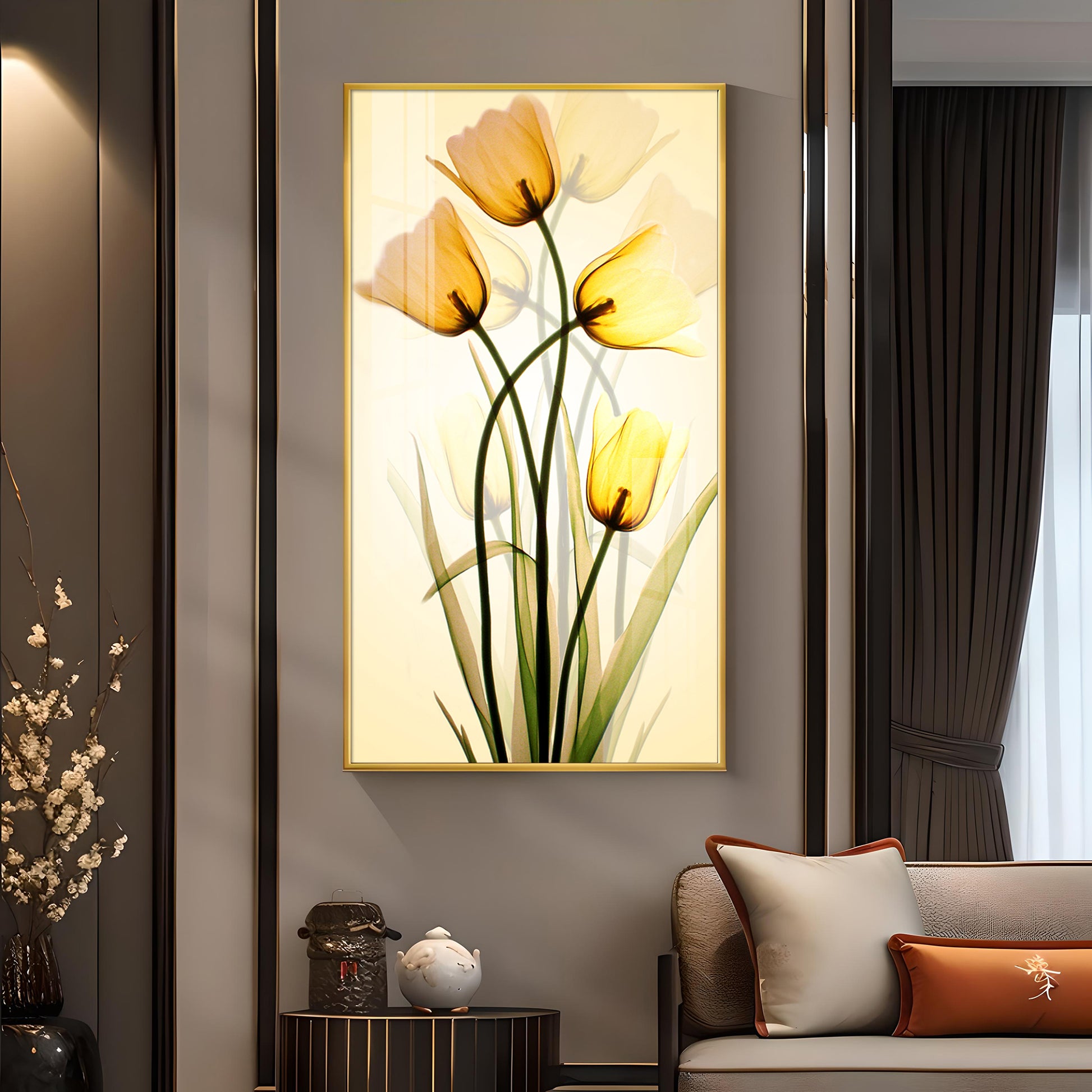 Radiant Yellow Tulips Glass Finish Vertical Wall Art